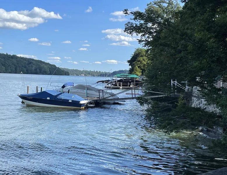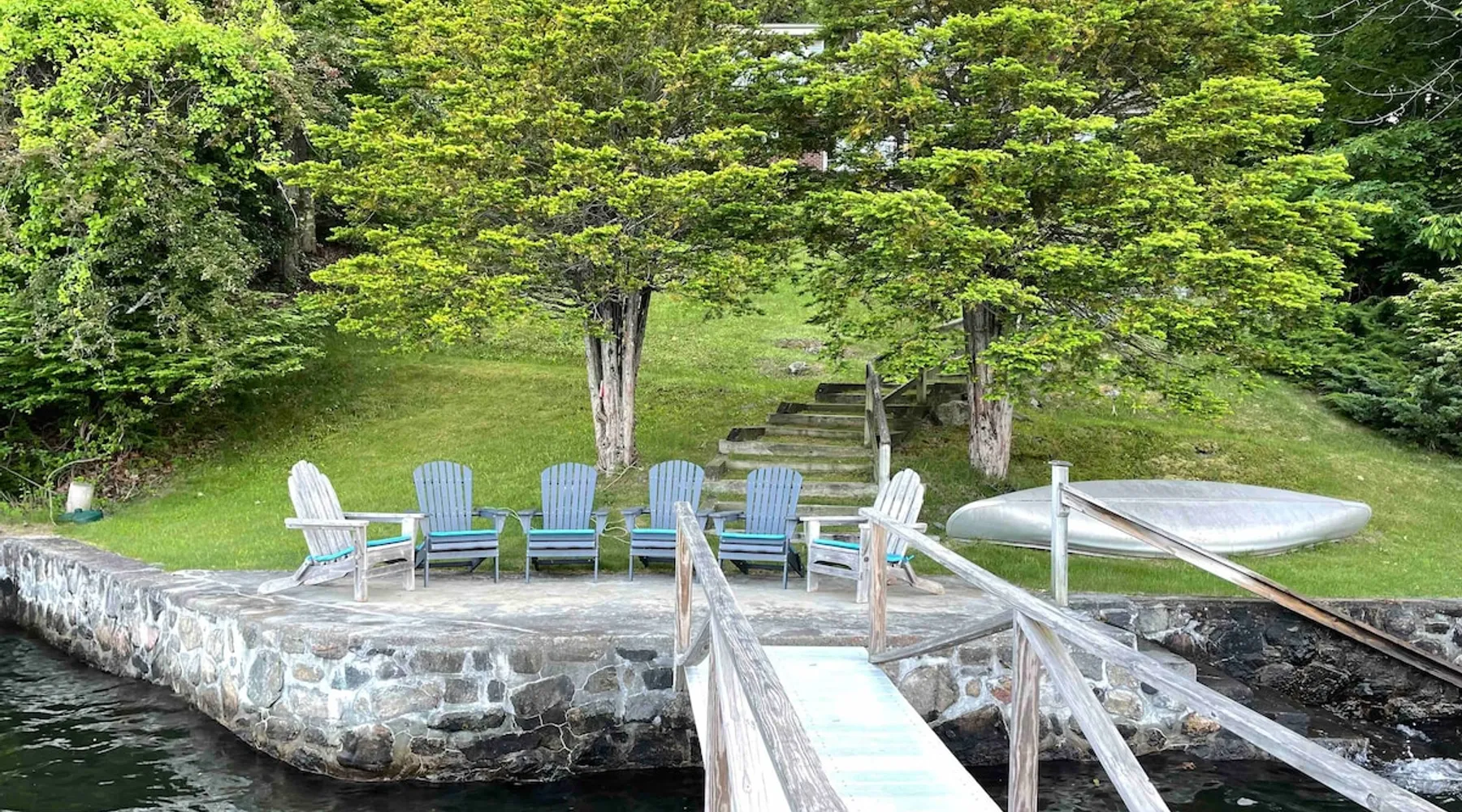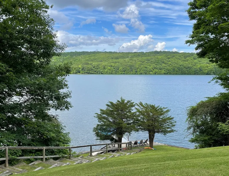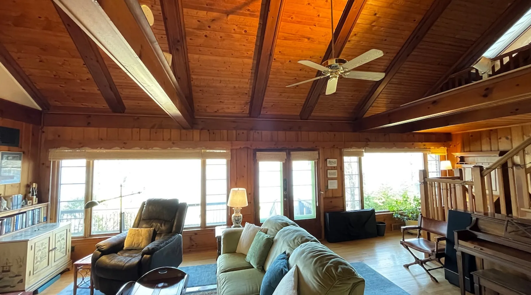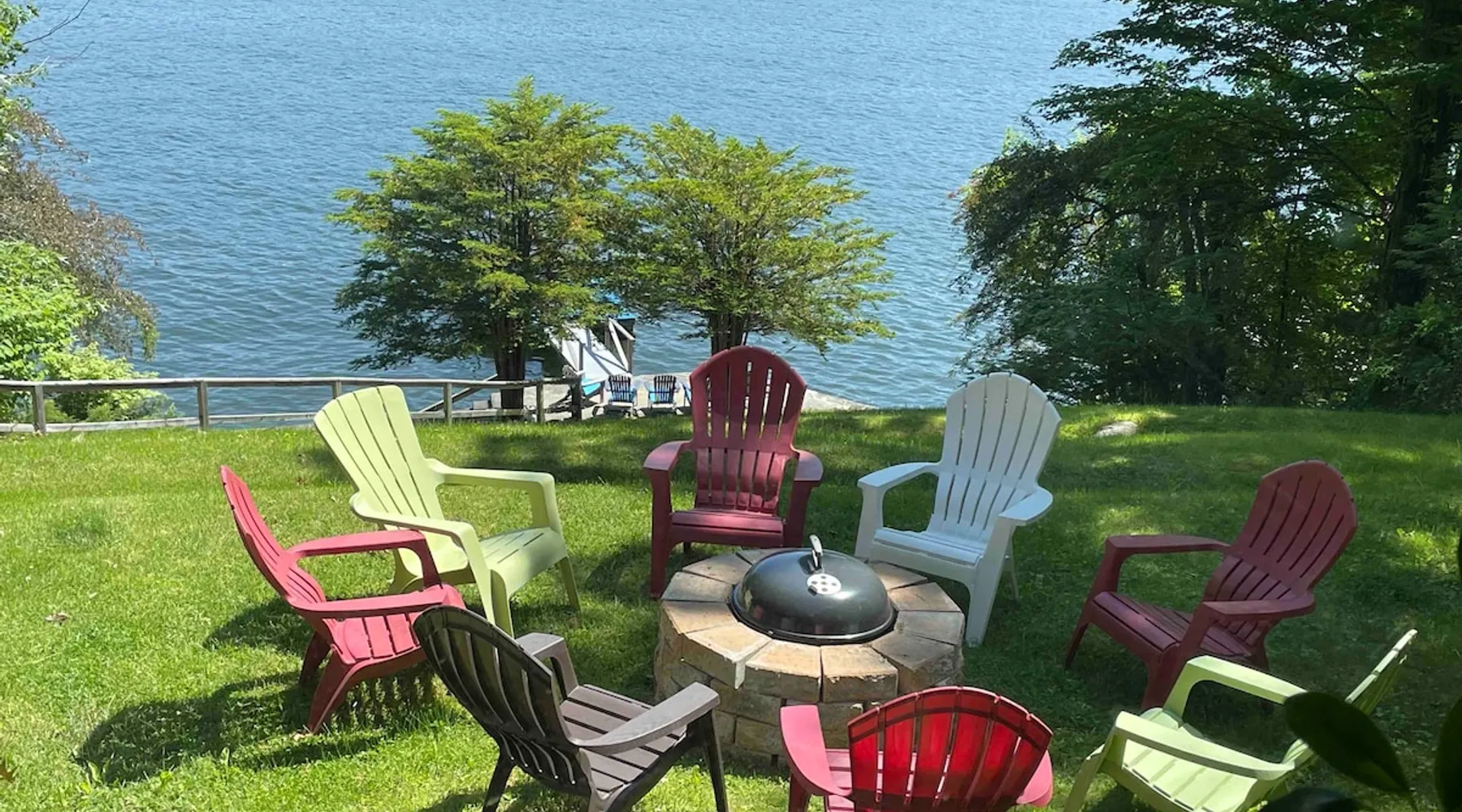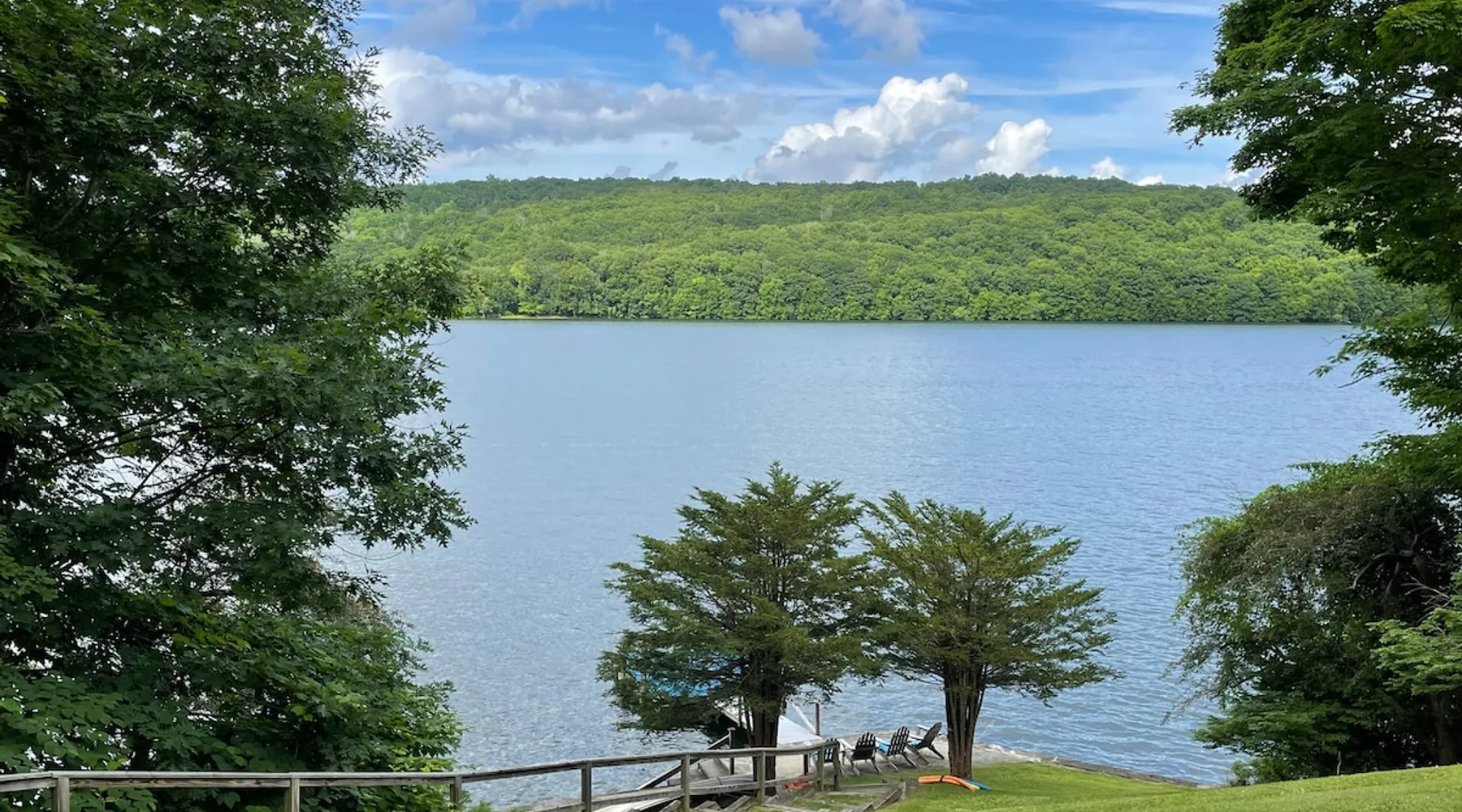 2025 Sept-Dec dates avail. 2026 July-August 7 nite min. Sat to Sat. Other times 4 nite min. . Unique 3100 sq ft. 5 bedroom 4 bath Midcentury Lakehouse w/ stunning secluded property of woods on the back side and wide open lake views on front. 17 five star reviews on other site.Private dock May to Oct. & stone firepit.Crystal water w/stone steps and large stone patio lakeside. 3 decks. Main deck w/ gas grill. Gradual steps into water.Terraced front lawn. Large driveway. 10 mins. to town & The space There are 3 bedrooms on the main level, 2 bedrooms upstairs and a third level lookout room. The main floor has a dramatic cathedral ceiling with large wood beams and track lighting. The second floor features a massive master bedroom suite with private balcony. This home is truly a unique and special place. The house is located 10 minutes from New Fairfield Center or Sherman on a private one acre plus lot. Ours is one of the only roads on the lake where there are no houses on the opposite shore making it very quiet at night. The water at our location is crystal clear. The large stone patio area at the water's edge with a private dock and stone staircase makes getting into the water easy. The water is very deep so good for diving off the dock. The carpeted dock is large. The main floor deck is huge with a large gas grill with two tables and seating for 10 or more. The second floor balcony off the master living room has a table and two chairs. The third deck is on the upper level with a chair. Main Level - The entry level has floor to ceiling picture windows with incredible views of the lake. The living room is wood paneled and beamed with a cathedral ceiling creating an open and spacious feel. There are two huge windows overlooking the main very large deck and the lake beyond. There is a Smart TV with Spectrum internet TV service and a Roku with many streaming apps. There is a stereo system with radio, CD and Aux cord. The kitchen dining area has two walls of windows with the same amazing view. Our eat in kitchen is fully equipped with everything you will need to create your favorite meals. The formal dining room has seating for at least 10 people. There is a window AC unit in the kitchen and a new large mini split AC in living room area. The main level has three bedrooms. The front queen bedroom has a view of the lake from two large sets of windows. This room also has a small private half bath and a wall AC unit. The back queen bedroom has two sets of large windows with a wooded view of mature spruce trees and flowering dogwoods and also a side view of the lake. This room has a Smart TV for streaming and window AC unit. The back middle bedroom has a double bed and a desk. Ceiling fan and portable fan. The main level large vintage bathroom features a unique enclosed shower/tub area with custom etched herons on the glass surround. This bathroom is shared by two bedrooms. Second Level -Upstairs is the huge master king bedroom suite with its own full sized living room with TV for streaming and sitting area. Sliding glass doors leading to a private balcony with a table and chairs overlooking the lake. This room is the full width of the house. There is a window AC unit and also central AC in the master bedroom. There is a huge walk-in closet with dressing mirror and plenty of storage. A private entrance from the master leads to the large second level bathroom with double sinks and marble vanity. This bath also has custom etched glass doors in the tub/shower. The back second level bedroom has two twin beds. There is a full wall of windows with a view of the woods behind the house and the driveway area. This room has its own AC window unit. The third level consists of a small Lookout Room accessed via a spiral staircase. This room has large windows on every side and a small sink. A large desk and chair would make a great office area in cool weather. There is also one twin futon mattress and double mattress for a kids camp out. Glass sliding doors lead to a small deck with chairs. This area is not air conditioned. There is a portable fan. Basement level-The huge basement has a full height 8 foot ceiling. There is a Ping Pong /Dart room and laundry room plus another full bath with shower. Stored in a cupboard are some life jackets and flotation noodles for your use but you should bring your own for children. You may also use the knee board and water skis if you rent a boat. Guest access entire house Other things to note No boats longer than 22 feet may be moored at the dock installed from end May to mid October only. No fires anywhere other than in the firepit. No parties or events other than family gatherings