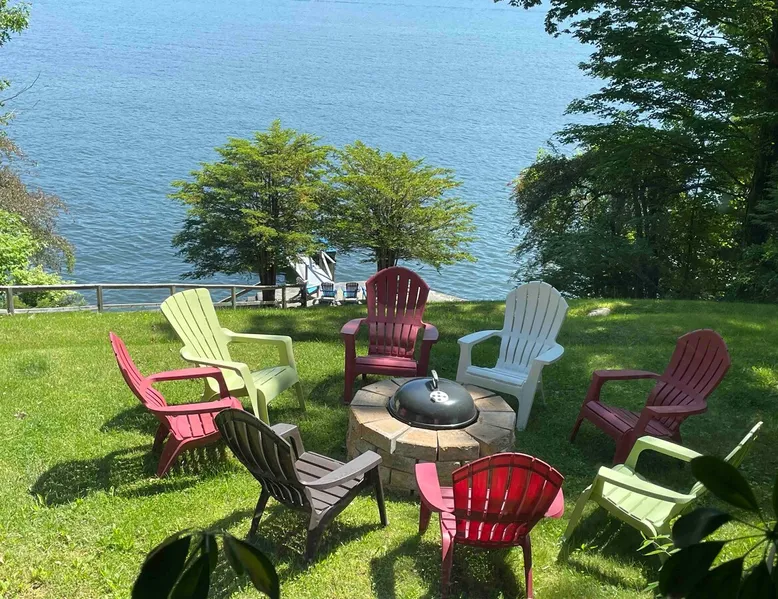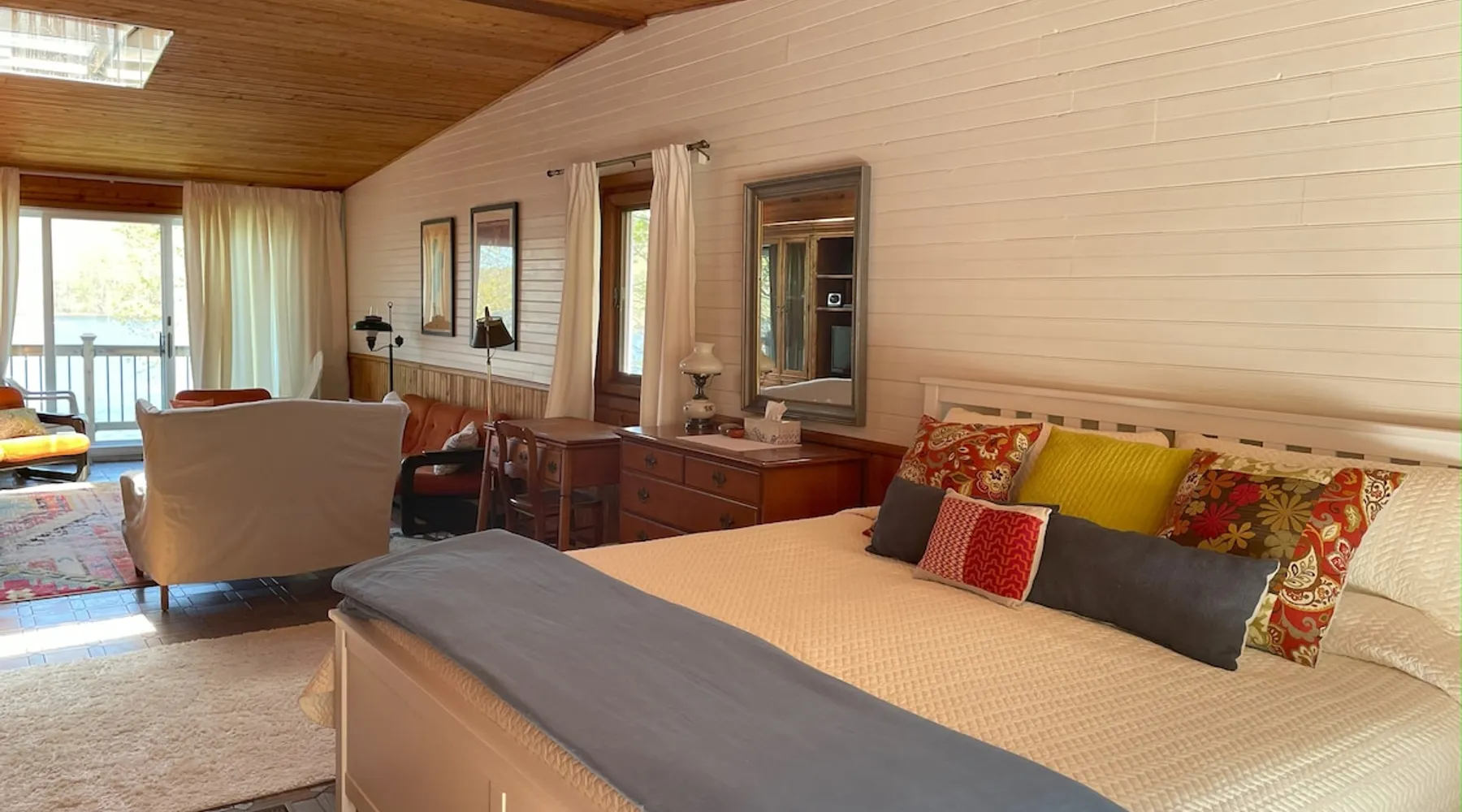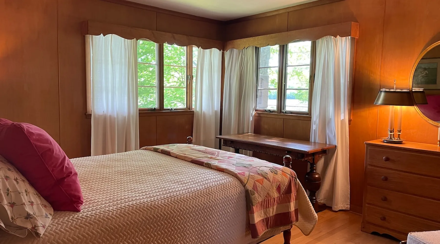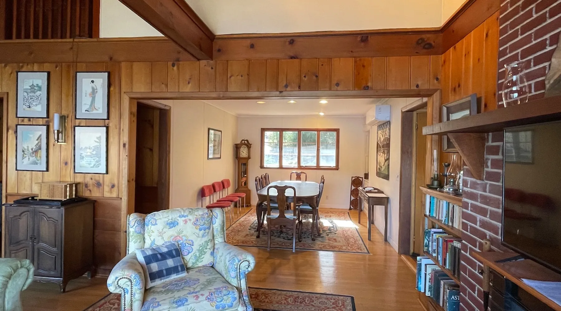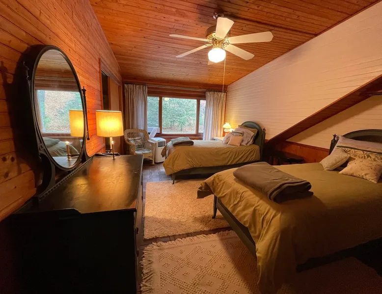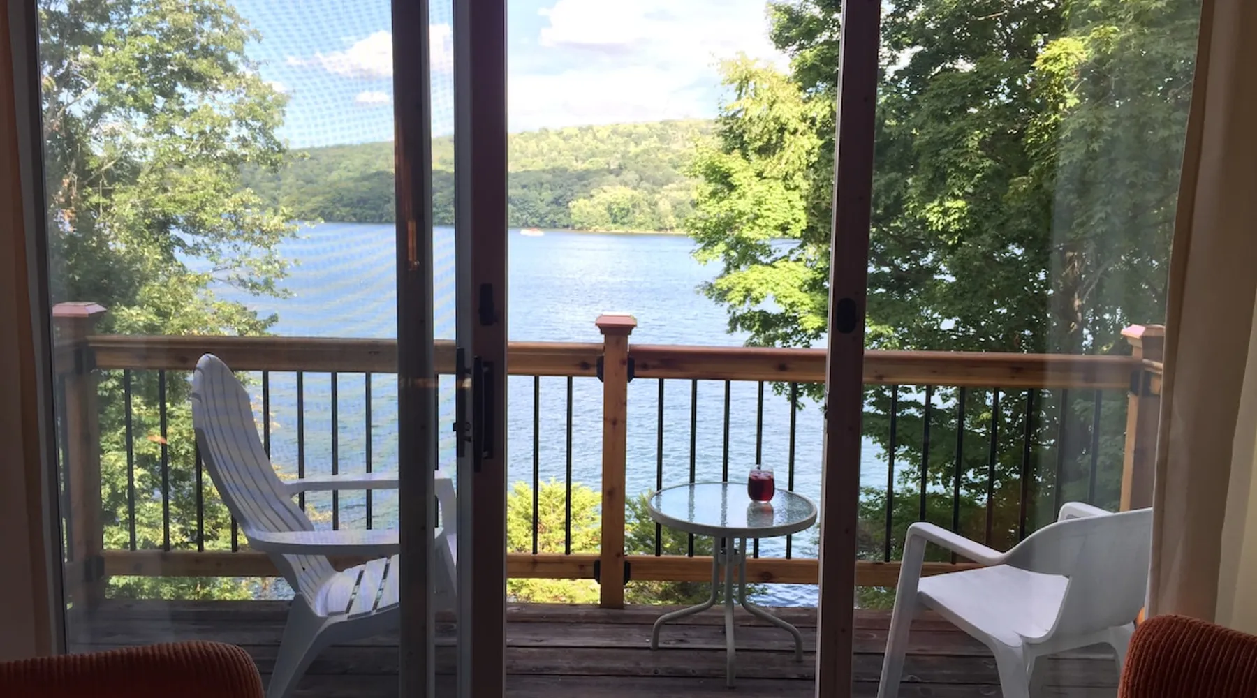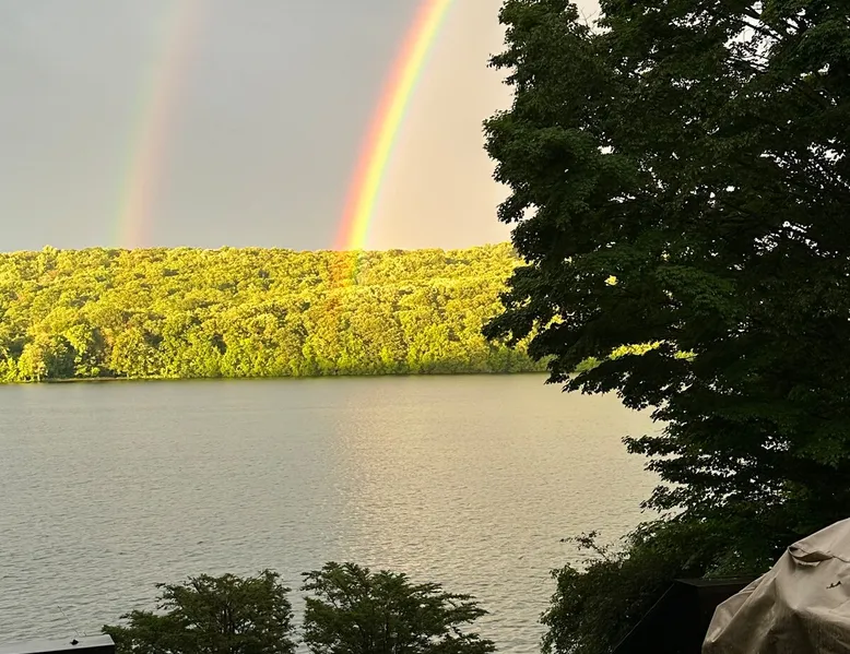 2025 Sept-Dec dates avail. 2026 July-August 7 nite min. Sat to Sat. Other times 4 nite min. . Unique 3100 sq ft. 5 bedroom 4 bath Midcentury Lakehouse w/ stunning secluded property of woods on the back side and wide open lake views on front. 17 five star reviews on other site.Private dock May to Oct. & stone firepit.Crystal water w/stone steps and large stone patio lakeside. 3 decks. Main deck w/ gas grill. Gradual steps into water.Terraced front lawn. Large driveway. 10 mins. to town & The space There are 3 bedrooms on the main level, 2 bedrooms upstairs and a third level lookout room. The main floor has a dramatic cathedral ceiling with large wood beams and track lighting. The second floor features a massive master bedroom suite with private balcony. This home is truly a unique and special place. The house is located 10 minutes from New Fairfield Center or Sherman on a private one acre plus lot. Ours is one of the only roads on the lake where there are no houses on the opposite shore making it very quiet at night. The water at our location is crystal clear. The large stone patio area at the water's edge with a private dock and stone staircase makes getting into the water easy. The water is very deep so good for diving off the dock. The carpeted dock is large. The main floor deck is huge with a large gas grill with two tables and seating for 10 or more. The second floor balcony off the master living room has a table and two chairs. The third deck is on the upper level with a chair. Main Level - The entry level has floor to ceiling picture windows with incredible views of the lake. The living room is wood paneled and beamed with a cathedral ceiling creating an open and spacious feel. There are two huge windows overlooking the main very large deck and the lake beyond. There is a Smart TV with Spectrum internet TV service and a Roku with many streaming apps. There is a stereo system with radio, CD and Aux cord. The kitchen dining area has two walls of windows with the same amazing view. Our eat in kitchen is fully equipped with everything you will need to create your favorite meals. The formal dining room has seating for at least 10 people. There is a window AC unit in the kitchen and a new large mini split AC in living room area. The main level has three bedrooms. The front queen bedroom has a view of the lake from two large sets of windows. This room also has a small private half bath and a wall AC unit. The back queen bedroom has two sets of large windows with a wooded view of mature spruce trees and flowering dogwoods and also a side view of the lake. This room has a Smart TV for streaming and window AC unit. The back middle bedroom has a double bed and a desk. Ceiling fan and portable fan. The main level large vintage bathroom features a unique enclosed shower/tub area with custom etched herons on the glass surround. This bathroom is shared by two bedrooms. Second Level -Upstairs is the huge master king bedroom suite with its own full sized living room with TV for streaming and sitting area. Sliding glass doors leading to a private balcony with a table and chairs overlooking the lake. This room is the full width of the house. There is a window AC unit and also central AC in the master bedroom. There is a huge walk-in closet with dressing mirror and plenty of storage. A private entrance from the master leads to the large second level bathroom with double sinks and marble vanity. This bath also has custom etched glass doors in the tub/shower. The back second level bedroom has two twin beds. There is a full wall of windows with a view of the woods behind the house and the driveway area. This room has its own AC window unit. The third level consists of a small Lookout Room accessed via a spiral staircase. This room has large windows on every side and a small sink. A large desk and chair would make a great office area in cool weather. There is also one twin futon mattress and double mattress for a kids camp out. Glass sliding doors lead to a small deck with chairs. This area is not air conditioned. There is a portable fan. Basement level-The huge basement has a full height 8 foot ceiling. There is a Ping Pong /Dart room and laundry room plus another full bath with shower. Stored in a cupboard are some life jackets and flotation noodles for your use but you should bring your own for children. You may also use the knee board and water skis if you rent a boat. Guest access entire house Other things to note No boats longer than 22 feet may be moored at the dock installed from end May to mid October only. No fires anywhere other than in the firepit. No parties or events other than family gatherings