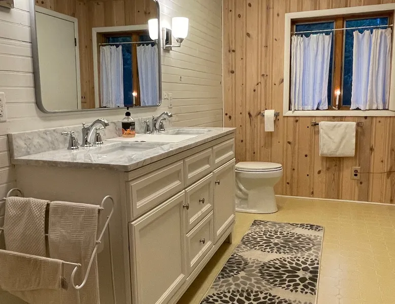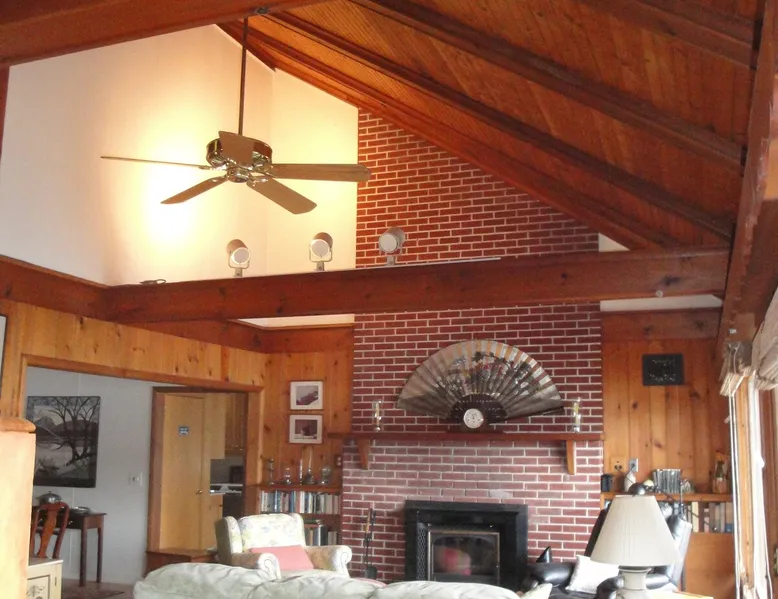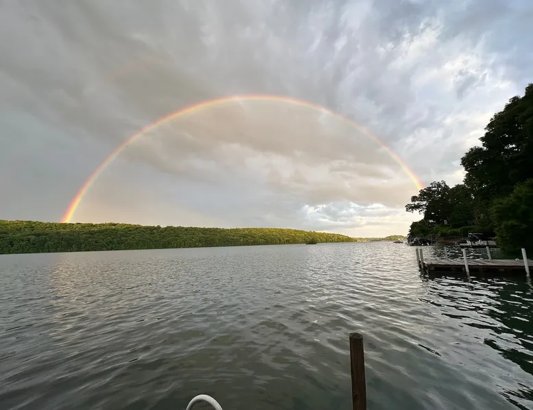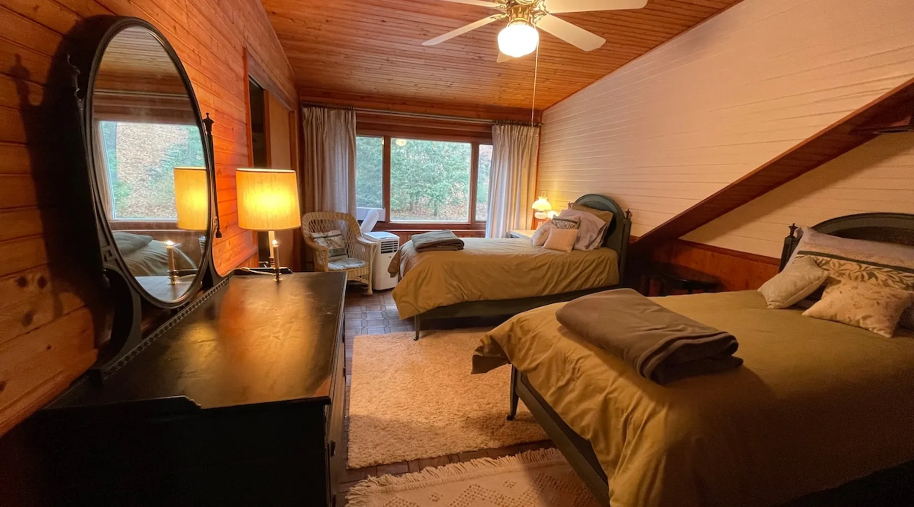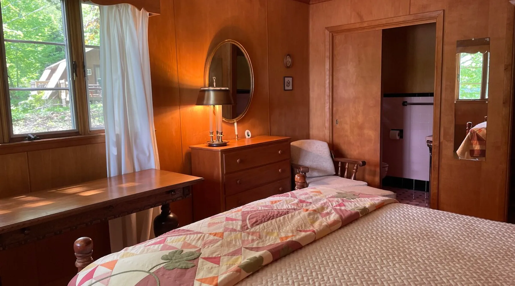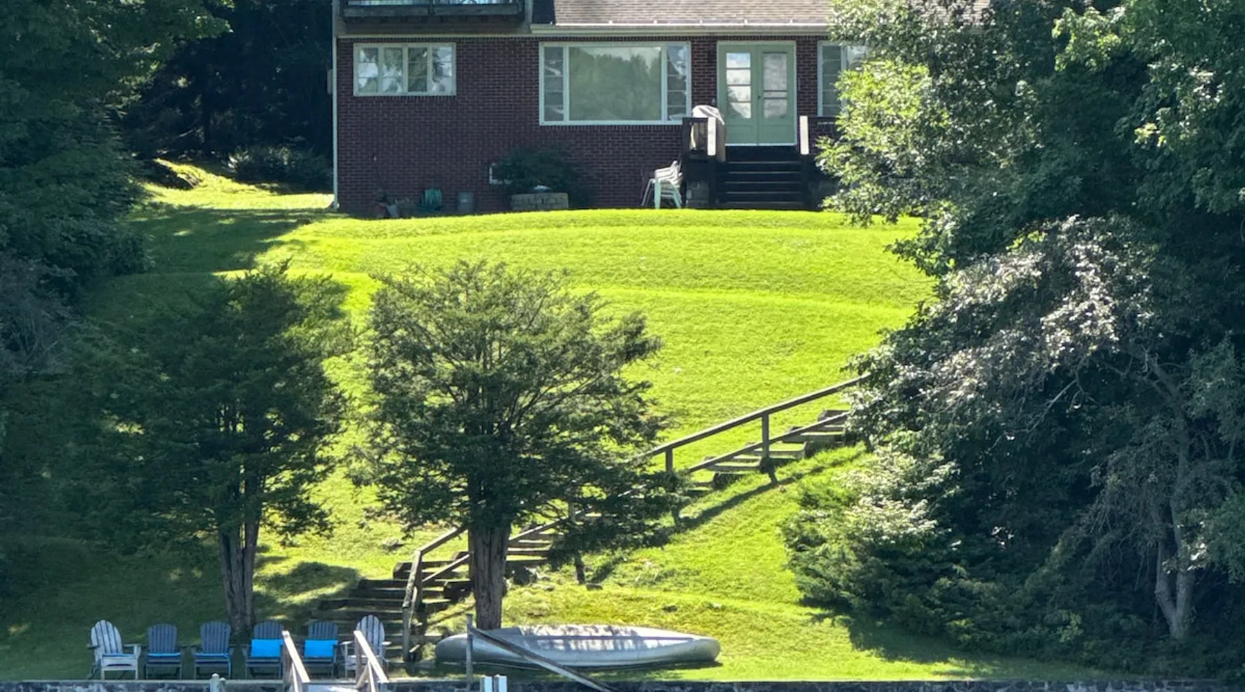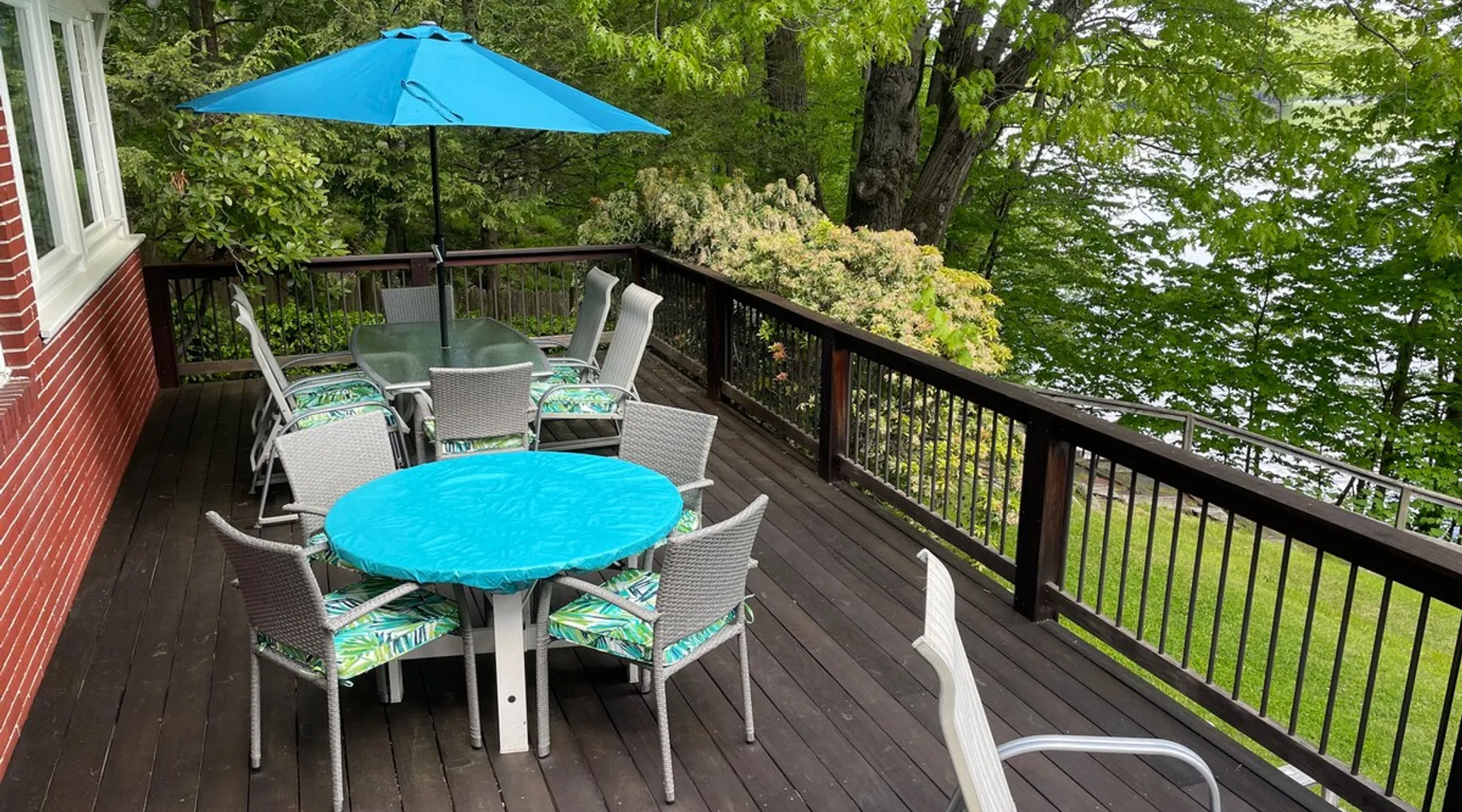 2025 Sept-Dec dates avail. 2026 July-August 7 nite min. Sat to Sat. Other times 4 nite min. . Unique 3100 sq ft. 5 bedroom 4 bath Midcentury Lakehouse w/ stunning secluded property of woods on the back side and wide open lake views on front. 17 five star reviews on other site.Private dock May to Oct. & stone firepit.Crystal water w/stone steps and large stone patio lakeside. 3 decks. Main deck w/ gas grill. Gradual steps into water.Terraced front lawn. Large driveway. 10 mins. to town & The space There are 3 bedrooms on the main level, 2 bedrooms upstairs and a third level lookout room. The main floor has a dramatic cathedral ceiling with large wood beams and track lighting. The second floor features a massive master bedroom suite with private balcony. This home is truly a unique and special place. The house is located 10 minutes from New Fairfield Center or Sherman on a private one acre plus lot. Ours is one of the only roads on the lake where there are no houses on the opposite shore making it very quiet at night. The water at our location is crystal clear. The large stone patio area at the water's edge with a private dock and stone staircase makes getting into the water easy. The water is very deep so good for diving off the dock. The carpeted dock is large. The main floor deck is huge with a large gas grill with two tables and seating for 10 or more. The second floor balcony off the master living room has a table and two chairs. The third deck is on the upper level with a chair. Main Level - The entry level has floor to ceiling picture windows with incredible views of the lake. The living room is wood paneled and beamed with a cathedral ceiling creating an open and spacious feel. There are two huge windows overlooking the main very large deck and the lake beyond. There is a Smart TV with Spectrum internet TV service and a Roku with many streaming apps. There is a stereo system with radio, CD and Aux cord. The kitchen dining area has two walls of windows with the same amazing view. Our eat in kitchen is fully equipped with everything you will need to create your favorite meals. The formal dining room has seating for at least 10 people. There is a window AC unit in the kitchen and a new large mini split AC in living room area. The main level has three bedrooms. The front queen bedroom has a view of the lake from two large sets of windows. This room also has a small private half bath and a wall AC unit. The back queen bedroom has two sets of large windows with a wooded view of mature spruce trees and flowering dogwoods and also a side view of the lake. This room has a Smart TV for streaming and window AC unit. The back middle bedroom has a double bed and a desk. Ceiling fan and portable fan. The main level large vintage bathroom features a unique enclosed shower/tub area with custom etched herons on the glass surround. This bathroom is shared by two bedrooms. Second Level -Upstairs is the huge master king bedroom suite with its own full sized living room with TV for streaming and sitting area. Sliding glass doors leading to a private balcony with a table and chairs overlooking the lake. This room is the full width of the house. There is a window AC unit and also central AC in the master bedroom. There is a huge walk-in closet with dressing mirror and plenty of storage. A private entrance from the master leads to the large second level bathroom with double sinks and marble vanity. This bath also has custom etched glass doors in the tub/shower. The back second level bedroom has two twin beds. There is a full wall of windows with a view of the woods behind the house and the driveway area. This room has its own AC window unit. The third level consists of a small Lookout Room accessed via a spiral staircase. This room has large windows on every side and a small sink. A large desk and chair would make a great office area in cool weather. There is also one twin futon mattress and double mattress for a kids camp out. Glass sliding doors lead to a small deck with chairs. This area is not air conditioned. There is a portable fan. Basement level-The huge basement has a full height 8 foot ceiling. There is a Ping Pong /Dart room and laundry room plus another full bath with shower. Stored in a cupboard are some life jackets and flotation noodles for your use but you should bring your own for children. You may also use the knee board and water skis if you rent a boat. Guest access entire house Other things to note No boats longer than 22 feet may be moored at the dock installed from end May to mid October only. No fires anywhere other than in the firepit. No parties or events other than family gatherings