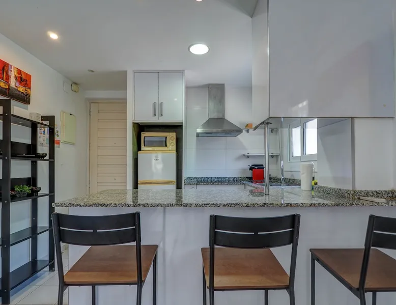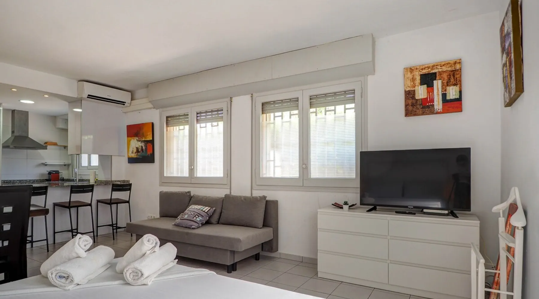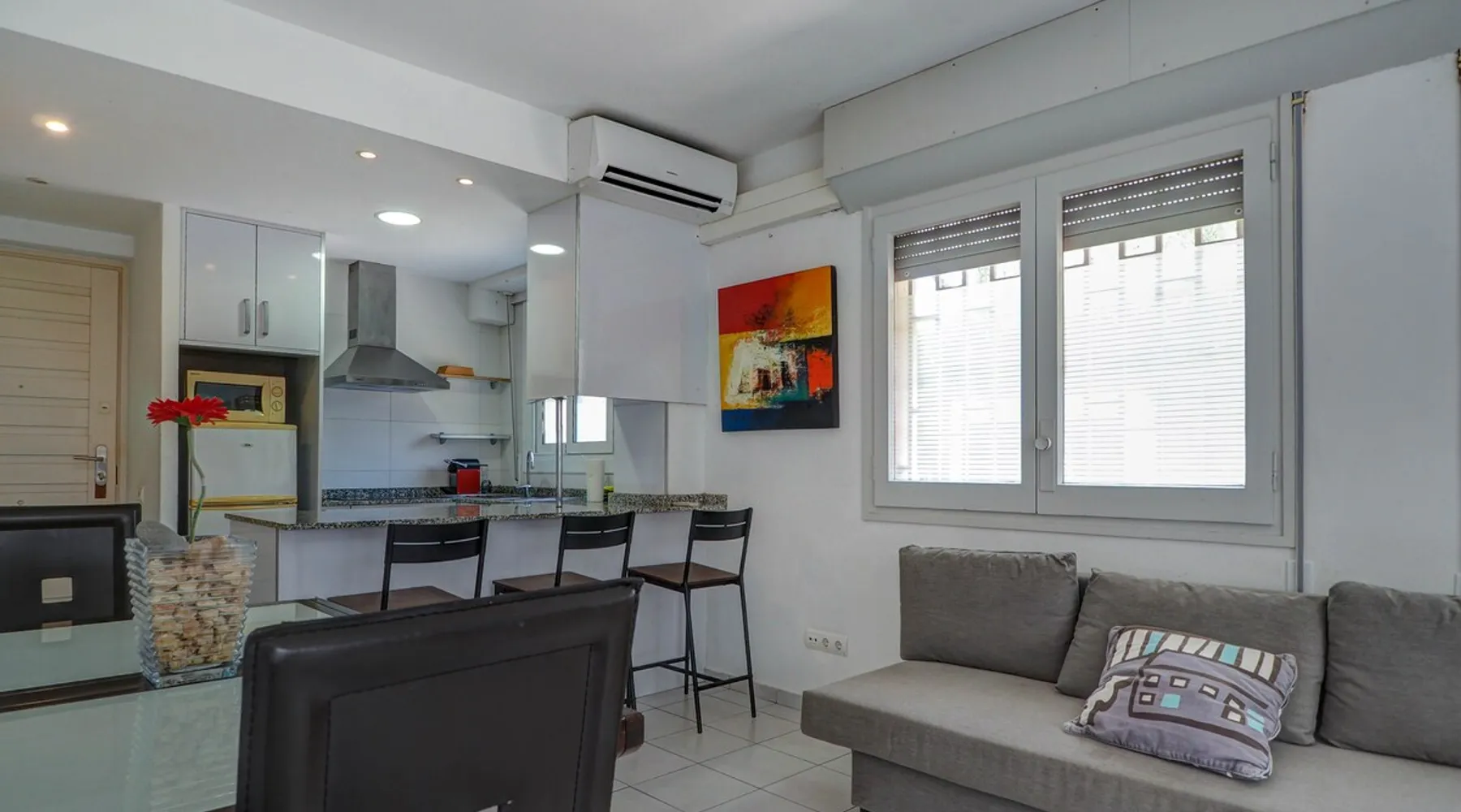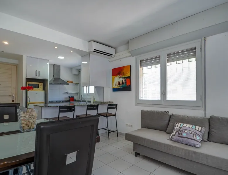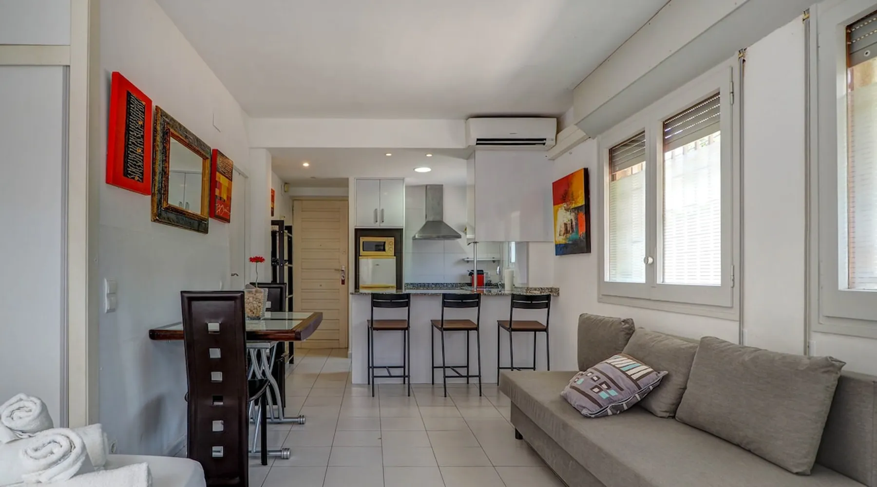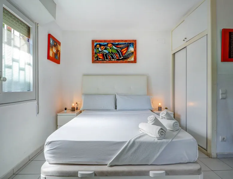Los Globos Studio The space The Los Globos studio is located in the El Vinyet residential area of Sitges, just two minutes from the beach. It is located on the ground floor and has an area of 30 m2, it has an open kitchen with a dining room and a living room, a bathroom with shower, a large closet and the sleeping area with a double bed. The studio has access to a communal pool and its gardens for the exclusive use of our guests. The studio is equipped with air conditioning, free WIFI internet, safe and satellite TV. The kitchen is open to the living room and is equipped to prepare any meal. The bathroom has a shower tray. The rest of the studio has a table with chairs, sofa and flat screen TV. The bed is a double bed, it has large closets and a window with access to the main patio of the building. Main features: * Maximum guests: 3 * Bedrooms: 1 * Bathrooms: 1 * Double bed: 1 * Sofa bed: 1 Arrival information: * The tourist taxes required by the Sitges City Council must be paid (1 euro per person per night | maximum 7 nights | children under 16 years of age do not pay) * Check-in time is from 4pm to 9 pm * For check-ins after 9:00 p.m., there is a small supplement of €30 * For check -ins after midnight, there is a supplement of €50 *A deposit of 300€ will be required upon arrival and must be paid by credit card. Departure information: * Departure time is 11 am * Remember to turn off the AC before your departure. * Upon departure, the keys must be left on a table or visible place, never in the lock. Other things to note License number HUTB-004136 Registration Details HUTB-004136