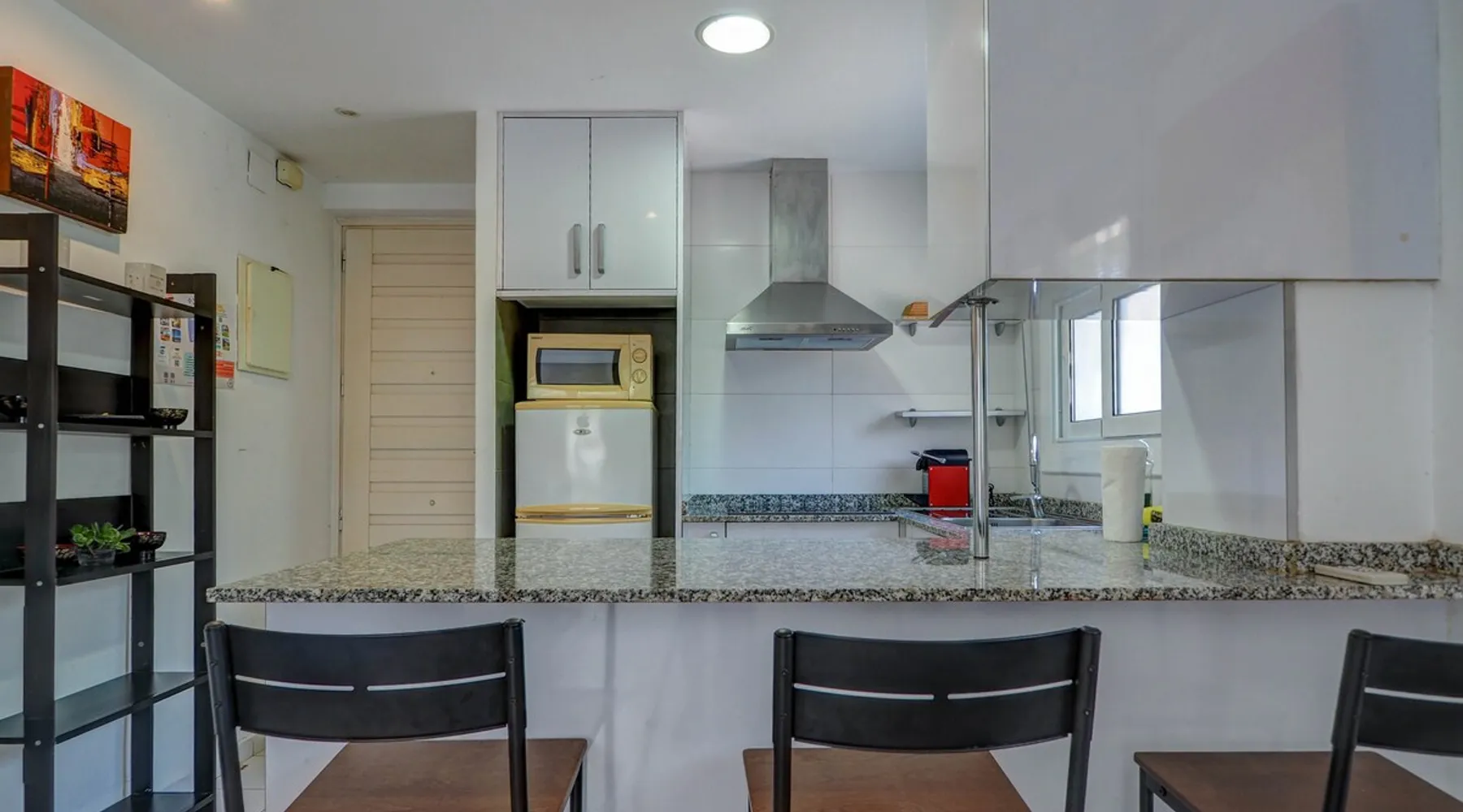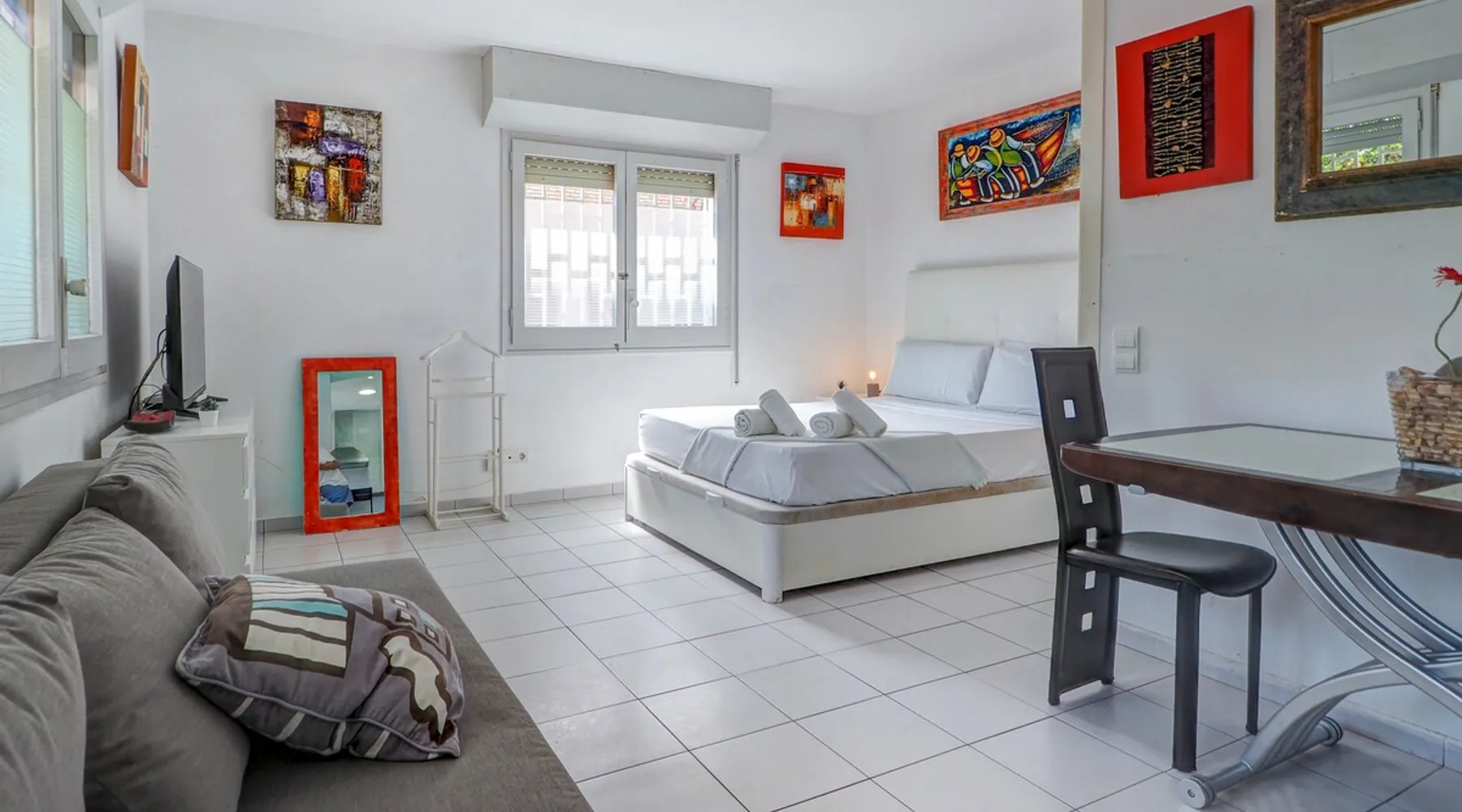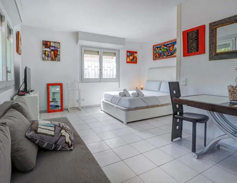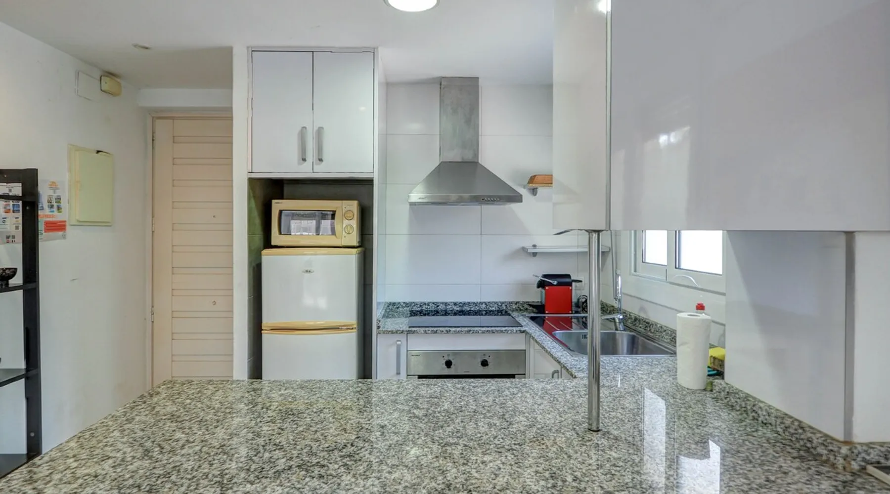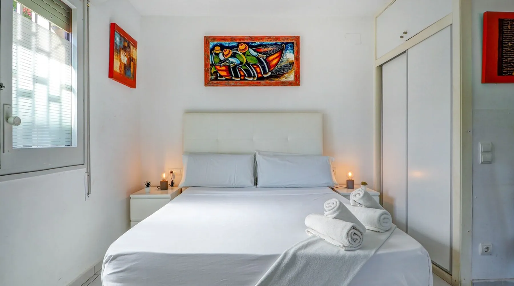 Los Globos Studio The space The Los Globos studio is located in the El Vinyet residential area of Sitges, just two minutes from the beach. It is located on the ground floor and has an area of 30 m2, it has an open kitchen with a dining room and a living room, a bathroom with shower, a large closet and the sleeping area with a double bed. The studio has access to a communal pool and its gardens for the exclusive use of our guests. The studio is equipped with air conditioning, free WIFI internet, safe and satellite TV. The kitchen is open to the living room and is equipped to prepare any meal. The bathroom has a shower tray. The rest of the studio has a table with chairs, sofa and flat screen TV. The bed is a double bed, it has large closets and a window with access to the main patio of the building. Main features: * Maximum guests: 3 * Bedrooms: 1 * Bathrooms: 1 * Double bed: 1 * Sofa bed: 1 Arrival information: * The tourist taxes required by the Sitges City Council must be paid (1 euro per person per night | maximum 7 nights | children under 16 years of age do not pay) * Check-in time is from 4pm to 9 pm * For check-ins after 9:00 p.m., there is a small supplement of €30 * For check -ins after midnight, there is a supplement of €50 *A deposit of 300€ will be required upon arrival and must be paid by credit card. Departure information: * Departure time is 11 am * Remember to turn off the AC before your departure. * Upon departure, the keys must be left on a table or visible place, never in the lock. Other things to note License number HUTB-004136 Registration Details HUTB-004136