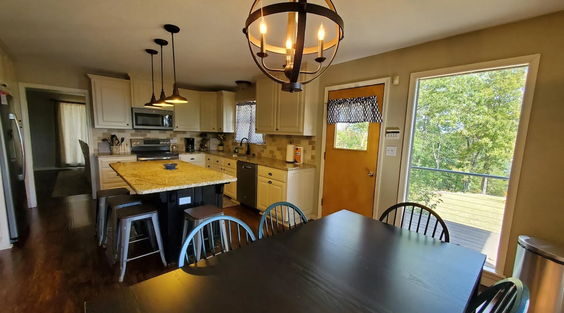4+ BEDROOMS, 3 BATHS; Very Private Lakefront and Lakeview home located on 8+ peaceful acres. AMAZING LAKE VIEWS!! Located on the end of the Ventris Road peninsula with 180 degree views of the main channel of Beaver Lake. The space Plenty of space to spread out in the three levels of this home. The Main Level has a good size Living Room AND Family Room, Huge Dining Room, AND Eat-in Kitchen. Upstairs are 3 bedrooms and 2 full baths. Downstairs, there is another bedroom with 1 Queen Bed, and game room with 3 sets of twin bunk beds. For additional sleeping space, there are 3 additional air beds. Wonderful deck off the back allows you to enjoy all of the lake views and wildlife sightings. A 5-minute walk down the hill, or a short drive (4 WHEEL DRIVE ONLY) on the private road to the lakefront! Located minutes from Lost Bridge North Marina. Boat Launches are available at Lost Bridge North Park, Lost Bridge South Park, Off Black Oak Drive in Lost Bridge Village or at the Ventris Boat Launch. There are walking trails at Lost Bridge North Park at 12485 Marina Road in Garfield. Home is located about 30 minutes from (half-way between) Rogers and Eureka Springs. Both places offer an exceptional experience of great food options, entertainment, and shopping. Please note this home does not have Wi-Fi. Also, some cell phone service providers do not have cell towers around areas of Beaver Lake. Managed for the Homeowners by Beaver Lake Vacation Rentals, LLC., Garfield, AR. Other things to note Your rental comes with up to $1500 of damage insurance protection: Waivo™ Security Deposit Waiver If You have purchased a Waivo™ Security Deposit Waiver, then the following terms and conditions are now part of Your vacation rental property lease agreement. I. AGREEMENT A. On behalf of Beaver Lake Vacation Rentals, LLC, the party authorized to rent the vacation rental property and the owner of the vacation rental property, Waivo has assumed the responsibility for damages as outlined below and waives Your security deposit up to $1,500, the waiver limit purchased by You, the renter, for your stay at the vacation rental property. B. Waivo is hereby responsible for theft or damage to real or personal property of the vacation rental property as a result of Your acts or omissions. Waivo will pay the lesser of the cost of repairs or the cost to replace the property up to $1,500. This waiver does not negate your responsibilities as a renter for items outside of Waivo’s responsibilities. C. This is not an agreement to provide insurance. You are buying a waiver of the security deposit otherwise due as part of Your vacation rental property lease agreement. II. EXCLUSIONS A. This Security Deposit Waiver will not pay for damages or theft resulting from: 1. Acts of god 2. Prior damage, or normal wear and tear 3. Theft without a valid police report 4. Loss of use of the vacation rental property 5. Rodent, termite, bed bug, infestation, animal, or pet damage 6. Damage to a motorized vehicle 7. Fine art or collectibles B. This Waiver will not pay for damage or theft of property owned by You. C. This Waiver will not pay for costs associated with odor, debris removal, mechanical breakdown. III. CONDITIONS A. Waivo has the sole authority to determine the nature and extent of damages, necessary repairs, and eligibility for the waiver, and shall exercise that authority in a reasonable manner. B. Waivo reserves the right to determine if damage is eligible for reimbursement at actual cash value. C. This Waiver will pay for excessive cleaning, as a direct result of damage, over and above the normal cleaning fee. A stain or spillage is considered damage. D. This Waiver is only effective for a one-time single continuous stay for which You purchased the Waiver. It takes effect when You occupy the vacation rental property and terminates when You depart the same vacation rental property. E. This Waiver is only effective if any theft or damage is reported to Waivo by You, the property manager, the online travel agent or the owner of the vacation rental property within 3 days of Your departure from the vacation rental property. F. Waivo will not respond to damage or theft under $50 US dollars. G. If there is a dispute related to these terms, mediation is required before any party may file litigation. In the event of litigation, all parties waive the right to a jury trial. IV. DEFINITIONS You, or Your, is the renter of the vacation rental property and includes the renter’s spouse, children and any other person the renter invited on to the vacation rental property during your stay at the vacation rental property.