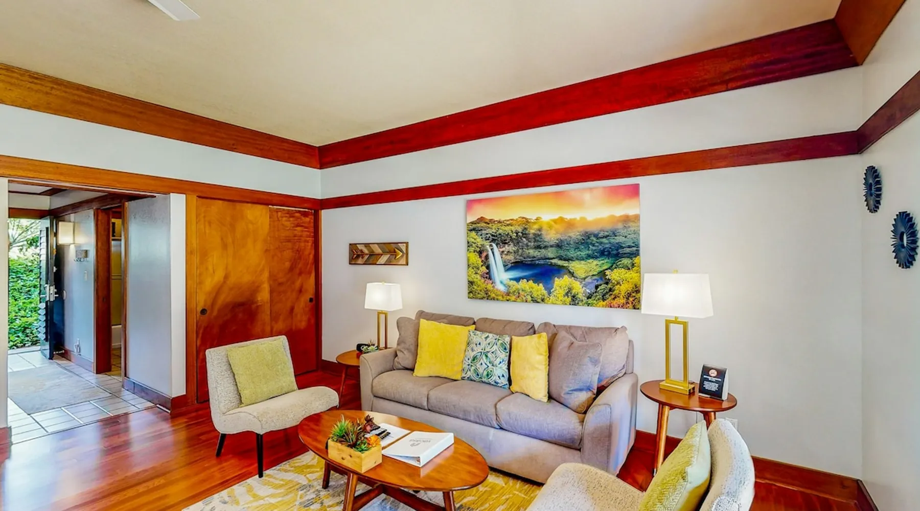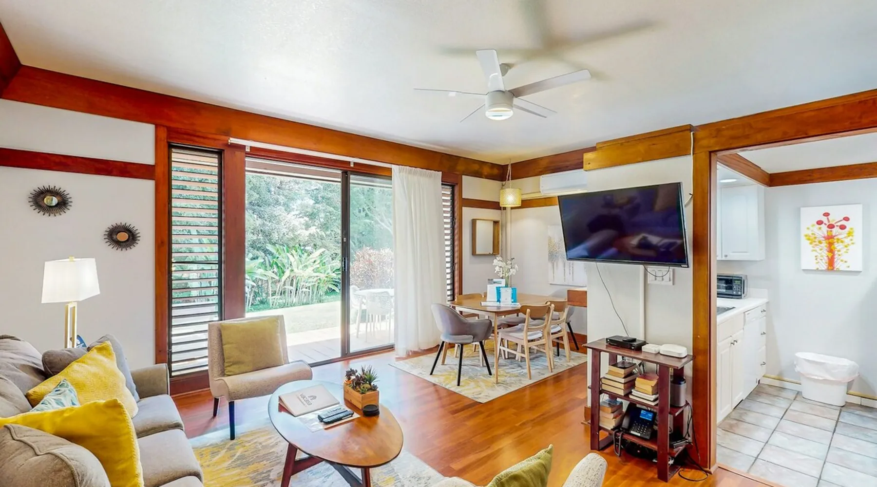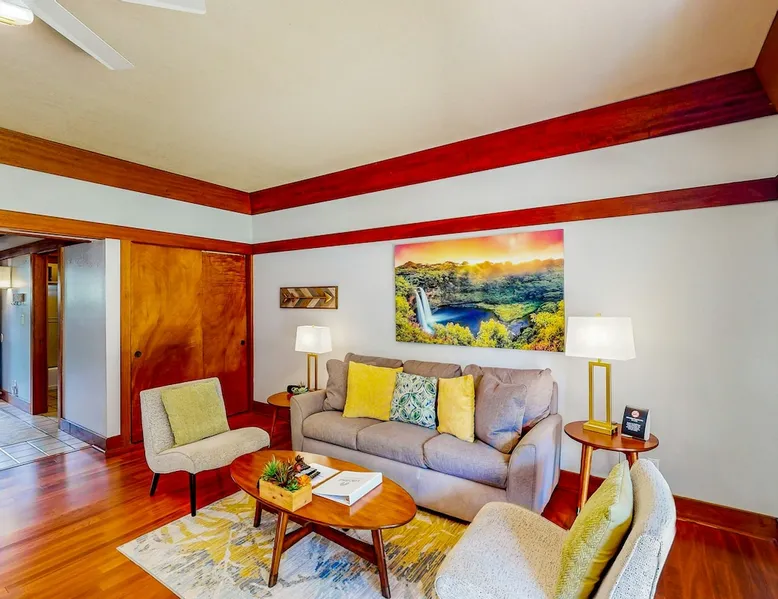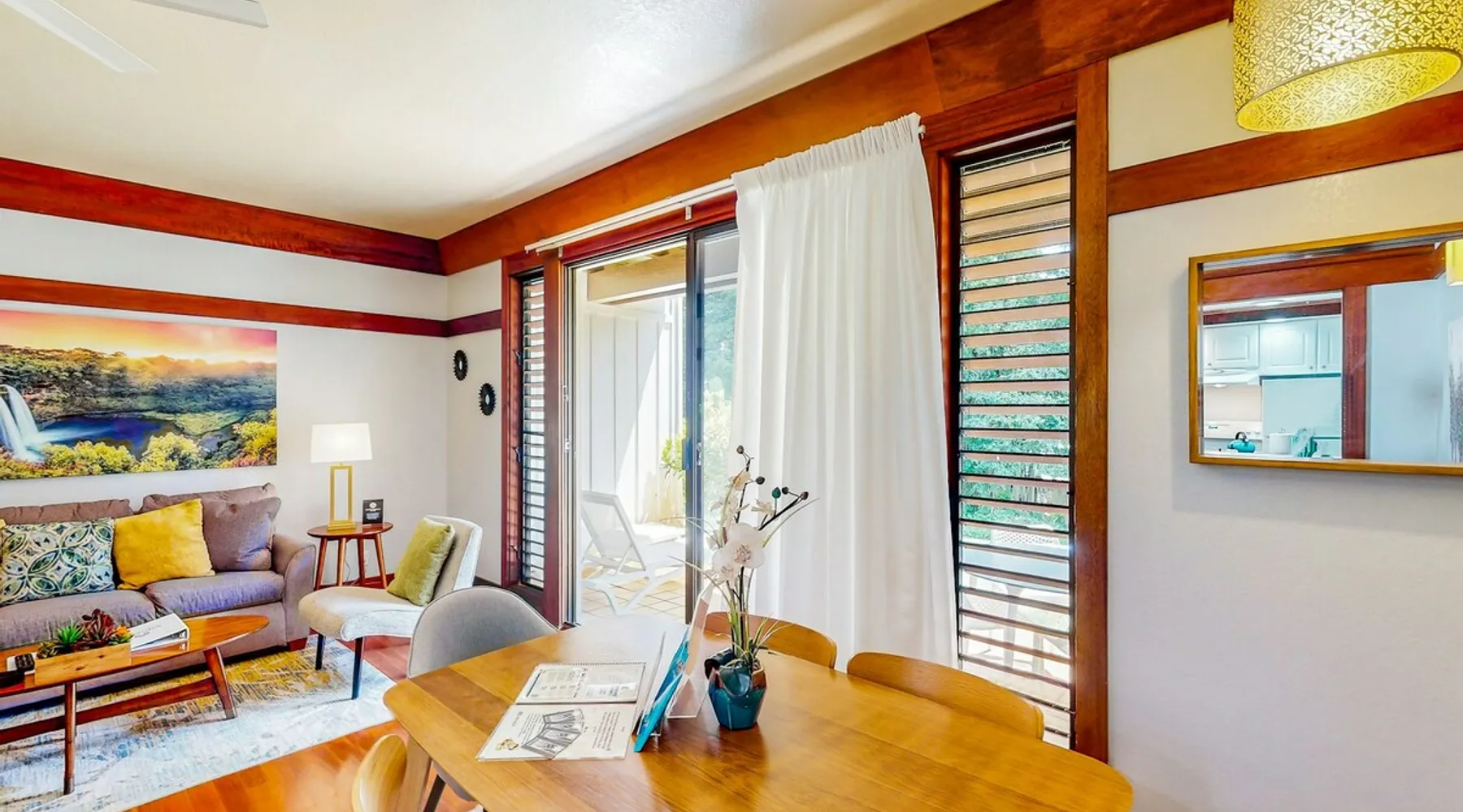 The space Kiahuna Plantation 420 -BLDG 41 Nestled on 35 acres of lush lawns and tropical gardens, this charming, garden-view retreat in Kiahuna Plantation puts you in the center of it all - just a few minutes' walk from Poipu Shopping Village, the Poipu Beach Athletic Club, and world-renowned Poipu Beach. Very few properties have such a rich history that dates back to Hawaii’s sugar plantation days and front an award-winning beach in Kauai. When it’s time for relaxation, head into the cozy living room where you'll find tasteful furniture. After riding the waves outside, it’s time to do another type of surfing - flipping through the cable TV channels or cuddling up for a movie night in bed. Or, stream your shows to your device using the free WiFi. A plush bed and a full bathroom make this one-bedroom, ground-floor condo a great romantic getaway for two. However, if you're traveling with others, a sofa bed in the living room comfortably sleeps two more. Bluetooth stereos and smart TVs offer the latest in entertainment, and electronic charging stations mean you'll never have to fight over outlets. You'll love having access to the Poipu Beach Athletic Club's pool, hot tub, fitness center, and tennis courts. With a beach activity center, picnic areas, grills, live Tahitian dance shows, botanical gardens, and Kauai’s most popular beach all just a short walk from your rental, it’s no wonder Kiahuna Plantation was named one of the top five hotels in 2014 by Conde Nast. Start your day off with a latte from local favorite Little Fish Coffee, then pop into a few boutiques at Poipu Shopping Village. From there, the world is your oyster. Stroll through famous Moir Gardens, home to rare orchids and cacti, or grab a towel and some sunscreen and make the short walk down to award-winning Poipu Beach for paddleboarding, swimming, and sunbathing. Depending on the season, you may even spot some breaching whales! Things to Know Your reservation includes free membership to the exclusive (members only) Poipu Beach Athletic Club. Club membership provides you with access to one of the island's only fitness centers with a cardio room and weight pavilion; use of the resort pool, waterslide, hot tub, and sand-bottomed kiddie section; tennis, pickleball, and basketball courts; shuffleboard; yoga and water aerobics classes; and more! Check-in time: 4:00 p.m. Check-out time: 10:00 a.m. All guests shall abide by Vacasa’s good neighbor policy and shall not engage in illegal activity. Quiet hours are from 10:00 p.m. to 8:00 a.m. No smoking is permitted anywhere on the premises. This property is managed by Vacasa Vacation Rentals of Hawaii, LLC. No dog(s) are welcome in this home. No other animals are allowed without specific Vacasa approval. Parking notes: There is free parking available for 1 vehicle. Air conditioning is only available in certain parts of the home. Damage waiver: The total cost of your reservation for this Property includes a damage waiver fee which covers you for up to $3,000 of accidental damage to the Property or its contents (such as furniture, fixtures, and appliances) as long as you report the incident to the host prior to checking out. More information can be found from the "Additional rules" on the checkout page. Due to local laws or HOA requirements, guests must be at least 21 years of age to book. Guests under 21 must be accompanied by a parent or legal guardian for the duration of the reservation. Registration Details 280170100020, TA-079-732-8384-01