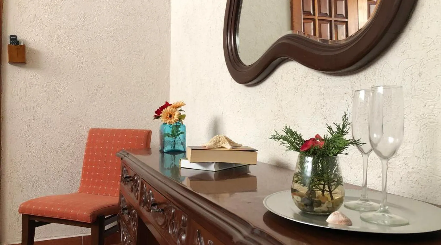 Beachfront Location: Casa de la Aduana Hotel Boutique in Topolobampo offers a private beach area and direct beachfront access. Guests can relax by the swimming pool with stunning views or unwind on the sun terrace. The property features a lush garden and an open-air bath for added leisure. Comfortable Accommodations: Rooms include air-conditioning, private bathrooms, and sea views. Additional amenities consist of balconies, terraces, and sofa beds. Free on-site private parking is available, along with family rooms and pet-friendly policies. Dining Experience: The family-friendly restaurant serves American and local cuisines with vegetarian and dairy-free options. Breakfast includes continental, American, and à la carte selections, featuring fresh fruits. Guests can also enjoy the coffee shop and outdoor seating areas. Convenient Services: Private check-in and check-out, a fitness room, and concierge service enhance the stay. Additional facilities include a minimarket, indoor play area, and bicycle parking. Federal del Valle del Fuerte International Airport is 7.5 mi away. Highly rated by guests. Guests will have a special experience as this double room provides a pool with a view. The spacious double room offers air conditioning, a private entrance, a terrace with sea views as well as a private bathroom featuring a shower. The unit offers 2 beds.