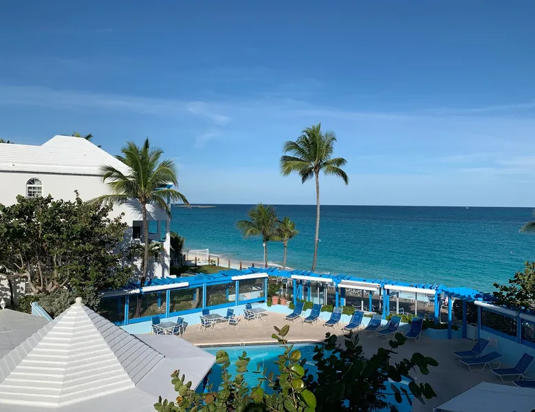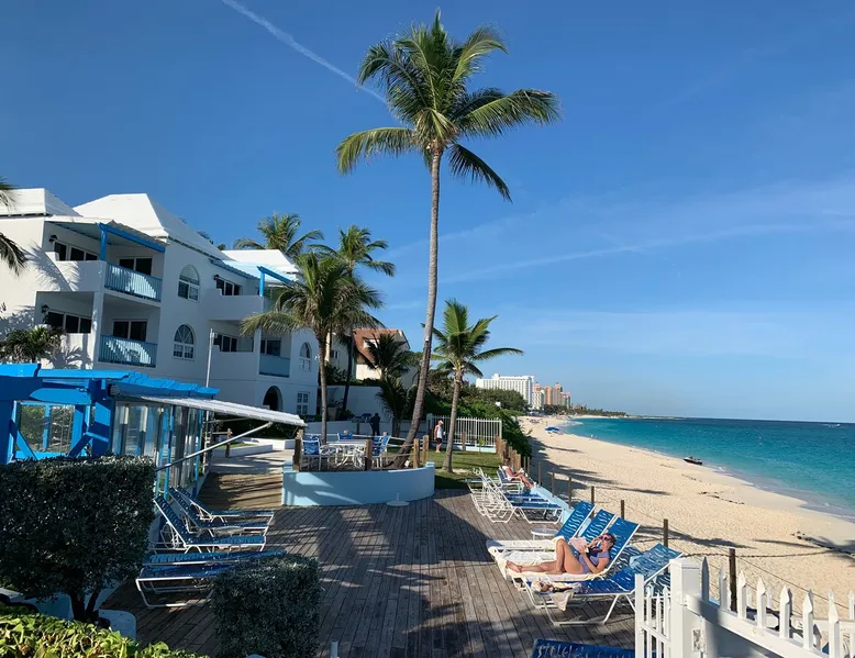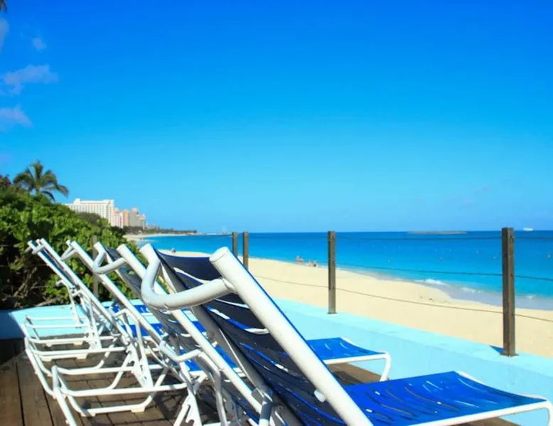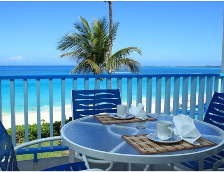 Paradise Island Beach Club: Prime beachfront 2-Bedroom Villa, Sleeps 6, Full Kitchen. First row villa over the beach, upper floor with 180 degrees prime ocean view. The space Paradise Island Beach Club Villas are surrounded by lush swaying palms and tropical foliage, offering a choice of Garden or Ocean view, both on ground or second floor levels. Villa offers 980 square feet of relaxing and comfortable island inspired decorated living space accommodating up to six persons. Spacious living room opens out onto private terrace or balcony allowing guests to delight in all the senses of Paradise. Villa offers a Master Bedroom Suite and a Guest suite, both complete with 5 piece private en-suite bath, with “his and hers” wash basins and bathtub with shower head. Like to cook? Our Villa offers all the comforts of home with a fully equipped kitchen including cookware, refrigerator, full range, microwave, dishwasher, dining area and formal living room. Villa is air conditioned and has ceiling fans throughout. Amenities Cable TV & Wi-Fi Coffee-Maker & Toaster Direct Dial Telephone (Charges may apply) Iron & Ironing BoardHair Dryer Room Service Daily Maid Service Table and chairs on terrace/balcony No charge for children No pets allowed Non-smoking Parking Guest access Paradise Island Beach Club boasts one of the best locations in the Caribbean, perched on world renowned Cabbage Beach in Paradise Island, Bahamas, just mere minutes down the beach from Atlantis Resort & Casino. Sit back and feel the stresses melt away on your exclusive beach vacation. The resort's beach attendants are on duty to ensure you have the most relaxing time while you bask in the sun, sand and sea with concierge style beach setup including chaise lounges, umbrellas and service from our pool deck restaurant. If you don’t like the sand but crave the stunning view, lay and relax on our elevated sun-deck over-looking pristine Cabbage Beach. Pools Hydrate in our two heated swimming pools. Our smaller pool is surrounded by tropical lush gardens with a deck and chaise lounges. Our larger pool overlooks the ocean complete with Reef Bar & Grill swim up bar, a vast deck filled with comfortable chaise lounges, restaurant and bar service. Private Gym Stay active while enjoying your Paradise island getaway and keep fit with your regular work out program in the hotel's well-equipped gym, complete with cardio and weight machines, free-weights and televisions. Deli, General Store & Gift Shop Paradise Island Beach Club is one of the very few resorts in all of the Bahamas that has an on-site Deli and General store, offering a large variety of grocery and personal items, liquor and wine to make you feel like your Villa in Paradise is just like home. Other Resort Amenities To ensure your private island getaway feels like home, Paradise Island Beach Club offers an array of extra amenities: Wi-Fi throughout the property; Laundry Facilities; Complimentary Bicycles; Barbecue Grills; Chaise Lounges and Umbrellas; Secluded Sun Deck surrounded by tropical lush landscaping. Other things to note Reviews available at my other (single unit) PIBC listings, - a few listings are in place, because I usually have more than one unit available... All owners inventory is Saturday changeover only, all reservations are or within Saturday to Saturday, - no reservations over Saturday nights offered, sorry. Mandatory Fees/Deposit: Utility surcharge is 140.00 U.S. dollars. Cash or Credit is accepted. Per unit; Per week, extra, paid at check in.