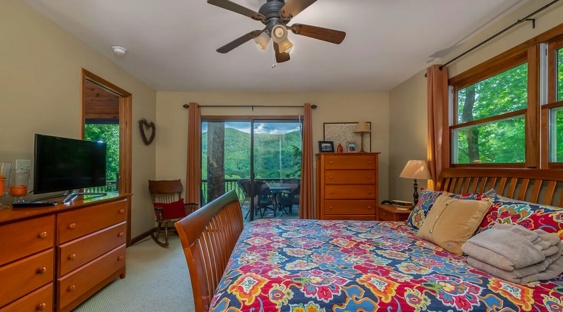Get away from it all...... You will feel right at home as you walk into Tiger Pause. You will feel like you’ve settled into a cozy mountain treehouse. Guests are drawn to the enchanting views visible throughout. Grab a glass of wine and step out onto the large deck to fully soak in the natural setting. Unplug from it all & RELAX! The space Exclusive Yonder Special: When you book Tiger Pause you will receive a special code for discounted tickets to the Biltmore Estate! Contact Yonder for more info. Location: Formally known as "Windsong Wonder," but now "Tiger Pause" for Clemson; this private & secluded home located in lovely Saluda. Located less than 25 minutes from the Tryon International Equestrian Center. You are app. 45 minutes to Asheville Regional airport, and 20 minutes to downtown Tryon. Downtown Asheville is app. 45 minutes away. You are also within driving distance of Greenville, Asheville, and Charlotte. Accommodations: 3 bedroom, 2 full baths Occupancy Summary / Sleeps in beds: 9 Max. Occupancy: 10 (PLEASE NOTE: We provide linens for all beds; other occupancy will require guests providing their own linens.) Description: You will feel right at home as you walk into Tiger Pause. On the deck you will find chairs for lounging, a table for outdoor dining during the cool Saluda evenings, with a chiminea to add to the ambiance. After dinner, stroll over to the campfire circle and catch up with friends around the fire. Back inside, you’ll find a very nicely equipped cabin with 3 bedrooms all on the main level. A comfortable Living Room provides wonderful views, flat screen TV with satellite, and fireplace. Over into the kitchen you’ll find a large, eat-in island, refrigerator, oven/range and all the small appliances, pots/pans, utensils, etc to make cooking any meal a breeze. Situated between the living room/kitchen and the deck is a delightful sunroom. You’ll feel as if you are outdoors as you play cards or dine at the large farm table. Open the sliding glass doors and the cabin becomes one with it’s natural surroundings. Wake up in the master suite to beautiful mountain views. Master has a private bath and gas heater. Some other notable items: Board games, Children’s Nook with art supplies, Music Dock/Speaker, Washer/Dryer. Windsong Wonder is located just outside of Saluda in a private community of mountain homes. 10 minutes to Saluda, 10 minutes to Lake Adger, 8 minutes to I-26, 20 minutes to Hendersonville, 40 minutes to Asheville, & 25 minutes to Tryon International Equestrian Center. Of course you are in horse country, and the TIEC. The Tryon International Equestrian Center is a year round venue located in Mill Spring, NC and is the world’s premier Equestrian Lifestyle Destination showcasing some of the top riders in the Hunter/Jumper, Dressage, and Eventing disciplines. This property is also just a short drive from the quaint villages of both Saluda & Tryon. Enjoy all sorts of new restaurants, shops, and a growing small-town America downtown vibe, with festivals and other activities year-round. You are less than an hour from America's favorite scenic byway, The Blue Ridge Parkway, motorcycle touring, biking, hiking, white water rafting, rock climbing, kayaking, canoeing, zip lining, Segway tour…just about any outdoor activity! Or, take a day-trip to downtown Asheville to enjoy the first-rate restaurants, shopping, galleries, spas, and entertainment. Bedroom/Bath Layout: 3 bedrooms, 2 full baths Bedroom #1 - Main Level Master Bedroom Suite - Queen Bed w/ensuite Full Bath (#1) Bedroom #2 -Main Level Guest Room - Full Bed and Bunk Beds w/Hall Full Bath (#2) Bedroom #3 - -Main Level Guest Room - Twin Bed and Bunk Beds w/Hall Full Bath (#2) Occupancy Summary / Sleeps in beds: 9 Max. Occupancy: 9 (PLEASE NOTE: We provide linens for all beds; other occupancy will require guests providing their own linens.) We look forward to possibly booking your stay, should these accommodations work for you. We can reserve your stay with a credit card and send out a rental agreement to firm everything up when you are ready...but don't delay too long. Important Rate Info And Fees: We openly share our Cleaning Fees in a manner of full disclosure, as we think this is the most honest and forthright approach with respect to our guests. Our Cleaning Fees are backed by our Clean Guarantee, which reflects the highest level of standards, pristine environments for our guests, and a level of clean that surpasses any other vacation homes; we literally guarantee it! Early Check In and/or Late Check Out may be possible, depending on cleaning schedules and other reservations. If it is possible, there may be an additional fee that would be determined based on the time that you wish to check in or out and the seasonal rates. Pets: This home and property are very dog friendly, and guests are welcome to bring their "best friends" with them. There is a non-refundable Pet Fee of $130 with a limit of 2 dogs per booking party. *If additional pets are approved, additional charges will apply (This is NOT automatically added by VRBO, TripAdvisor or Airbnb, so please let us know so that we can add the fee for you) Note: the home does not have internet or WiFi available. Please inquire for details regarding payment, the cancellation policy, military discounts, and trip insurance. Note: Reservations over 30 days are subject for review prior to acceptance. A separate rental agreement will be required for 90+ day stays. Last Minute Bookings: Reservations made within 7 days of check-in require additional documentation before confirmation.