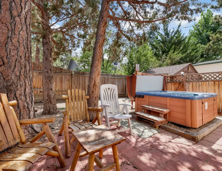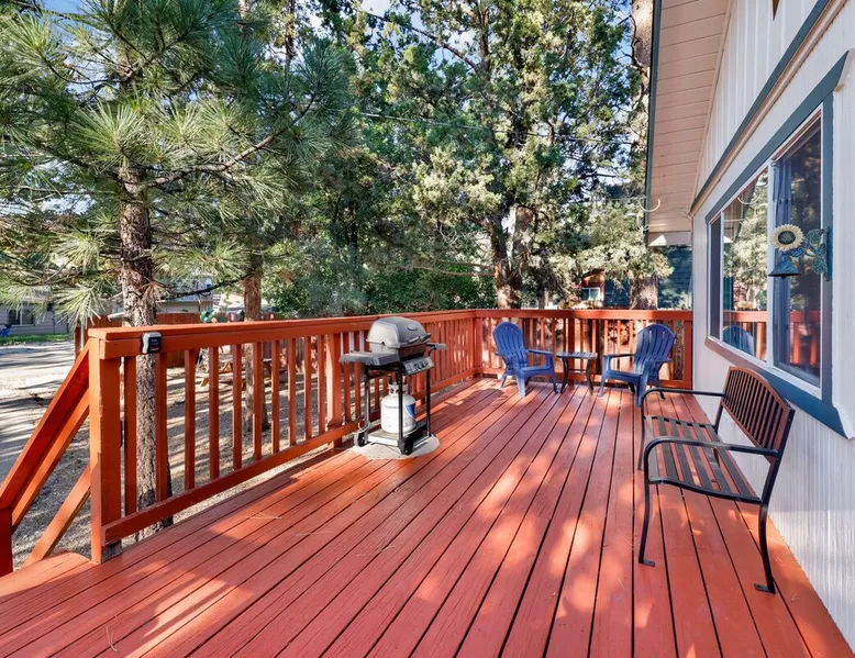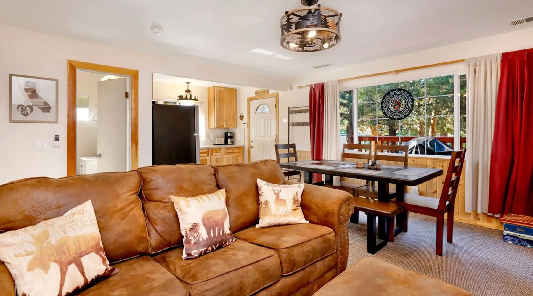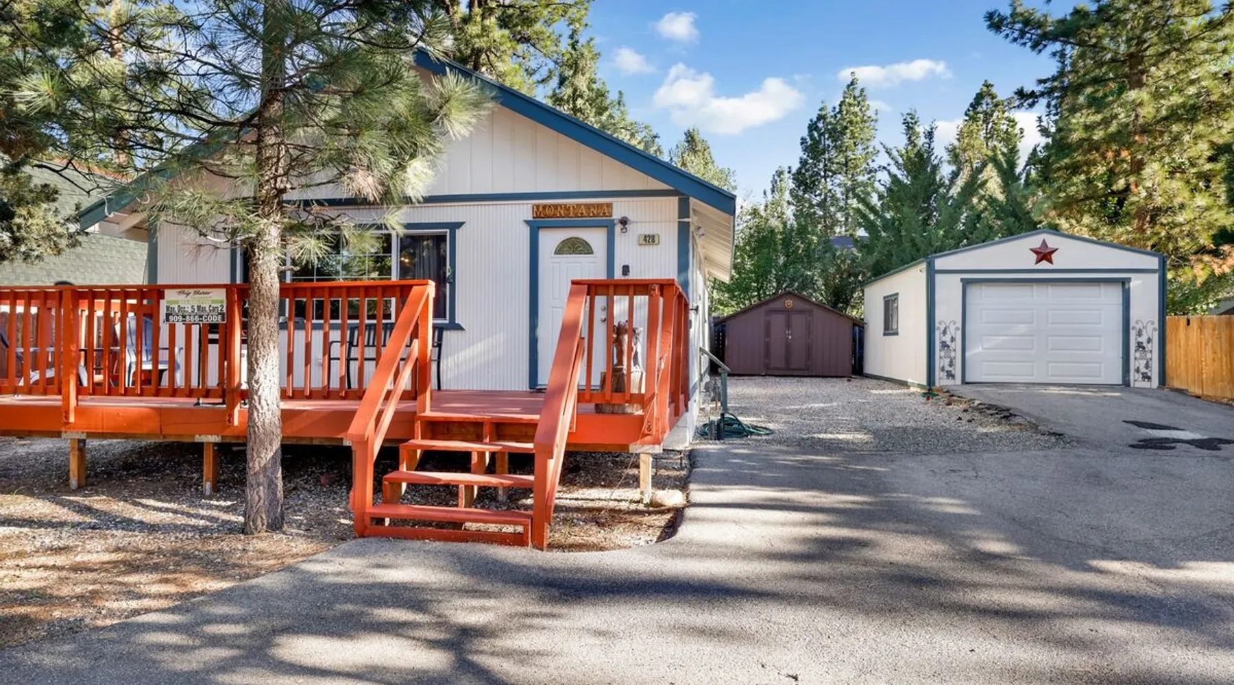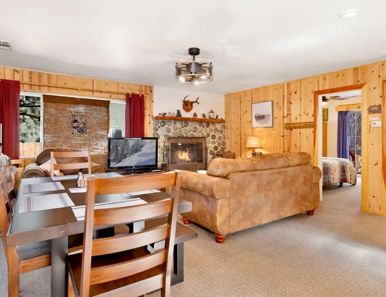 Montana Cabin brings together tranquility and relaxation providing the perfect atmosphere to spend your next Big Bear getaway! Our adorable single level home is conveniently located in a quiet tree lined Bear City neighborhood, you will have the local's favorite Community Market just a few blocks away. A five minute drive will take you to Oktoberfest, ski resorts, the Village shops, and dining! The space Montana Cabin | Relaxing Retreat Montana Cabin brings together tranquility and relaxation providing the perfect atmosphere to spend your next Big Bear getaway! Our adorable single level home is conveniently located in a quiet tree lined Bear City neighborhood, you will have the local's favorite Community Market just a few blocks away. A five minute drive will take you to Oktoberfest, ski resorts, the Village shops, and dining! Perfect for a small family or group of friends, our cabin is newly remodeled and furnished from head to toe with your vacation stay in mind, boasting essentials and modern added amenities on a private fenced property, even pets are welcome here at Montana Cabin!! Entering your cabin you are greeted with a cozy living room that offers all that you to enjoy some quality time together playing board games, or snuggling up on comfy couch in front of the toasty wood burning fireplace, a great place to pop on a movie on the hi-def Streaming TV with provided hi speed WIFI internet for your enjoyment. Utilize the fully upgraded and well equipped kitchen to prepare your home cooked meals, with brand new appliances, cookware, and utensils available for your use you will love whipping up meals together here! Being a single level cabin you will have quick and easy access to your full bathroom and both bedrooms, all are made up with linens and fresh towels while a convenient sliding glass door from the first room offers you direct back yard and patio access. Venture outside where your group can enjoy red wood sun decks and a serene fenced backyard, complete with outdoor patio furnishings and privacy fencing. You will love spending your evenings unwinding here or sipping your first cup of coffee in the morning before heading out to the trails. Montana Cabin has everything you are looking for in your next home away from home- pairing a prime relaxing location with needed essentials and bonus amenities you will absolutely love your stay here! Book today! Sleeping Arrangements: Bedroom 1: Queen Bed- Direct Patio Bedroom 2: Twin/Full Bunk Set Living Room: Full Sleeper Sofa Bathroom Arrangements: Hallway Full Bath -Sleeps 6 -2 Cars Driveway Parking -2 Pets Welcome w/ Additional Fee -720 Total Square Feet Registration Details CESTRP-2020-01235