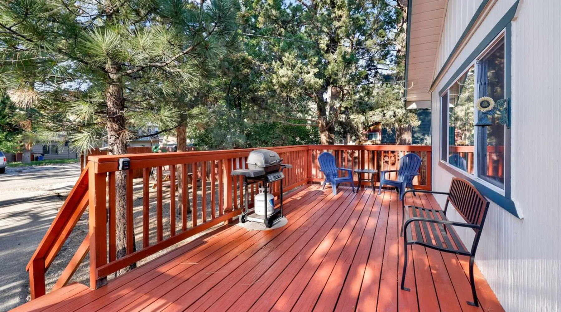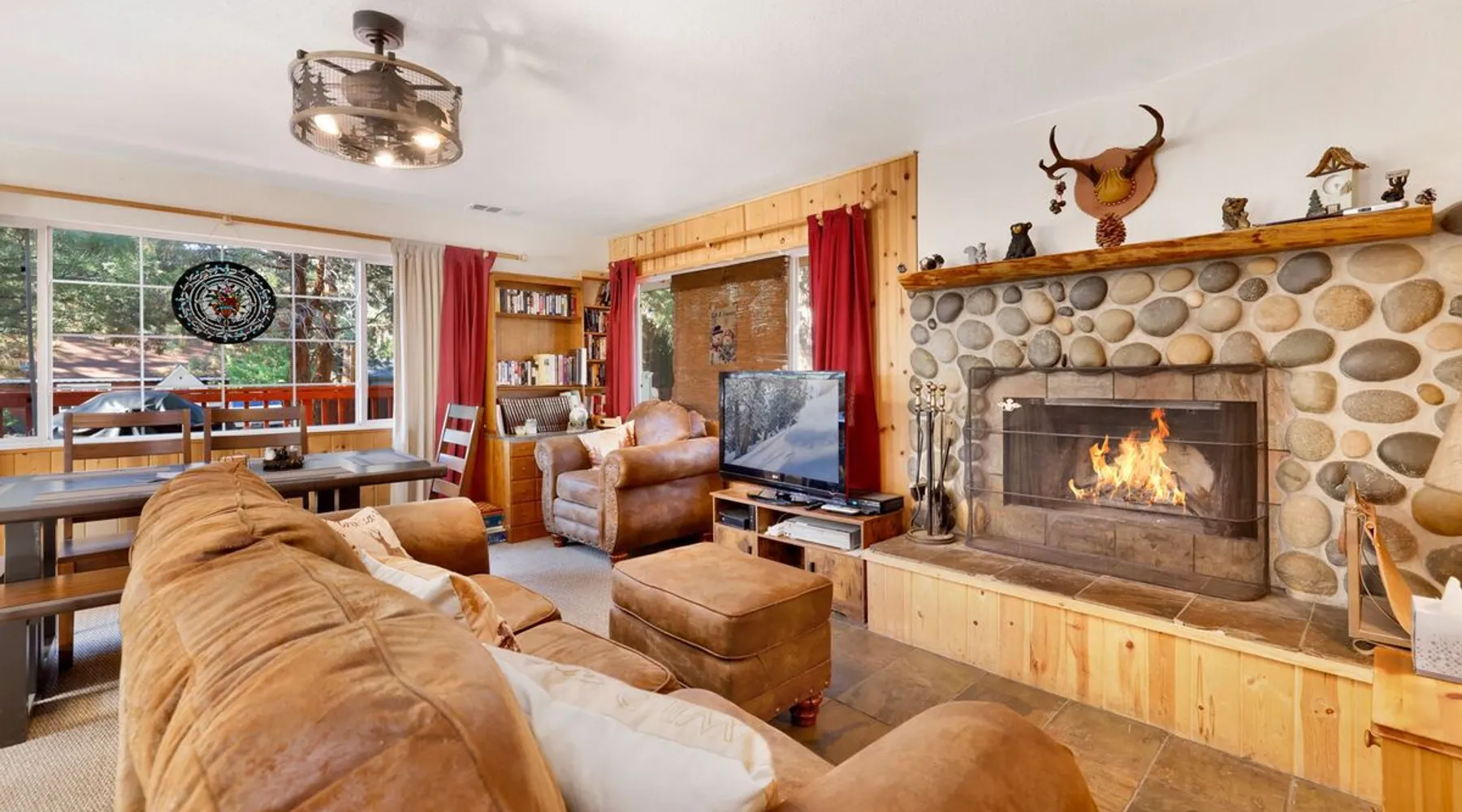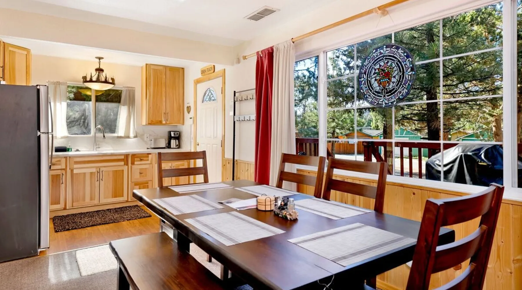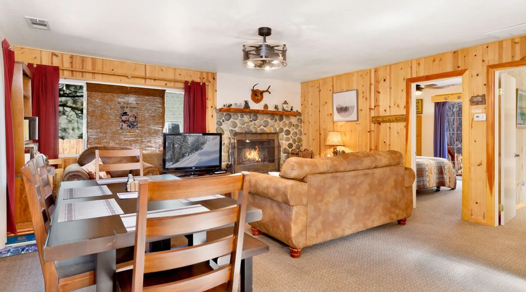Montana Cabin brings together tranquility and relaxation providing the perfect atmosphere to spend your next Big Bear getaway! Our adorable single level home is conveniently located in a quiet tree lined Bear City neighborhood, you will have the local's favorite Community Market just a few blocks away. A five minute drive will take you to Oktoberfest, ski resorts, the Village shops, and dining! The space Montana Cabin | Relaxing Retreat Montana Cabin brings together tranquility and relaxation providing the perfect atmosphere to spend your next Big Bear getaway! Our adorable single level home is conveniently located in a quiet tree lined Bear City neighborhood, you will have the local's favorite Community Market just a few blocks away. A five minute drive will take you to Oktoberfest, ski resorts, the Village shops, and dining! Perfect for a small family or group of friends, our cabin is newly remodeled and furnished from head to toe with your vacation stay in mind, boasting essentials and modern added amenities on a private fenced property, even pets are welcome here at Montana Cabin!! Entering your cabin you are greeted with a cozy living room that offers all that you to enjoy some quality time together playing board games, or snuggling up on comfy couch in front of the toasty wood burning fireplace, a great place to pop on a movie on the hi-def Streaming TV with provided hi speed WIFI internet for your enjoyment. Utilize the fully upgraded and well equipped kitchen to prepare your home cooked meals, with brand new appliances, cookware, and utensils available for your use you will love whipping up meals together here! Being a single level cabin you will have quick and easy access to your full bathroom and both bedrooms, all are made up with linens and fresh towels while a convenient sliding glass door from the first room offers you direct back yard and patio access. Venture outside where your group can enjoy red wood sun decks and a serene fenced backyard, complete with outdoor patio furnishings and privacy fencing. You will love spending your evenings unwinding here or sipping your first cup of coffee in the morning before heading out to the trails. Montana Cabin has everything you are looking for in your next home away from home- pairing a prime relaxing location with needed essentials and bonus amenities you will absolutely love your stay here! Book today! Sleeping Arrangements: Bedroom 1: Queen Bed- Direct Patio Bedroom 2: Twin/Full Bunk Set Living Room: Full Sleeper Sofa Bathroom Arrangements: Hallway Full Bath -Sleeps 6 -2 Cars Driveway Parking -2 Pets Welcome w/ Additional Fee -720 Total Square Feet Registration Details CESTRP-2020-01235