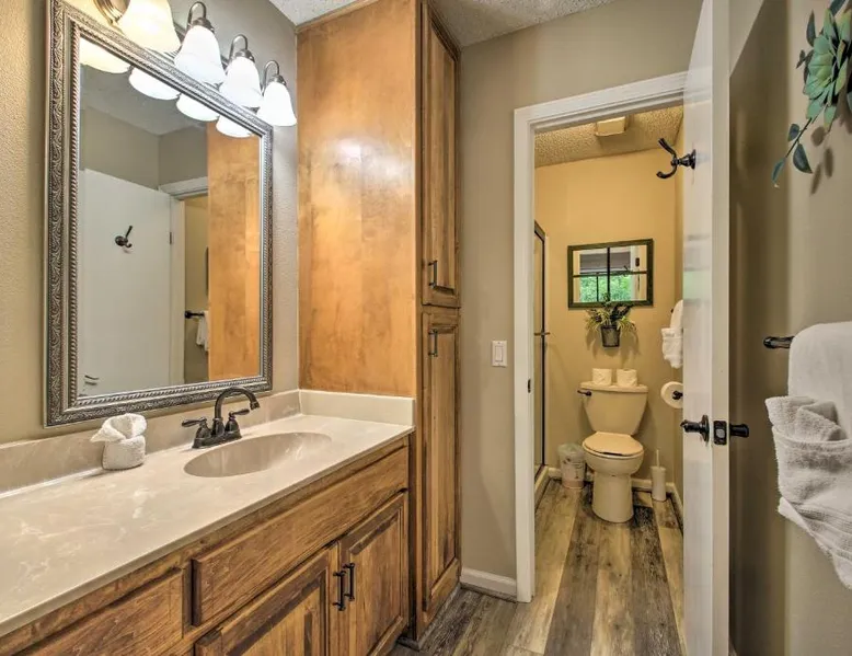 Comfortable Accommodations: Furnished Deck and Grill Hot Springs House in Hot Springs Village offers two bedrooms and two bathrooms. The living room features a sofa and TV, ensuring a relaxing stay. Leisure Facilities: Guests can enjoy a spa and wellness center, indoor and outdoor swimming pools, and a hot tub. The property also includes a games room for entertainment. Convenient Amenities: The holiday home provides free WiFi, air-conditioning, and a fully equipped kitchen with modern appliances. Additional amenities include a washing machine, dishwasher, and private entrance. Local Attractions: Located 24 mi from Hot Springs Memorial Field Airport, the property is near Ponce De Leon Golf Course (8.1 mi) and Magic Springs Crystal Falls (21 mi). Highly rated for its convenient location. Featuring a private entrance, this air-conditioned holiday home consists of 1 living room, 2 separate bedrooms and 2 bathrooms with a bath and a shower. In the well-equipped kitchen, guests will find a stovetop, a refrigerator, a dishwasher and kitchenware. The holiday home provides a washing machine, a coffee machine, a wardrobe, tumble dryer, as well as a flat-screen TV with cable channels. The unit offers 3 beds.