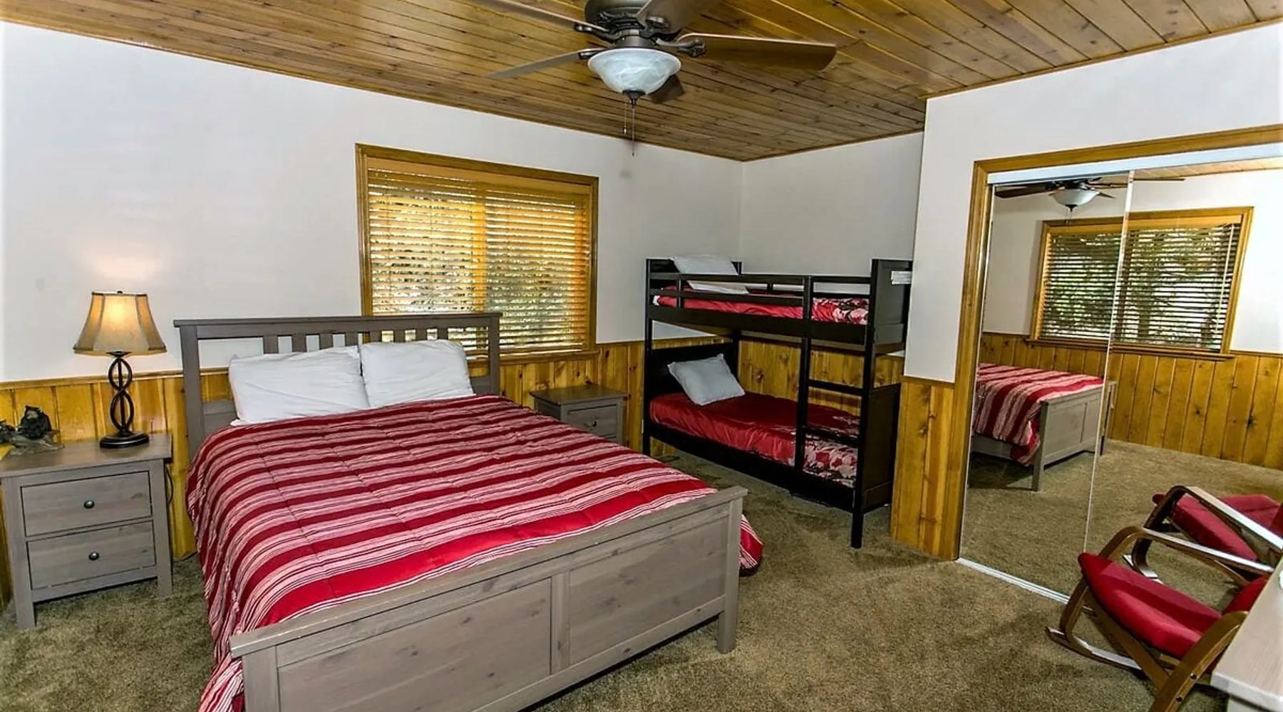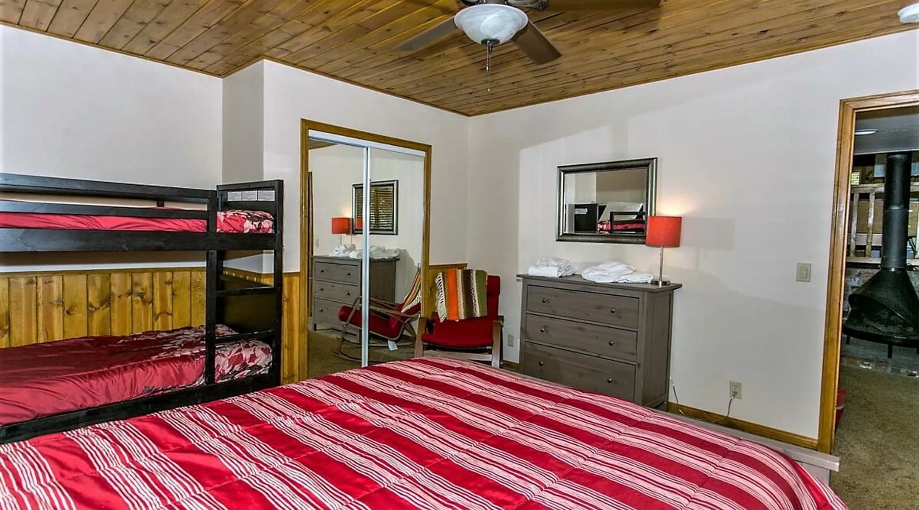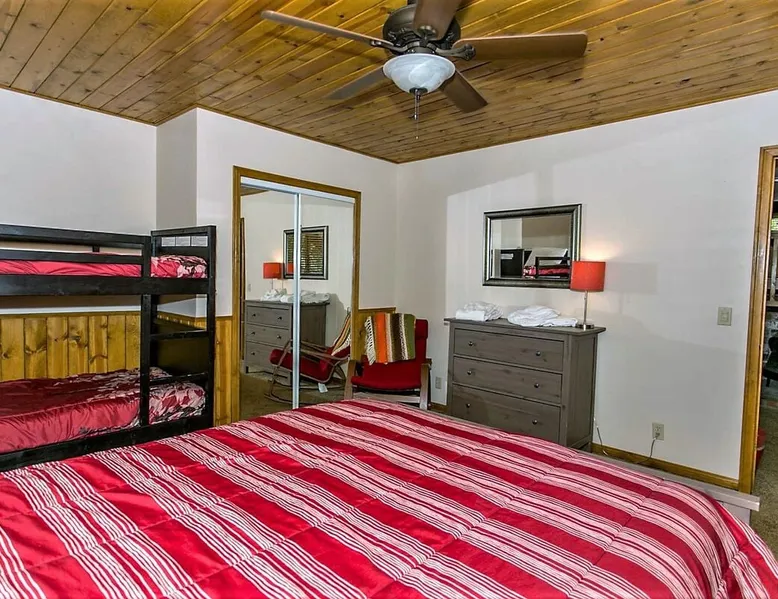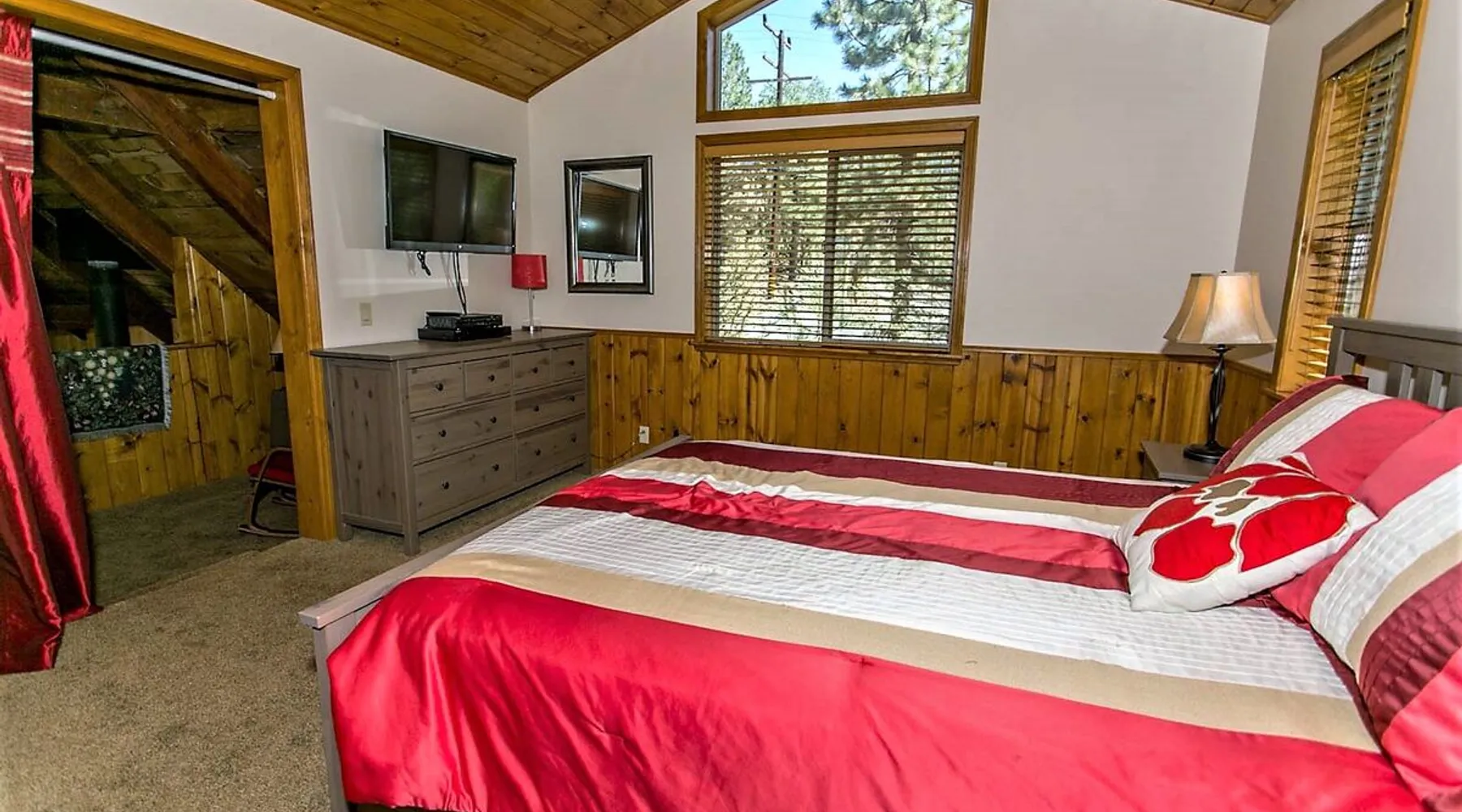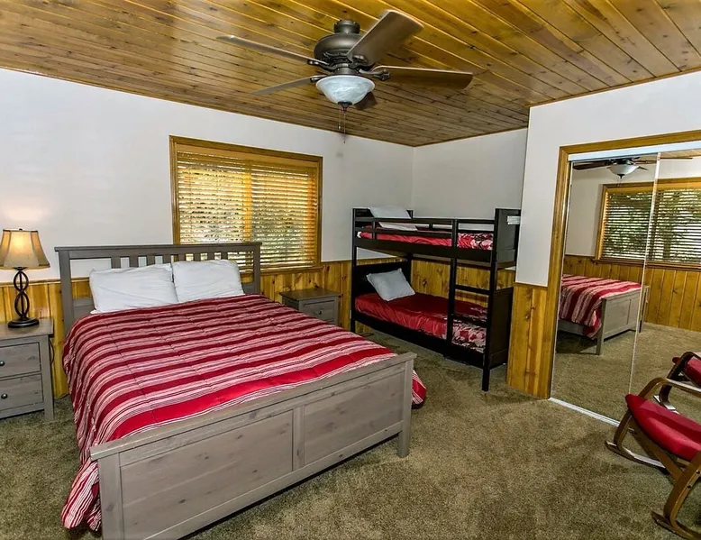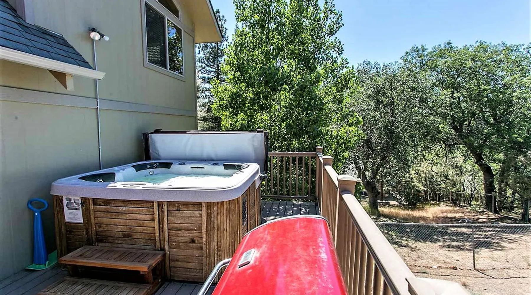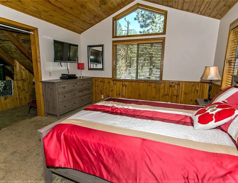 Grandpa's Axe is a cozy furnished two story downtown chalet that is the perfect destination for a group of friends or family vacation to the mountains any time of the year. Charming mountain décor and essentials pair with added amenities to enhance your relaxation and vacation experience here. Stroll the quiet neighborhood down to the Village or lake or hop in the car and you are within minutes of all local Big Bear activities- the possibilities are endless from this central chalet home! The space Grandpa's Axe Central Village Retreat w/ Hot Tub Perfect for a small family or group of friends looking to experience a relaxing mountain vacation near the downtown Village area, our unique and rustic cabin will have you snuggling in to enjoy your getaway to the alpine! You will have all that you need here at Grandpa's Axe to dine in together or take a short stroll down to the Village area for shopping, dining, and entertainment. Hop in the car and you are under ten minutes to the grocery stores or ski resorts here in this ultra central location. Enjoy a soak in your own private hot tub under the stars on the great sun deck after your adventurous day out on the mountain! Enter your cozy home in the family room area where you are met with an authentic cabin feel, the woodsy interior wall accents pair with beamed cathedral ceilings in the kitchen areas that feel like your own mountain lodge for your visit! A comfy couch is sat perfectly in front of the toasty wood burning fireplace where you can cozy up no matter the season. Enjoy a movie night here on the flat screen TV with complimentary hi speed WIFI and Satellite Cable provided for your enjoyment. Your first guest bedroom and hallway bathroom are located here off of the living room as you enter for your convenience while the upstairs level above the kitchen offers your other sleeping quarters, all of your bedrooms and the bathroom are made up for your group's visit with warm linens, blankets, pillows, and fresh shower towels when you arrive. Step up from here to a middle level that offers the chef of your group the perfect space for dining and meal preparations during your visit. The oak cabinets are stocked with cookware and utensils for your use, ample counter space and general appliances are also available to ensure your home cooked meals here are a breeze! Enjoy the cute corner breakfast nook and dining table here while an added table and chairs sits on the loft landing up from here. You will love the open floor plan allowing for you to entertain or converse with the rest of the group while you are whipping up breakfast! Enjoy immediate access from the kitchen area to the expansive sun deck and fully fenced back yard area. You will absolutely love sitting out here and enjoying the views from the outdoor patio furnishings provided. Grill up dinner on the propane BBQ or enjoy a soak in your own private hot tub under the stars here after a fun day enjoying Big Bear! Enjoy ample flat year round parking for your vehicles and a private and secluded neighborhood location. Grandpa's Ace has it all- don't miss your chance to experience this awesome vacation home for your next trip! Sleeping Arrangements: Bedroom 1: Full Bed Plus Twin/Twin Bunk Bed- Entry Level Bedroom 2/ Loft- (No Door)- Queen Bed, TV w/ Cable- Upstairs 2nd Level Bathroom Arrangements: Hallway 3/4 Bath (Shower Only)- Entry Level -Sleeps 4 -2 Car Driveway Parking -NO PETS ALLOWED- Fines Imposed For Pets Found On Site -746 Total Square Feet City Permit #: VRR-2024-1036 Registration Details 2024-1036