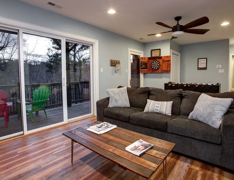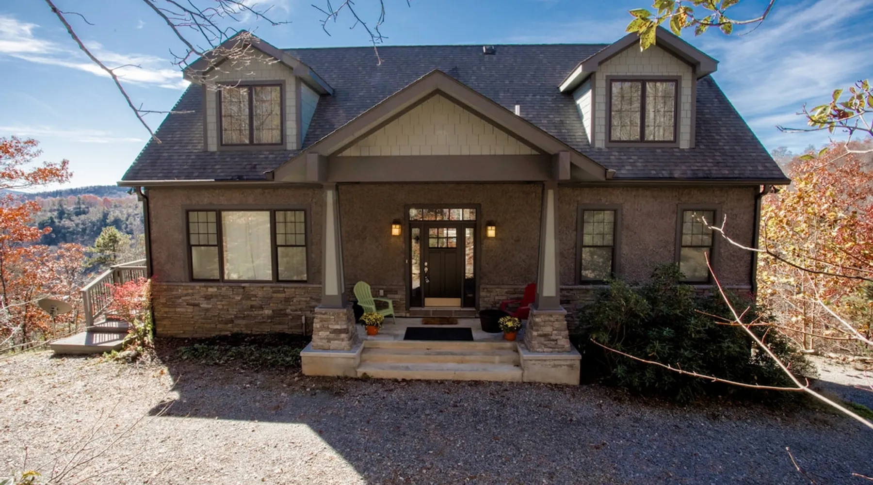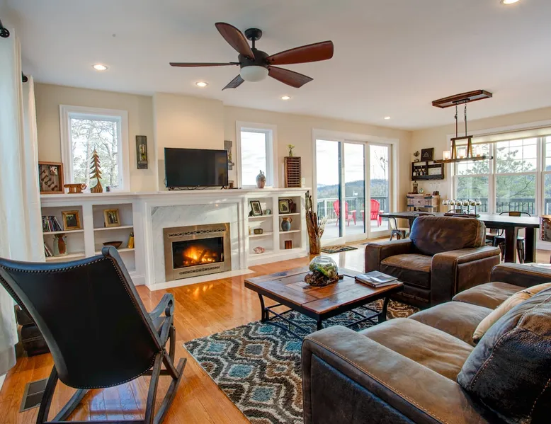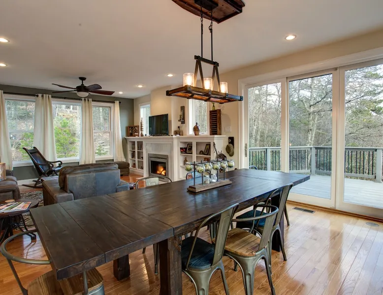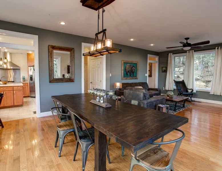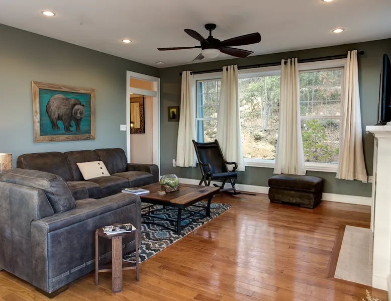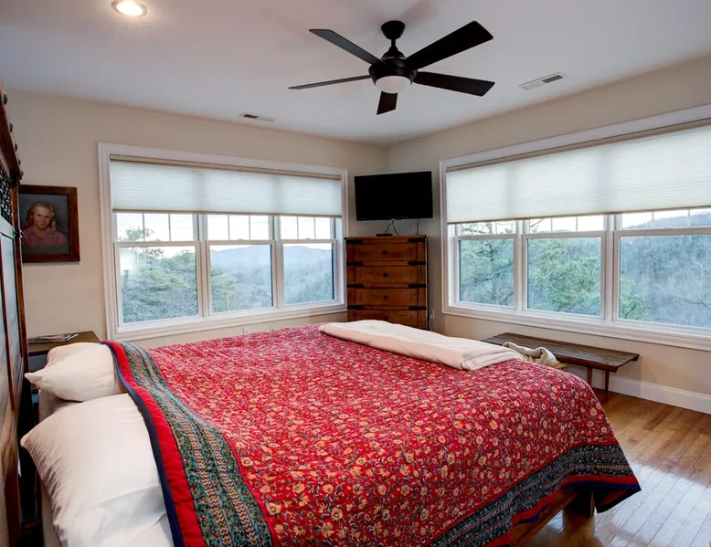 Burnt Ridge Retreat......your escape to the splendor of the Blue Ridge Mountains! Welcome to the peace & tranquility that comes from "elevation", calming and majestic views of over 50 miles, and the breathtaking awe of a true luxury vacation home; AND just 10 minutes from downtown Black Mountain. The space Location: Private home located in the exclusive, upscale and private mountain community, High Rock Acres, which is conveniently perched on its own mountainside, just outside of Black Mountain. You are under 10 minutes to downtown Black Mountain, and under 30 minutes to downtown Asheville. You are also app. 45 minutes from the Asheville Regional Airport. Home is accessed via only paved and fully maintained roads, right up to the development. The roads in the development are gravel, and normally accessible with any vehicles; however, certain whether conditions may dictate All-Wheel or 4-Wheel drive access. The driveway is also a sloped, gravel drive and only 4WD vehicles allowed in the driveway. There is off street parking in front of the house for 3 non 4WD vehicles. Accommodations: (Sleeps 10-12) 5 bedroom, 3 full baths, Powder Rm. Occupancy Summary / Sleeps in beds: 10 Max. Occupancy: 12 (PLEASE NOTE: We provide linens for all beds; other occupancy will require guests providing their own linens.) Description: Burnt Ridge Retreat is located in the exclusive, upscale and private mountain community, High Rock Acres, which is conveniently perched on its own mountainside, just outside of Black Mountain. Come soak in all the Burnt Ridge Retreat has to offer its guests, including a recently built and newly updated home, modern amenities, fire-pit, close proximity to literally everything, and more. Sit on your back porch, relax and sip coffee as you take in the astounding views, along with being able to watch wildlife from your private deck and outdoor areas, while listening to the running creek down below. Come create your own memorable Asheville mountain experience! The home affords year round access, and is great for groups of any and all ages. The home is situated just outside of downtown Black Mountain, NC, affording privacy for everyone to relax & enjoy the feel of the WNC mountains. High Rock Acres is a private, exclusive community, whose residents are friendly and welcoming to guests, (if you even see them, since High Rock Acres has private, densely wooded lots that afford amazing privacy). Get ready to be “wowed” by the never-ending views from this contemporary mountain style retreat. With soaring vistas, high ceilings, vaulted rooms, and cozy spaces, you will immediately feel at home at Burnt Ridge Retreat. (That is of course if you can tear yourself away from the wrap-a-round decks & soaking in the spectacle of the Blue Ridge Mountains, & actually venture inside!) The recently constructed (in 2008), and only just renovated/updated estate home affords a stunning great room, massive Chef's grade kitchen, a lower level Great Rm, spacious bedroom/baths, and MORE; with plenty of space to unwind and gather with your group. But, if you need some “alone time”, there is plenty of space inside and out to find your own serenity. There are 4 outside porches, decks, and patios, and the private fire-pit for ultimate outdoor relaxation. Burnt Ridge Retreat has so much to offer guests; from hiking and walking trails, streams, and much more. (You can hike all the way down to the river if feeling adventurous!) While at Burnt Ridge, everyone enjoys all that the home has to offer; from the TV & Game Rm, Great Rm fireplace, and of course the spectacular decks, where you can pull up a chair and take in the "sound of silence", observe the night as it fills with stars, and watch the fire flies come out to play in your backyard. Take a seat and enjoy the sound of the babbling creek, along with the rest of nature, and all within the serenity in your own private paradise at the top of the world. You are also just a short drive from America’s favorite scenic byway, The Blue Ridge Parkway, motorcycle touring, biking, hiking, white water rafting, rock climbing, kayaking, canoeing, zip lining, Segway tour…just about any outdoor activity! Or, take a ride to downtown Asheville to enjoy the first-rate restaurants, shopping, galleries, spas, and entertainment. (PLEASE NOTE: We provide linens for all beds; other occupancy will require guests providing their own linens.) We look forward to possibly booking your stay, should these accommodations work for you. We can reserve your stay with a credit card and send out a rental agreement to firm everything up when you are ready...but don't delay too long. Additional Rate Info And Fees: We openly share our Cleaning Fees in a manner of full disclosure, as we think this is the most honest and forthright approach with respect to our guests. Our Cleaning Fees are backed by our Clean Guarantee, which reflects the highest level of standards, pristine environments for our guests, and a level of clean that surpasses any other vacation homes; we literally guarantee it! Home Truths: - 4WD required to access the property, one lane gravel road to property following Hurricane Helene Early Check In and/or Late Check Out may be possible, depending on cleaning schedules and other reservations. If it is possible, there may be an additional fee that would be determined based on the time that you wish to check in or out and the seasonal rates. Pets: This home and property are very dog friendly, and guests are welcome to bring their "best friends" with them. There is a non-refundable Pet Fee of $130 with a limit of 2 dogs per booking party. *If additional pets are approved, additional charges will apply (This is NOT automatically added by VRBO, TripAdvisor or Airbnb, so please let us know so that we can add the fee for you) Exclusive Special: When you book Burnt Ridge Retreat you will receive a special code for discounted tickets to the Biltmore Estate! Contact us for more info. Be
