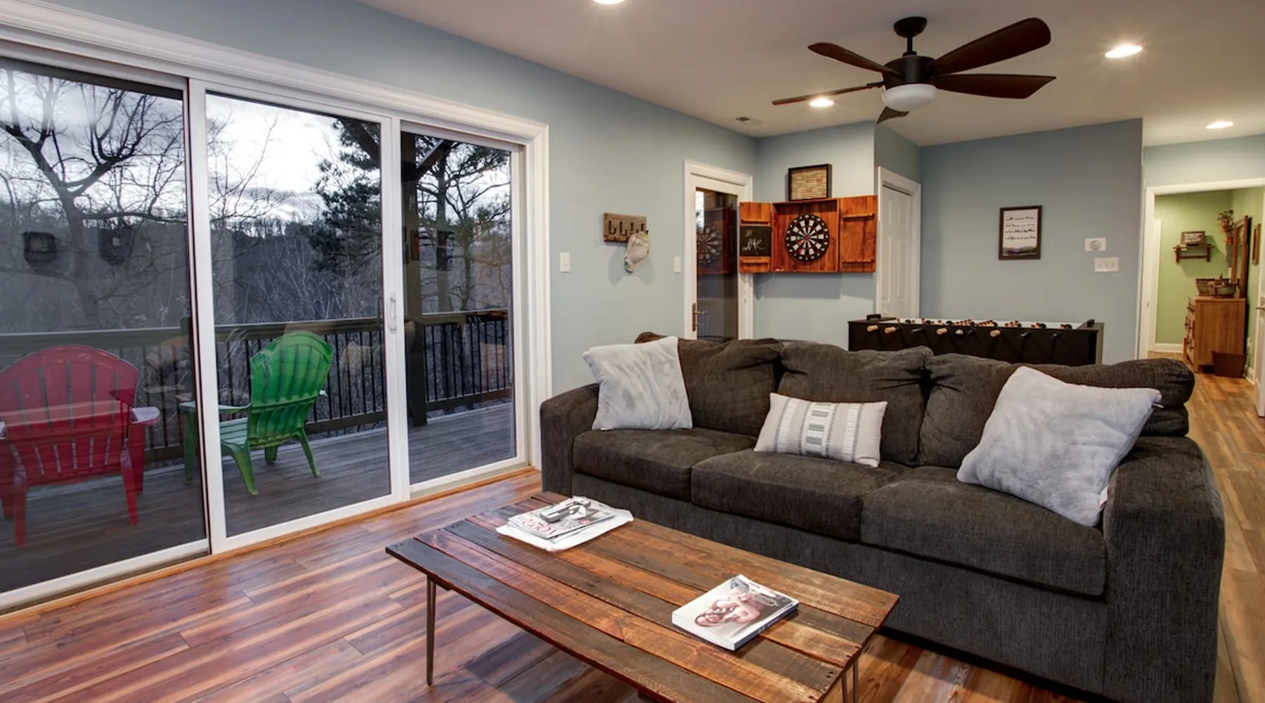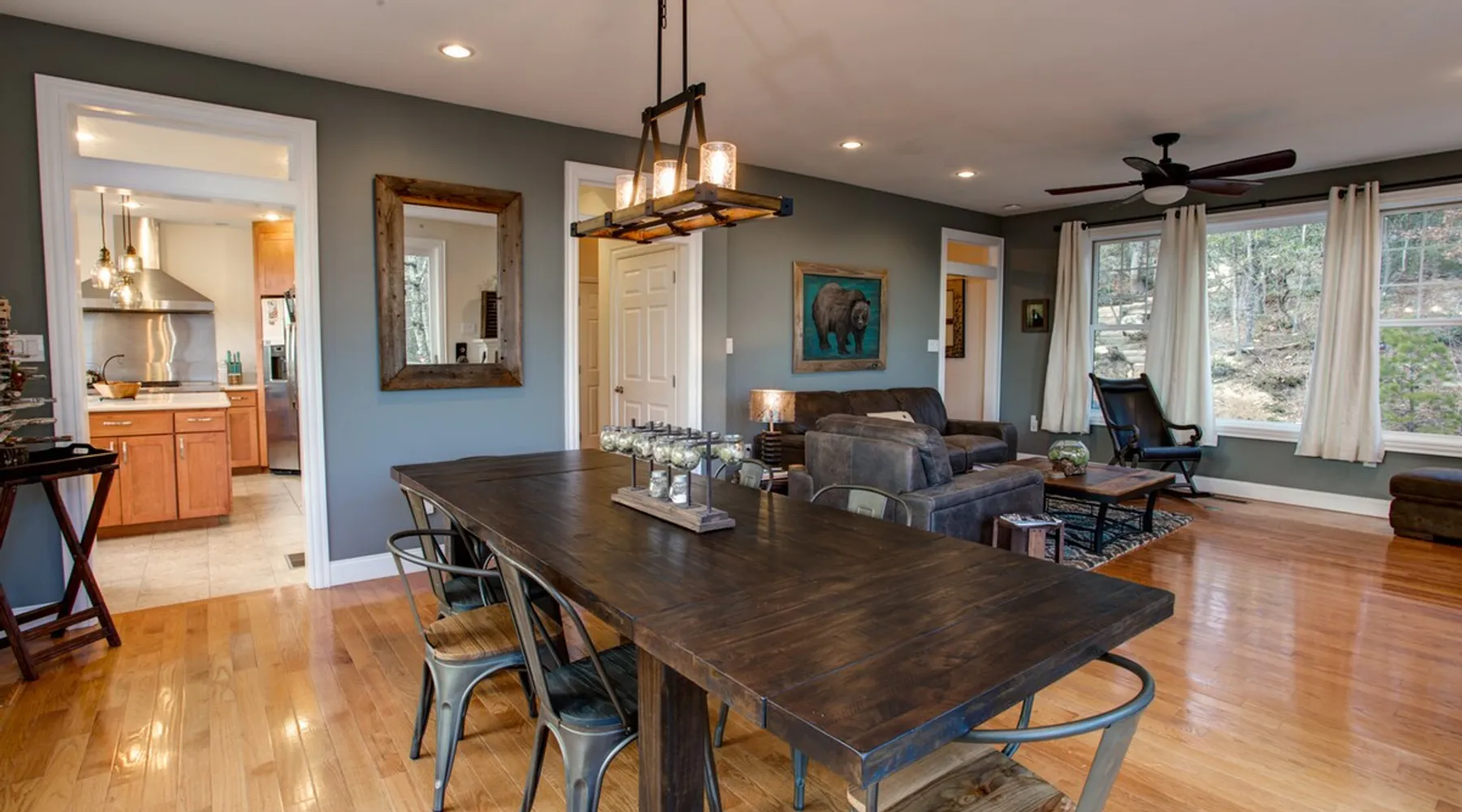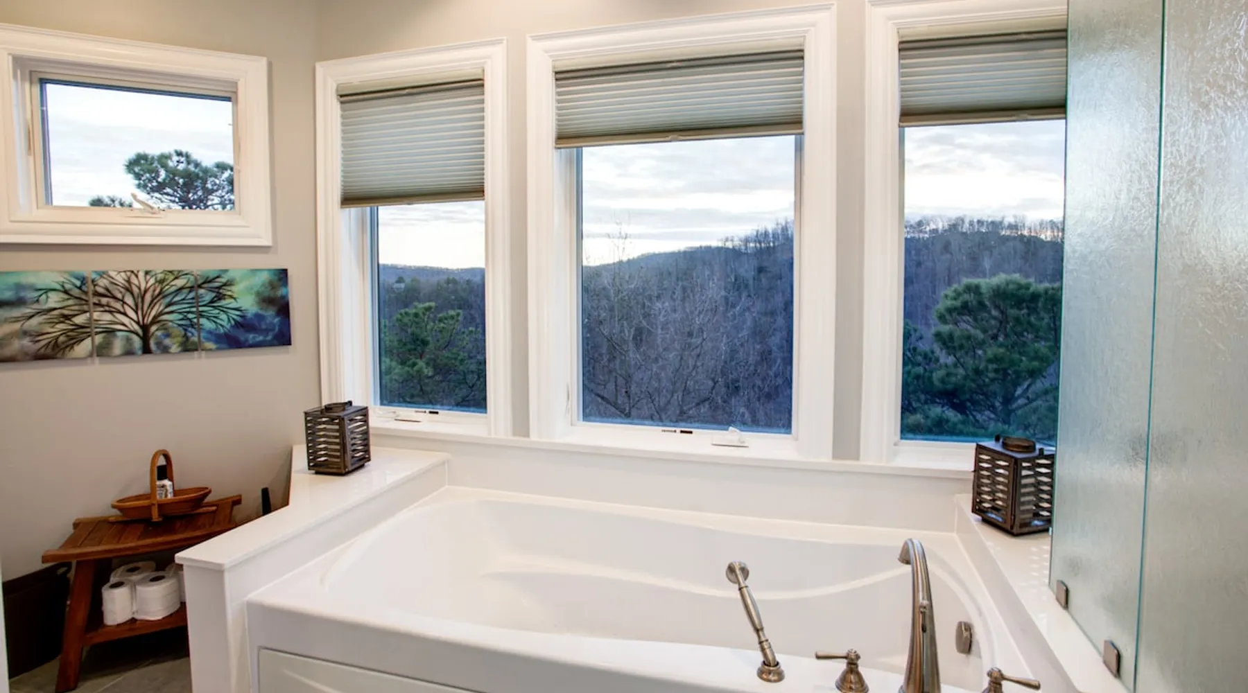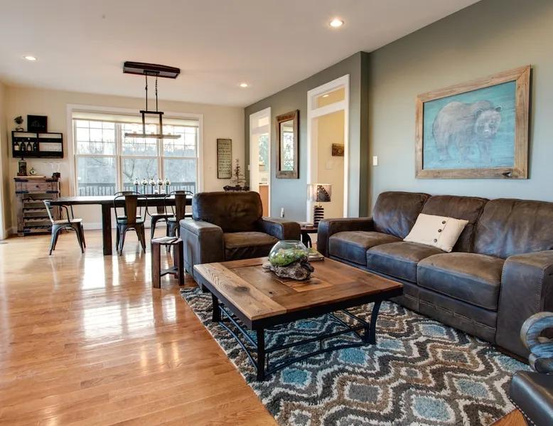 Burnt Ridge Retreat......your escape to the splendor of the Blue Ridge Mountains! Welcome to the peace & tranquility that comes from "elevation", calming and majestic views of over 50 miles, and the breathtaking awe of a true luxury vacation home; AND just 10 minutes from downtown Black Mountain. The space Location: Private home located in the exclusive, upscale and private mountain community, High Rock Acres, which is conveniently perched on its own mountainside, just outside of Black Mountain. You are under 10 minutes to downtown Black Mountain, and under 30 minutes to downtown Asheville. You are also app. 45 minutes from the Asheville Regional Airport. Home is accessed via only paved and fully maintained roads, right up to the development. The roads in the development are gravel, and normally accessible with any vehicles; however, certain whether conditions may dictate All-Wheel or 4-Wheel drive access. The driveway is also a sloped, gravel drive and only 4WD vehicles allowed in the driveway. There is off street parking in front of the house for 3 non 4WD vehicles. Accommodations: (Sleeps 10-12) 5 bedroom, 3 full baths, Powder Rm. Occupancy Summary / Sleeps in beds: 10 Max. Occupancy: 12 (PLEASE NOTE: We provide linens for all beds; other occupancy will require guests providing their own linens.) Description: Burnt Ridge Retreat is located in the exclusive, upscale and private mountain community, High Rock Acres, which is conveniently perched on its own mountainside, just outside of Black Mountain. Come soak in all the Burnt Ridge Retreat has to offer its guests, including a recently built and newly updated home, modern amenities, fire-pit, close proximity to literally everything, and more. Sit on your back porch, relax and sip coffee as you take in the astounding views, along with being able to watch wildlife from your private deck and outdoor areas, while listening to the running creek down below. Come create your own memorable Asheville mountain experience! The home affords year round access, and is great for groups of any and all ages. The home is situated just outside of downtown Black Mountain, NC, affording privacy for everyone to relax & enjoy the feel of the WNC mountains. High Rock Acres is a private, exclusive community, whose residents are friendly and welcoming to guests, (if you even see them, since High Rock Acres has private, densely wooded lots that afford amazing privacy). Get ready to be “wowed” by the never-ending views from this contemporary mountain style retreat. With soaring vistas, high ceilings, vaulted rooms, and cozy spaces, you will immediately feel at home at Burnt Ridge Retreat. (That is of course if you can tear yourself away from the wrap-a-round decks & soaking in the spectacle of the Blue Ridge Mountains, & actually venture inside!) The recently constructed (in 2008), and only just renovated/updated estate home affords a stunning great room, massive Chef's grade kitchen, a lower level Great Rm, spacious bedroom/baths, and MORE; with plenty of space to unwind and gather with your group. But, if you need some “alone time”, there is plenty of space inside and out to find your own serenity. There are 4 outside porches, decks, and patios, and the private fire-pit for ultimate outdoor relaxation. Burnt Ridge Retreat has so much to offer guests; from hiking and walking trails, streams, and much more. (You can hike all the way down to the river if feeling adventurous!) While at Burnt Ridge, everyone enjoys all that the home has to offer; from the TV & Game Rm, Great Rm fireplace, and of course the spectacular decks, where you can pull up a chair and take in the "sound of silence", observe the night as it fills with stars, and watch the fire flies come out to play in your backyard. Take a seat and enjoy the sound of the babbling creek, along with the rest of nature, and all within the serenity in your own private paradise at the top of the world. You are also just a short drive from America’s favorite scenic byway, The Blue Ridge Parkway, motorcycle touring, biking, hiking, white water rafting, rock climbing, kayaking, canoeing, zip lining, Segway tour…just about any outdoor activity! Or, take a ride to downtown Asheville to enjoy the first-rate restaurants, shopping, galleries, spas, and entertainment. (PLEASE NOTE: We provide linens for all beds; other occupancy will require guests providing their own linens.) We look forward to possibly booking your stay, should these accommodations work for you. We can reserve your stay with a credit card and send out a rental agreement to firm everything up when you are ready...but don't delay too long. Additional Rate Info And Fees: We openly share our Cleaning Fees in a manner of full disclosure, as we think this is the most honest and forthright approach with respect to our guests. Our Cleaning Fees are backed by our Clean Guarantee, which reflects the highest level of standards, pristine environments for our guests, and a level of clean that surpasses any other vacation homes; we literally guarantee it! Home Truths: - 4WD required to access the property, one lane gravel road to property following Hurricane Helene Early Check In and/or Late Check Out may be possible, depending on cleaning schedules and other reservations. If it is possible, there may be an additional fee that would be determined based on the time that you wish to check in or out and the seasonal rates. Pets: This home and property are very dog friendly, and guests are welcome to bring their "best friends" with them. There is a non-refundable Pet Fee of $130 with a limit of 2 dogs per booking party. *If additional pets are approved, additional charges will apply (This is NOT automatically added by VRBO, TripAdvisor or Airbnb, so please let us know so that we can add the fee for you) Exclusive Special: When you book Burnt Ridge Retreat you will receive a special code for discounted tickets to the Biltmore Estate! Contact us for more info. Be