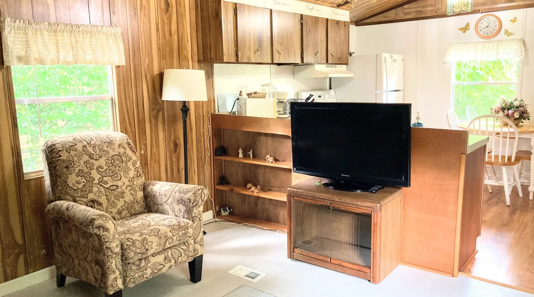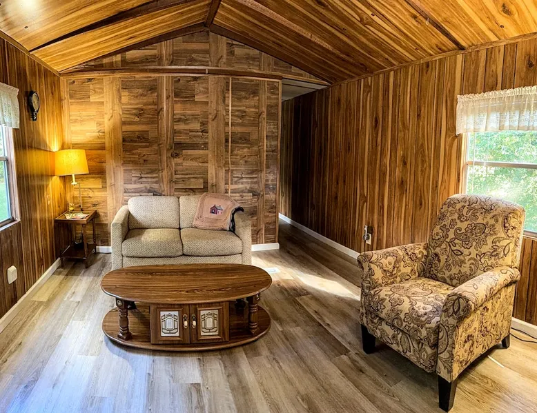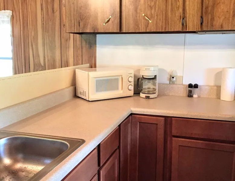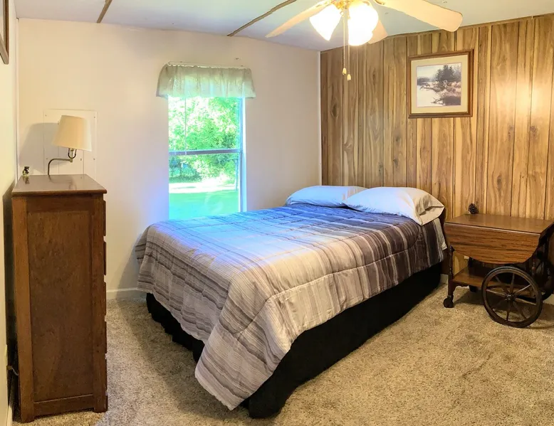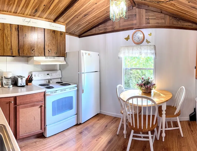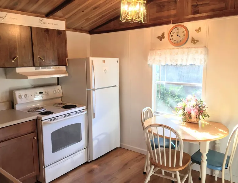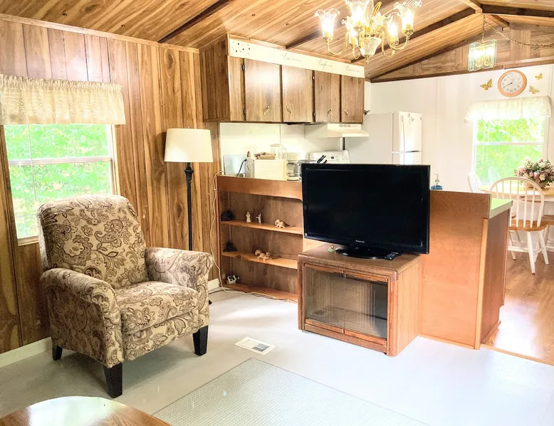 Need temporary housing? This is your place! On the waiting list for Fort Benning housing, doing an internship, coming into town for work, taking classes... Available for stays of 30 days or more. Enjoy a countryside view from your front porch. This 2 bedroom mobile home is located on a huge, mostly fenced in yard that affords plenty of parking. Go back in time with a mix of vintage and modern styles. The space This fully furnished mobile home has been partially renovated. Kitchen includes an oven, microwave, refrigerator, coffee maker, toaster, blender, waffle iron, … and is stocked with silverware, pots, pans, dishes, and coffee. The back bedroom has a double bed, dresser, ceiling fan, closet and shelves. A dresser, full length mirror, and single bed on the floor are in the very small 2nd bedroom. This vintage mobile home shows off the original siding and windows, the original green bathtub, and some of the original wood grain panelled walls. There is an abundance of space available for parking. There is no smoking allowed inside this home or on either porch. Guest access Guests have access to this whole mobile home, porches and back yard. Other things to note Phenix City goes by the Eastern time zone (same as Columbus, GA, Fort Benning, and Atlanta) even though we are in Alabama. We are not located in downtown but are minutes from downtown Phenix City. We do NOT charge any extra fees (no service or cleaning fees, etc.). Airbnb does charge their service fees and the state occupancy taxes. None of their fees go to us. No smoking inside or on either of the porches.