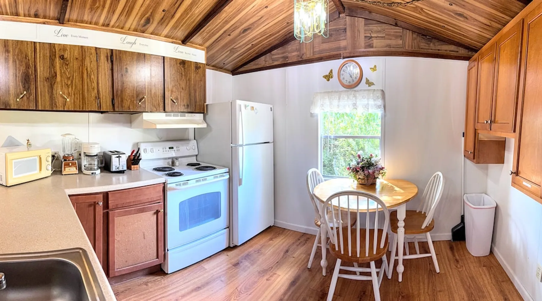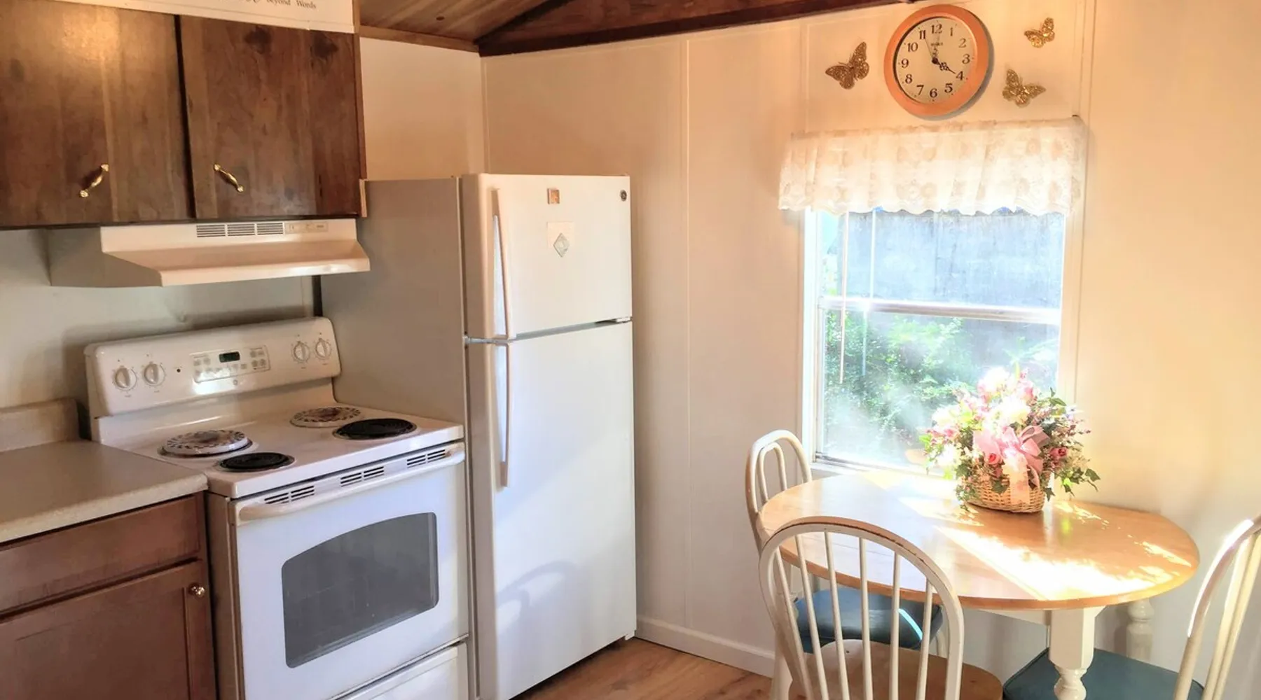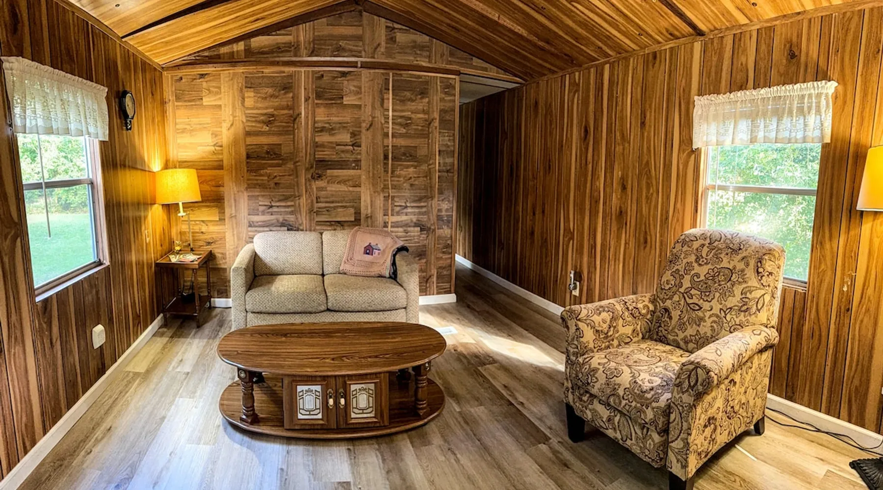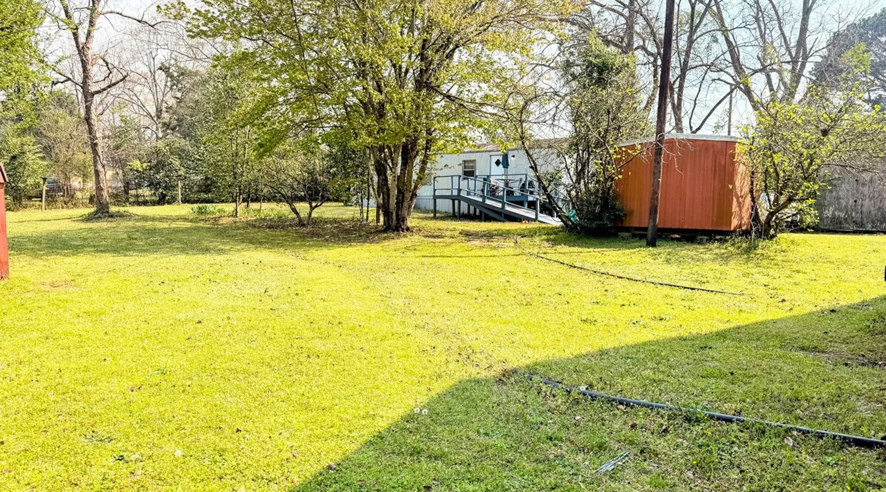 Need temporary housing? This is your place! On the waiting list for Fort Benning housing, doing an internship, coming into town for work, taking classes... Available for stays of 30 days or more. Enjoy a countryside view from your front porch. This 2 bedroom mobile home is located on a huge, mostly fenced in yard that affords plenty of parking. Go back in time with a mix of vintage and modern styles. The space This fully furnished mobile home has been partially renovated. Kitchen includes an oven, microwave, refrigerator, coffee maker, toaster, blender, waffle iron, … and is stocked with silverware, pots, pans, dishes, and coffee. The back bedroom has a double bed, dresser, ceiling fan, closet and shelves. A dresser, full length mirror, and single bed on the floor are in the very small 2nd bedroom. This vintage mobile home shows off the original siding and windows, the original green bathtub, and some of the original wood grain panelled walls. There is an abundance of space available for parking. There is no smoking allowed inside this home or on either porch. Guest access Guests have access to this whole mobile home, porches and back yard. Other things to note Phenix City goes by the Eastern time zone (same as Columbus, GA, Fort Benning, and Atlanta) even though we are in Alabama. We are not located in downtown but are minutes from downtown Phenix City. We do NOT charge any extra fees (no service or cleaning fees, etc.). Airbnb does charge their service fees and the state occupancy taxes. None of their fees go to us. No smoking inside or on either of the porches.