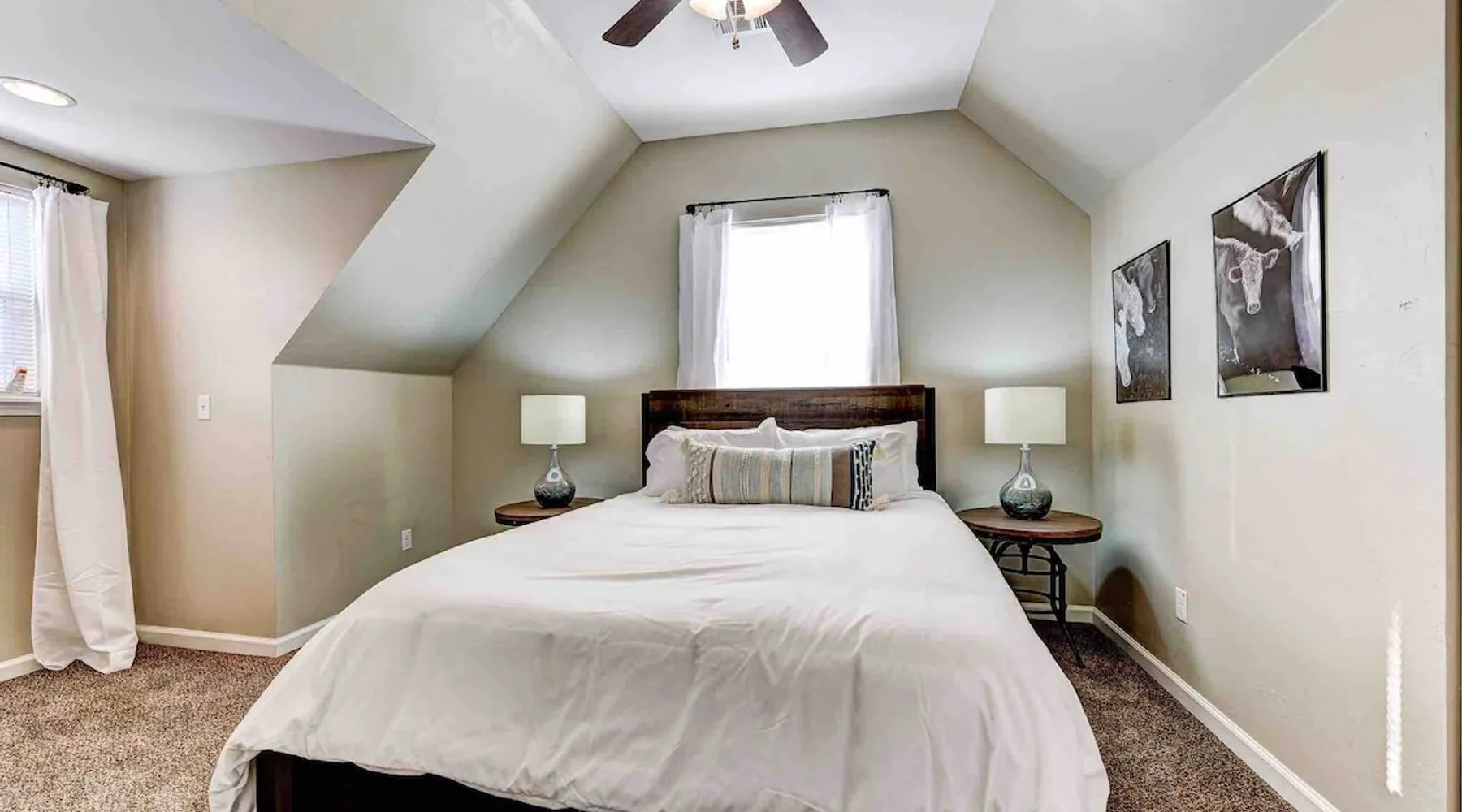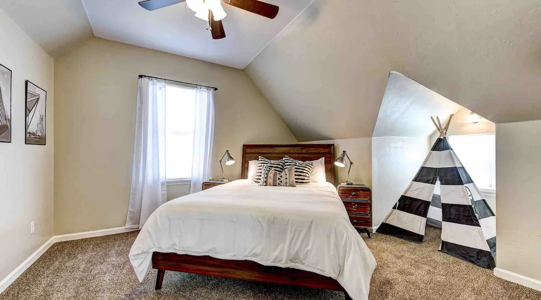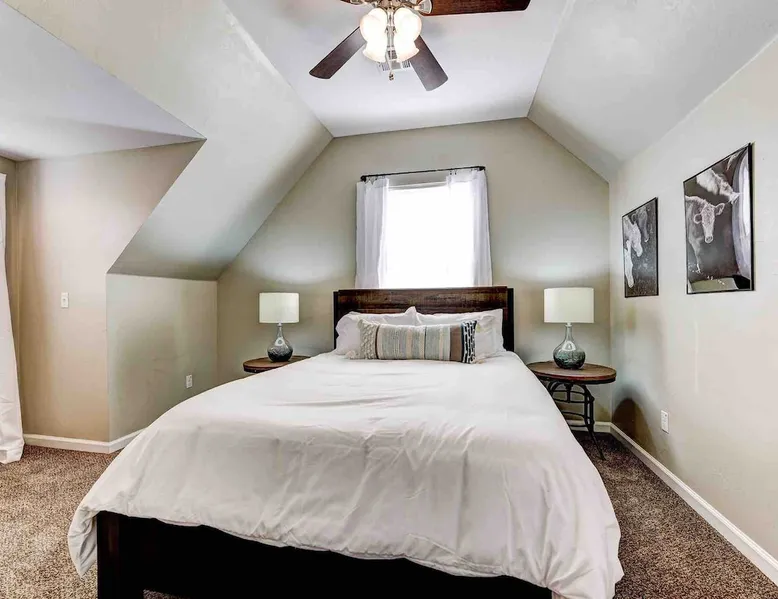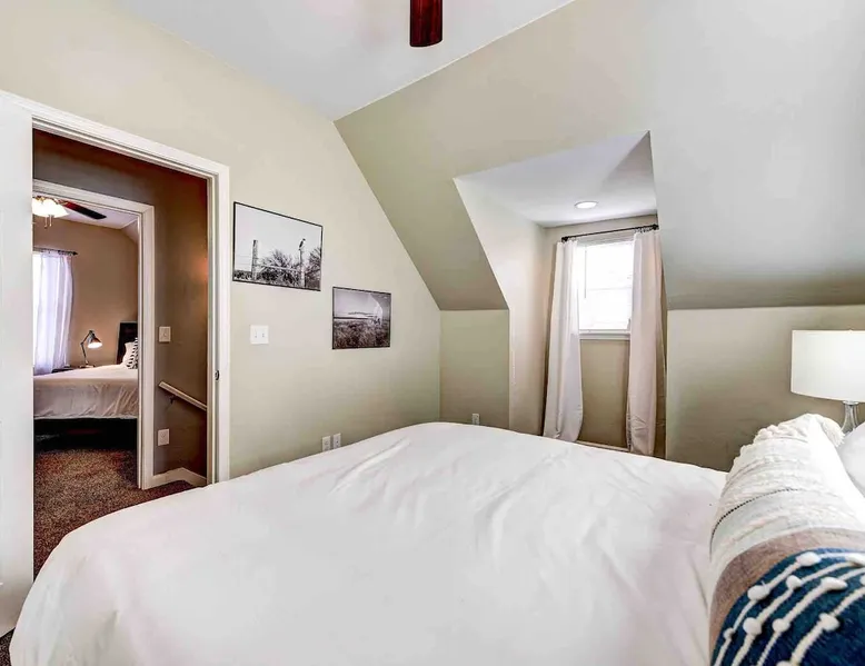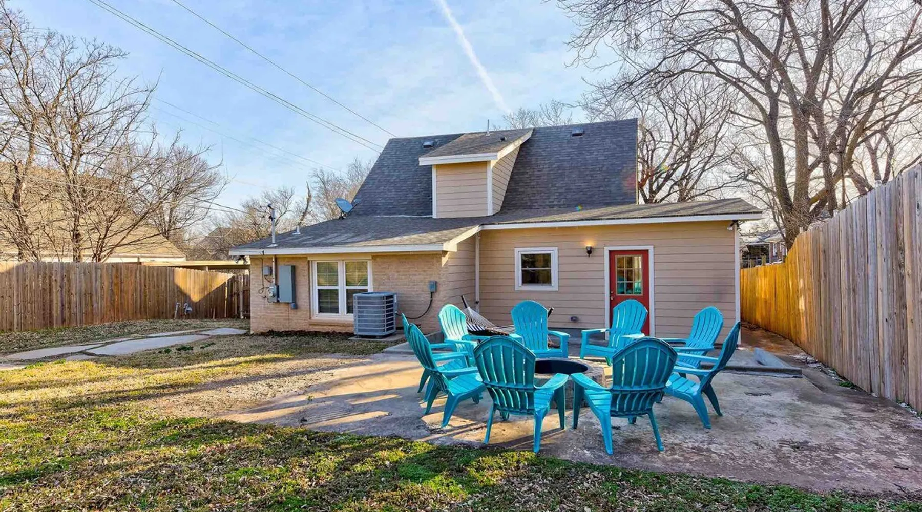 This 1858 sq ft home was built in 1930 & Fully Renovated in 2015 in the Military Park Addition off Classen & 34th Street. It is only a few blocks from both Oklahoma City University & the Paseo District. This designer home features farmhouse styling by Layton Designs, one of Oklahoma's premier Interior Decorators. The home additionally serves as an art gallery for OKC Photographer Court Duncan focused on local Landmarks & Wildlife. The art is available for purchase if desired. Welcome home! The space This 1.5 story home features a large, open concept living room & kitchen. The master bedroom downstairs features a large Master Bathroom with dual shower heads, King Size Bed & Queen Size Murphy Bed. Upstairs there are two large bedrooms with comfy queen sized beds. In the living room we have a Queen size Murphy Bed & Sofa Bed. Outside there is a large patio area with a firepit & seating, as well as a hammock for relaxation. Guest access The entire house is accessible. There is a small basement that is closed to the public, which serves as storage for cleaning supplies. Other things to note The house features High Speed AT&T Fiber Internet & a 65” Smart LED TV for watching Netflix or your favorite streaming media!