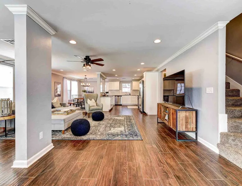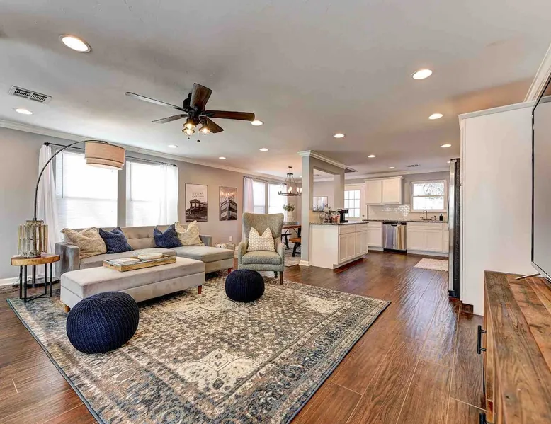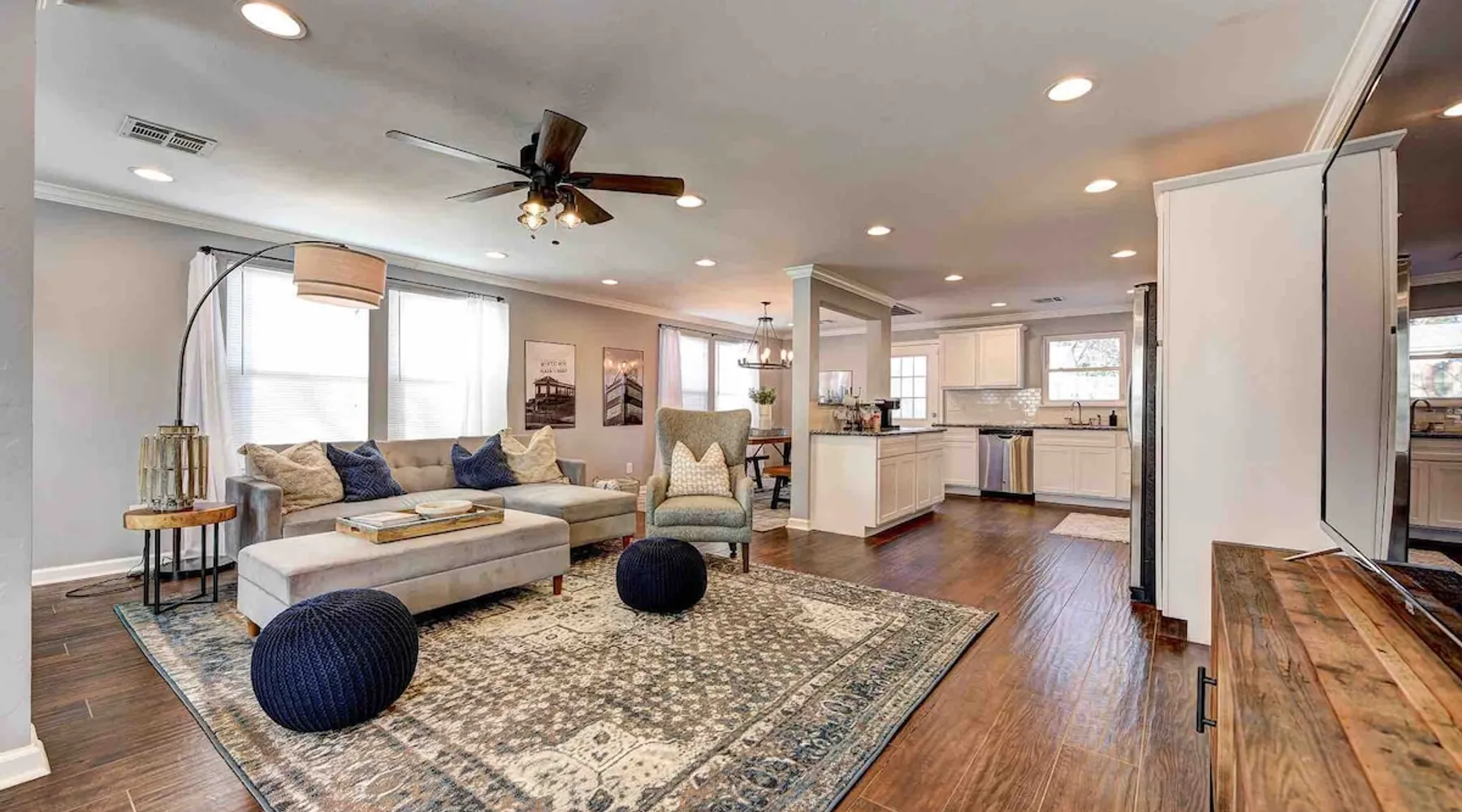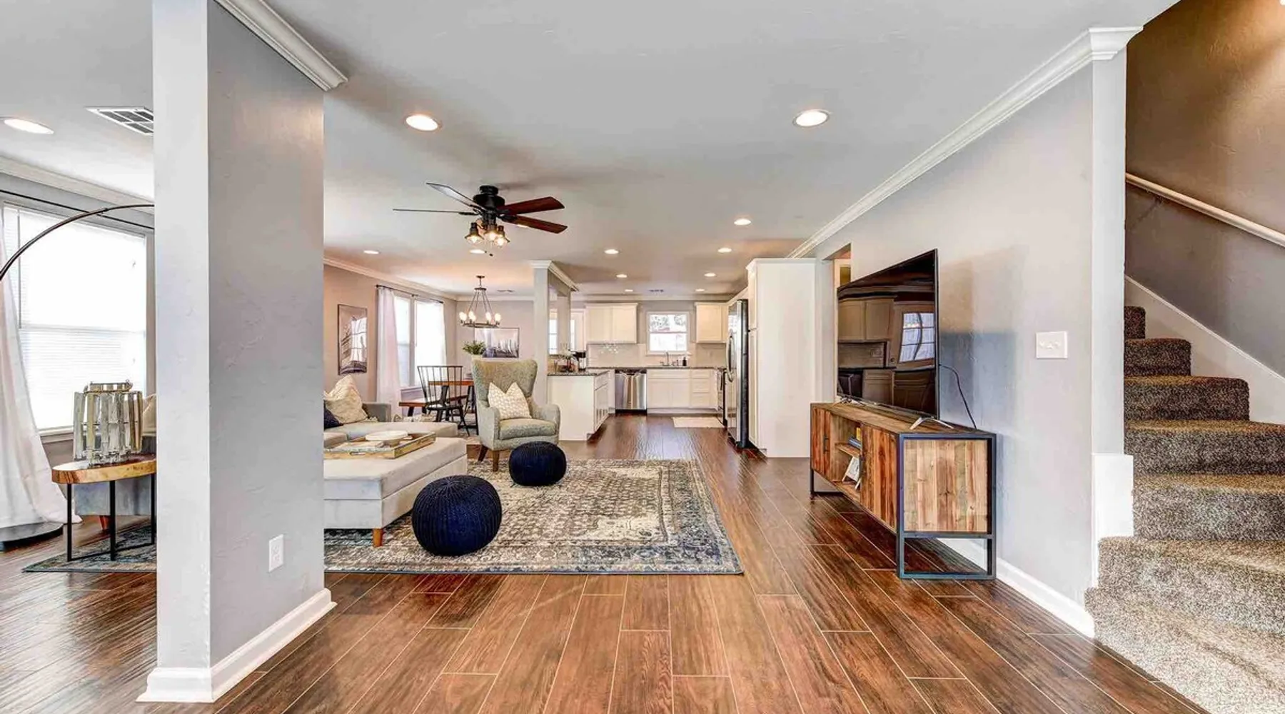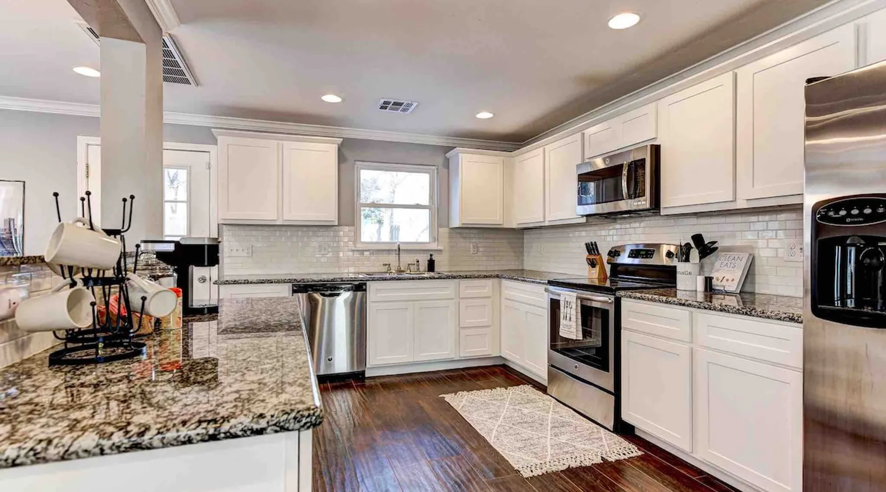This 1858 sq ft home was built in 1930 & Fully Renovated in 2015 in the Military Park Addition off Classen & 34th Street. It is only a few blocks from both Oklahoma City University & the Paseo District. This designer home features farmhouse styling by Layton Designs, one of Oklahoma's premier Interior Decorators. The home additionally serves as an art gallery for OKC Photographer Court Duncan focused on local Landmarks & Wildlife. The art is available for purchase if desired. Welcome home! The space This 1.5 story home features a large, open concept living room & kitchen. The master bedroom downstairs features a large Master Bathroom with dual shower heads, King Size Bed & Queen Size Murphy Bed. Upstairs there are two large bedrooms with comfy queen sized beds. In the living room we have a Queen size Murphy Bed & Sofa Bed. Outside there is a large patio area with a firepit & seating, as well as a hammock for relaxation. Guest access The entire house is accessible. There is a small basement that is closed to the public, which serves as storage for cleaning supplies. Other things to note The house features High Speed AT&T Fiber Internet & a 65” Smart LED TV for watching Netflix or your favorite streaming media!
