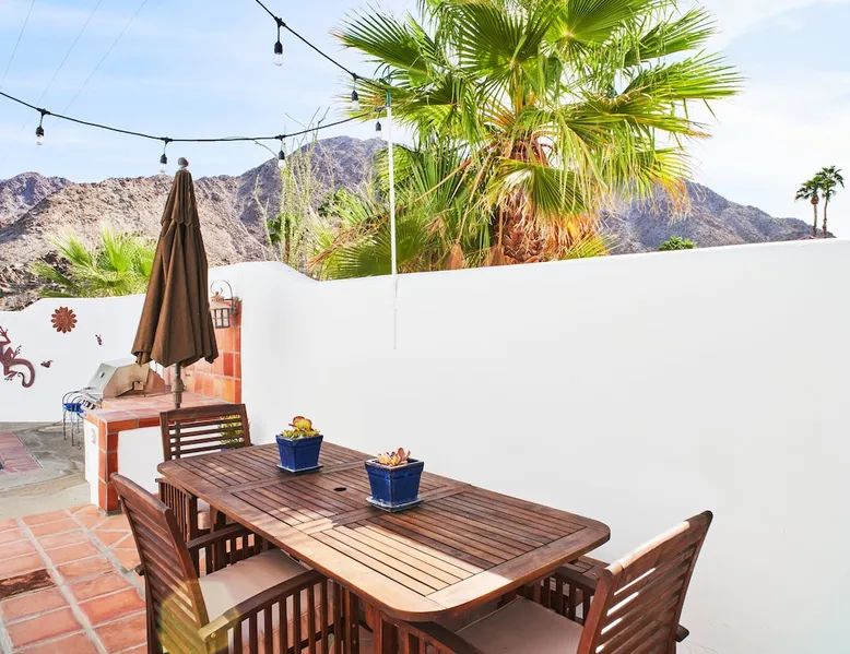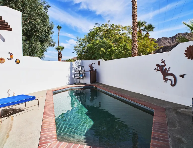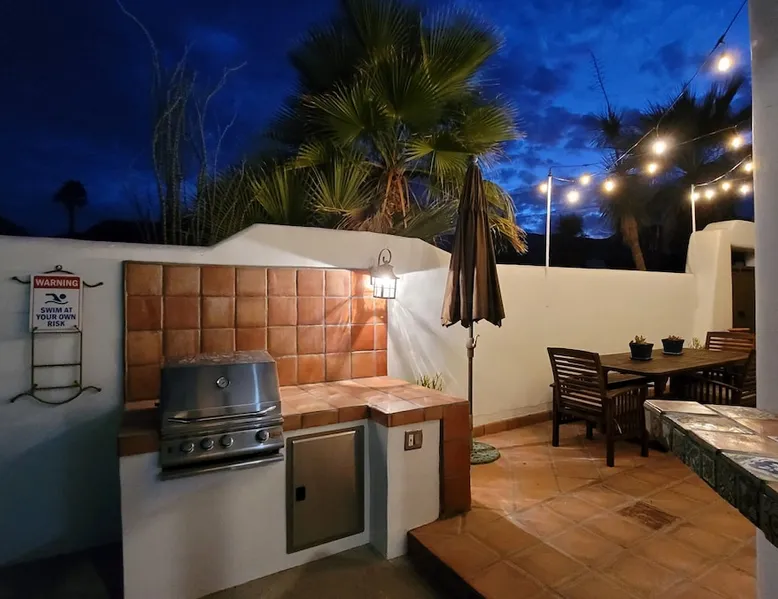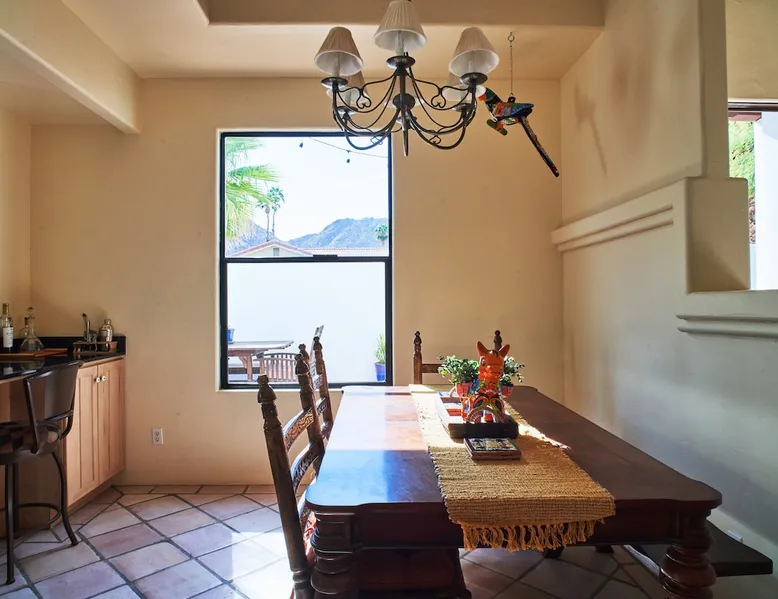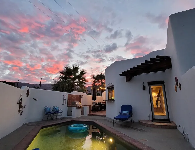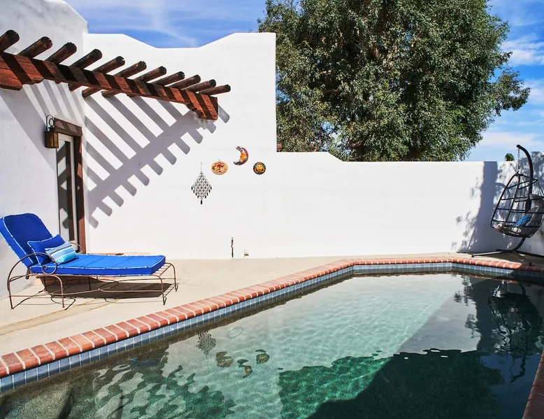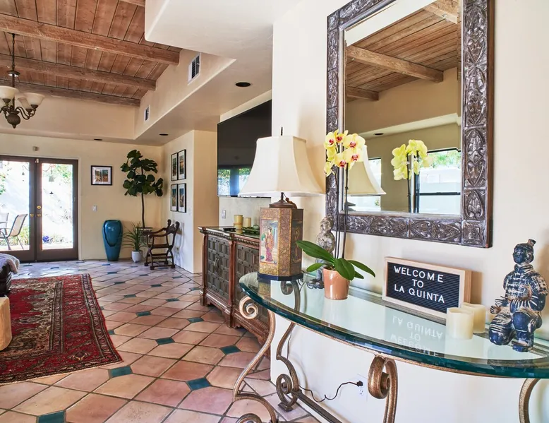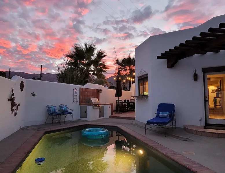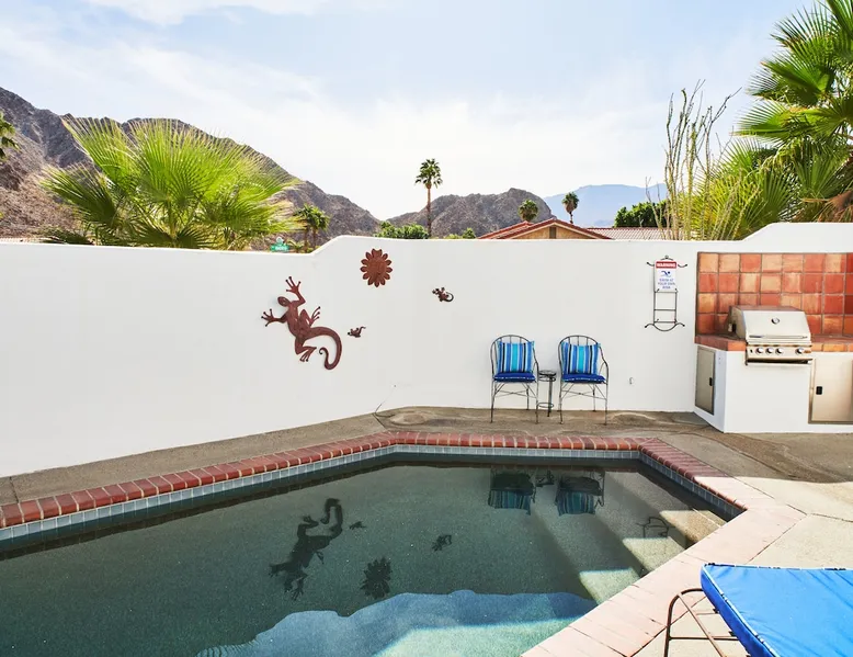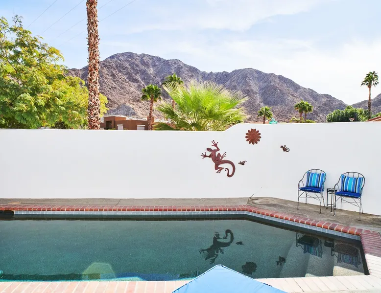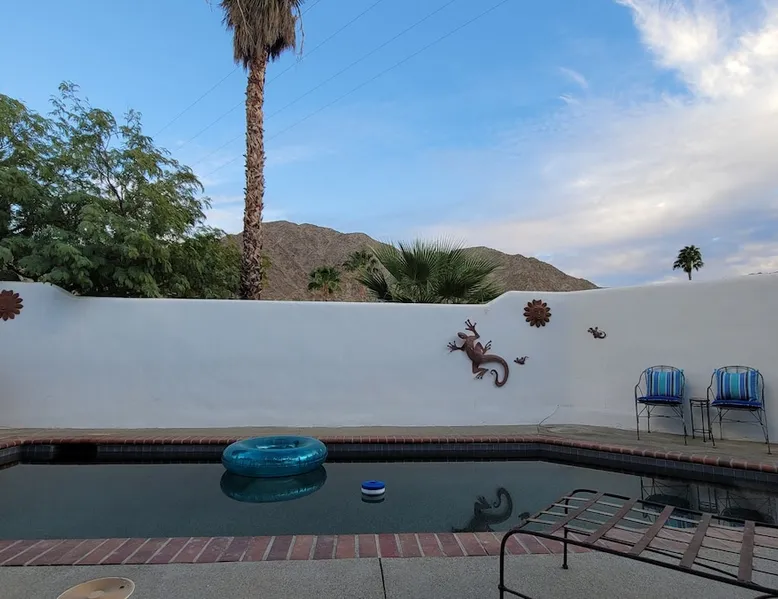 Monthly bookings only please. Our "Hacienda Zen Retreat" in the beautiful & relaxing La Quinta Cove features multiple outdoor living spaces, a private backyard pool, and majestic views of the Santa Rosa mountains. Start your journey at our retreat walking through the large wooden double-doors in the professionally manicured front yard. Flow into the zen-style living room complete with tiled fireplace. Enjoy a dip in the pool, and soak up the mountain views from one of the outdoor dining spaces The space Cook breakfast in the full kitchen, and enjoy it in the relaxing front patio complete with an authentic and tranquil planter pot-style fountain. BBQ dinner next to the private pool to dine al fresco in the string-lighted side patio dining space with room for 6. Then bring the group inside to enjoy a movie on the large 65-in 4K TV and gather around the genuine tiled fireplace. Retreat to one of the 3 comfortable bedrooms, all equipped with plush mattresses, fresh linens, & private TV's. Wake up to the striking views of the distinguished Santa Rosa mountains at our Hacienda Zen Retreat. Guest access Guests will enjoy private access to the entire property, including front, back, and side yards, pool, garage, as well as all indoor spaces! Other things to note Pool Heat is available for an additional fee. The pool is heated with propane, so the cost varies depending on the current cost of propane (very much like the cost of gas, propane costs fluctuate with external economic factors). Generally guests can just use as much heat as they'd like, and pay to refill the tank. The cost can be high depending on the cost of propane. Guests are required to pre-pay for the propane, and then whatever amount is not used can be refunded after checking out. Please note that for monthly reservations, guests are responsible for covering electricity costs. To keep things simple, we collect a deposit prior to arrival and refund any unused portion at the end of your stay based on actual usage. No Outdoor Music Park in the Garage or Driveway Pool Heat is available for an additional fee. The pool is heated with propane, so the cost varies depending on the current cost of propane (very much like the cost of gas, propane costs fluctuate with external economic factors). Generally guests can just use as much heat as they'd like, and pay to refill the tank. The cost can be high depending on the cost of propane. Quiet Hours 8pm-10am By booking the home you acknowledge and agree that if you choose to swim, it is at your own risk and you assume all liability