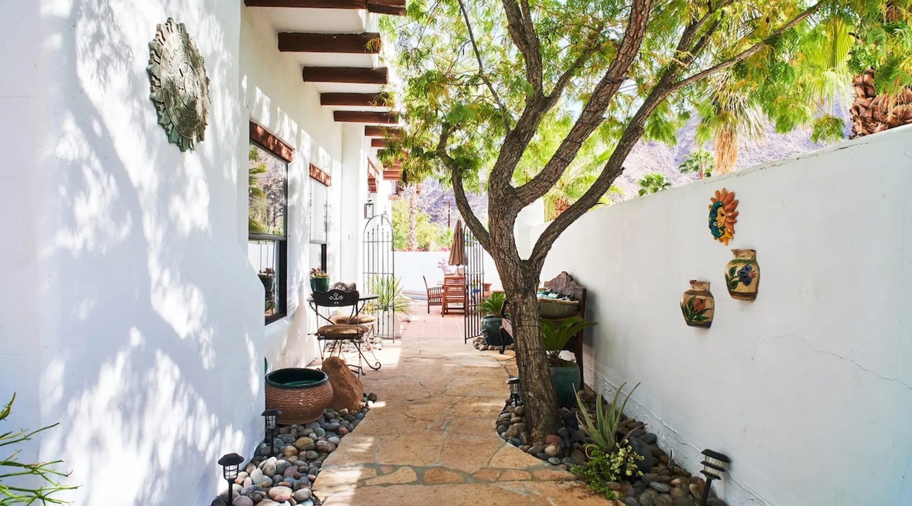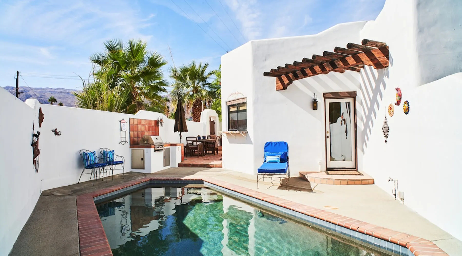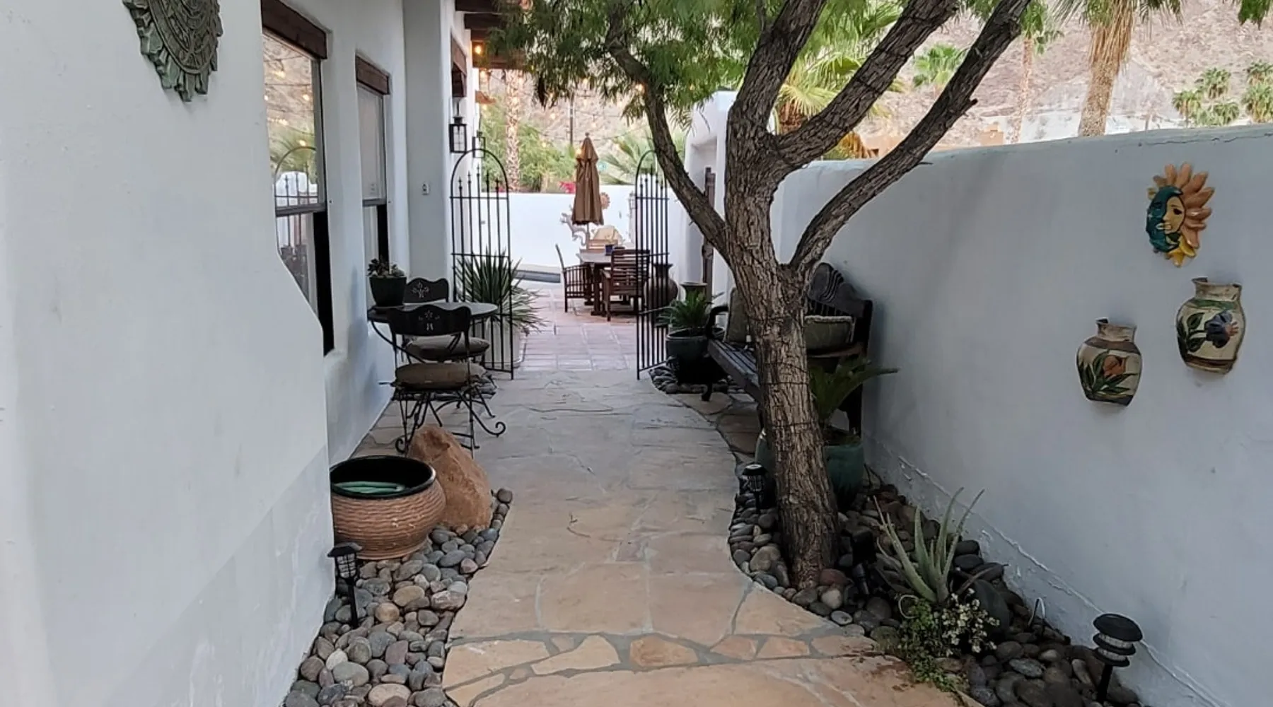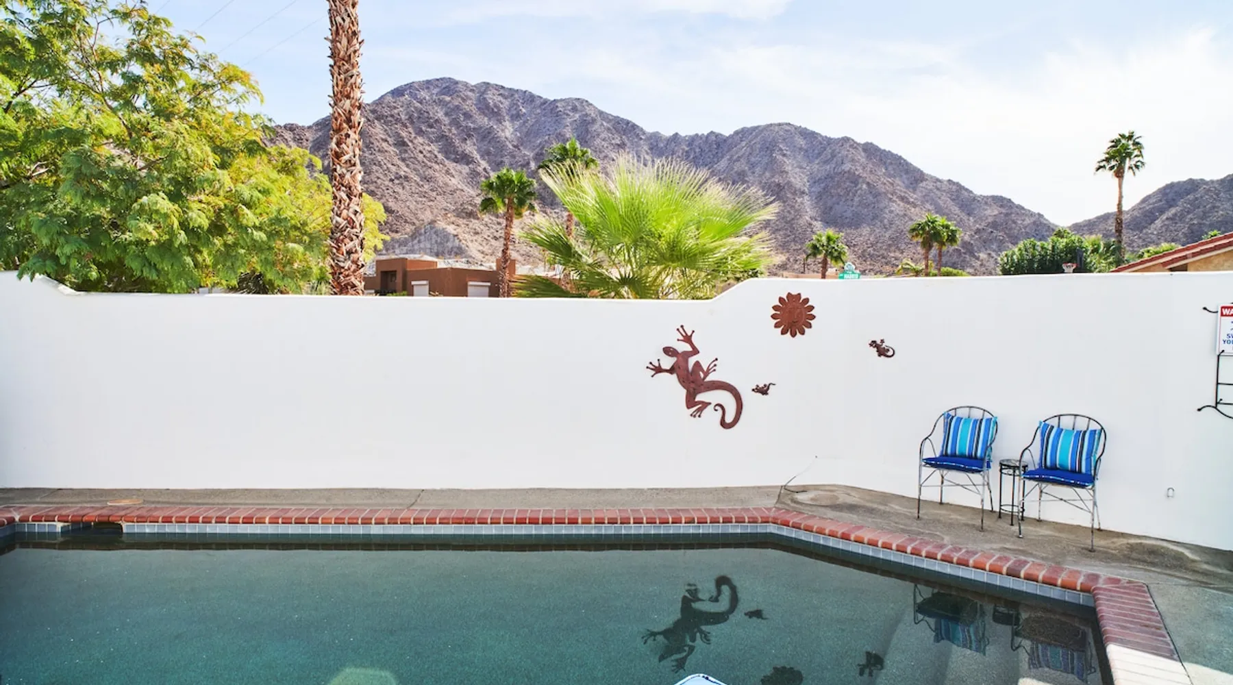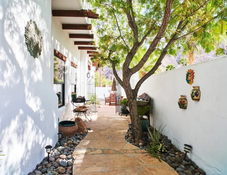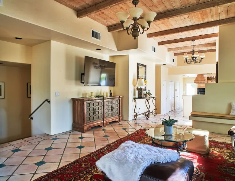 Monthly bookings only please. Our "Hacienda Zen Retreat" in the beautiful & relaxing La Quinta Cove features multiple outdoor living spaces, a private backyard pool, and majestic views of the Santa Rosa mountains. Start your journey at our retreat walking through the large wooden double-doors in the professionally manicured front yard. Flow into the zen-style living room complete with tiled fireplace. Enjoy a dip in the pool, and soak up the mountain views from one of the outdoor dining spaces The space Cook breakfast in the full kitchen, and enjoy it in the relaxing front patio complete with an authentic and tranquil planter pot-style fountain. BBQ dinner next to the private pool to dine al fresco in the string-lighted side patio dining space with room for 6. Then bring the group inside to enjoy a movie on the large 65-in 4K TV and gather around the genuine tiled fireplace. Retreat to one of the 3 comfortable bedrooms, all equipped with plush mattresses, fresh linens, & private TV's. Wake up to the striking views of the distinguished Santa Rosa mountains at our Hacienda Zen Retreat. Guest access Guests will enjoy private access to the entire property, including front, back, and side yards, pool, garage, as well as all indoor spaces! Other things to note Pool Heat is available for an additional fee. The pool is heated with propane, so the cost varies depending on the current cost of propane (very much like the cost of gas, propane costs fluctuate with external economic factors). Generally guests can just use as much heat as they'd like, and pay to refill the tank. The cost can be high depending on the cost of propane. Guests are required to pre-pay for the propane, and then whatever amount is not used can be refunded after checking out. Please note that for monthly reservations, guests are responsible for covering electricity costs. To keep things simple, we collect a deposit prior to arrival and refund any unused portion at the end of your stay based on actual usage. No Outdoor Music Park in the Garage or Driveway Pool Heat is available for an additional fee. The pool is heated with propane, so the cost varies depending on the current cost of propane (very much like the cost of gas, propane costs fluctuate with external economic factors). Generally guests can just use as much heat as they'd like, and pay to refill the tank. The cost can be high depending on the cost of propane. Quiet Hours 8pm-10am By booking the home you acknowledge and agree that if you choose to swim, it is at your own risk and you assume all liability