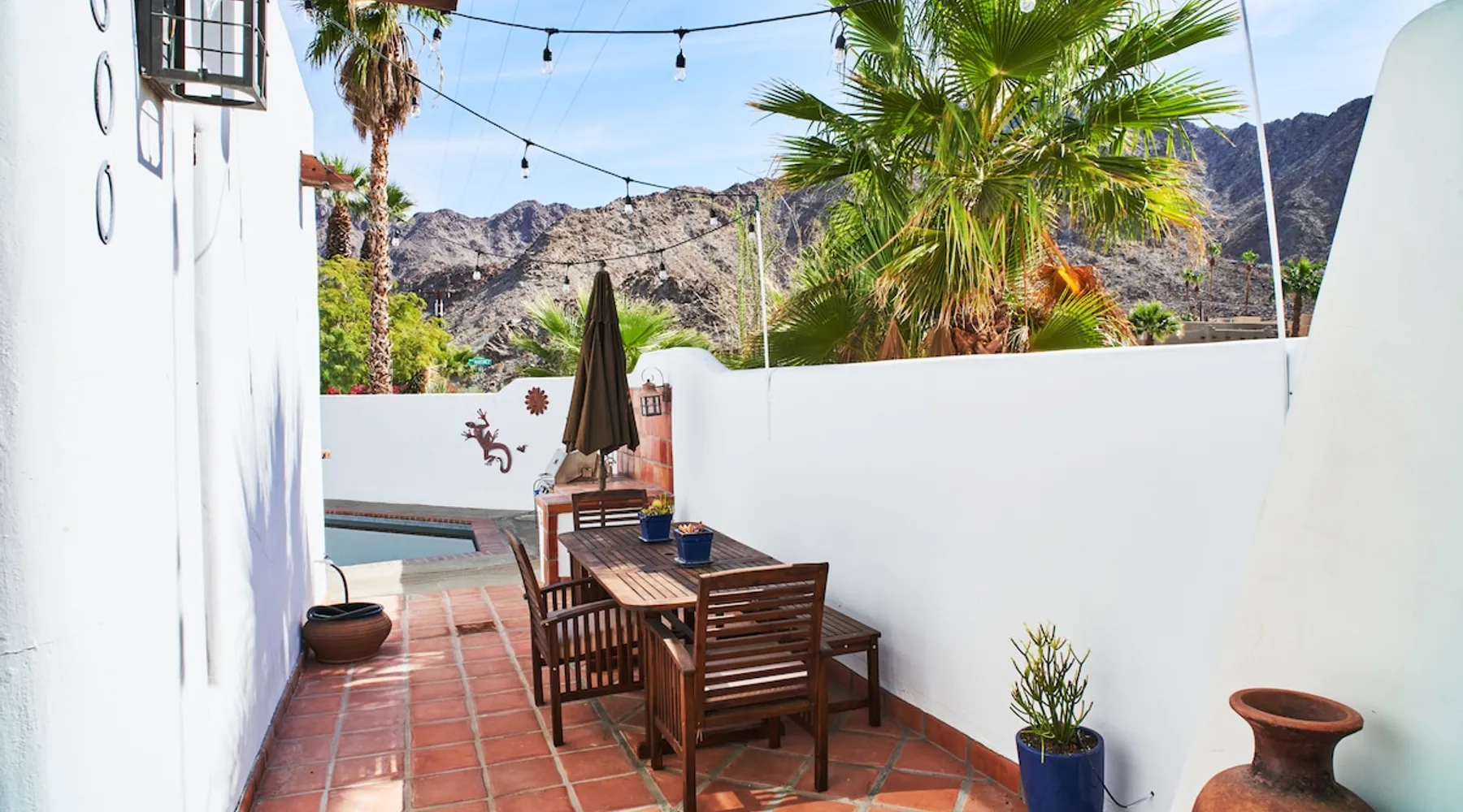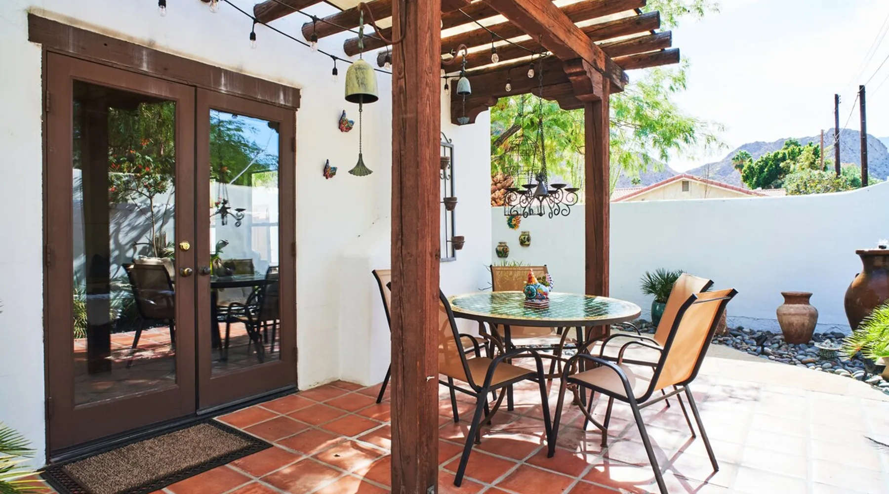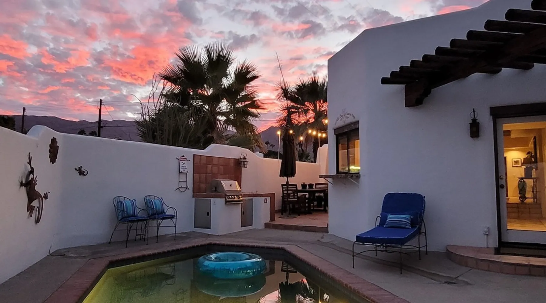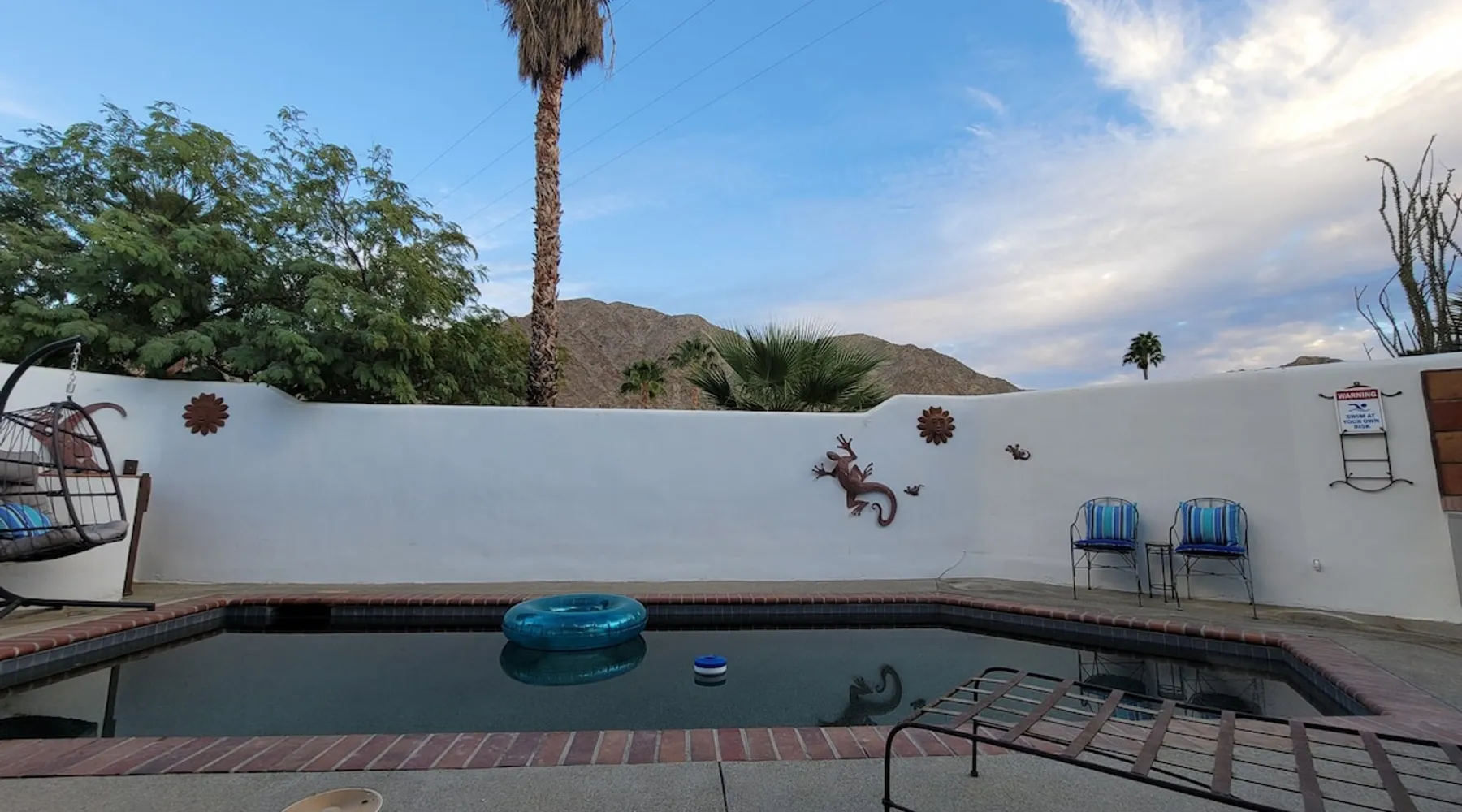 Monthly bookings only please. Our "Hacienda Zen Retreat" in the beautiful & relaxing La Quinta Cove features multiple outdoor living spaces, a private backyard pool, and majestic views of the Santa Rosa mountains. Start your journey at our retreat walking through the large wooden double-doors in the professionally manicured front yard. Flow into the zen-style living room complete with tiled fireplace. Enjoy a dip in the pool, and soak up the mountain views from one of the outdoor dining spaces The space Cook breakfast in the full kitchen, and enjoy it in the relaxing front patio complete with an authentic and tranquil planter pot-style fountain. BBQ dinner next to the private pool to dine al fresco in the string-lighted side patio dining space with room for 6. Then bring the group inside to enjoy a movie on the large 65-in 4K TV and gather around the genuine tiled fireplace. Retreat to one of the 3 comfortable bedrooms, all equipped with plush mattresses, fresh linens, & private TV's. Wake up to the striking views of the distinguished Santa Rosa mountains at our Hacienda Zen Retreat. Guest access Guests will enjoy private access to the entire property, including front, back, and side yards, pool, garage, as well as all indoor spaces! Other things to note Pool Heat is available for an additional fee. The pool is heated with propane, so the cost varies depending on the current cost of propane (very much like the cost of gas, propane costs fluctuate with external economic factors). Generally guests can just use as much heat as they'd like, and pay to refill the tank. The cost can be high depending on the cost of propane. Guests are required to pre-pay for the propane, and then whatever amount is not used can be refunded after checking out. Please note that for monthly reservations, guests are responsible for covering electricity costs. To keep things simple, we collect a deposit prior to arrival and refund any unused portion at the end of your stay based on actual usage. No Outdoor Music Park in the Garage or Driveway Pool Heat is available for an additional fee. The pool is heated with propane, so the cost varies depending on the current cost of propane (very much like the cost of gas, propane costs fluctuate with external economic factors). Generally guests can just use as much heat as they'd like, and pay to refill the tank. The cost can be high depending on the cost of propane. Quiet Hours 8pm-10am By booking the home you acknowledge and agree that if you choose to swim, it is at your own risk and you assume all liability