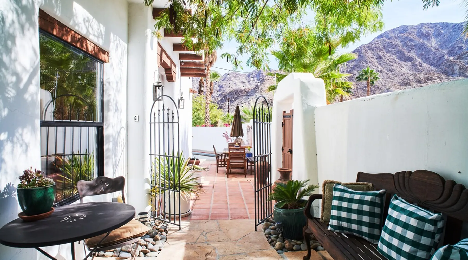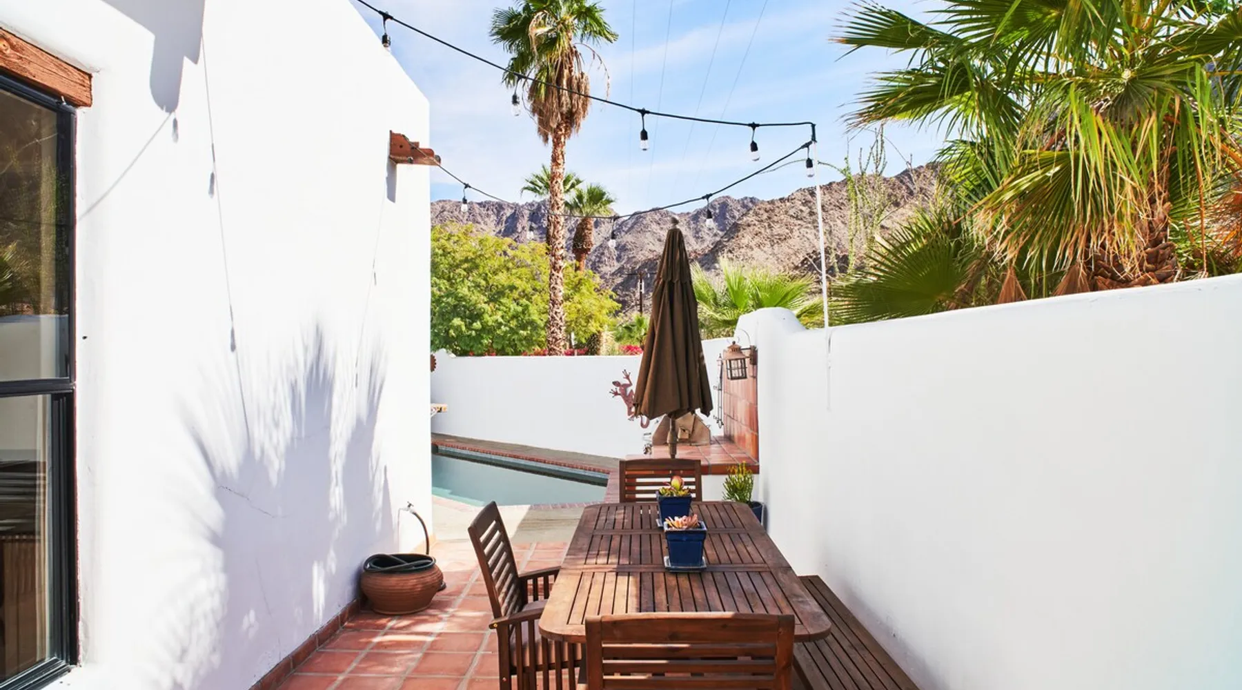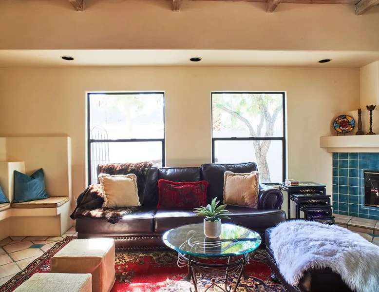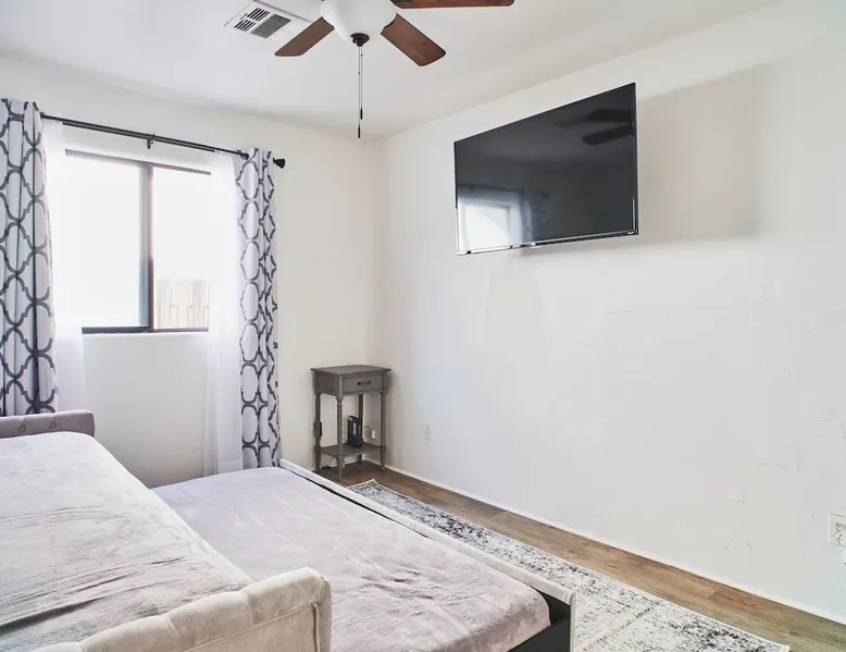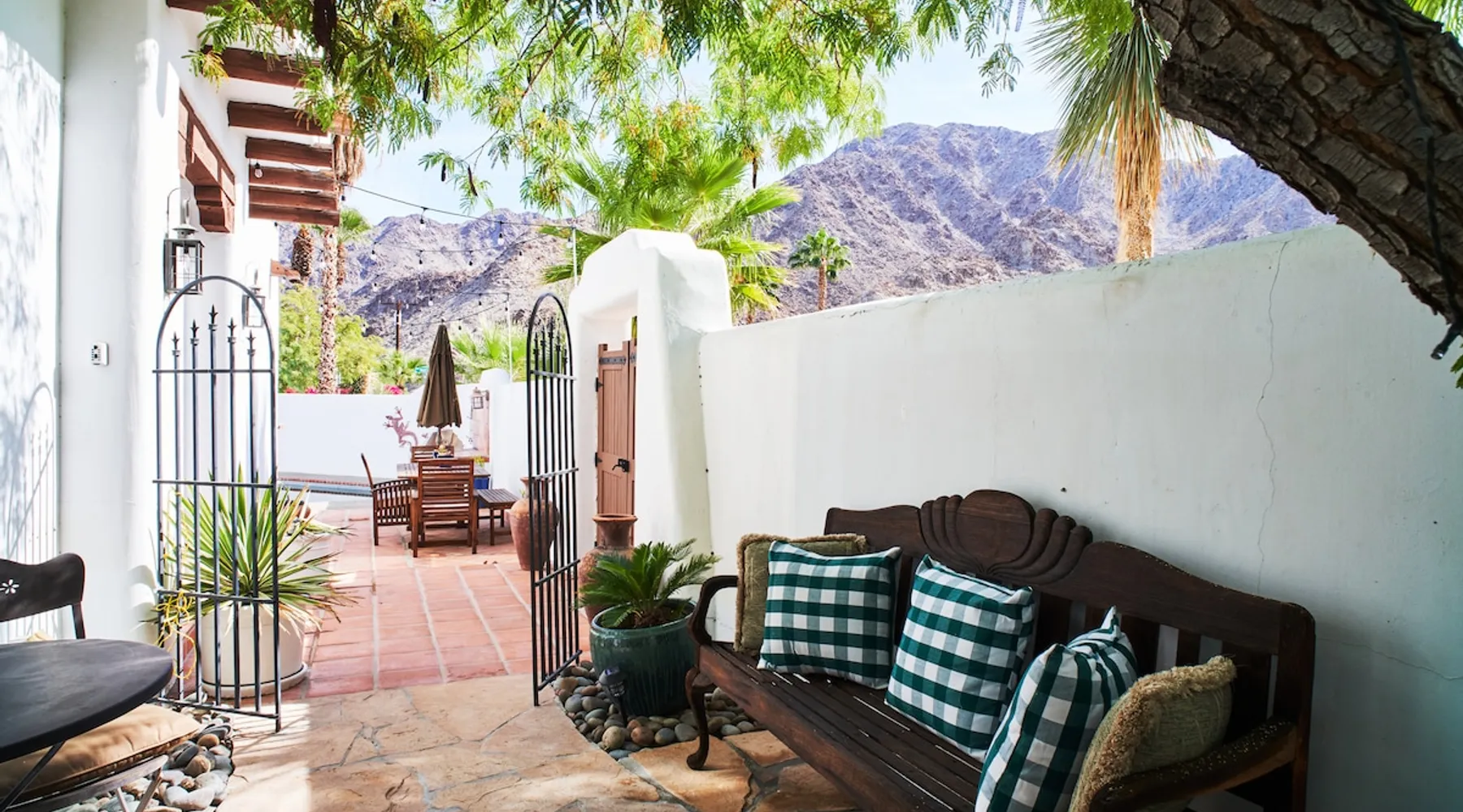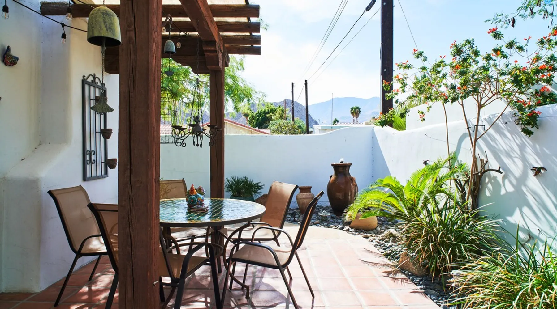 Monthly bookings only please. Our "Hacienda Zen Retreat" in the beautiful & relaxing La Quinta Cove features multiple outdoor living spaces, a private backyard pool, and majestic views of the Santa Rosa mountains. Start your journey at our retreat walking through the large wooden double-doors in the professionally manicured front yard. Flow into the zen-style living room complete with tiled fireplace. Enjoy a dip in the pool, and soak up the mountain views from one of the outdoor dining spaces The space Cook breakfast in the full kitchen, and enjoy it in the relaxing front patio complete with an authentic and tranquil planter pot-style fountain. BBQ dinner next to the private pool to dine al fresco in the string-lighted side patio dining space with room for 6. Then bring the group inside to enjoy a movie on the large 65-in 4K TV and gather around the genuine tiled fireplace. Retreat to one of the 3 comfortable bedrooms, all equipped with plush mattresses, fresh linens, & private TV's. Wake up to the striking views of the distinguished Santa Rosa mountains at our Hacienda Zen Retreat. Guest access Guests will enjoy private access to the entire property, including front, back, and side yards, pool, garage, as well as all indoor spaces! Other things to note Pool Heat is available for an additional fee. The pool is heated with propane, so the cost varies depending on the current cost of propane (very much like the cost of gas, propane costs fluctuate with external economic factors). Generally guests can just use as much heat as they'd like, and pay to refill the tank. The cost can be high depending on the cost of propane. Guests are required to pre-pay for the propane, and then whatever amount is not used can be refunded after checking out. Please note that for monthly reservations, guests are responsible for covering electricity costs. To keep things simple, we collect a deposit prior to arrival and refund any unused portion at the end of your stay based on actual usage. No Outdoor Music Park in the Garage or Driveway Pool Heat is available for an additional fee. The pool is heated with propane, so the cost varies depending on the current cost of propane (very much like the cost of gas, propane costs fluctuate with external economic factors). Generally guests can just use as much heat as they'd like, and pay to refill the tank. The cost can be high depending on the cost of propane. Quiet Hours 8pm-10am By booking the home you acknowledge and agree that if you choose to swim, it is at your own risk and you assume all liability