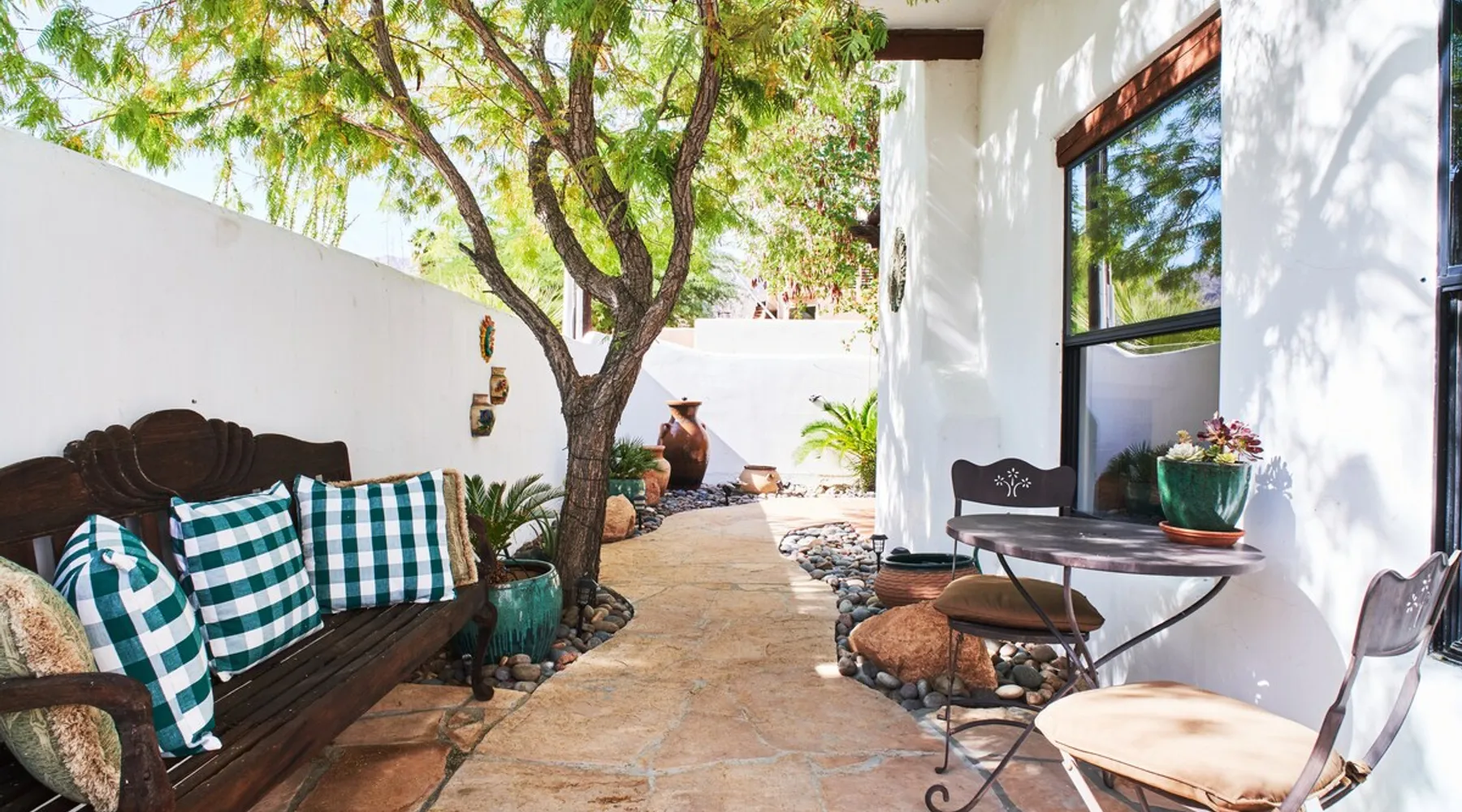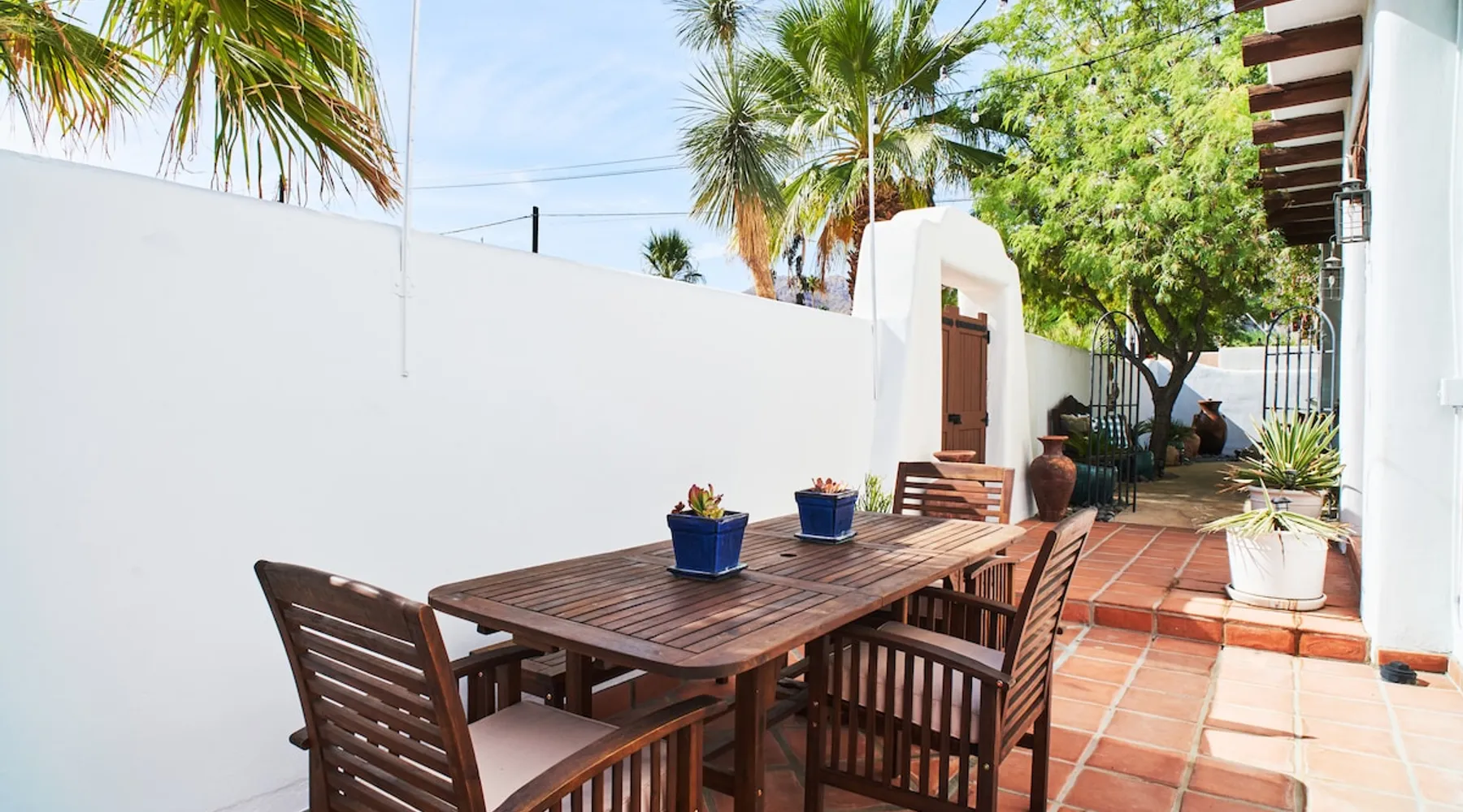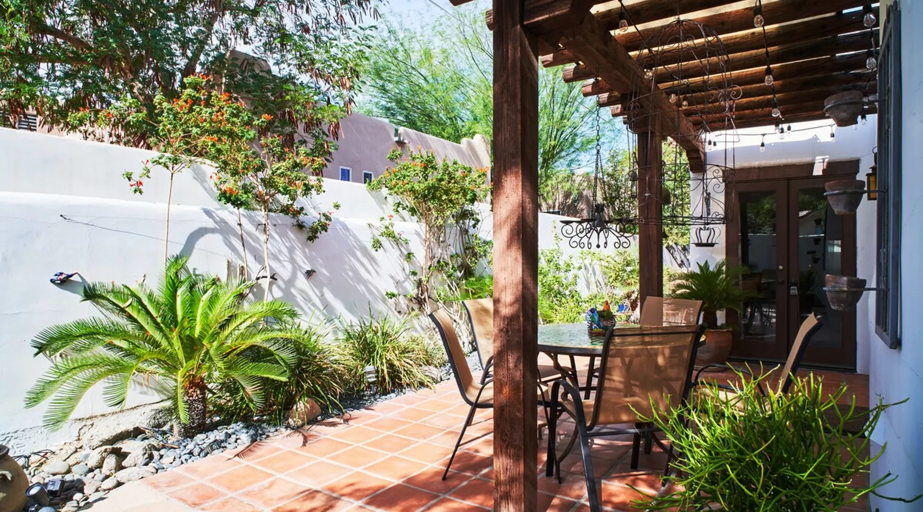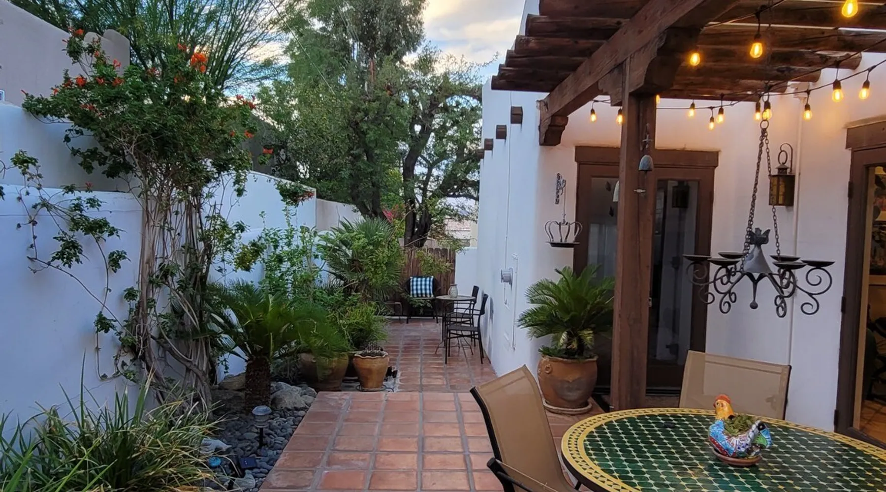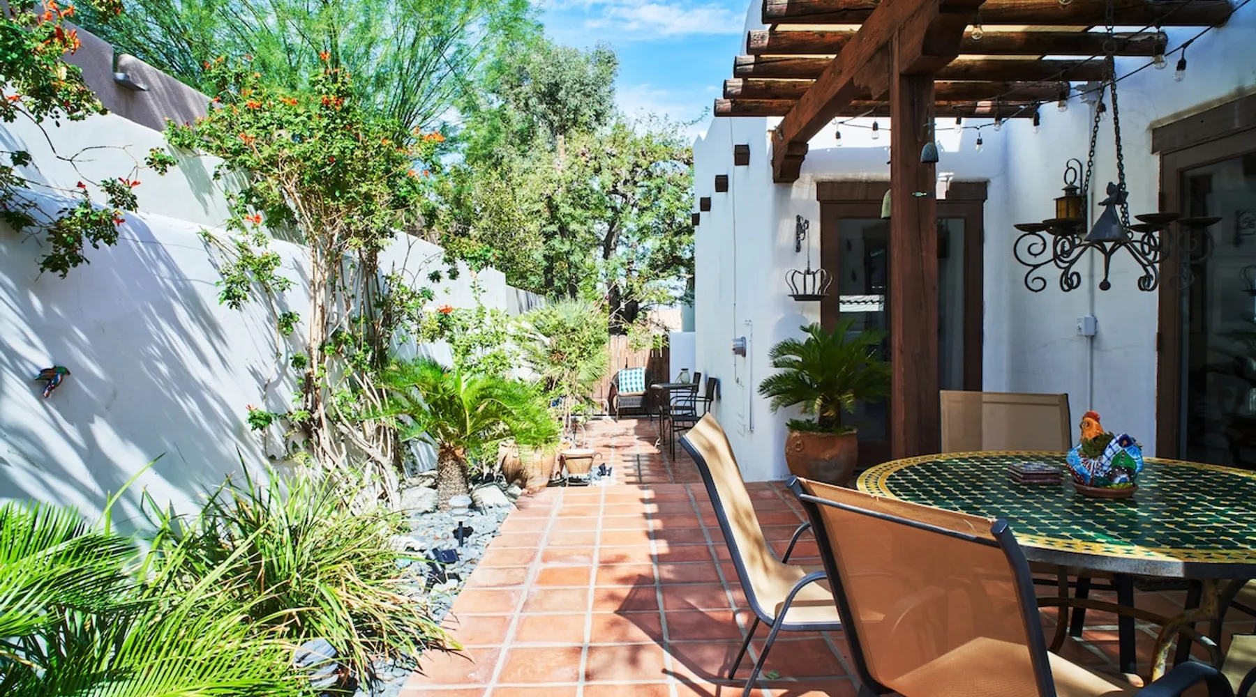 Monthly bookings only please. Our "Hacienda Zen Retreat" in the beautiful & relaxing La Quinta Cove features multiple outdoor living spaces, a private backyard pool, and majestic views of the Santa Rosa mountains. Start your journey at our retreat walking through the large wooden double-doors in the professionally manicured front yard. Flow into the zen-style living room complete with tiled fireplace. Enjoy a dip in the pool, and soak up the mountain views from one of the outdoor dining spaces The space Cook breakfast in the full kitchen, and enjoy it in the relaxing front patio complete with an authentic and tranquil planter pot-style fountain. BBQ dinner next to the private pool to dine al fresco in the string-lighted side patio dining space with room for 6. Then bring the group inside to enjoy a movie on the large 65-in 4K TV and gather around the genuine tiled fireplace. Retreat to one of the 3 comfortable bedrooms, all equipped with plush mattresses, fresh linens, & private TV's. Wake up to the striking views of the distinguished Santa Rosa mountains at our Hacienda Zen Retreat. Guest access Guests will enjoy private access to the entire property, including front, back, and side yards, pool, garage, as well as all indoor spaces! Other things to note Pool Heat is available for an additional fee. The pool is heated with propane, so the cost varies depending on the current cost of propane (very much like the cost of gas, propane costs fluctuate with external economic factors). Generally guests can just use as much heat as they'd like, and pay to refill the tank. The cost can be high depending on the cost of propane. Guests are required to pre-pay for the propane, and then whatever amount is not used can be refunded after checking out. Please note that for monthly reservations, guests are responsible for covering electricity costs. To keep things simple, we collect a deposit prior to arrival and refund any unused portion at the end of your stay based on actual usage. No Outdoor Music Park in the Garage or Driveway Pool Heat is available for an additional fee. The pool is heated with propane, so the cost varies depending on the current cost of propane (very much like the cost of gas, propane costs fluctuate with external economic factors). Generally guests can just use as much heat as they'd like, and pay to refill the tank. The cost can be high depending on the cost of propane. Quiet Hours 8pm-10am By booking the home you acknowledge and agree that if you choose to swim, it is at your own risk and you assume all liability