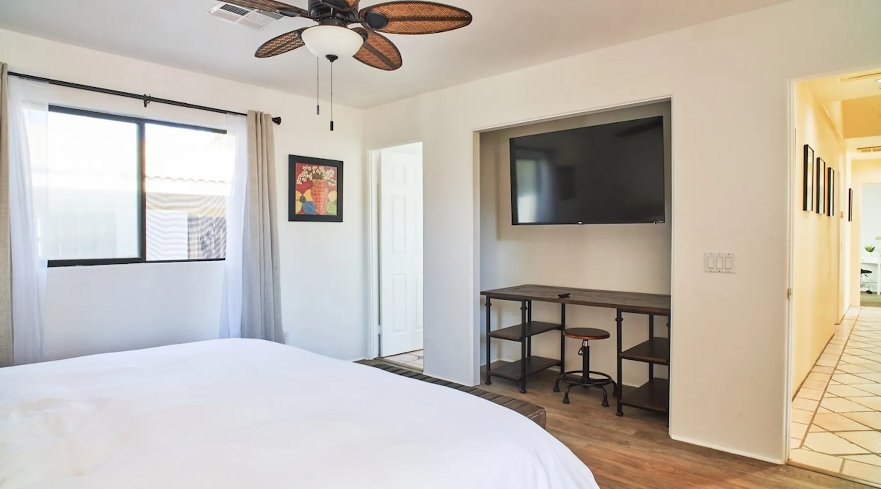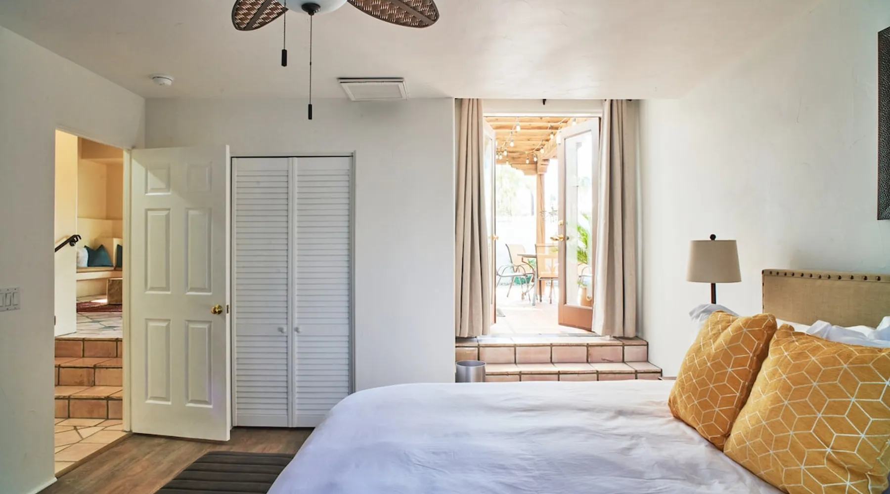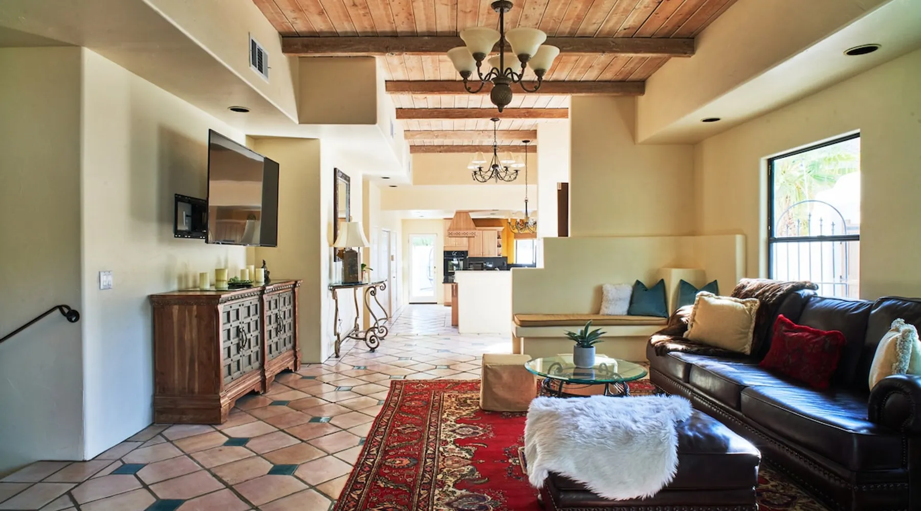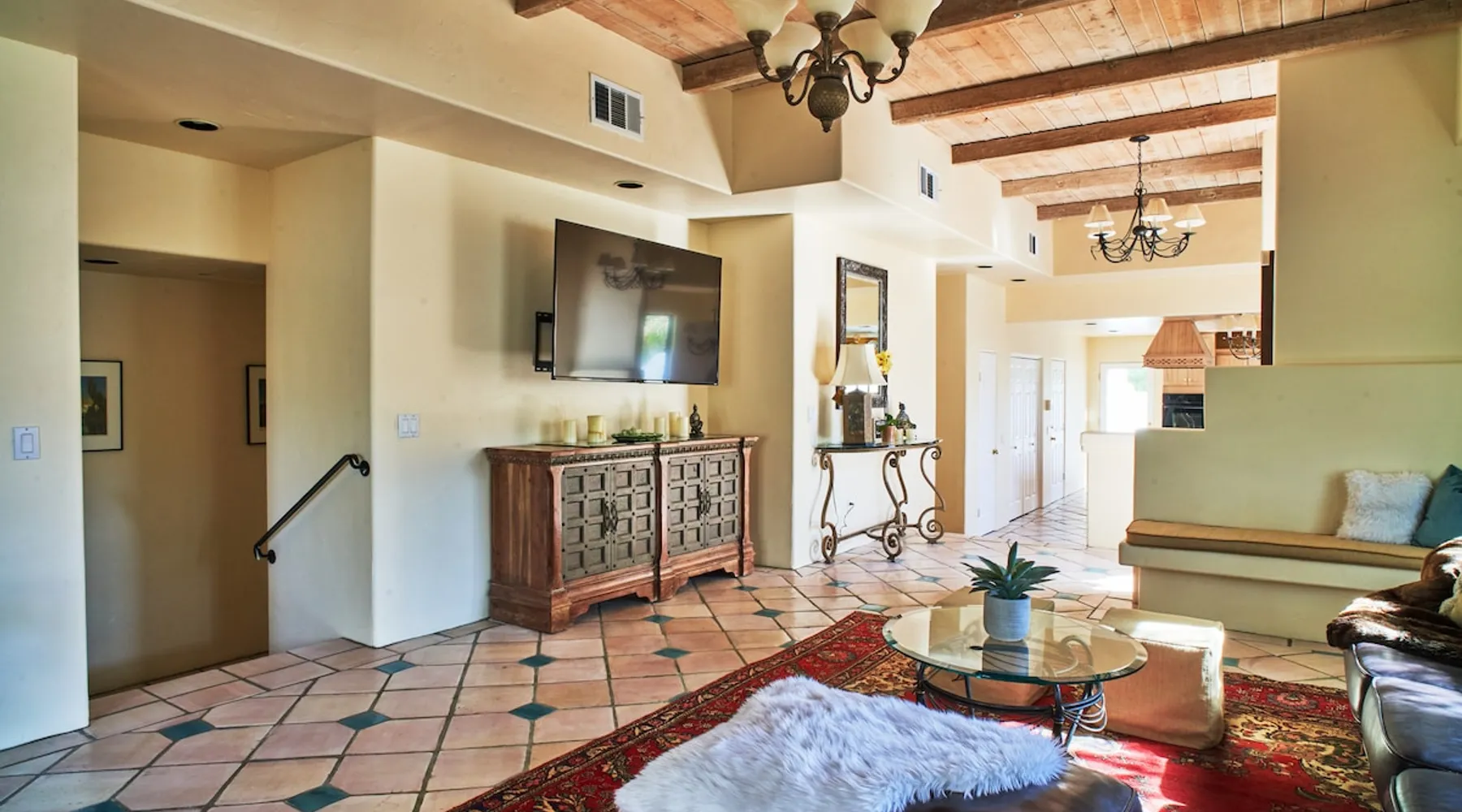 Monthly bookings only please. Our "Hacienda Zen Retreat" in the beautiful & relaxing La Quinta Cove features multiple outdoor living spaces, a private backyard pool, and majestic views of the Santa Rosa mountains. Start your journey at our retreat walking through the large wooden double-doors in the professionally manicured front yard. Flow into the zen-style living room complete with tiled fireplace. Enjoy a dip in the pool, and soak up the mountain views from one of the outdoor dining spaces The space Cook breakfast in the full kitchen, and enjoy it in the relaxing front patio complete with an authentic and tranquil planter pot-style fountain. BBQ dinner next to the private pool to dine al fresco in the string-lighted side patio dining space with room for 6. Then bring the group inside to enjoy a movie on the large 65-in 4K TV and gather around the genuine tiled fireplace. Retreat to one of the 3 comfortable bedrooms, all equipped with plush mattresses, fresh linens, & private TV's. Wake up to the striking views of the distinguished Santa Rosa mountains at our Hacienda Zen Retreat. Guest access Guests will enjoy private access to the entire property, including front, back, and side yards, pool, garage, as well as all indoor spaces! Other things to note Pool Heat is available for an additional fee. The pool is heated with propane, so the cost varies depending on the current cost of propane (very much like the cost of gas, propane costs fluctuate with external economic factors). Generally guests can just use as much heat as they'd like, and pay to refill the tank. The cost can be high depending on the cost of propane. Guests are required to pre-pay for the propane, and then whatever amount is not used can be refunded after checking out. Please note that for monthly reservations, guests are responsible for covering electricity costs. To keep things simple, we collect a deposit prior to arrival and refund any unused portion at the end of your stay based on actual usage. No Outdoor Music Park in the Garage or Driveway Pool Heat is available for an additional fee. The pool is heated with propane, so the cost varies depending on the current cost of propane (very much like the cost of gas, propane costs fluctuate with external economic factors). Generally guests can just use as much heat as they'd like, and pay to refill the tank. The cost can be high depending on the cost of propane. Quiet Hours 8pm-10am By booking the home you acknowledge and agree that if you choose to swim, it is at your own risk and you assume all liability