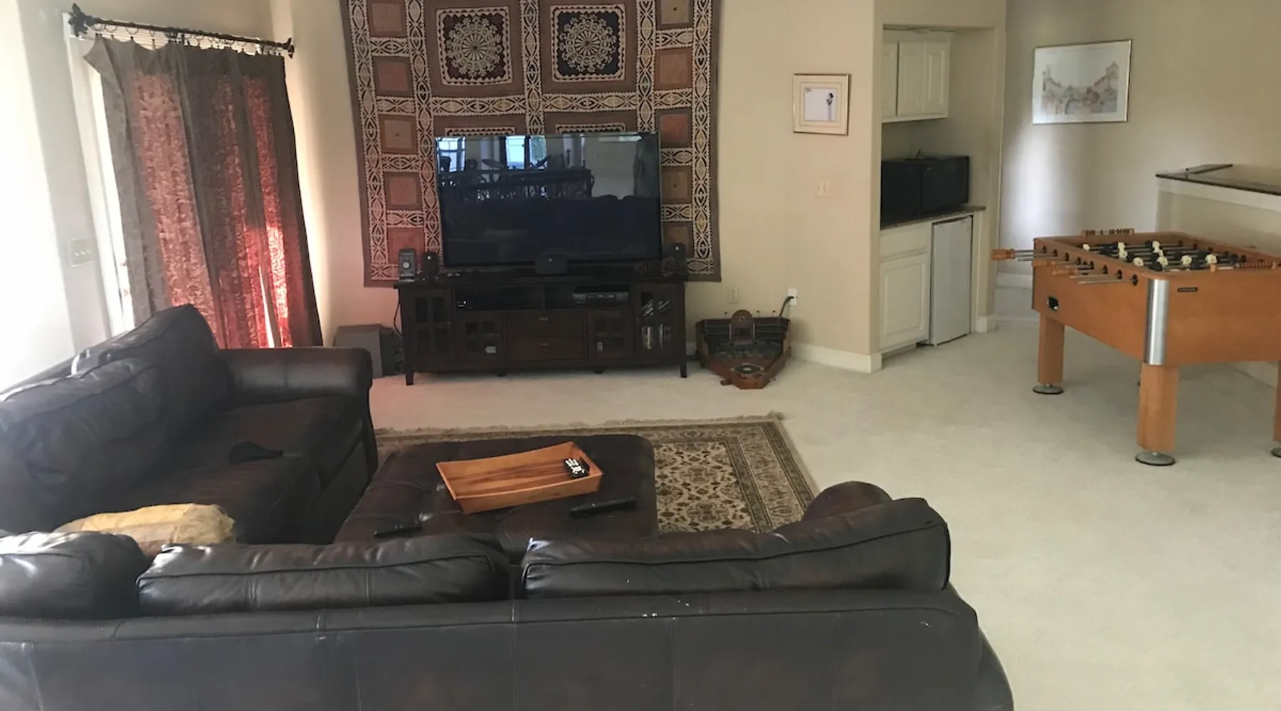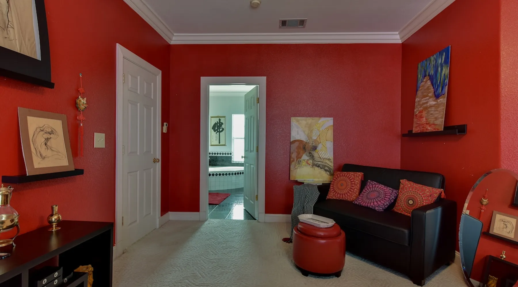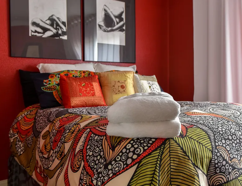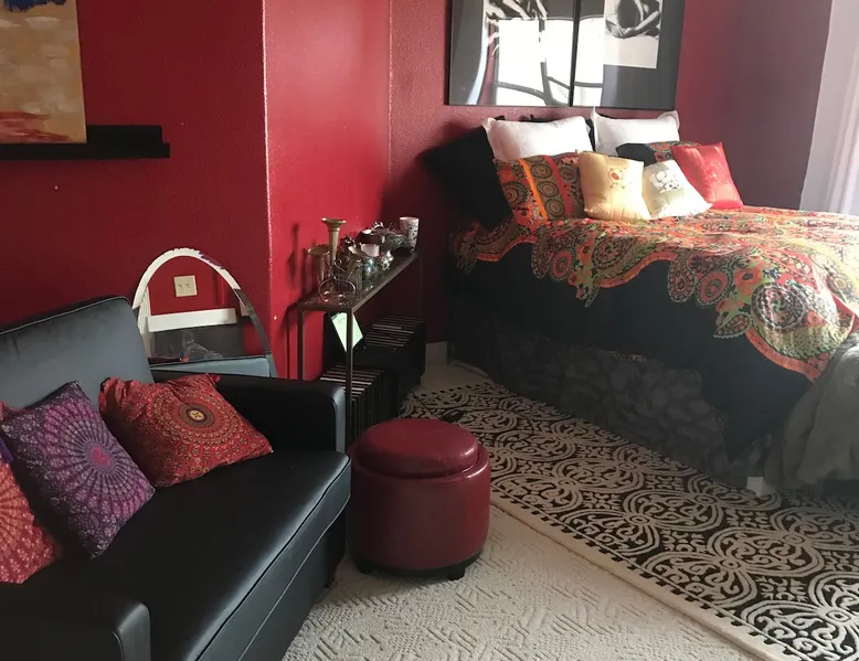 The largest of the rooms available at the Markow House B&B, The Red room is spacious, and extremely comfortable as well as family friendly. It has a pullout twin bed sofa and enough space for a crib and an additional roll away bed if needed. The spacious bath has a separate whirlpool tub and shower as well a private toilet area. It comes with a T.V. DVD player. It could be a room that paired with the Hidden Room (trundle bed/no bath) could accommodate a group who doesn't mind sharing a bath. The space There is plenty of space to play outside and lots of entertainment close by. Guest access family rooms, big screen tv, coffee maker, outdoor grill During your stay I provide breakfast as part of your stay, and you make book a private meal for up to 8 with advanced notice. We offer brunch from 10-12 for an additional 18 dollars per person. We also offer a basic happy hour which includes two pours and two appetizers for 28 per person and a deluxe happy hour which includes a full bottle and 5 appetizers per person for 58 per person. we used to offer mobile massage but Covid has curtailed that for the time being. All extra services are payable by cc at the time of service or by invoice and are done through Be My Guest Catering. The main kitchen is not available for guests use