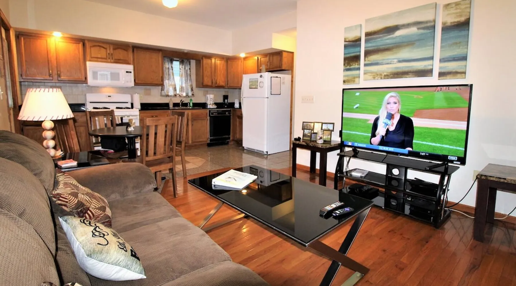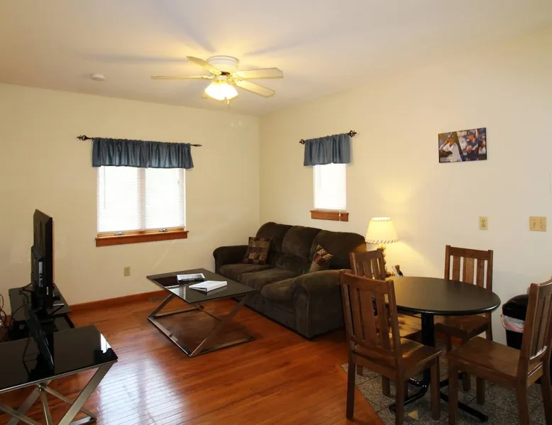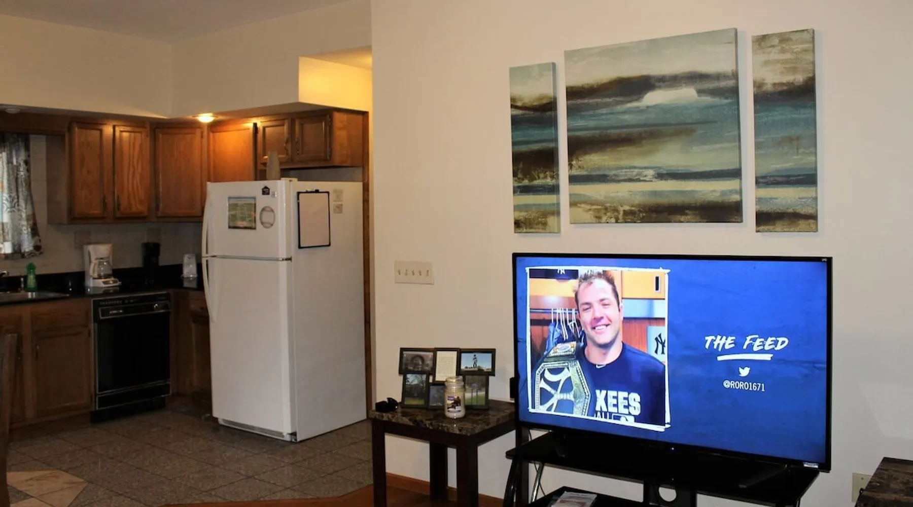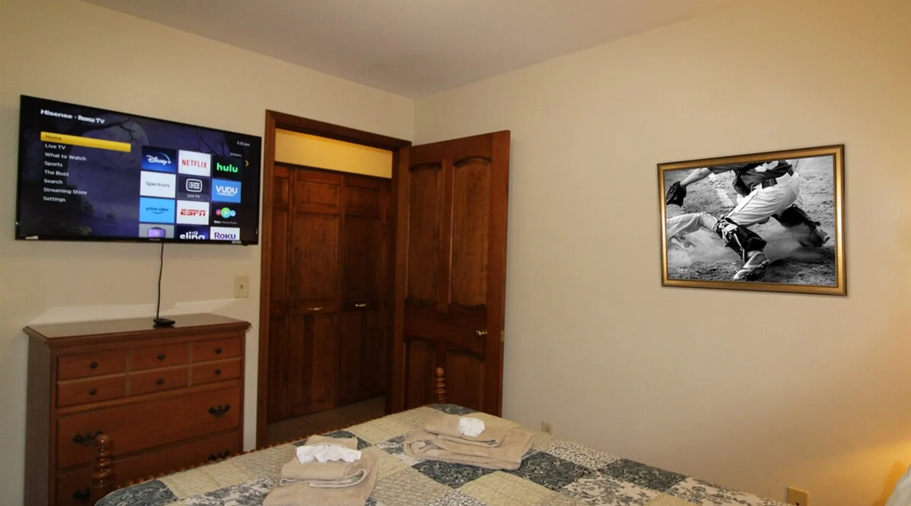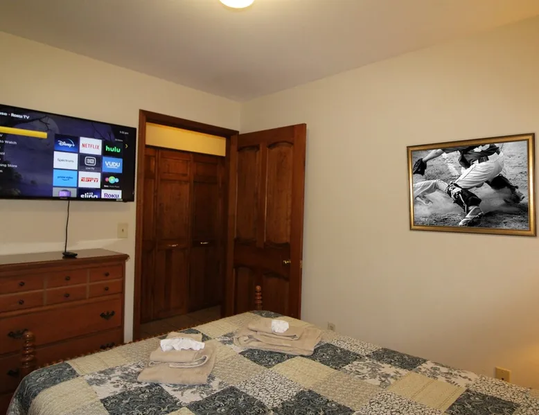 Located in an Oneonta residential setting, is the Championship House. This house is divided into 3 separate units, each completely self-contained. These units are an excellent choice for families traveling together who want the convenience of the same location, while still enjoying their own private accommodations. The Championship House is very convenient to both All Star Village and the Cooperstown Baseball World baseball tournaments. This listing is for the Championship #3 unit only. The space Centrally located, the Park River Apartment is: • 3.5 miles to All Star Village • 3 miles to Cooperstown Baseball World • 19 miles to Cooperstown Dreams Park • 24.7 miles to Cooperstown Guest access This is a 2-bedroom, spacious second floor unit. It has 2 bedrooms - one with a queen size bed and one with a full size bed. There is a large flat screen (55" or larger) smart Roku TV in the living room, with smaller (43" or larger) flat screen smart Roku TV's in each bedroom. Free high speed wireless internet is available for your use. The updated kitchen has a granite countertop and tiled floor. The bathroom is fully tiled, with a tub/shower combo. A gas grill is available for your convenience on the main patio below (Sorry, we cannot put it on the balcony due to fire regulations). There is a FREE shared laundry room in the building. Other things to note There are 2 other units available in this building, both on the ground floor. One has 2 bedrooms and 1 bathroom (Championship #2), and the other is a 2 bedroom, 2 bathroom unit (Championship #1). For larger groups, you can rent all three to have 6 bedrooms and 4 bathrooms that will sleep 12. Please contact us if you are interested in renting the entire Championship House as a larger group accommodation.