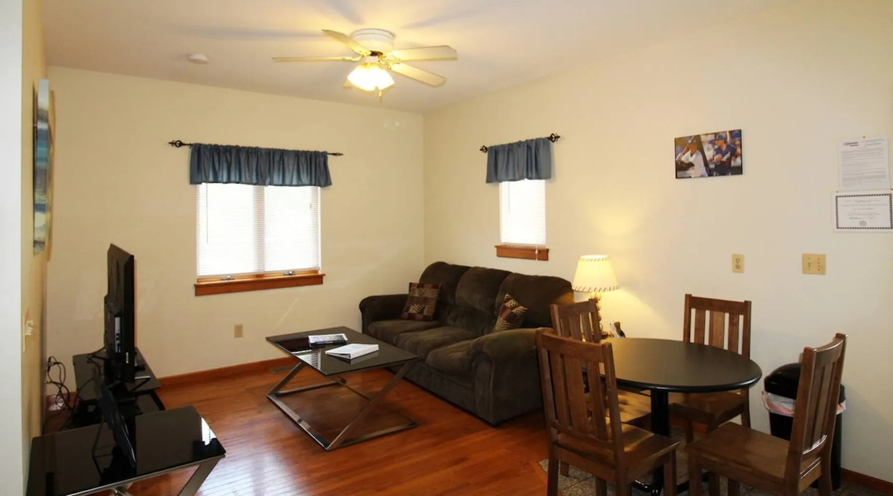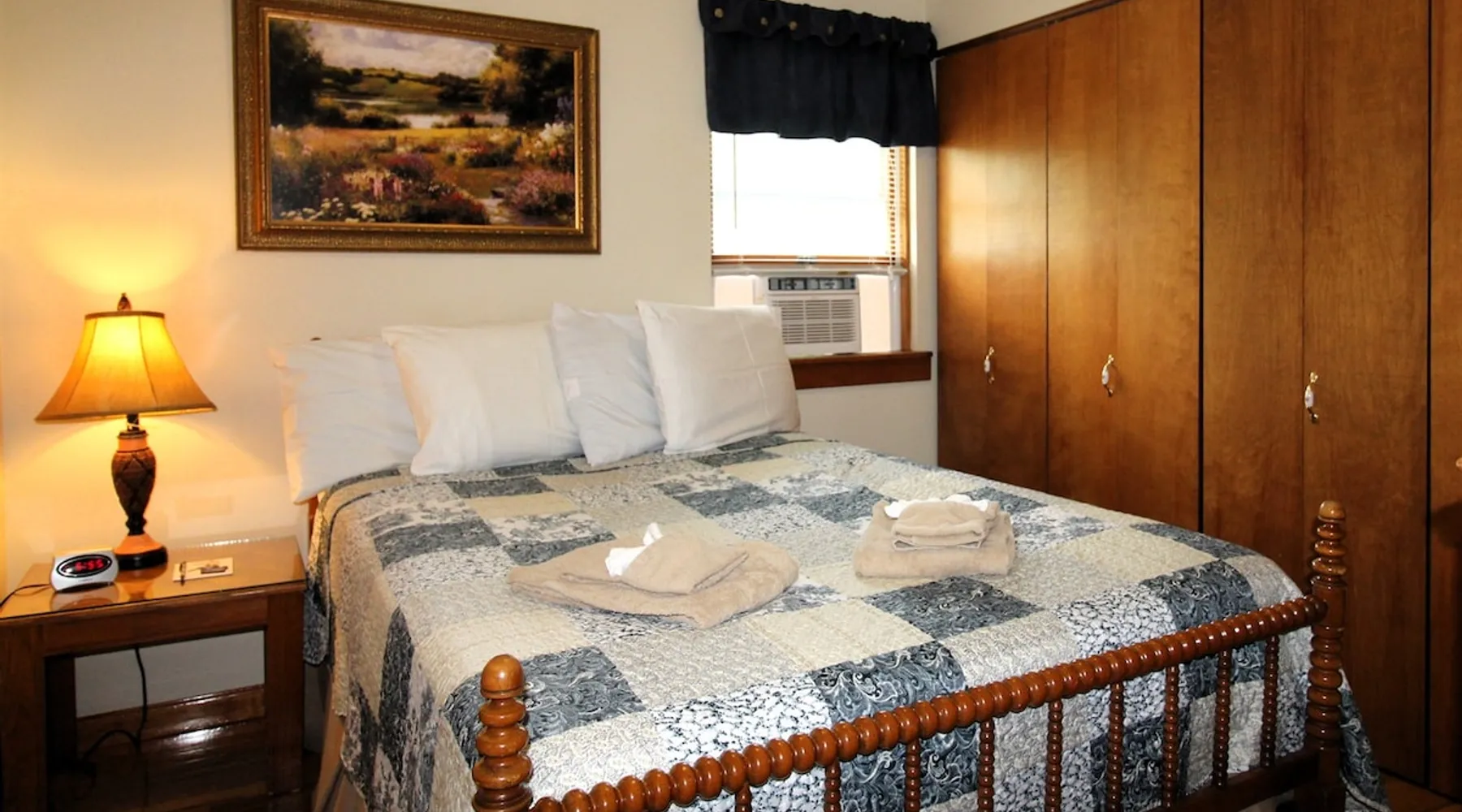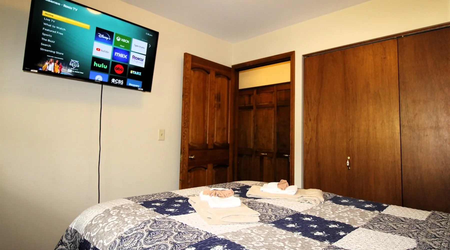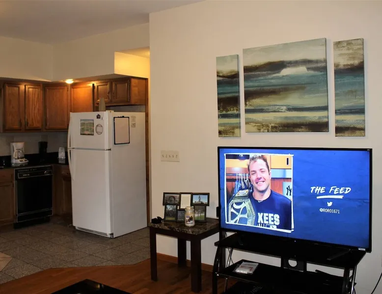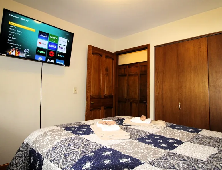 Located in an Oneonta residential setting, is the Championship House. This house is divided into 3 separate units, each completely self-contained. These units are an excellent choice for families traveling together who want the convenience of the same location, while still enjoying their own private accommodations. The Championship House is very convenient to both All Star Village and the Cooperstown Baseball World baseball tournaments. This listing is for the Championship #3 unit only. The space Centrally located, the Park River Apartment is: • 3.5 miles to All Star Village • 3 miles to Cooperstown Baseball World • 19 miles to Cooperstown Dreams Park • 24.7 miles to Cooperstown Guest access This is a 2-bedroom, spacious second floor unit. It has 2 bedrooms - one with a queen size bed and one with a full size bed. There is a large flat screen (55" or larger) smart Roku TV in the living room, with smaller (43" or larger) flat screen smart Roku TV's in each bedroom. Free high speed wireless internet is available for your use. The updated kitchen has a granite countertop and tiled floor. The bathroom is fully tiled, with a tub/shower combo. A gas grill is available for your convenience on the main patio below (Sorry, we cannot put it on the balcony due to fire regulations). There is a FREE shared laundry room in the building. Other things to note There are 2 other units available in this building, both on the ground floor. One has 2 bedrooms and 1 bathroom (Championship #2), and the other is a 2 bedroom, 2 bathroom unit (Championship #1). For larger groups, you can rent all three to have 6 bedrooms and 4 bathrooms that will sleep 12. Please contact us if you are interested in renting the entire Championship House as a larger group accommodation.
