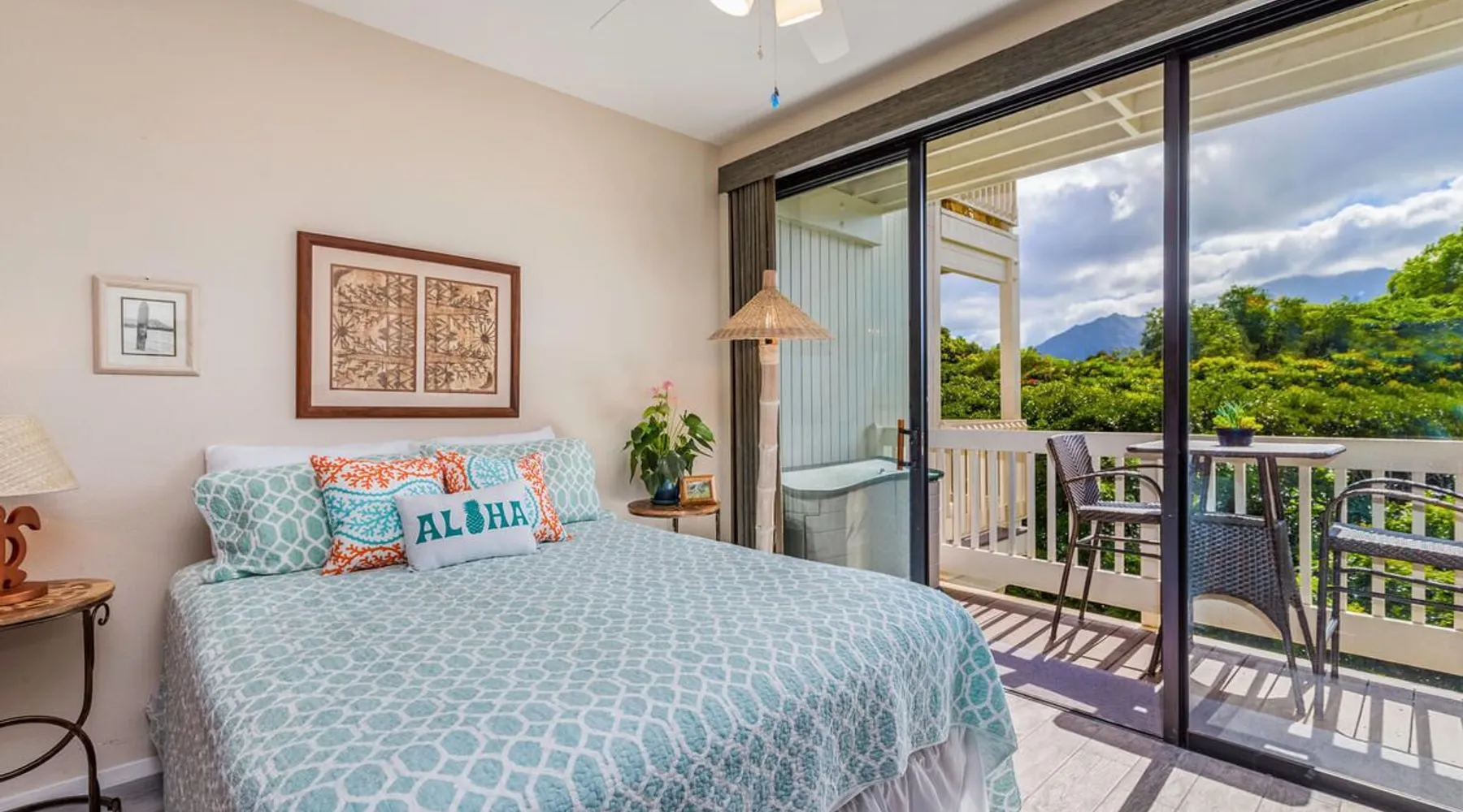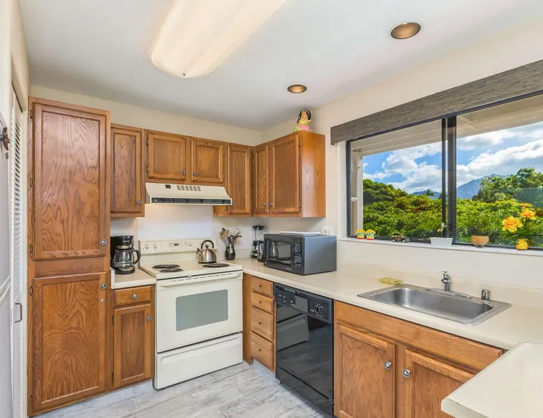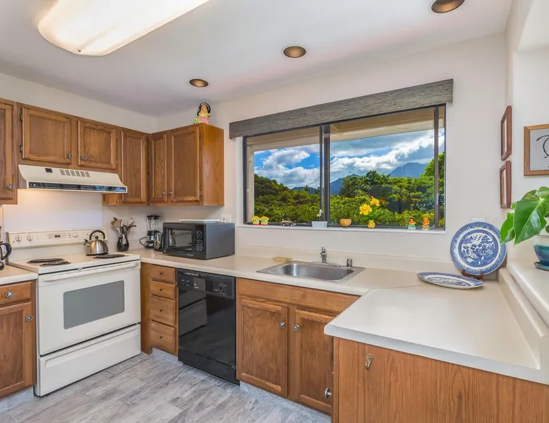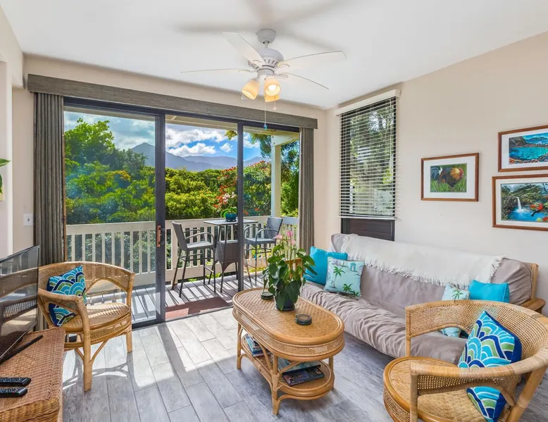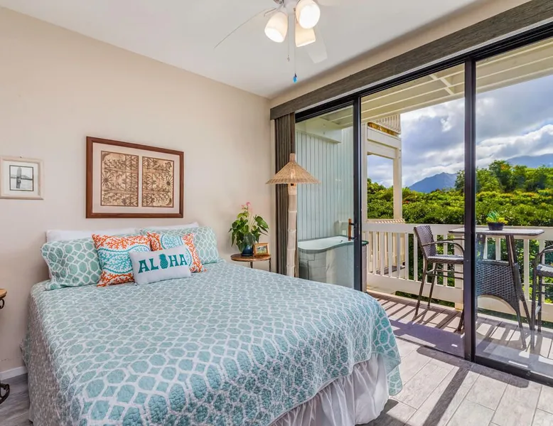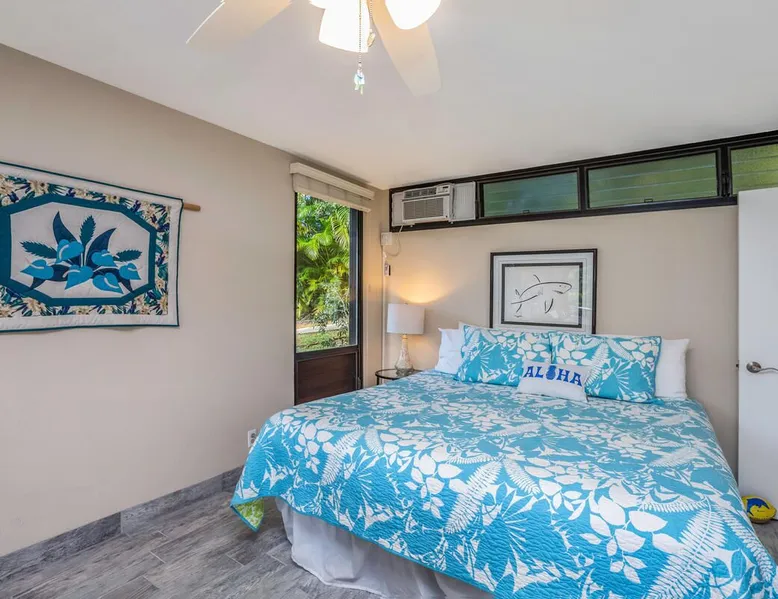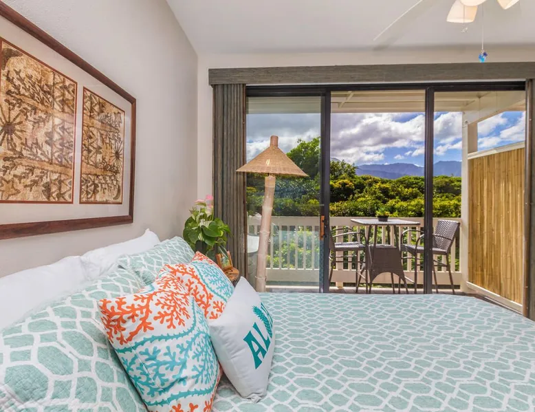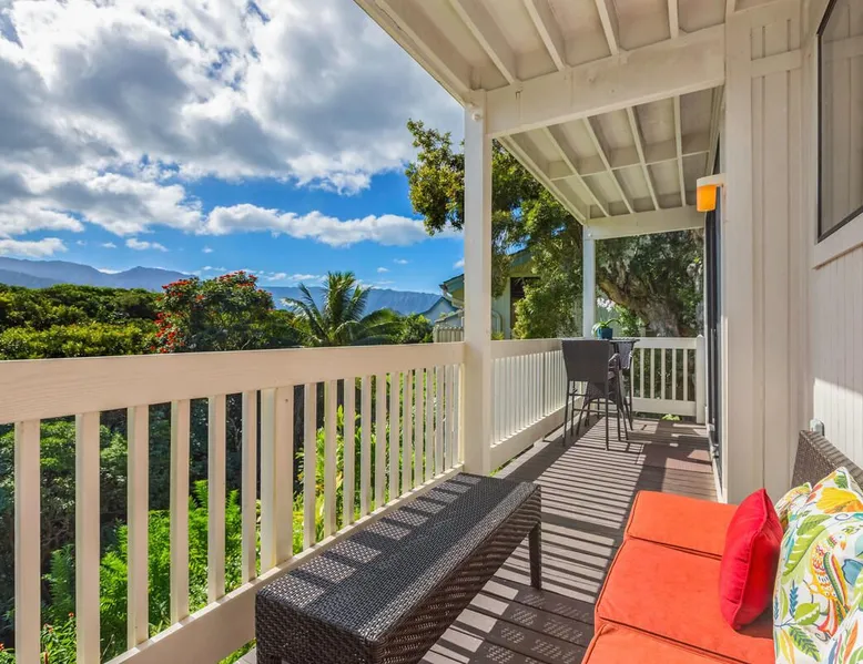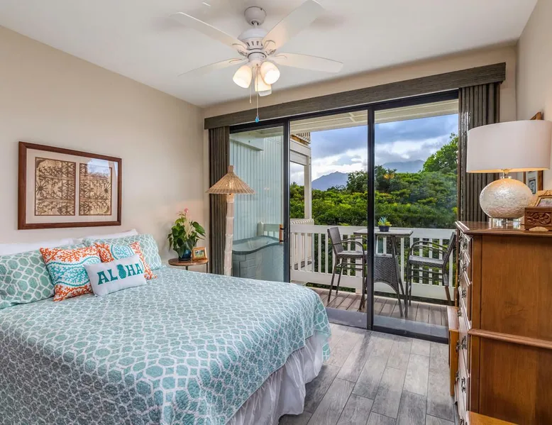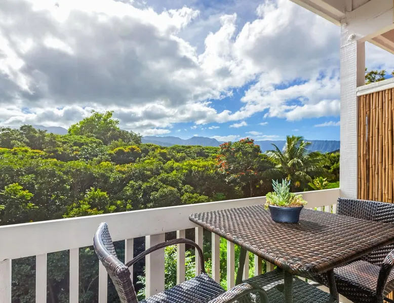 New Listing! Hale Moi 112 units A & B are affectionately called the Treetop Suites for the treetop feel you get from within the unit or on the expansive lanai. This unit is considered a 2 bed, 2 bath unit by County of Kauai but there are no actual dedicated bedrooms (with walls). It is a studio style rental with sleeping area open to living room/dining room areas. Renting Side A and Side B together gives you the ability to lock the doors in between each unit and your side will function like a locked off bedroom. It was recently renovated with new floors, new appliances, new beds and AC. Enjoy everything Princeville has to offer with stunning mountain views, sunsets, a 5 minute drive to Hanalei Bay, or walking distance to St. Regis and its stunning ocean views. Hale Moi is walking distance to several restaurants and bars. Foodland grocery store, and Makai Golf Course are both within 2 miles of this unit. Princeville town is only 2 miles long from entrance to end (St. Regis Hotel) and is uniquely connected by a wonderful walking/jogging path all the way through. Please note: Hale Moi 112 is a lock-out style unit, with units A & B each having its own lockable space yet connected by a common hallway for ease of use between both sides when all doors are open. Considered a 2 bed, 2 bath, each side is set up as a hotel room style with bed, dining room and living room all open in one space. Side A: * King sized bed * Full kitchen, stocked * Washer/Dryer * AC * Free wifi * Dedicated parking stall, free parking * Private lanai with those scene-stealing mountains views, perfect for relaxing with morning coffee or an afternoon cocktail. * Pull out sofa bed for extra guests or those who snore. Unit B: * Efficiency-style * Queen sized bed * Kitchenette separating the living and bedroom areas * TV, Internet provided * Mini Private Lanai * Mid-size stainless steel refrigerator, sink, microwave for simple meal prep and coffee maker, and blender * plates, cups, utensils, the basics *stays longer than 21 days will require a mid stay cleaning(s). Hawaii Life Rentals is a locally owned, licensed real estate company with rentals on Kauai, Maui, Oahu, and Hawaii. We offer on-island personal assistance and Concierge services. Rates do not include taxes, cleaning and applicable fees. Hawaii Life/VRBO bookings: Guests must sign a rental contract within 48 hours of booking to confirm the reservation. TA-105-653-8624-01 TMK