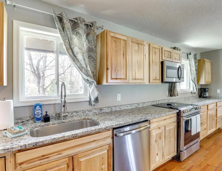 Spacious Accommodations: River Access and Gorgeous Views Pisgah Forest Home! in Pisgah Forest offers a spacious holiday home with three bedrooms and two bathrooms. The living room provides ample space for relaxation. Modern Amenities: Guests enjoy free WiFi, air-conditioning, a washing machine, and a fully equipped kitchen with a refrigerator, microwave, dishwasher, oven, stovetop, toaster, and coffee machine. Additional amenities include a fireplace, barbecue, dining table, outdoor dining area, and a TV. Convenient Location: Located 18 mi from Asheville Regional Airport, the property is 17 mi from Caesars Head State Park and 24 mi from the North Carolina Arboretum. Free toiletries and a private entrance enhance the stay. The fireplace is a top feature of this holiday home. Boasting a private entrance, this air-conditioned holiday home comes with 1 living room, 3 separate bedrooms and 2 bathrooms with a bath and a shower. Guests will find a stovetop, a refrigerator, a dishwasher and kitchenware in the well-fitted kitchen. The holiday home also includes a barbecue. The spacious holiday home features a washing machine, a coffee machine, a wardrobe, a flat-screen TV with cable channels, as well as river views. The unit has 6 beds.
