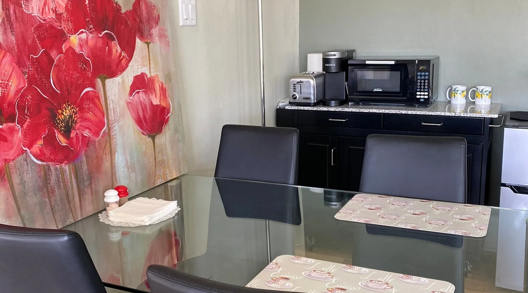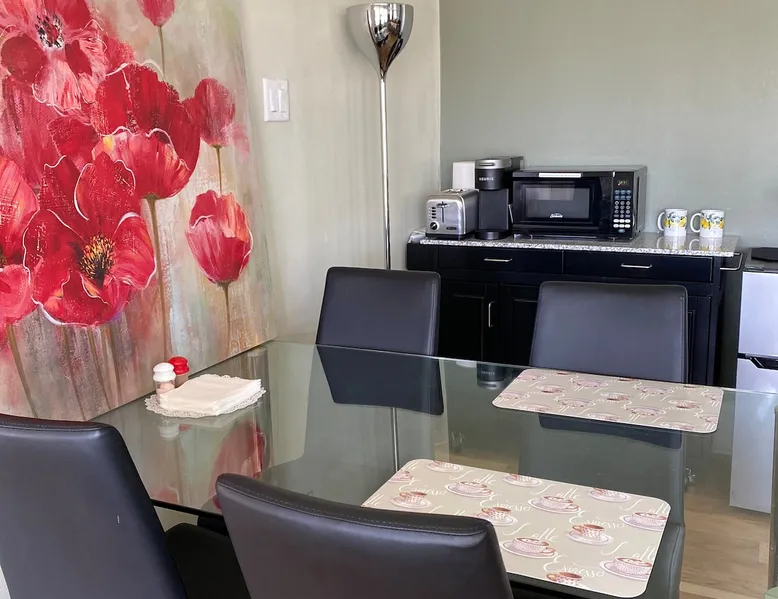 For Travel ~ Relaxation ~ Business Enjoy a convenient overnight stay or a relaxing getaway in our spacious sunlit suite for 1-2 adults w/ own entrance on the Bighorn River (1 queen bed ) ~ Perfect travelers' stopover to Tetons, Cody & Yellowstone ~ Walk or drive to the historic downtown and restaurants ~ Free hot springs ~ Hike, fish or float the river ~ Visit the acclaimed Wyoming Dinosaur Center ~ Plan fascinating day trips The space A peaceful, quiet, contemporary guest suite in a ranch style house conveniently located in town, on the river just outside the state park boundary. ~ Pet free and smoke free lodging ~ Private entrance and street parking ~ Quality queen bed with memory foam mattress & natural fiber bedding. ~ En suite bathroom with shower ~ Wifi and 55" smart TV with cable ~ Kitchenette with fridge/freezer, microwave, Keurig coffee and toaster ~ Dining area ~ Computer desk and USB port access Complimentary food offerings provided: ~ Fresh brewed coffee and selection of teas, filtered drinking water and other miscellaneous snacks or breakfast items Guest access Enjoy your coffee indoors or outdoors on the porch overlooking the wildlife activities on the river. Easy access to the river for wading, fishing, floating or boating. Cooking is not available but excellent restaurants are minutes away for dining in or take-out. For your convenience, there is a microwave and fridge with separate freezer that will hold a couple frozen meals. We do not have laundry facilities on site for guests but there is a clean, 24-hour laundromat close by. Other things to note Dining Choices: our popular sports bar and micro brewery, Black Bear breakfast café & bakery, Mexican, Thai Bangkok, modern new Pizza Hut, McDonalds, an impressive health food store w/ smoothie bar, soups and salads, plus other fast food restaurants. Thermopolis also has a full-service grocery store, truck stop and the 24-hour Maverick convenience store w/ service center. (See Guidebooks for more detailed information.) This is a small town of 2700 people. Grocery stores are open 7 days a week until 9 pm and same for most restaurants. Other interesting local shops for gifts and souvenirs are open Monday - Saturday and closed on Sunday, in general.