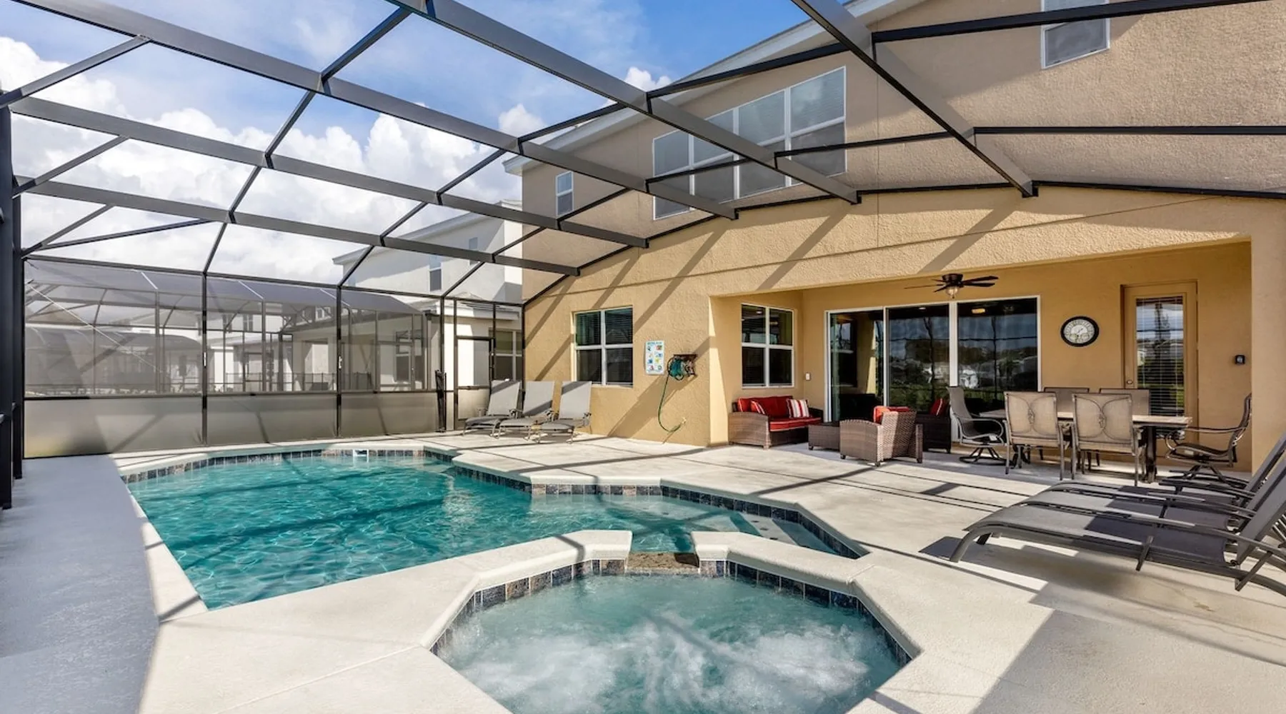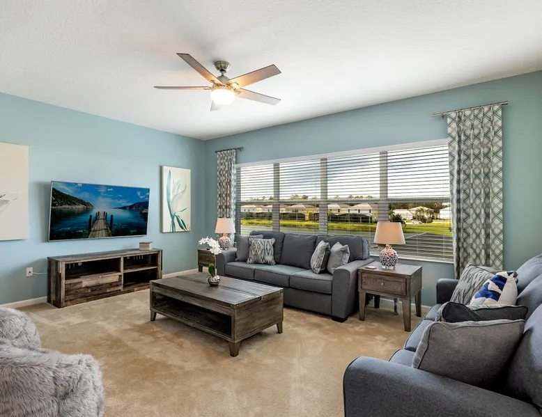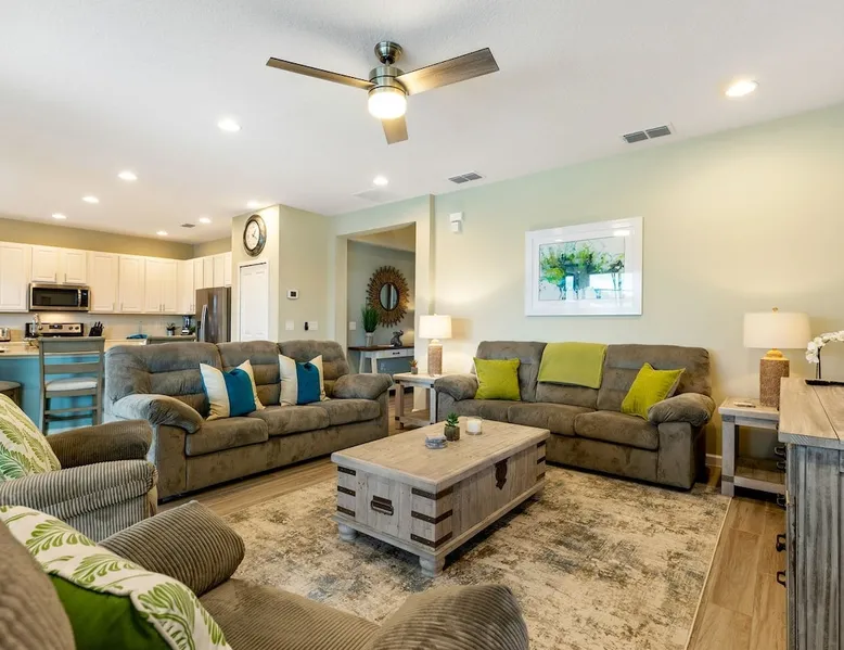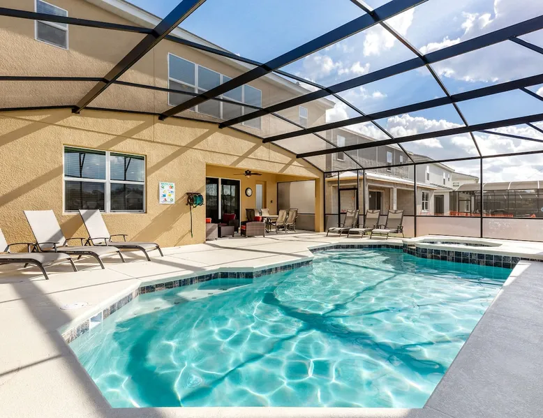 • Luxurious 6BR / 6BA villa in gated Bella Vida Resort • South-facing private pool & spa with stunning lake views • Spacious pool deck with shaded dining & sun loungers • Two stylish living areas with large Smart TVs • Surf-themed game room with pool, air hockey & foosball • Modern kitchen with island & dining for 8 • Fast WiFi, private parking & resort amenities • Pack ’n Play, high chair, towels & linens provided • Complimentary starter pack & coffee station The space Welcome to "Lake Breeze" by WHITE ROSE VILLAS—perfect for couples, families, and groups. Professionally cleaned, thoughtfully prepared, and designed for a relaxing stay. ★ Every stay includes a private pool, free parking, in-home washer & dryer, and a welcome pack. PERFECT FOR: • Families visiting Disney & theme parks • Couples seeking a private, relaxing getaway • Groups traveling together • Longer stays and snowbirds LOCATION HIGHLIGHTS: • Near Walt Disney World and Central Florida’s top attractions • Close to shopping, dining, and grocery stores • Located in a resort-style community with amenities (gated) • Easy access to major highways Located in Bella Vida Resort, your gateway to an unforgettable vacation experience in the heart of Kissimmee, Florida. Nestled in a serene and picturesque setting, Bella Vida offers an ideal retreat for families, couples, and groups seeking a blend of relaxation and excitement. Experience Unmatched Luxury and Comfort. Enjoy your time here and create lasting memories! 💡Not ready yet? Tap the ❤️ to save & book later! PROPERTY HIGHLIGHTS • Prime Location: Just a short drive to Disney and Universal attractions • Lake View & Spa: Enjoy serene views and a relaxing soak • Private Pool: Your own private oasis to cool off and unwind (South-facing) • Outdoor Oasis: Comfortable dining and lounging area by the pool • Spacious Accommodation: Perfect for families and groups • Loft Living Area: Extra space for relaxation or entertainment • High-speed WiFi • Modern Amenities: Fully equipped kitchen, coffee and tea station • Luxury Essentials: Towels and linens provided • Family-Friendly: Pack 'N Play and high chair • Convenient Location: Close to shops, restaurants, and entertainment • Free Parking: Hassle-free and secure • Managed by White Rose Villas: Reliable service and care ACCOMODATION • Living Area 1: Large family room with plenty of comfortable seating, TV, open to the kitchen and dining area with direct access to the pool deck • Living Area 2: Upstairs living room with 2 sofas TV and a ceiling fan • Kitchen: Fully updated kitchen with stainless steel appliances and a large island with breakfast bar seating for 5 • Dining Area: Large family dining table with seating for 8, open to the kitchen and family room • Game Room: Surf-themed games room with a pool table, air hockey, foosball, and gaming chairs BEDROOMS AND BATHROOMS • Bedroom 1 (Ground Floor): King bed, ceiling fan, TV, and ensuite bathroom with double vanity and large walk-in shower • Bedroom 2: King bed, ceiling fan, TV, and ensuite bathroom with double vanity and large walk-in shower • Bedroom 3: King bed, ceiling fan, TV, and ensuite bathroom with walk-in shower • Bedroom 4: Queen bed, ceiling fan, TV, and ensuite bathroom with tub/shower combo • Bedroom 5: 2 Queen beds, ceiling fan, TV, and ensuite bathroom with walk-in shower • Bedroom 6: 2 Single beds, ceiling fan, TV, and ensuite bathroom with walk-in shower POOL AREA • Fully Screened Private Pool & Spa (South-facing) • Covered outdoor dining with seating for 6 • Guests will enjoy soaking up the sun on the sun loungers • Optional pool and spa heating (additional charges apply) • Pool Size: Length:26ft, Width:13ft, Depth:3ft-5ft Popular Optional Extras 🔥 Pool Heating – $40/day (discounts for 7+ nights) Recommend Oct to Apr 🍔 BBQ Rental – $105/stay (includes propane & cleaning) 🧹 Mid-Stay Cleaning – available on request 🕒 Late Check-Out – subject to availability 🍼 Baby & Toddler Gear – Pack ’n Play & high chair included Guest access The whole house is yours, including the private pool & games room!!! Now, that's a vacation! We want our guests to have a magical stay. Here are a few benefits of booking with us: ✔️ Express Check-in – no time wasted collecting keys from an office ✔️ All homes come with 1 x travel cot / pack n play, 1 x highchair ✔️ Dedicated Property Management Team ✔️ Return Guests Perks Other things to note 🕒 CHECK-IN & CHECK-OUT • Standard check-in: 4:00 PM • Standard check-out: 10:00 AM • Early check-in or late check-out may be available for a small fee — just send us a message! 🔑 EASY ACCESS • Express check-in with emailed door codes • No office stop required — arrive and relax! 🍽️ SELF-CATERING HOME We provide a starter pack to help you settle in: ✔️ Toilet paper ✔️ Paper towel ✔️ Trash bags ✔️ Dishwasher tablets ✔️ Laundry pods ✔️ Dish soap ✔️ Hand wash ✔️ Coffee & tea station Guests should bring: • Toiletries (shampoo/conditioner/body wash) • Cooking condiments (oil, salt, pepper, etc.) 🏡 AMENITIES INCLUDED ✔️ Bedding & towels ✔️ Pool towels ✔️ Free WiFi ✔️ Fully equipped kitchen (major & small appliances) ✔️ Pots, pans, knives, utensils ✔️ Plates, glasses, mugs & silverware ✔️ Outdoor furniture Your home-away-from-home! 🔥 POOL & SPA HEATING (RECOMMENDED OCT–APR) • Pool & spa heating is recommended from October–April. • The spa is integrated with the pool (not a standalone hot tub). It has gentler bubbles and typically reaches 95–100°F. The spa only heats when pool heat is on. • Pool heat must be booked for the full duration of your stay, as the system needs consistent run time to maintain temperature. • The home uses a gas pool heater, which heats more quickly and reliably than electric systems. Gas he
