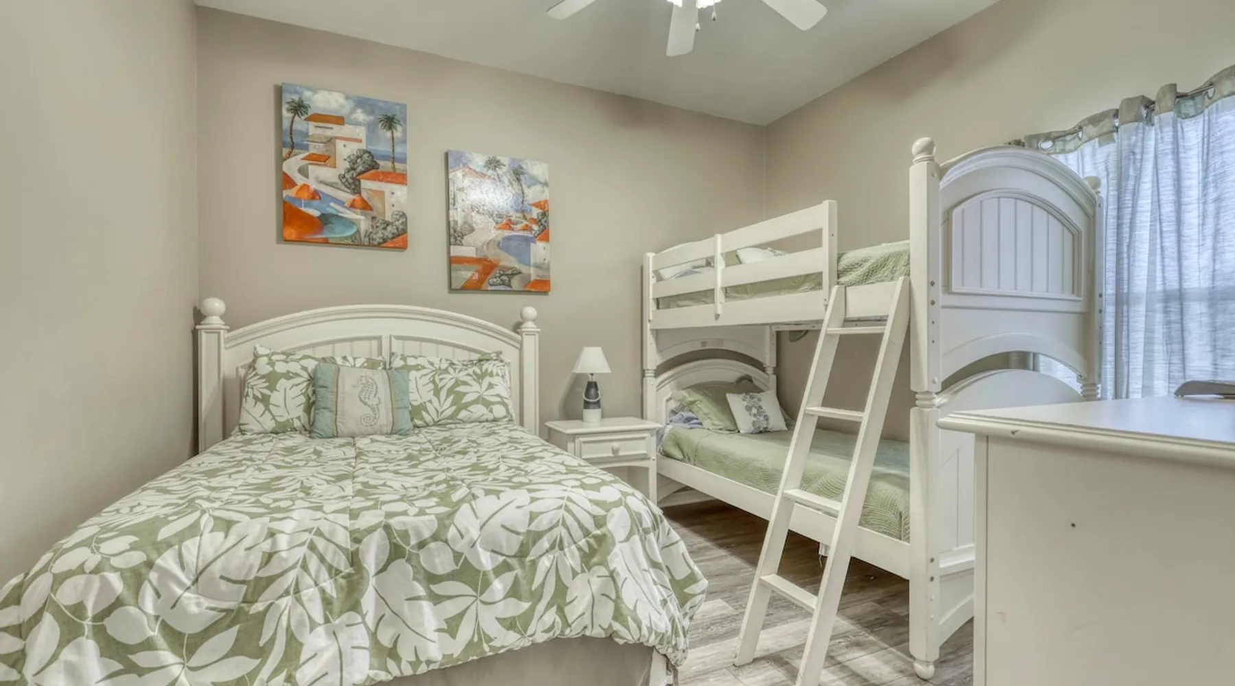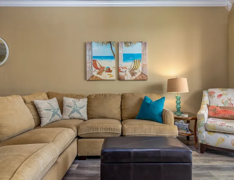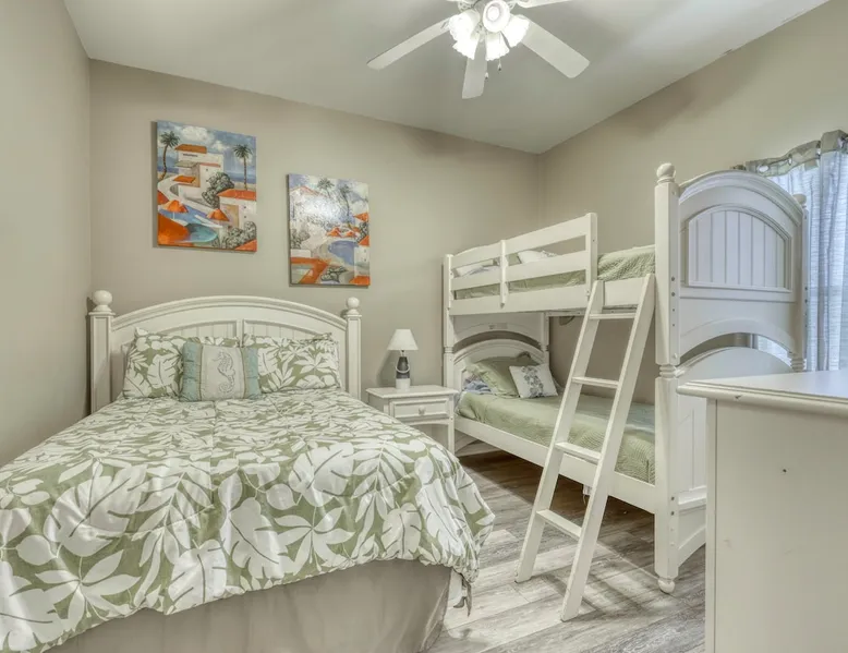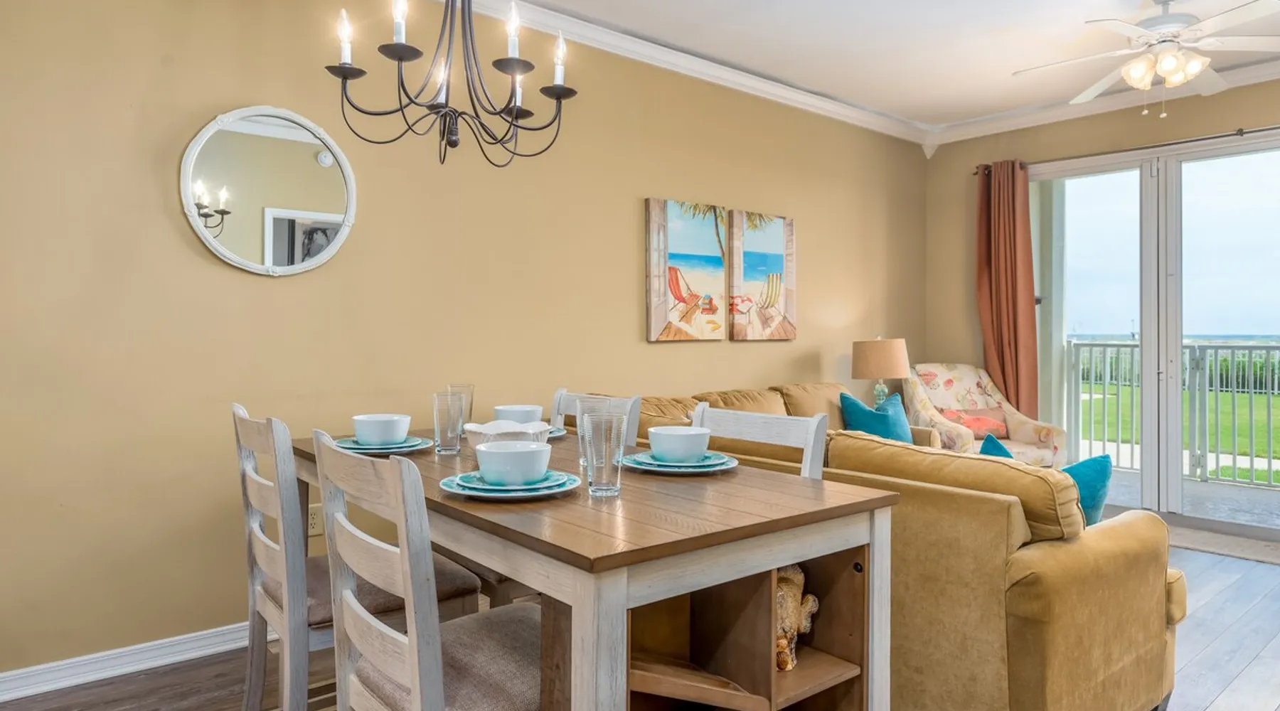This is a beautifully-decorated 1st floor walk-out unit, at the Inn on Dauphin Island. This beautiful unit is steps to the pool and beach boardwalk. It has a king in the master and a full bed plus bunk bed in the second bedroom. The living room has a large comfortable couch and a dining room table that seats 6. The kitchen has all stainless steel and in completely stocked. This unit has wireless internet and televisions in all rooms. Sit on your ground floor, private patio to watch the Other things to note As with all of our Dauphin Island Beach Rentals, all linens and towels are provided, WIFI, along with a fully-outfitted kitchen. There will be a starter pack of toilet paper, paper towels, and trash bags; please plan on bringing more for day 2 ;). A great beach vacation is waiting on you! Please note the following: 1. Minimum Age for the Primary Renter is 25, and Primary Renter must be present for the entire stay. 2. Maximum Occupancy numbers include Children 3 and over and cannot be exceeded at any time. 3. All of our Homes are Non-Smoking. 4. A signed Rental Agreement is Required, which contains additional Rules and Guidance. 5. This property does not allow weddings or parties. 6. Check-in time is 3 pm, and check-out time is 10 am. 7. Start dishes and linens before departure. 8. This home is NOT pet-friendly.