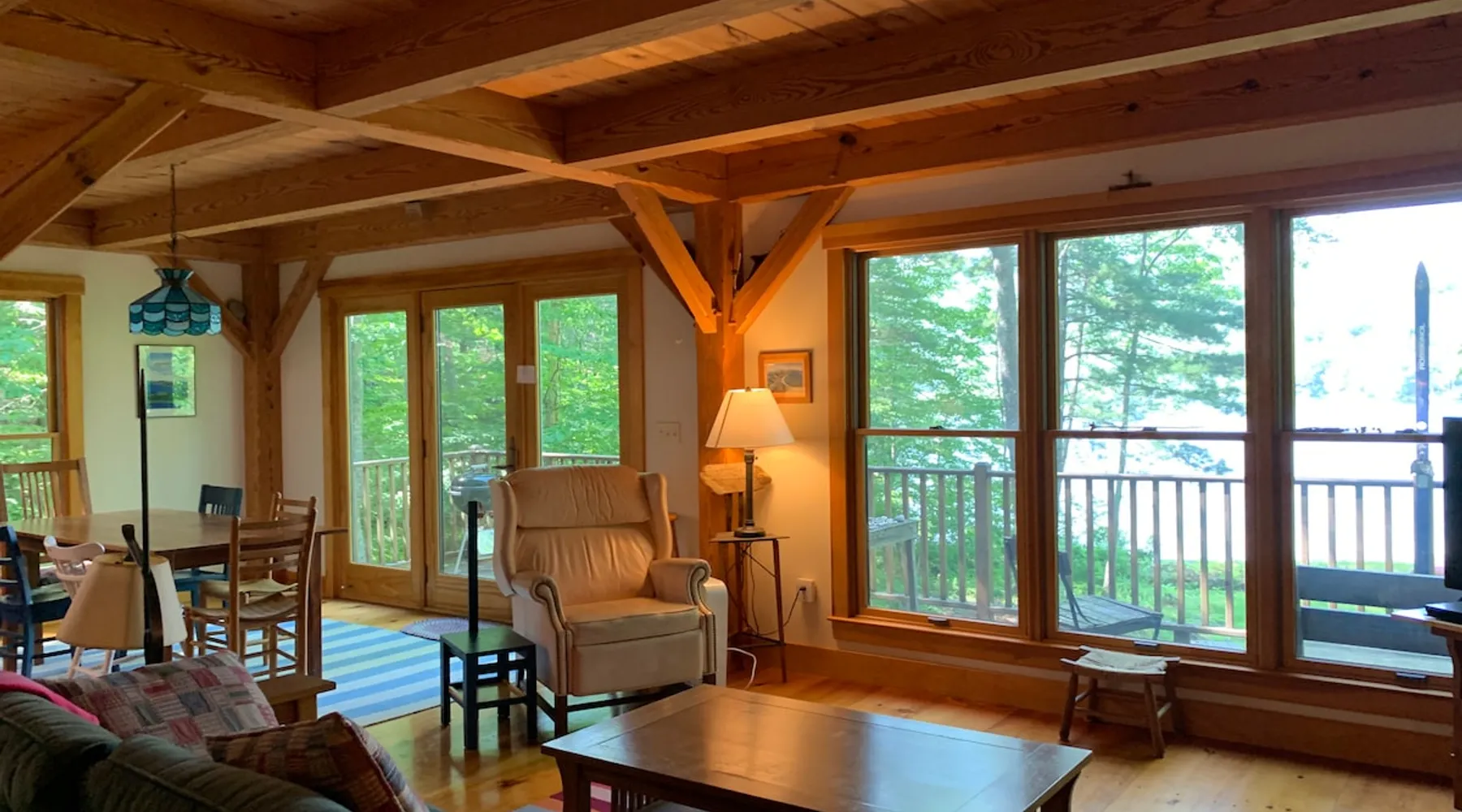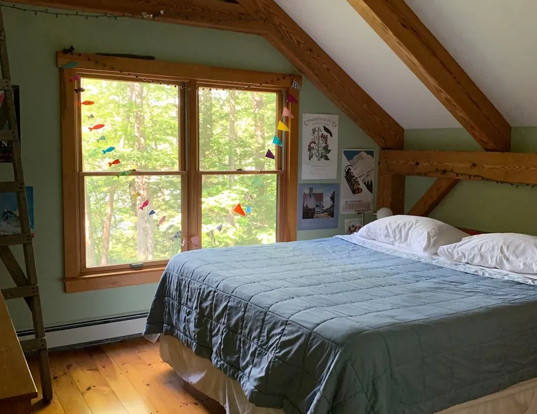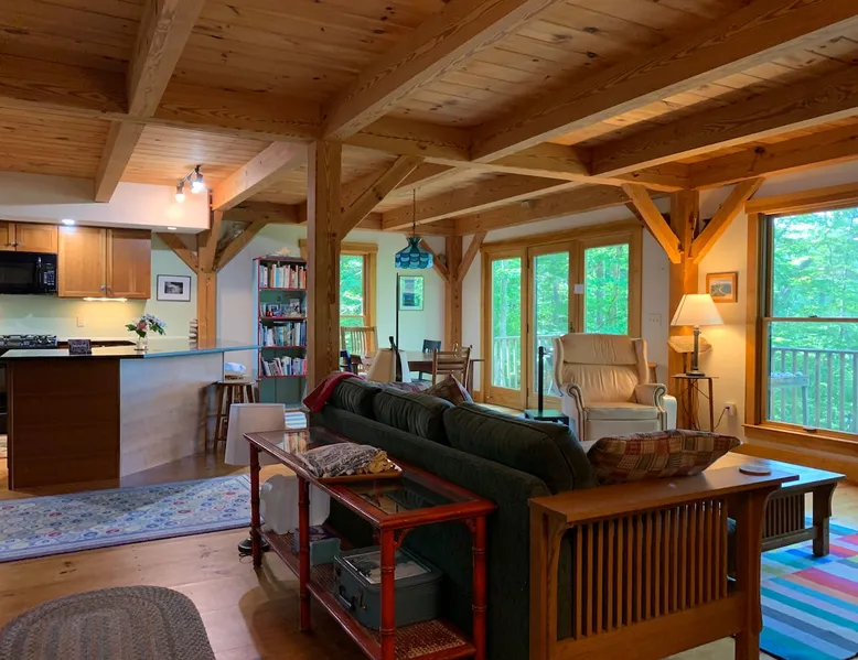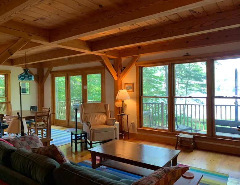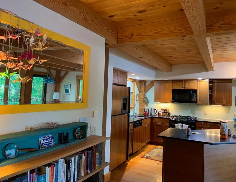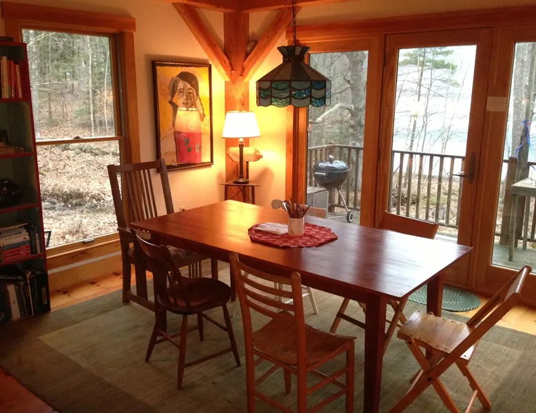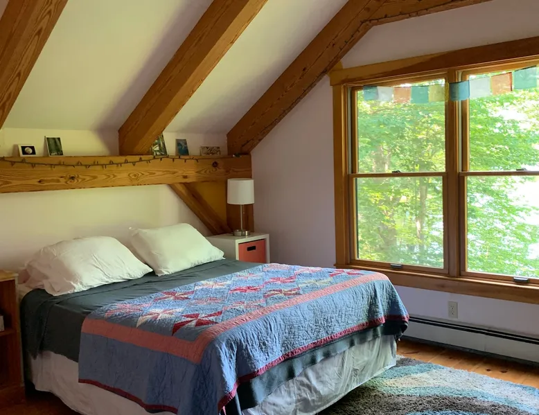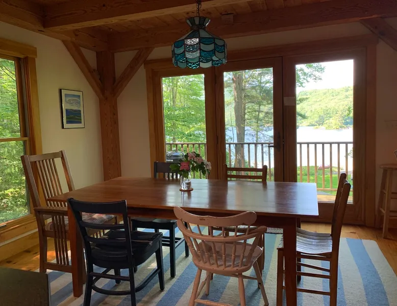 A beautiful and simple open-layout with gorgeous views of the water from large windows on main floor and bedrooms. Great kitchen space for cooking and socializing. All essentials and amenities included. Our guests love our home! The space This wonderful post and beam home was built in 2005. It has great open spaces with cathedral ceilings upstairs. The house isn’t too big (1500 sq ft), so it’s not overwhelming or overpriced! It’s just simple vacation living. The house is cool in the summer and warm in the winter. There are two bedrooms upstairs (approximately 13 x 15 ft each) with tall ceilings and large windows for beautiful views of the lake. There is an open area that is suitable as a bedroom with a bed on the upstairs landing. Amenities include wifi, a kitchen fully stocked with plates, utensils, pots, pans, etc. washer/dryer, off-street parking (uncovered driveway). The downstairs area is an open space containing the kitchen, dining room, and living room. There is a great kitchen with a huge peninsula granite countertop separating the kitchen from the dining room, an area perfect for socializing while cooking. Nearby activities include hiking, swimming, canoeing, and rowing right out the back door (row boat, canoe, and adult life jackets included). The house is a 5 minute drive or taxicab ride from downtown Camden’s many shops and restaurants, or a 15 minute drive to downtown Rockland or Lincolnville. Just a half mile from the Mighty Camden Snow Bowl/skiing and National Toboggan Championships in the winter. In the summer, this is a peaceful home away from the hustle and bustle of Camden, yet it’s only a 5 minute drive away. Easy-going and helpful host. Coffee and tea are included. Extra mattresses are available. I do own a small dog, but I am allergic to some breeds, so please check with me before bringing pets. Guest access Lake access with a canoe. On site laundry. Full kitchen. No shared areas - the renter has access to entire house and property. Other things to note Camden is an amazing destination for all ages. It's also a great location from which to explore the area, with easy drives to Acadia National Park and Popham Beach, or easy drive and ferry to Monhegan/North Haven/Vinalhaven Islands.