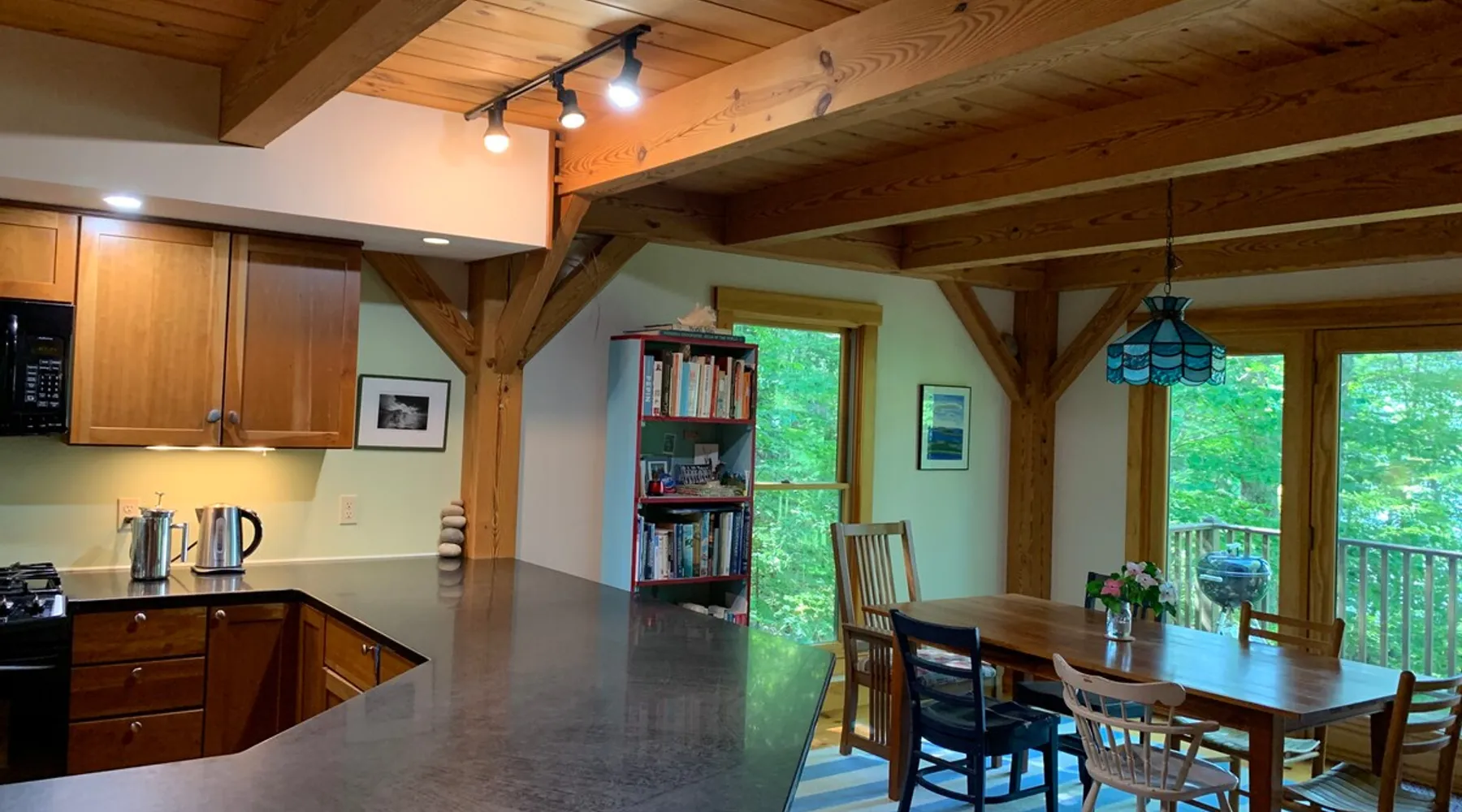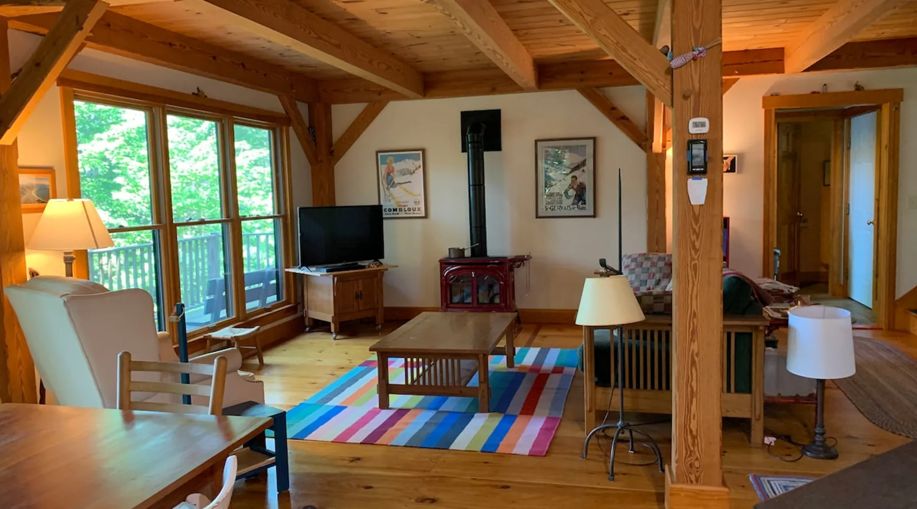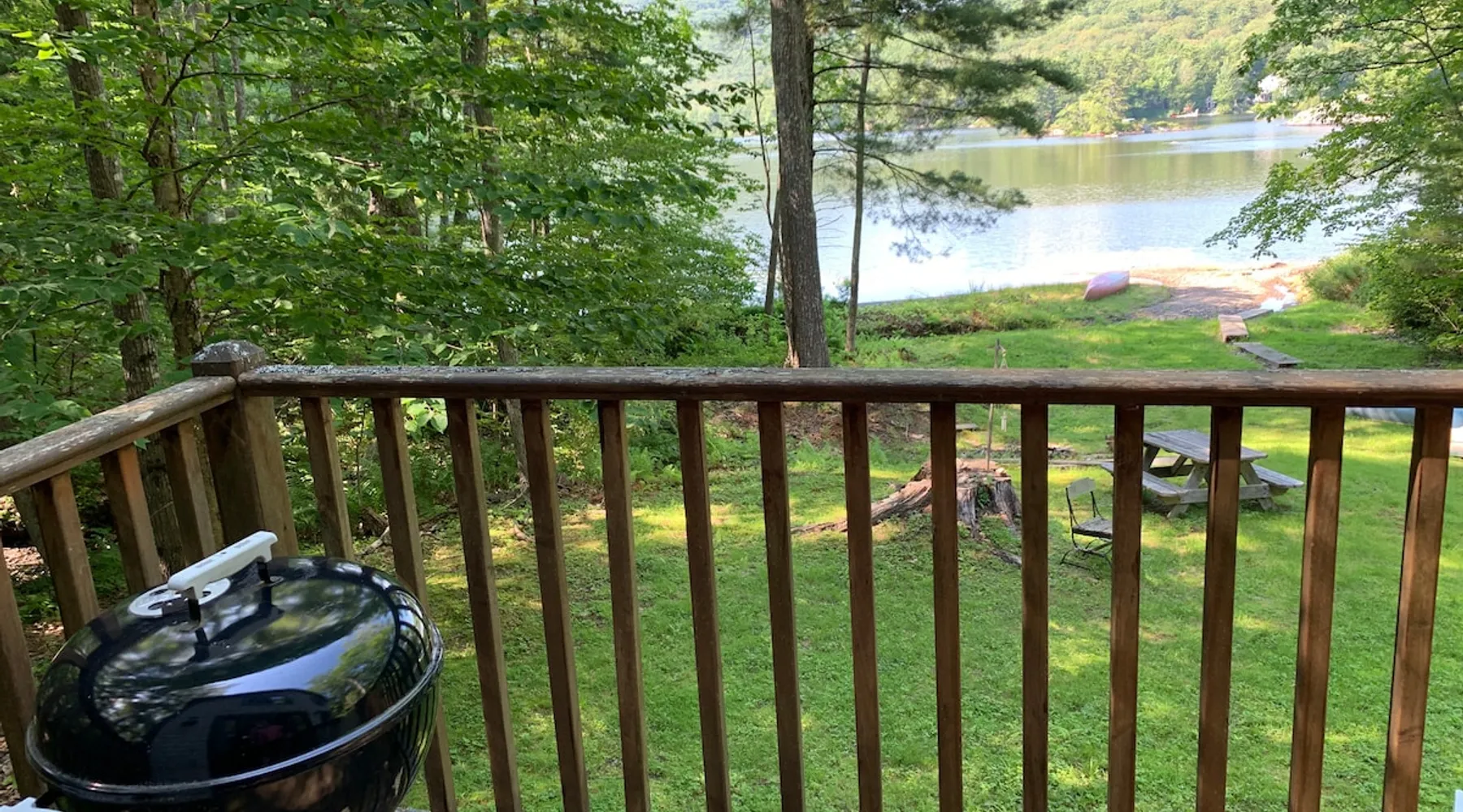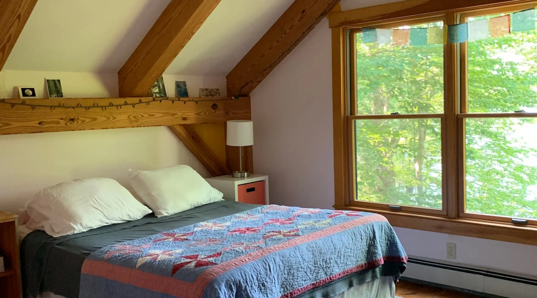 A beautiful and simple open-layout with gorgeous views of the water from large windows on main floor and bedrooms. Great kitchen space for cooking and socializing. All essentials and amenities included. Our guests love our home! The space This wonderful post and beam home was built in 2005. It has great open spaces with cathedral ceilings upstairs. The house isn’t too big (1500 sq ft), so it’s not overwhelming or overpriced! It’s just simple vacation living. The house is cool in the summer and warm in the winter. There are two bedrooms upstairs (approximately 13 x 15 ft each) with tall ceilings and large windows for beautiful views of the lake. There is an open area that is suitable as a bedroom with a bed on the upstairs landing. Amenities include wifi, a kitchen fully stocked with plates, utensils, pots, pans, etc. washer/dryer, off-street parking (uncovered driveway). The downstairs area is an open space containing the kitchen, dining room, and living room. There is a great kitchen with a huge peninsula granite countertop separating the kitchen from the dining room, an area perfect for socializing while cooking. Nearby activities include hiking, swimming, canoeing, and rowing right out the back door (row boat, canoe, and adult life jackets included). The house is a 5 minute drive or taxicab ride from downtown Camden’s many shops and restaurants, or a 15 minute drive to downtown Rockland or Lincolnville. Just a half mile from the Mighty Camden Snow Bowl/skiing and National Toboggan Championships in the winter. In the summer, this is a peaceful home away from the hustle and bustle of Camden, yet it’s only a 5 minute drive away. Easy-going and helpful host. Coffee and tea are included. Extra mattresses are available. I do own a small dog, but I am allergic to some breeds, so please check with me before bringing pets. Guest access Lake access with a canoe. On site laundry. Full kitchen. No shared areas - the renter has access to entire house and property. Other things to note Camden is an amazing destination for all ages. It's also a great location from which to explore the area, with easy drives to Acadia National Park and Popham Beach, or easy drive and ferry to Monhegan/North Haven/Vinalhaven Islands.