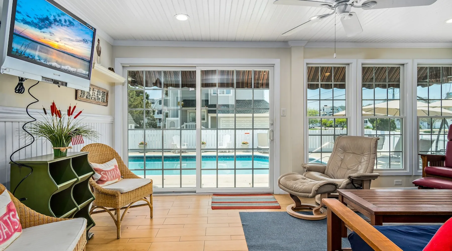 *Location is ideal* Located on possibly the best beach block in Avalon, this vacation home ("Villa Lil Avalon") is the 3rd house from the beach. No need to cross any streets (great for kids). This beach is one of the more private beaches on the island. The home itself has been meticulously maintained. The ocean vistas from the home are sensational. With a pool measuring 16x32, you'll enjoy one of the largest pools in Avalon. Plenty of space surrounds the pool for lounging or bbq grilling. Other things to note Between Memorial Day Weekend and Labor Day Weekend we require a 7 night minimum (weekly rental).