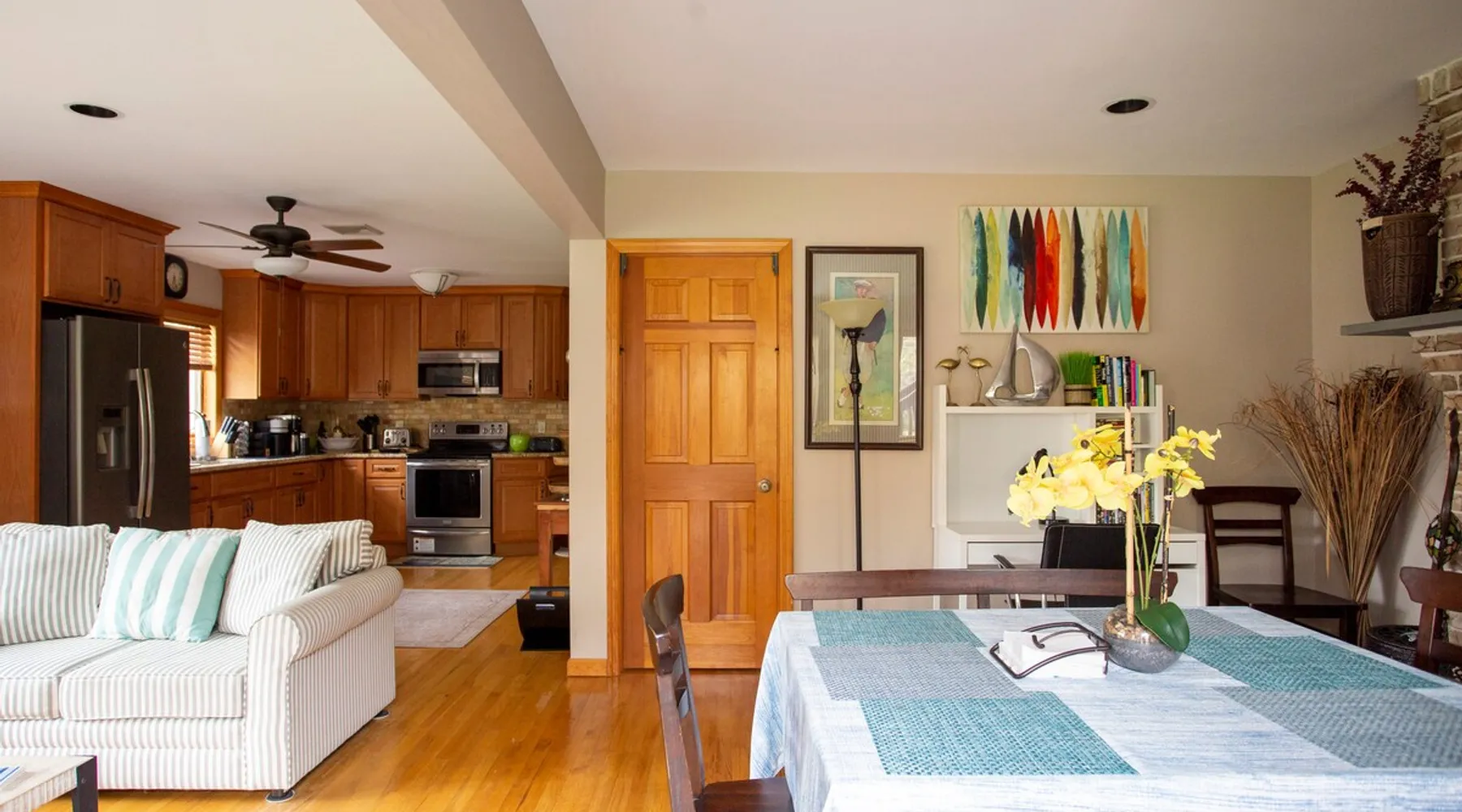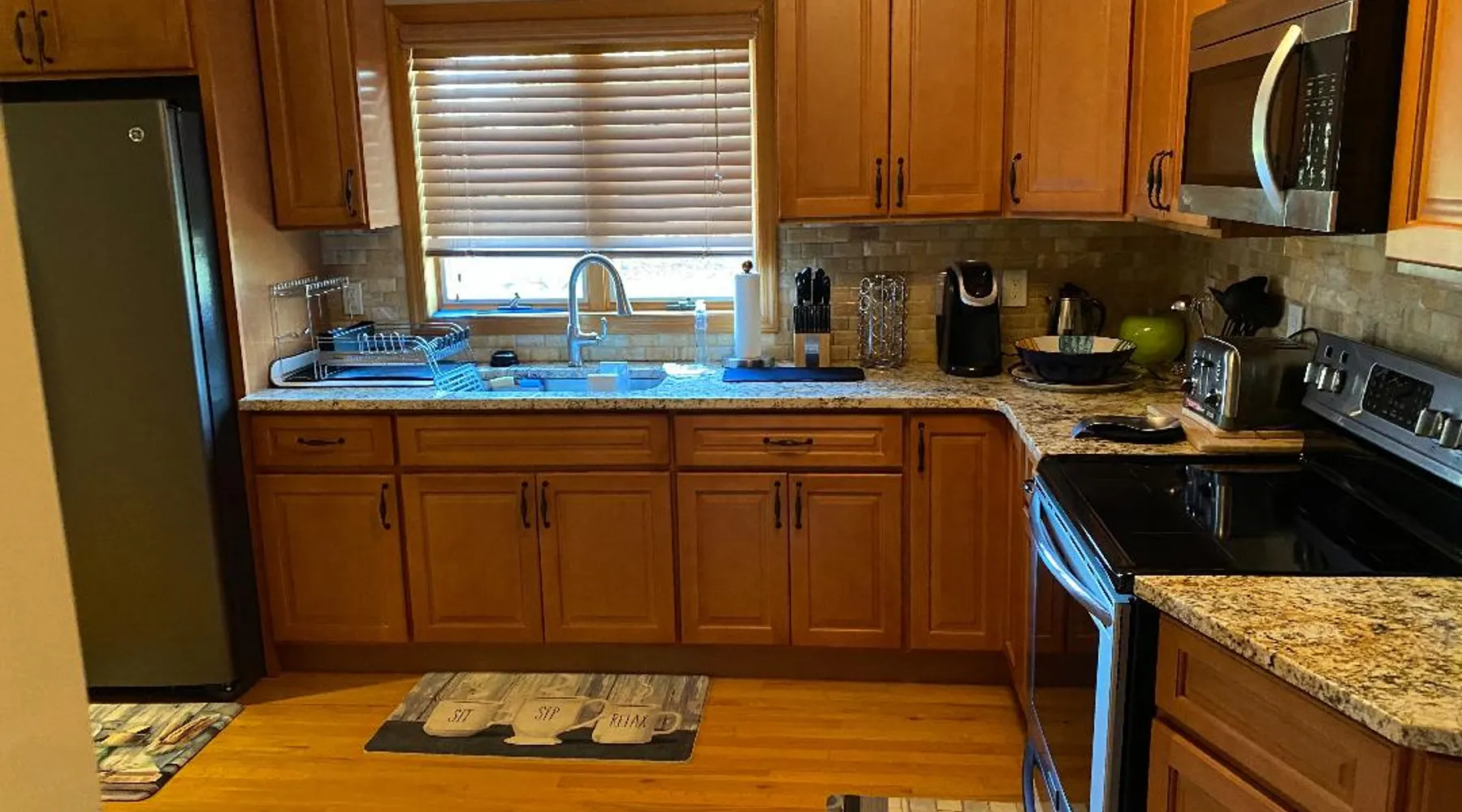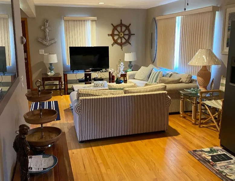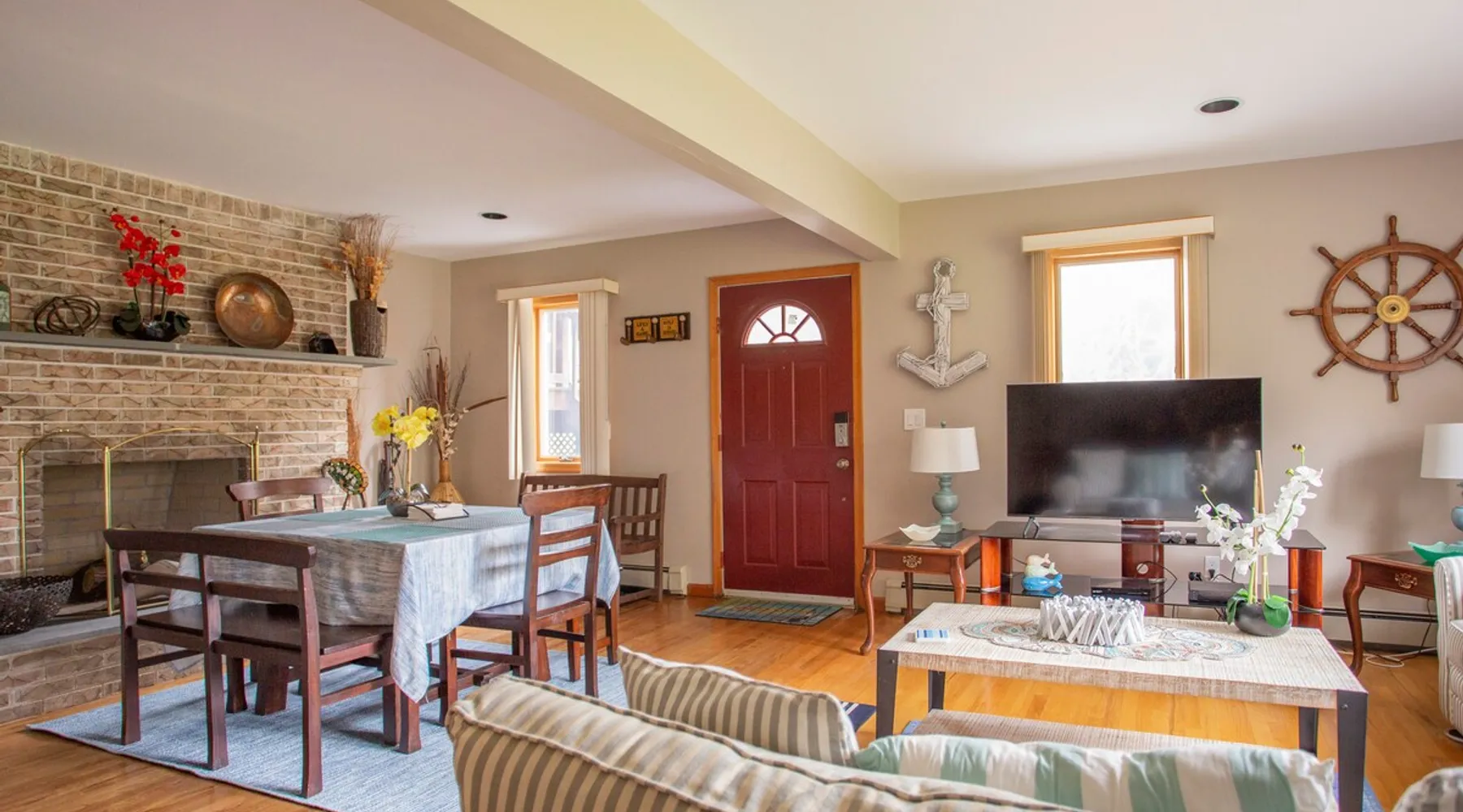 4-6 GUEST MAXIMUM PLEASE. Cozy 2 BR and 1 BTHRM apartment in private home in Greenport NY. Total privacy and separation of unit!! Perfectly situated on 1.75 acres. 3 minute drive, or easy walk, to the center of Greenport village, 2 minute ferry ride to quaint Shelter Island, and a 6 minute drive to tip of Orient. So right in the middle of the action with the peace and serenity of living outside the village. Private beach a short walk/ride down the street. The space Beautiful, newly renovated, super clean 2 bedroom, 1 bath apartment for rent in home in Greenport on quiet, private road. Complete privacy and separation. Sleeps 4 very comfortably with one King and one Queen bed (plus queen size sleeper sofa and new air mattress for 6 total guests). Cable and hi speed internet, DVD in every room. New modern kitchen and appliances, including coffee percolator, and new Keurig coffee machine (fresh tea bags and various K cups, decaf too, with milk and cream waiting upon arrival, but bring your favorite blend along). Central AC w/ ceiling fans in every room. Almost 2 acres of manicured property. Plenty of bath towels and bed linens and pillows for your stay. Lots of other amenities but please don't hesitate to make a request or inquire about availability of something important. Just minutes from over 70 North Fork vineyards, farms, antique stores, art galleries, yard sales, lavender farms, festivals and only a mile from center of historic Greenport village with its great stores, shops and Zagats rated restaurants!! There is also an amazing horse carousel in the center of town right by the marina and boardwalk with stunning views that kids absolutely love to ride!! So enjoy the best of both worlds!! Be as close as possible to the center of the action, but also able to enjoy the peace and serenity of living outside of the village. Short walk to Islands End Golf Course for you golfers and just a 2 minute ferry ride to beautiful, quaint Shelter Island and the famous Sunset Beach (an Andre Balazs property). You can also take the ferry to Sag Harbor and spend the day in the Hamptons if you wish!! Amenities include new propane BBQ, outdoor table and umbrella, zero gravity beach chairs and beach towels, coolers on request, free guest parking pass to local beaches minutes away as well as access to private deeded beach just down the road. Perfect for couples, friends or families looking to get away and relax and play, for bachelor/bachelorette parties, and for that fishing/golfing excursion. Also plenty of room for playpens and cribs and have hosted lots of kids of all ages!! If you're using public transportation, both the LIRR and the Hampton Jitney stop right in the heart of Greenport Village. There are also several cab companies serving the area, and UBER as well!! Pick up and drop off is possible so feel free to discuss. If you are interested in bike rentals, please let host know so that he can assist you with the best company and the best rates (including drop off and pick up service)!!! Guest access Guests have access to the entire apartment in total privacy with their own private entrance and exit outside to the backyard. They are free to use the entire outside property at their leisure. Private deeded beach at end of the road open to all guests. No stairs..easy access. Other things to note Your unit is completely separated from the rest of the house by its own locking doors and own exit/entrance. You will have complete quiet and uninterrupted privacy during your stay!! Check in and check out times may be flexible upon request depending on rental schedule which may also change. Please always touch base with me to be certain. FOUR TO SIX GUEST MAXIMUM PREFERRED. APARTMENT IS AVAILABLE ON A MONTHLY BASIS FROM OCTOBER TO APRIL AT EXCELLENT MONTHLY RATE. PLEASE CONTACT HOST IF NEEDS MAY REQUIRE DIFFERENT ARRANGEMENT. THANK YOU !!