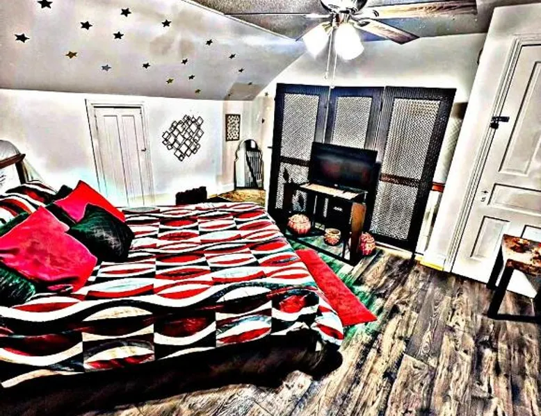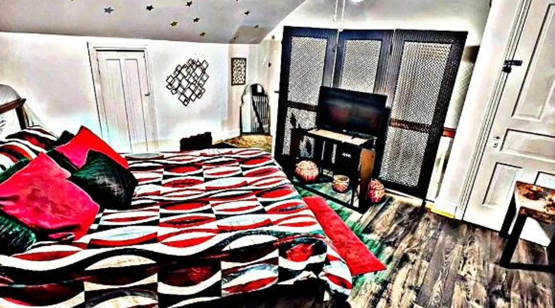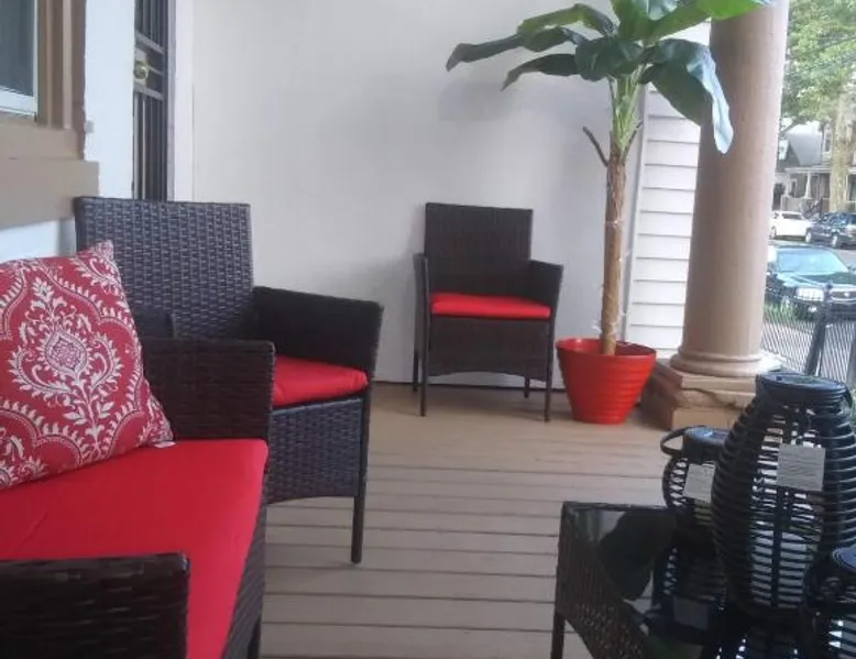 Spacious Holiday Home in Philadelphia: Delightful Empowerment Palace offers a spacious holiday home in Philadelphia. The property features four bedrooms and two bathrooms, ensuring ample space for all guests. Outdoor Amenities: Guests can relax on the sun terrace or in the garden, enjoying free WiFi throughout the property. An outdoor fireplace and seating area provide additional comfort. Convenient Facilities: The holiday home provides private check-in and check-out services, full-day security, and free on-site parking. Additional amenities include an outdoor dining area, picnic area, and bicycle parking. Nearby Attractions: Located 16 mi from Philadelphia International Airport, the property is close to Temple University (5 mi), Liberty Bell (6.2 mi), and Philadelphia Museum of Art (6.8 mi). Featuring a private entrance, this spacious holiday home also consists of 4 bedrooms, a seating area and 2 bathrooms with a bath and a shower. Guests will find a stovetop, a refrigerator, kitchenware and an oven in the fully equipped kitchen. The holiday home also provides guests with a barbecue. The air-conditioned holiday home provides a flat-screen TV with streaming services, a tea and coffee maker, a dining area, a wardrobe as well as garden views. The unit offers 6 beds.