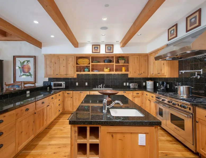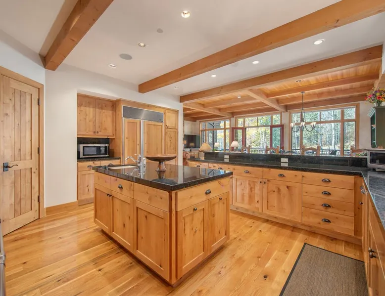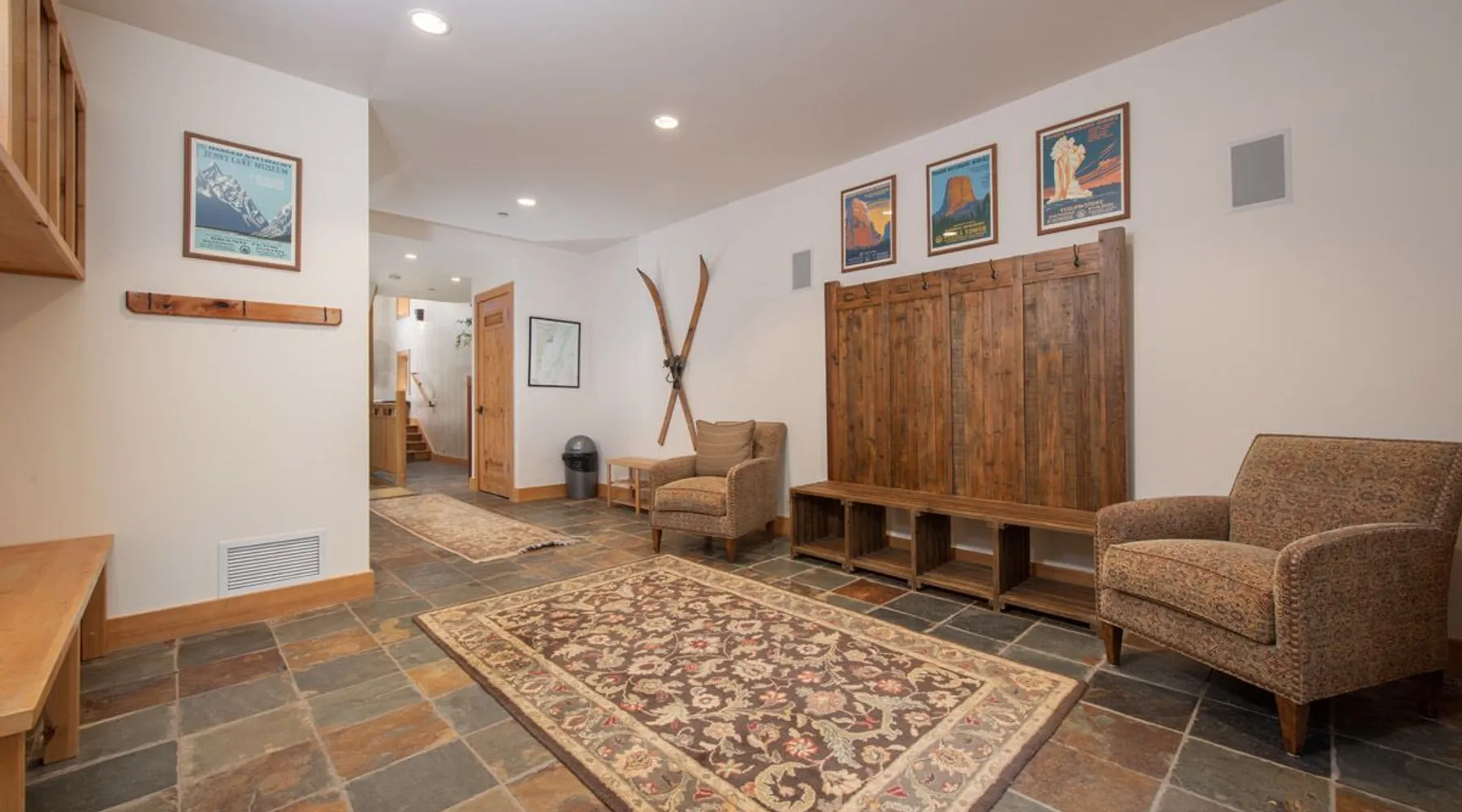 Granite Ridge Lodge 8 Bedding: King, King, Queen, 2 sets of bunks Approximately 4,200 square feet Contact free, Remote Check-In Amenities • Ski-In/Ski-Out Location • Surface lift • Junior Suite • Primary Suite with Gas Fireplace • Large, Gourmet Kitchen • Washer/Dryer The quintessential slopeside retreat for families, Granite Ridge Lodge 8 features spacious living spaces, thoughtful amenities and unparalleled mountain access. The main floor encourages communal living with its open floor plan. The living area invites lounging with its leather chairs, stone fireplace and big screen TV, and shares the space with a dining table that comfortable seats eight. The connected gourmet kitchen offers high-end appliances, elegant pine cabinets and dark granite countertops. The great room grows with the adjoining patio, featuring a gas grill, table and chairs. Photography and plants add to the interior aesthetic, defined throughout the lodge by fine furnishings, antiques and art. Additionally, there is bedroom with a queen bed, ample closets and an attached bath on this floor. Climb the stairs and find a landing with an entertainment console and couches that connects to two bedrooms. The first features two bunk beds (four twin beds total) and an ensuite bathroom. Luxurious amenities await in the master suite: a king bed, gas fireplace, walk-in closet and marble master bath. A private patio offers stunning slopeside views. Downstairs, a mudroom, stocked with storage cubbies opens onto a back patio with an outdoor hot tub. The downstairs bedroom features a king bed, bay window and ensuite bathroom. Additional amenities include a washer/dryer and two-car garage. The “backyard” of Granite Ridge Lodge 8 is the Lower Teewinot run; guests would be hard pressed to find another site closer to the slopes. Nestled in the woods with sweeping views of Rendezvous Mountain, Sleeping Indian and the Snake River Valley, the lodge feels immersed in nature. Conveniently located minutes away from Grand Teton National Park, Granite Ridge guests can take advantage of all the activities available at the resort and in the park: from hiking and horseback riding in the summer and fall, to cross-country skiing and snowshoeing in the winter. *Please note that gatherings greater than 20 people are not permitted in this property. **Please note, the closet is not available for guest use in the junior master suite Mountain weather is variable and unpredictable. Resort conditions and ski access may be weather and snow dependent.