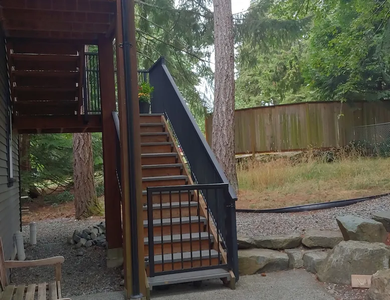 Beautiful new 2 bedroom suite, situated on a 1.6 acre forested lot. Bright, private and relaxing; put your feet up and listen to the birds or watch the many deer that enjoy the private forest. Private forest trails and campfires can be enjoyed steps from your door. We are 10 minutes from Departure Bay ferry and close to many beautiful beaches, parks and hikes. The space Second floor apartment (Carriage House) with beautiful tree views. Peaceful, cozy and well equipped with everything you may need for your stay. A book and games cupboard will keep you busy when you choose to stay in. Guest access Enjoy the private forest trail and campfire area. Registration Details Municipal registration number: 5033257 Provincial registration number: H263261324