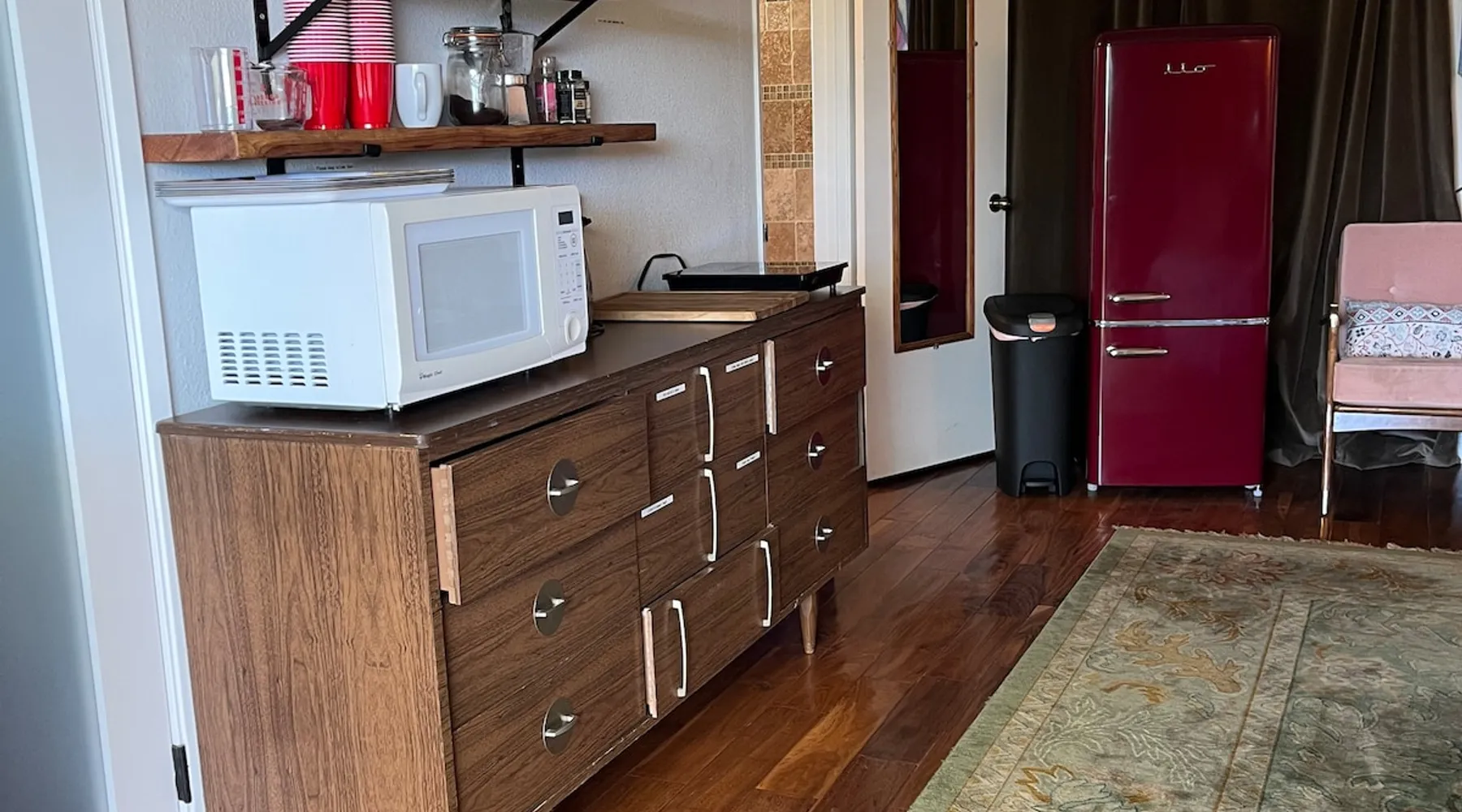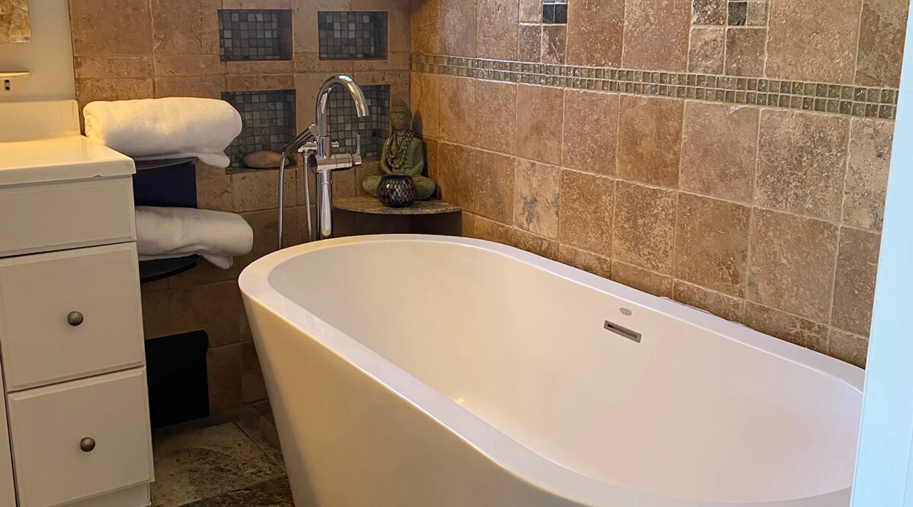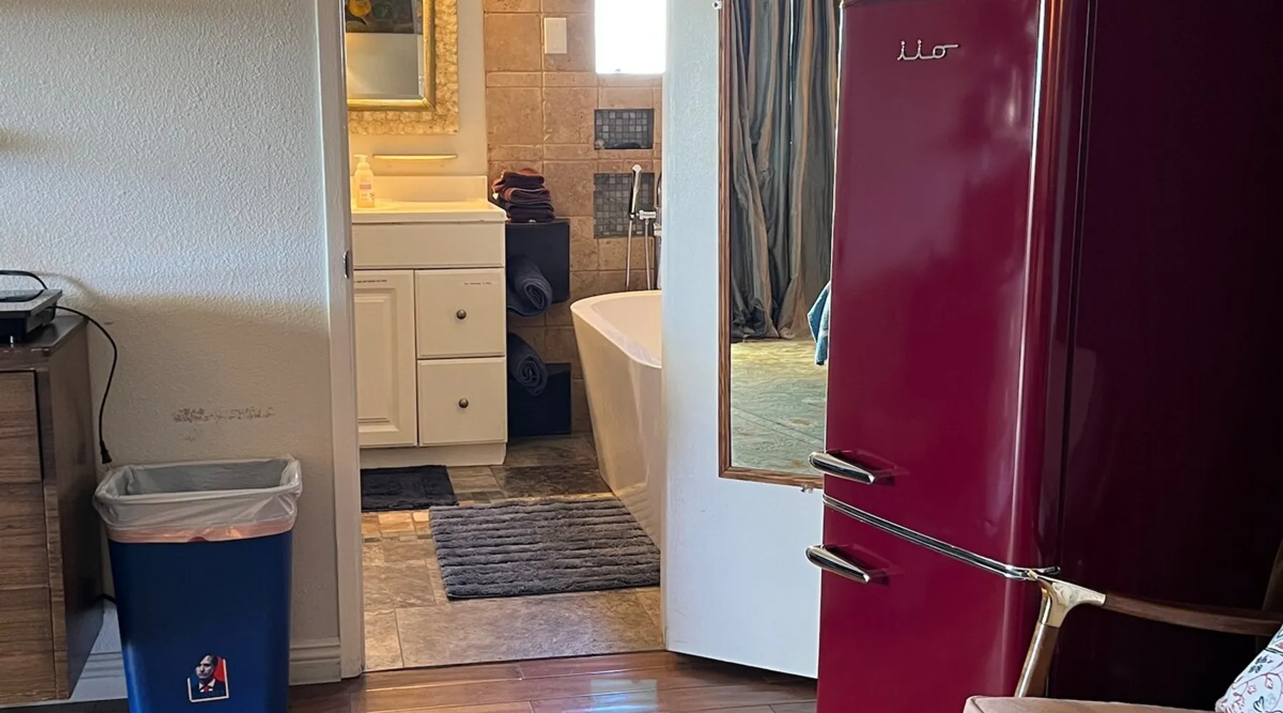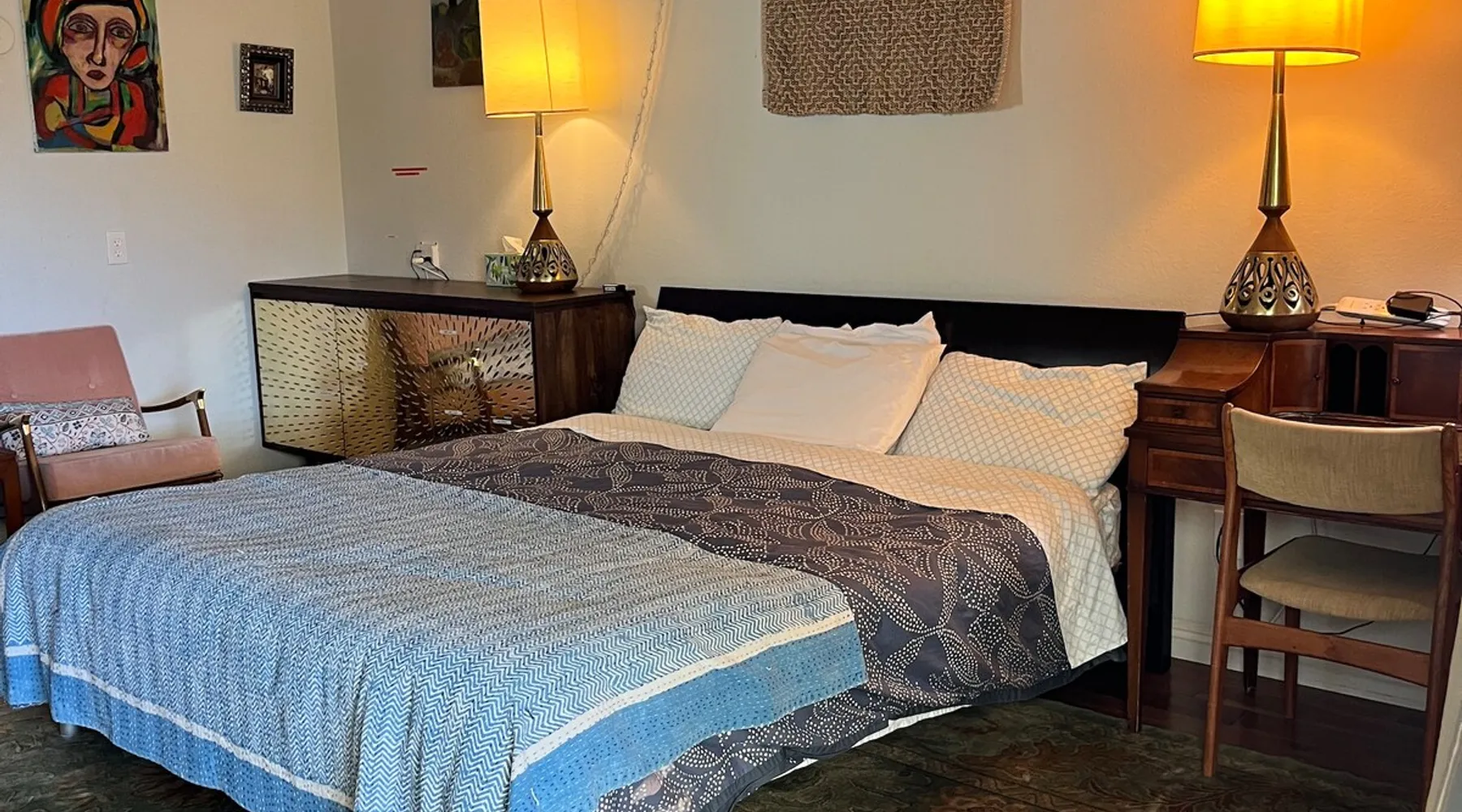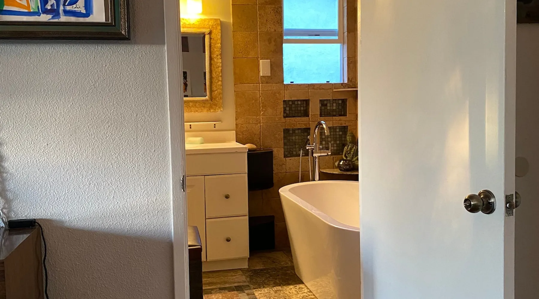 This artsy entirely private bedroom and bath suite located in a safe and quiet neighborhood of Encinitas . Recently remodeled and spacious -400 sq. ft.+220 sq. f. deck Near: Best beach in San diego - Moonlight - 3 miles San Diego Botanic Garden - 2 mil Legoland -10 mi Deal Mar Fairgrounds - 4 mi Encinitas Coaster Station - 2 mi San Diego Airport - 25 mi Self Realization Fellowship/ Meditation Garden - 4 mi San Diego Safar Zoo - 15 mi Hot Air Ballon Tours - 6 mi The space This 700 sq. feet suite( with the covered deck) is part of the large house. Owner lives on the first floor. This place is perfect for vacation traveler, someone who wants to work from the house and still enjoy San Diego amazing weather and lifestyle.There is a small breakfast area inside of unit with spacious and gorgeous sunset view deck. Organic teas and coffee provided! Room has a medium size fridge so you can keep your leftovers. Also small microwave and induction stove will let you warm up your dinner. This area is famous for an upscale dining experience:Japanese , Mediterranean, Thai, Italian restaurants are just around the corner. During your stay you will enjoy old books library along with the mid century art/furniture collection. Spacious walk in closet. Completely remodeled en-suite bathroom with deep soaking bathtub. Unit located on the second floor: you have to be prepared to carry your luggage up the stairs. You will have your own personal parking spot on the right side of the house. Besides there is free and unlimited parking on the street. Your personal west facing deck is looking at the street and gorgeous sunset views. Enjoy your morning coffee or dinner a la fresco . Studio has efficient independent AC/heating split system and personal fans in the bedroom and bathroom. Between the guests we clean all surfaces with disinfectant solutions with bleach to prevent spreading virus. Мы говорим по русски Guest access Private bedroom with your own key/accessible via flight of stairs. Private en-suite bathroom with a separate shower enclosure and soaking bathtub. You will have 220 square foot deck at your pleasure use( private). Rest of the backyard is out of reach. Other things to note Important Information for Monthly Stays: • A mandatory cleaning fee of $60 will be charged every 10 days to maintain high sanitary standards. This will be processed through the Airbnb portal. • Laundry access is available only for monthly rentals. A laundry schedule will be provided prior to your arrival. Pet Policy: We’re animal lovers, but unfortunately, no pets (including dogs and cats) are allowed. In our experience, pets can cause damage to furniture, and resolving such issues is time-consuming and costly. We appreciate your understanding and kindly ask that guests traveling with pets choose a different accommodation. Check-In & Check-Out Flexibility: Early check-in or late check-out depends on bookings before and after your reservation. I will confirm the availability on the morning of your arrival. If timing is crucial, we recommend booking an extra night to guarantee flexibility. Registration Details RNTL-018403-2022