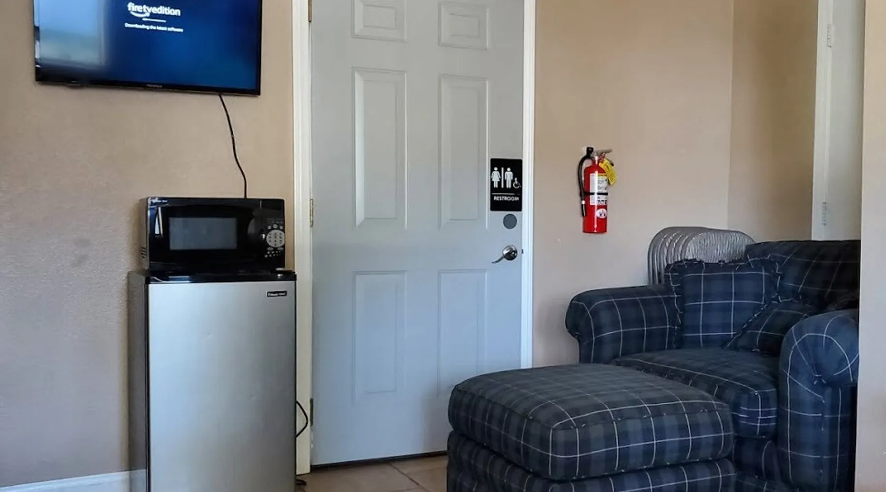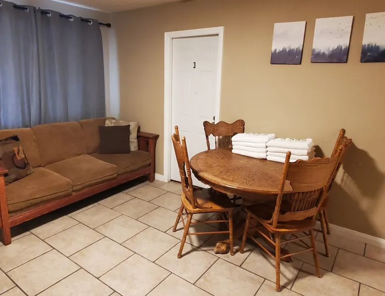 **You must read Airbnb messages and reply to us after requesting this unit.** Just across the street is the lake and village shops and dining. Great space for friends or a few couples that want their own rooms. 4 small bedrooms* ( please read "the space' info below) open into a common area with sofa, Roku TV (BYO logins), table and chairs, mini fridge, microwave, k-pod coffee maker. There is a full bathroom off the common area. No kitchen. ~200/10 MBs WIFI great for working, zoom, etc. The space This unit is part of our commercial lodge / retreat center. Big Bear Group Cabin Rentals 541 Knickerbocker Road We have an on-site manager who greets you to handle check in, and lives next door and keeps watch over the property for everyone's safety. No Pets policy. Sorry, we have kids with allergies and we keep an allergy free space. Please use airbnb search filters and choose a pet friendly host. How many bedrooms are included? 1-2 guests on reservation = 1 bedroom included 3-5 guests on reservation = 2 bedrooms included 6-7 guests on reservation = 3 bedrooms included 8+ guests on reservation = all 4 bedrooms included. If you need more bedrooms, just change reservation details and add extra guests to your reservation. This lets us rent to single travelers midweek at a great price, but get a fair price for larger groups and helps cover extra cleaning costs. If you don't rent all bedrooms, the other bedroom(s) are just locked during your stay so we don't have to clean them. In any case, the unit is 100% for you and your guests only. You never share indoor spaces with other guests. Bedroom 1 has a bunk bed (twin over full size double) Bedroom 2 has a bunk bed (twin over full size double) Bedroom 3 has a bunk bed (+ a twin bed) Bedroom 4 has a bunk bed (+ a twin bed) Pricing changes with number of guests. Please make sure you are searching with the correct number of guests to see correct pricing. Some upper bunks have stairs access, some ladders, some require climbing side of bunk. This is one side of a duplex with a permanently locked door separating it from another living quarters. Crib: pack and play available if you request it during booking process. Central heating is set at 70-72F and we have space heaters if you need extra heat. Please let us know if you are uncomfortable. Other private home rentals require you to haul away your trash. Since we are a commercial lodge, you just have to take trash to the garbage cans in our parking lot. Safety and security has always been a top priority. Our keypad codes are changed between each guest and our co-hosts live next door should any problems arise. The shared parking lot is first come first serve. There is plenty of overflow parking on the street or nearby. We can always find you a place to park. Cancellations: Understand this is a small family business and we can't afford to lose money if you cancel and we aren't able to re-book those dates. Postponing a trip to a later date is considered a cancellation. We recommend you purchase your own travel insurance that meets your needs. Cancellation Policy: Free cancellation for 48 hours, if at least 14 days before check-in. After that, guests can cancel up to 7 days before check-in and get a 50% refund of the nightly rate, and the cleaning fee, but not the service fee. If the guest cancels less than 7 days in advance or decides to leave early after check-in, the nights not spent are not refunded. (We try to go beyond this Airbnb policy and will try to re-rent and refund you as much as possible if you need to cancel last minute. A $30 minimum cancel fee applies in this case.) Weather and Road Conditions are not eligible for cancelations w/refunds. $200 refundable security deposit due before arrival, to be paid by credit card or airbnb pay request. If you have any issues on concerns during your stay, please let us know right away in the airbnb chat, my co-host lives right next door and we want to make sure you are comfortable during your stay. We do not offer refunds for complaints after your stay if you have not given us a chance to address your concerns. Guest access This entire vacation rental is for you and your guests only. There is a locked door which separates this half the house from the other half. Other guests may be occupying the other rental. Larger groups can rent the entire house with 7 bedrooms, 3 baths. See our other listings or ask for link. Free Parking in our lot or on street parking at our rentals. Big Bear Group Cabin Rentals 541 Knickerbocker Road Walk 500ft to village or lakefront EV Charging Free charging for our guests (w/Minimum $250 Paid Reservation) $25 cash flat rate otherwise. J1772 Cable (You must provide your own adapter for Tesla) You must let us know in advance that you want to charge. Other things to note Whoever makes the reservation must be present at check in and provide a valid ID. $200 refundable security deposit due before arrival. Security: 24h video recording of parking lot and outside building entrances. Cancel Policy: Free cancellation for 48 hours, if at least 14 days before check-in. After that, guests can cancel up to 7 days before check-in and get a 50% refund of the nightly rate, and the cleaning fee, but not the service fee. If the guest cancels less than 7 days in advance or decides to leave early after check-in, the nights not spent are not refunded. Registration Details 0002-4532