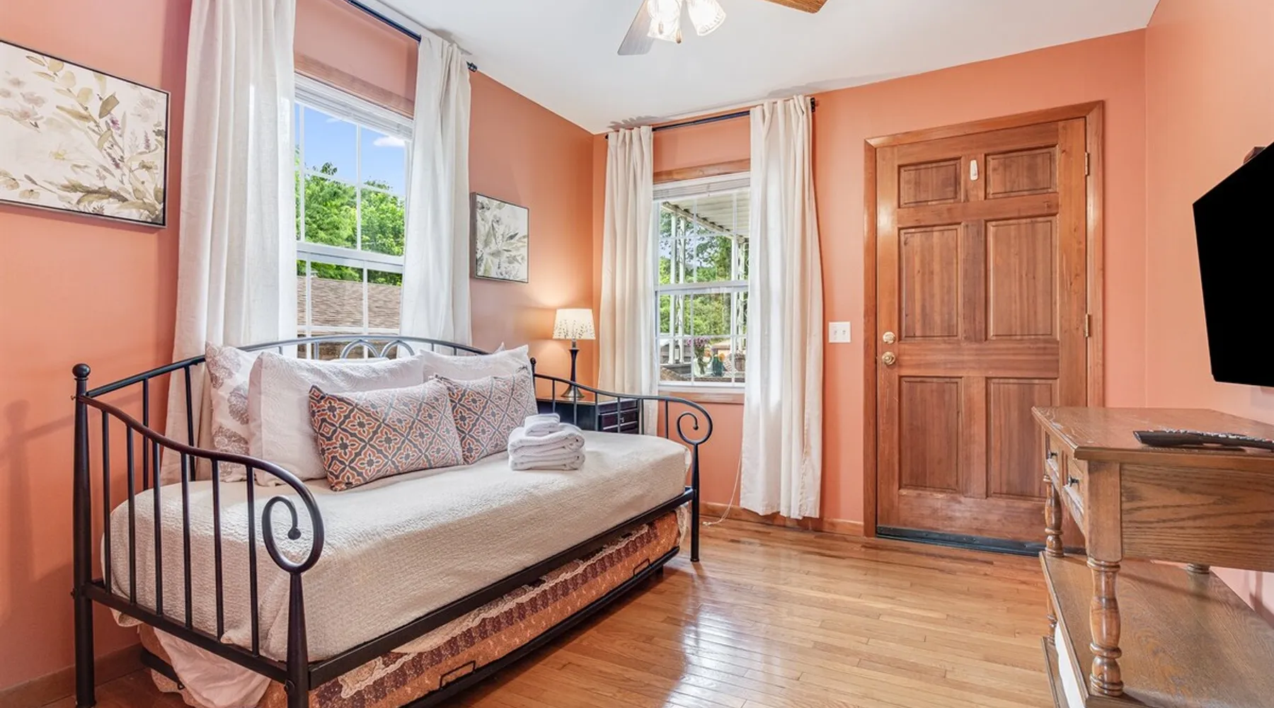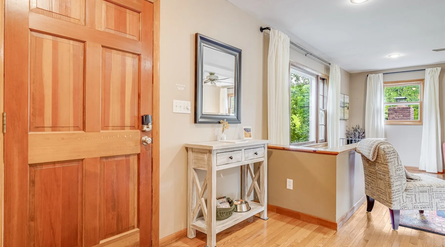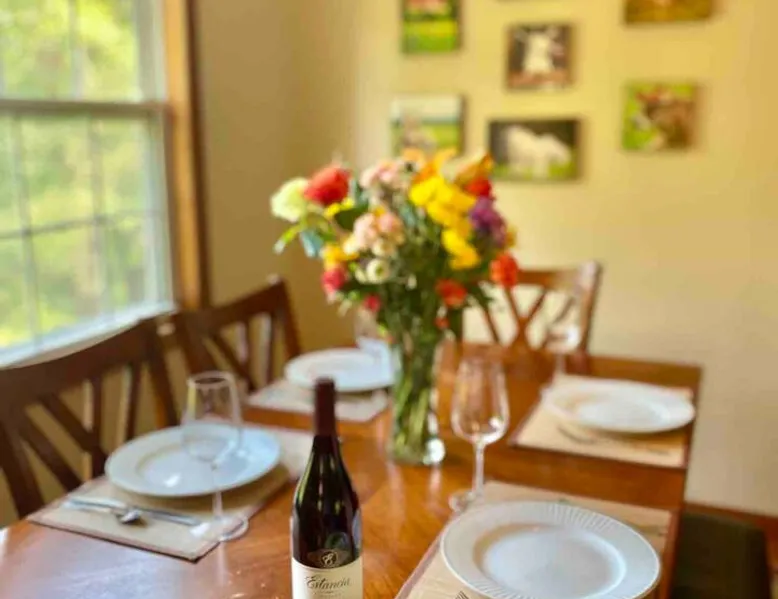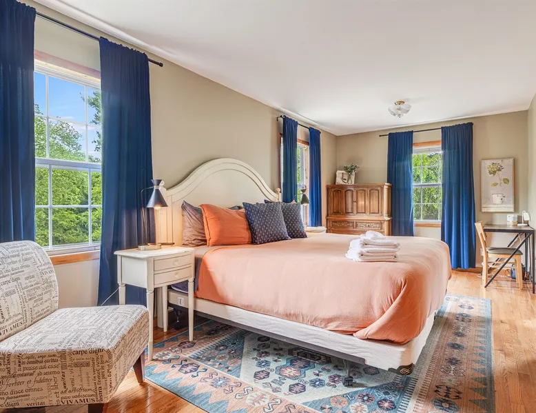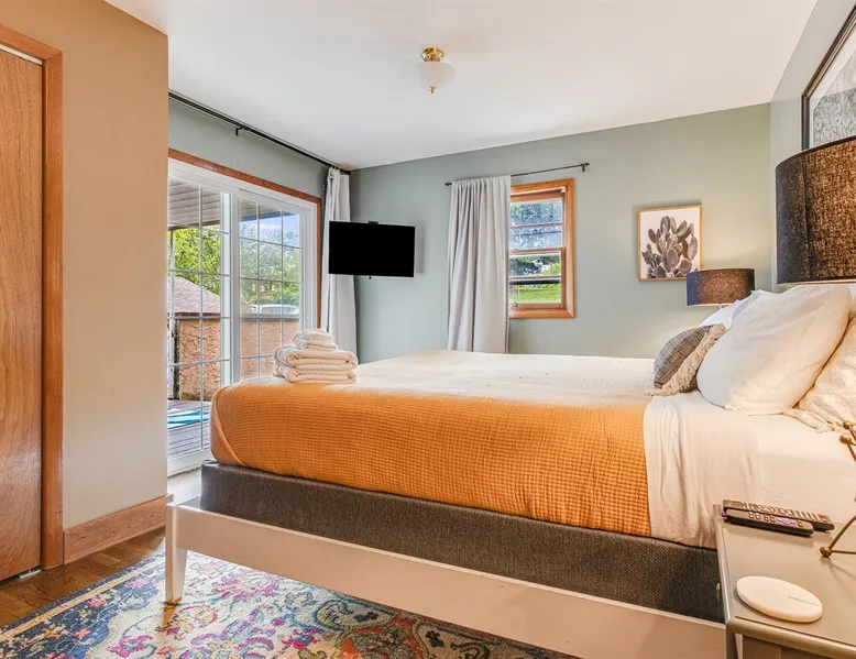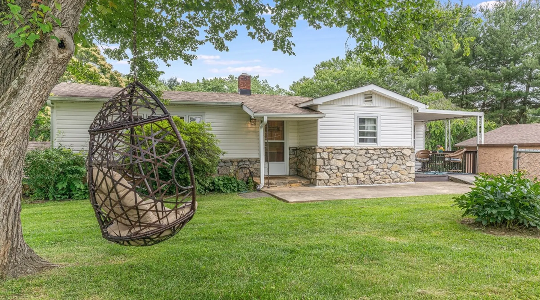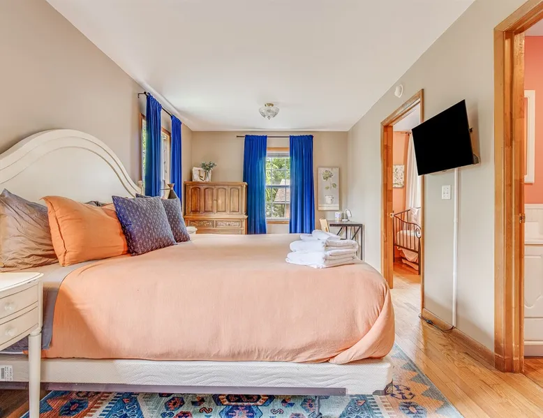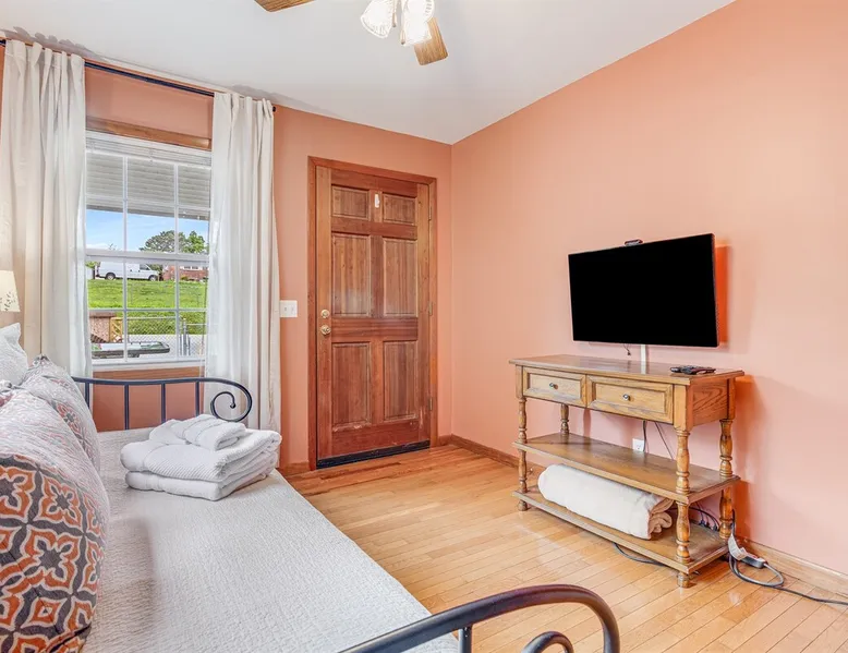 Enjoy this large family friendly home located in a peaceful country setting only 3 miles (10 mins) from downtown Asheville! -TVs in every room! -Well equipped kitchen -Dishwasher -Coffee and tea provided -Larged fenced-in private front yard (pets ok!) -Laundry on-site -Wifi 440/20 for working from home -Games and DVDs for entertainment -Hardwood floors, single level -2 KINGS, 2 twins -Blackout curtains in king bedrooms Close to dining, breweries, hiking. Biltmore Estate only 15 mins! The space LIVING ROOM Gather your group in the large living room with comfortable couches to play games or watch a movie or just hang out. 65" Smart TV loaded with all the apps. DVD player with a small collection of DVDs. Reading material, too. KITCHEN We are foodies and love to cook, so our large kitchen is fully-equipped for cooking, with coffee, tea and spices provided, and a dining area that comfortably seats 6 and overlooks the gardens. PRIMARY BEDROOM You will sleep well on the super comfortable pillow-top king mattress in the large master bedroom suite, and have your own private half bath. There's a smart TV mounted in front of your bed for watching TV! SECOND BEDROOM The second medium-sized bedroom also has a comfortable king-size bed, and a great sliding glass door opening to the outside front porch. The covered porch is a sweet peaceful place to enjoy your morning coffee. There is a mounted TV on a swivel bracket for watching TV. THIRD BEDROOM / SITTING ROOM The sitting room is attached to the master bedroom (a door closes between the two) and has a daybed with trundle bed that can be pulled out for two twin beds and opens to the outside porch. There’s an extra Roku TV in this room for the kids or if someone in your group enjoy falling asleep watching TV. MAIN BATHROOM The shower and tub are beautifully tiled. There is a bluetooth speaker for music while you shower and get ready for your visit to all that Asheville has to offer! PARKING & FRONT YARD The home has plenty of parking (3 cars, inquire if you have more), a fenced yard with a cozy tree swing, and is a wonderful place to unwind after a day exploring Asheville or hiking nearby mountain trails. BACKYARD The grounds are full of organically grown fruit trees and you are welcome to enjoy them in the summer and fall months when the trees and bushes are producing fruit. DOG FRIENDLY We are happy to host well behaved pets. Please get in touch so we can share our pet policy with you! :) EXPERIENCE ASHEVILLE LIKE A LOCAL Explore the local scene and get a taste of what makes Asheville so special through our carefully curated recommendation list. We've partnered with local businesses to ensure you can get off the beaten path and have enough memories from your adventures here to last. Asheville boasts activities which will satisfy everyone in your travel party. Hiking trails and outdoor activities such as horseback riding, canoeing, tubing the French Broad or whitewater rafting are within easy driving distance. Skiing and zipline within a 20-minute drive. For the shopper in your group, Asheville has a host of antique shops, boutiques, art galleries, and crafts. Evening activities include diverse dining options, movies, live theatre, live music, or just walking through Asheville's lively downtown filled with street performers and art. The Biltmore Estate is breathtaking in summer and glorious when decorated for Christmas. Chimney Rock Park is worth the 35-minute drive. Wonderful hiking and beautiful views. A drive on the Blue Ridge Parkway in autumn highlights the beautiful peak colors. There are many festivals throughout the year for the whole family. To see us on IG at The Brighthouse @thebrighthouse_ Guest access There is parking outside for 2-3 cars. Please inquire if you will have more than 3 vehicles. Other things to note There is a completely separate downstairs garden apartment that is also a vacation rental. Quiet hours after 10pm to 7am in order to ensure we are being good neighbors! Dogs can be allowed upon request and a $50 fee per pet will be added after booking. Please let us know if you want to bring a pet or pets so I can send you our pet policy so we are on the same page about how to have that happen in a happy way for all! GUEST VERIFICATION Important: We are committed to protecting our properties which is why we've partnered with Know Your Guest, the leading vacation rental guest-screening provider. We ask that each guest complete this identification process and purchase either a deposit or waiver. The $500 deposit comes with a $15 transaction fee and the waiver costs a flat $35 to purchase. These costs are nonrefundable while the $500 deposit is refundable and will be released within 7-14 days after the reservation ends. This process is meant to protect both us as hosts and also you as a guest should unexpected damage occur on the property.