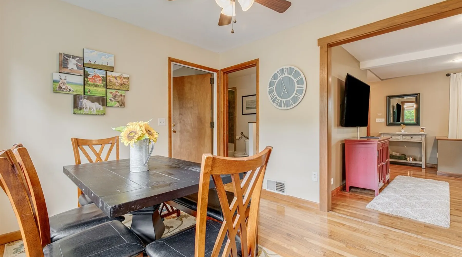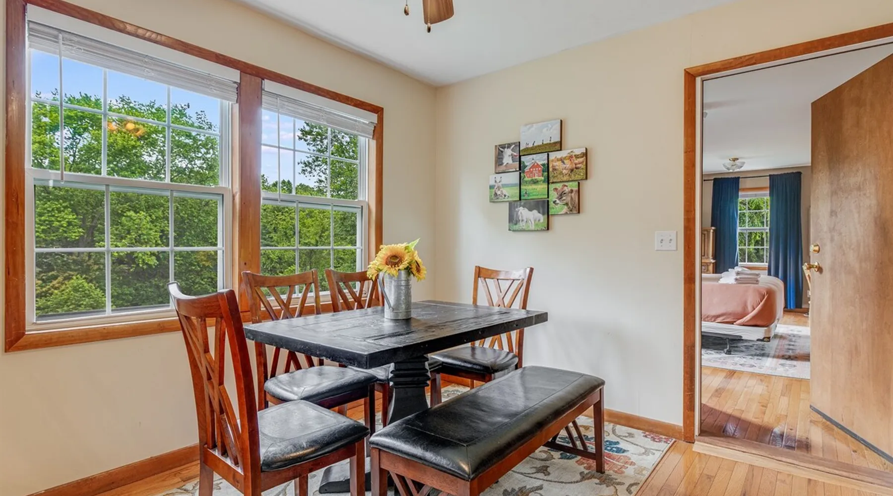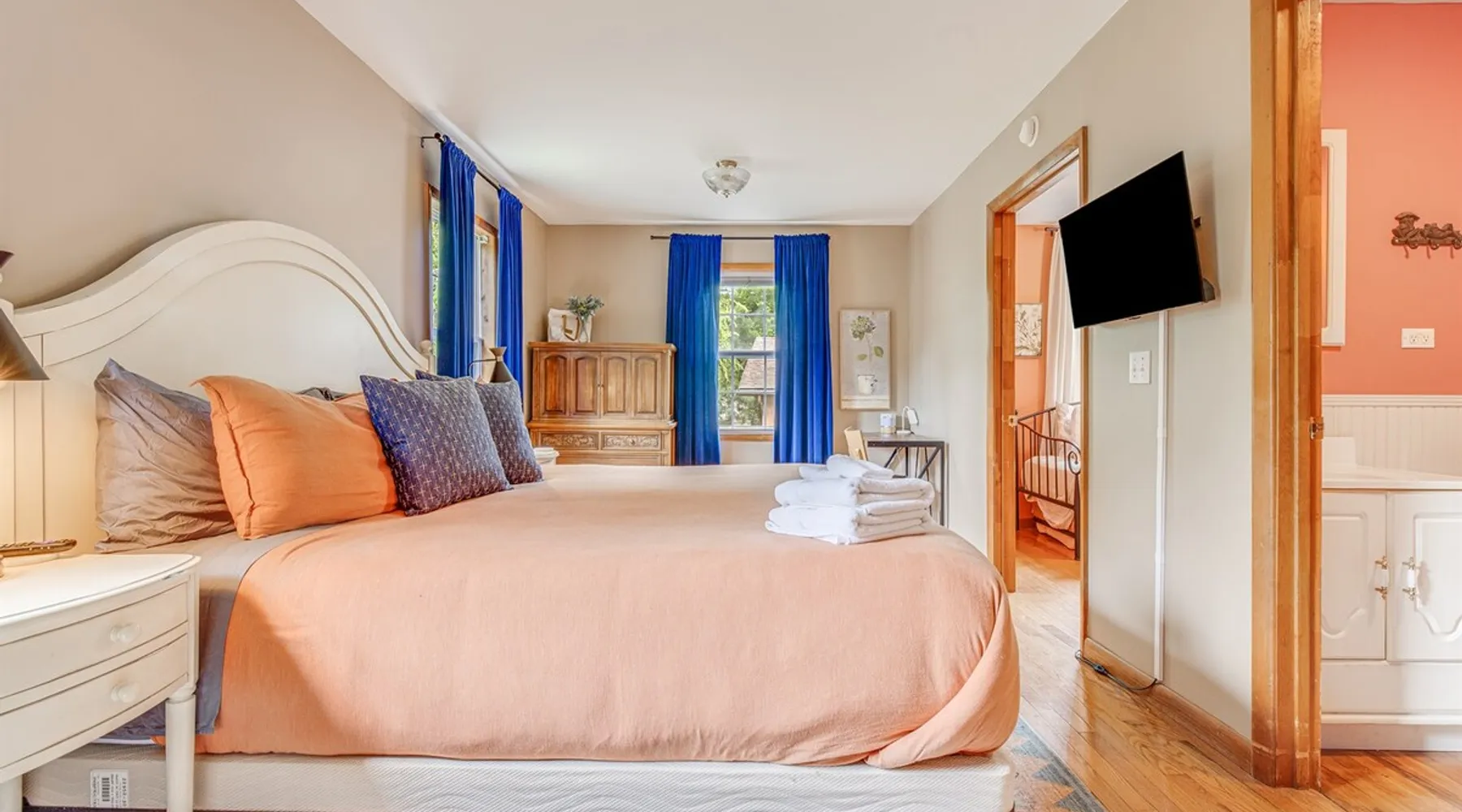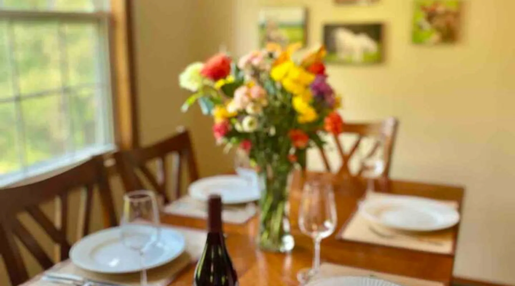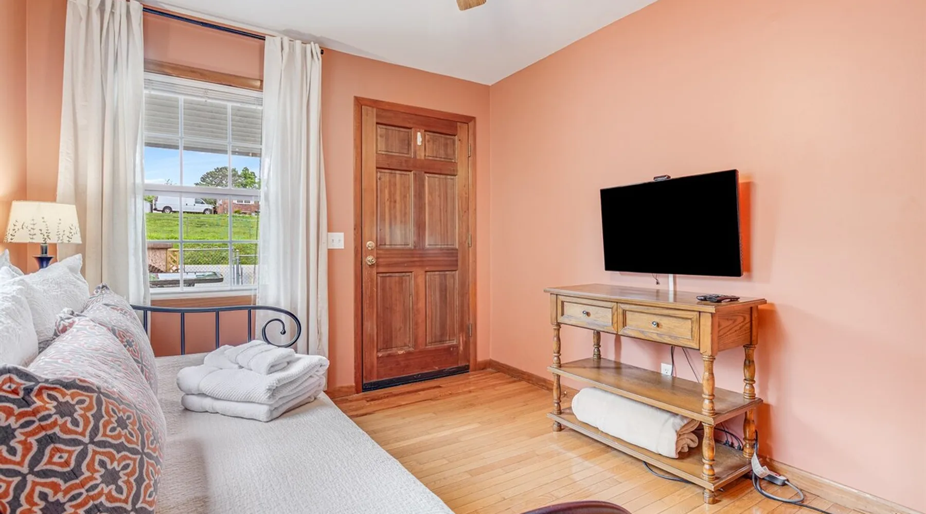 Enjoy this large family friendly home located in a peaceful country setting only 3 miles (10 mins) from downtown Asheville! -TVs in every room! -Well equipped kitchen -Dishwasher -Coffee and tea provided -Larged fenced-in private front yard (pets ok!) -Laundry on-site -Wifi 440/20 for working from home -Games and DVDs for entertainment -Hardwood floors, single level -2 KINGS, 2 twins -Blackout curtains in king bedrooms Close to dining, breweries, hiking. Biltmore Estate only 15 mins! The space LIVING ROOM Gather your group in the large living room with comfortable couches to play games or watch a movie or just hang out. 65" Smart TV loaded with all the apps. DVD player with a small collection of DVDs. Reading material, too. KITCHEN We are foodies and love to cook, so our large kitchen is fully-equipped for cooking, with coffee, tea and spices provided, and a dining area that comfortably seats 6 and overlooks the gardens. PRIMARY BEDROOM You will sleep well on the super comfortable pillow-top king mattress in the large master bedroom suite, and have your own private half bath. There's a smart TV mounted in front of your bed for watching TV! SECOND BEDROOM The second medium-sized bedroom also has a comfortable king-size bed, and a great sliding glass door opening to the outside front porch. The covered porch is a sweet peaceful place to enjoy your morning coffee. There is a mounted TV on a swivel bracket for watching TV. THIRD BEDROOM / SITTING ROOM The sitting room is attached to the master bedroom (a door closes between the two) and has a daybed with trundle bed that can be pulled out for two twin beds and opens to the outside porch. There’s an extra Roku TV in this room for the kids or if someone in your group enjoy falling asleep watching TV. MAIN BATHROOM The shower and tub are beautifully tiled. There is a bluetooth speaker for music while you shower and get ready for your visit to all that Asheville has to offer! PARKING & FRONT YARD The home has plenty of parking (3 cars, inquire if you have more), a fenced yard with a cozy tree swing, and is a wonderful place to unwind after a day exploring Asheville or hiking nearby mountain trails. BACKYARD The grounds are full of organically grown fruit trees and you are welcome to enjoy them in the summer and fall months when the trees and bushes are producing fruit. DOG FRIENDLY We are happy to host well behaved pets. Please get in touch so we can share our pet policy with you! :) EXPERIENCE ASHEVILLE LIKE A LOCAL Explore the local scene and get a taste of what makes Asheville so special through our carefully curated recommendation list. We've partnered with local businesses to ensure you can get off the beaten path and have enough memories from your adventures here to last. Asheville boasts activities which will satisfy everyone in your travel party. Hiking trails and outdoor activities such as horseback riding, canoeing, tubing the French Broad or whitewater rafting are within easy driving distance. Skiing and zipline within a 20-minute drive. For the shopper in your group, Asheville has a host of antique shops, boutiques, art galleries, and crafts. Evening activities include diverse dining options, movies, live theatre, live music, or just walking through Asheville's lively downtown filled with street performers and art. The Biltmore Estate is breathtaking in summer and glorious when decorated for Christmas. Chimney Rock Park is worth the 35-minute drive. Wonderful hiking and beautiful views. A drive on the Blue Ridge Parkway in autumn highlights the beautiful peak colors. There are many festivals throughout the year for the whole family. To see us on IG at The Brighthouse @thebrighthouse_ Guest access There is parking outside for 2-3 cars. Please inquire if you will have more than 3 vehicles. Other things to note There is a completely separate downstairs garden apartment that is also a vacation rental. Quiet hours after 10pm to 7am in order to ensure we are being good neighbors! Dogs can be allowed upon request and a $50 fee per pet will be added after booking. Please let us know if you want to bring a pet or pets so I can send you our pet policy so we are on the same page about how to have that happen in a happy way for all! GUEST VERIFICATION Important: We are committed to protecting our properties which is why we've partnered with Know Your Guest, the leading vacation rental guest-screening provider. We ask that each guest complete this identification process and purchase either a deposit or waiver. The $500 deposit comes with a $15 transaction fee and the waiver costs a flat $35 to purchase. These costs are nonrefundable while the $500 deposit is refundable and will be released within 7-14 days after the reservation ends. This process is meant to protect both us as hosts and also you as a guest should unexpected damage occur on the property.