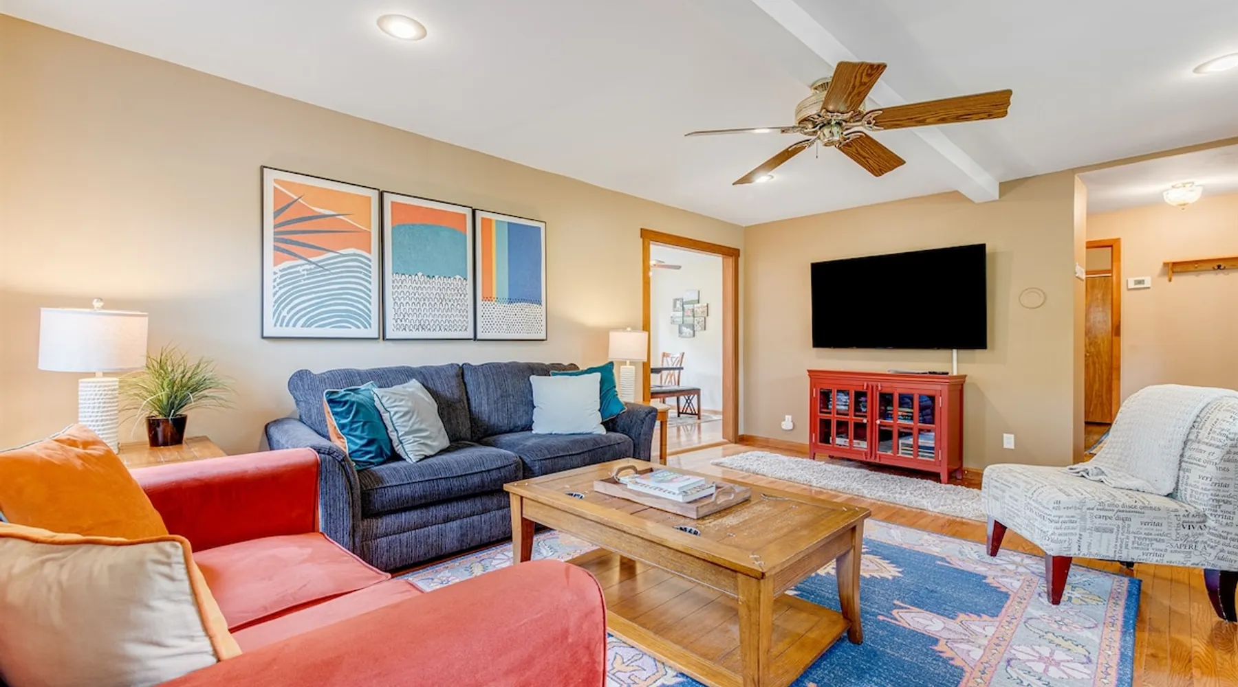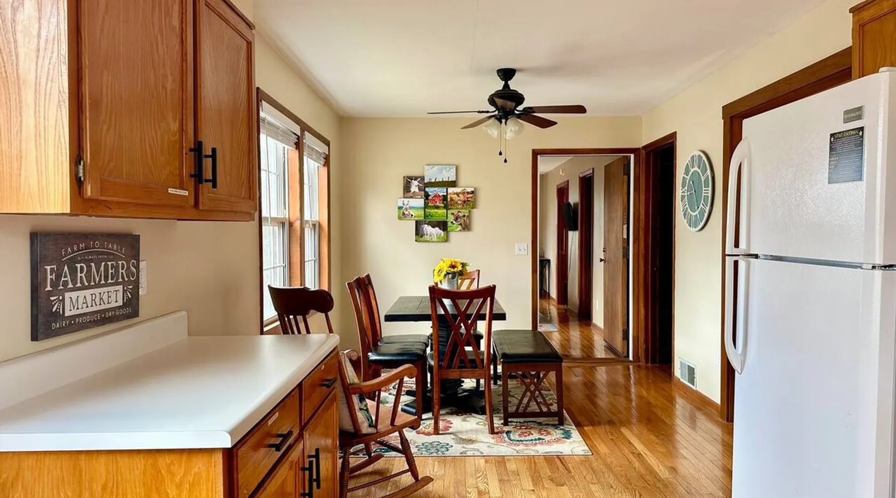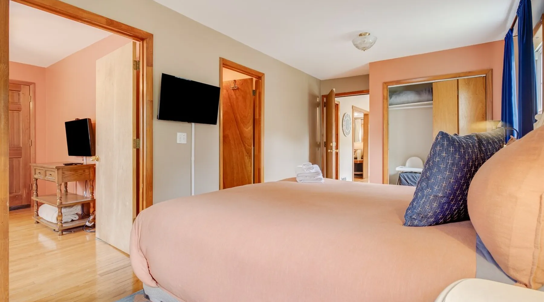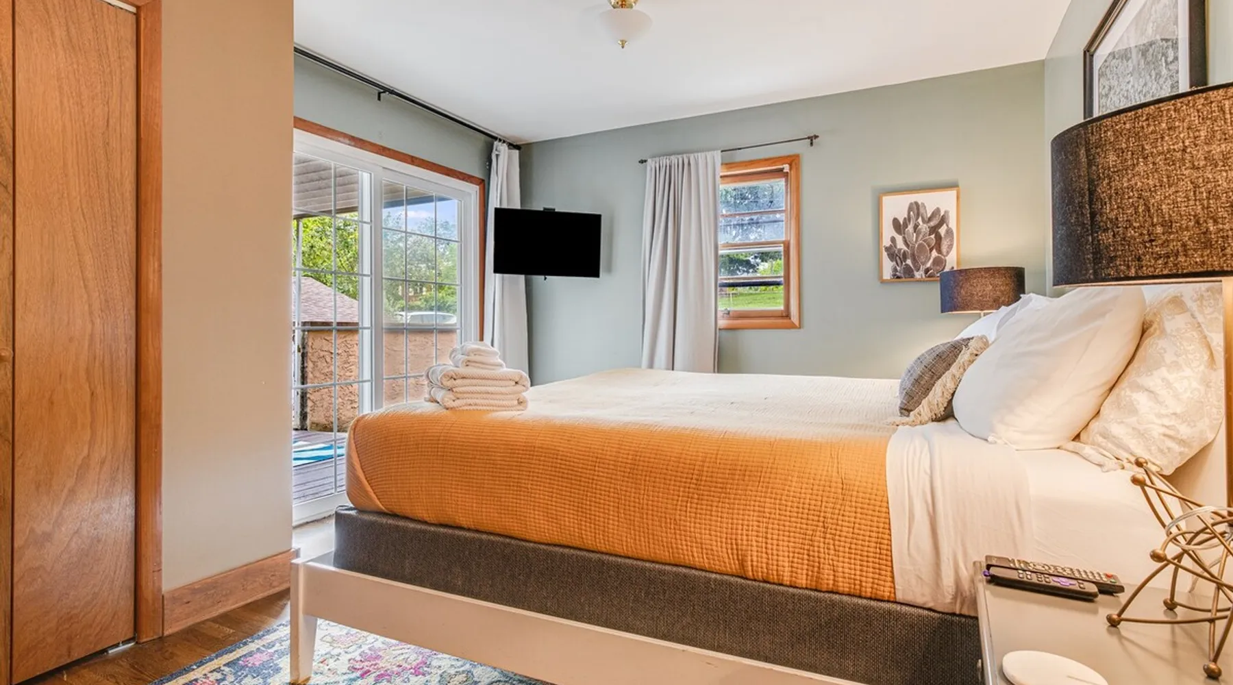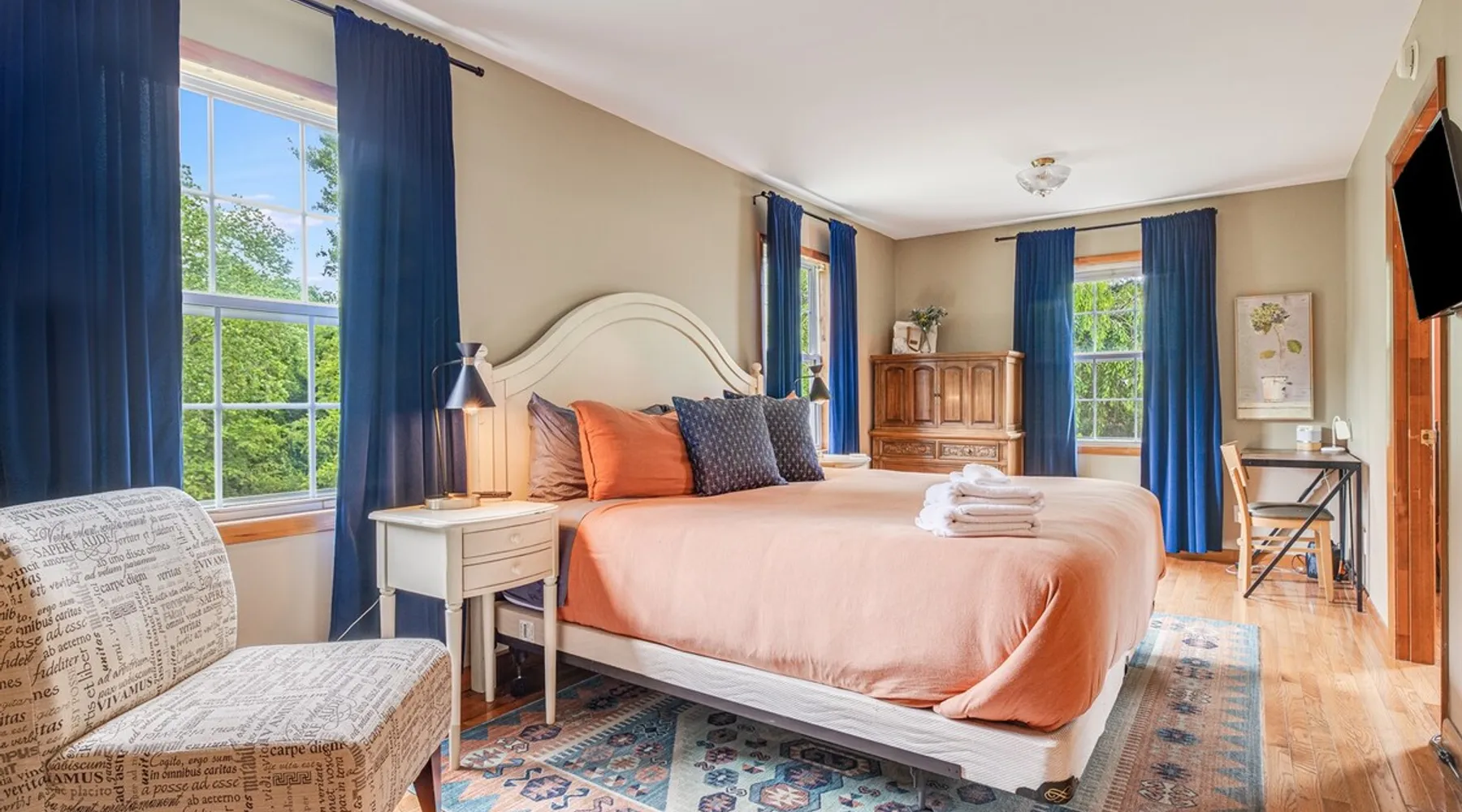 Enjoy this large family friendly home located in a peaceful country setting only 3 miles (10 mins) from downtown Asheville! -TVs in every room! -Well equipped kitchen -Dishwasher -Coffee and tea provided -Larged fenced-in private front yard (pets ok!) -Laundry on-site -Wifi 440/20 for working from home -Games and DVDs for entertainment -Hardwood floors, single level -2 KINGS, 2 twins -Blackout curtains in king bedrooms Close to dining, breweries, hiking. Biltmore Estate only 15 mins! The space LIVING ROOM Gather your group in the large living room with comfortable couches to play games or watch a movie or just hang out. 65" Smart TV loaded with all the apps. DVD player with a small collection of DVDs. Reading material, too. KITCHEN We are foodies and love to cook, so our large kitchen is fully-equipped for cooking, with coffee, tea and spices provided, and a dining area that comfortably seats 6 and overlooks the gardens. PRIMARY BEDROOM You will sleep well on the super comfortable pillow-top king mattress in the large master bedroom suite, and have your own private half bath. There's a smart TV mounted in front of your bed for watching TV! SECOND BEDROOM The second medium-sized bedroom also has a comfortable king-size bed, and a great sliding glass door opening to the outside front porch. The covered porch is a sweet peaceful place to enjoy your morning coffee. There is a mounted TV on a swivel bracket for watching TV. THIRD BEDROOM / SITTING ROOM The sitting room is attached to the master bedroom (a door closes between the two) and has a daybed with trundle bed that can be pulled out for two twin beds and opens to the outside porch. There’s an extra Roku TV in this room for the kids or if someone in your group enjoy falling asleep watching TV. MAIN BATHROOM The shower and tub are beautifully tiled. There is a bluetooth speaker for music while you shower and get ready for your visit to all that Asheville has to offer! PARKING & FRONT YARD The home has plenty of parking (3 cars, inquire if you have more), a fenced yard with a cozy tree swing, and is a wonderful place to unwind after a day exploring Asheville or hiking nearby mountain trails. BACKYARD The grounds are full of organically grown fruit trees and you are welcome to enjoy them in the summer and fall months when the trees and bushes are producing fruit. DOG FRIENDLY We are happy to host well behaved pets. Please get in touch so we can share our pet policy with you! :) EXPERIENCE ASHEVILLE LIKE A LOCAL Explore the local scene and get a taste of what makes Asheville so special through our carefully curated recommendation list. We've partnered with local businesses to ensure you can get off the beaten path and have enough memories from your adventures here to last. Asheville boasts activities which will satisfy everyone in your travel party. Hiking trails and outdoor activities such as horseback riding, canoeing, tubing the French Broad or whitewater rafting are within easy driving distance. Skiing and zipline within a 20-minute drive. For the shopper in your group, Asheville has a host of antique shops, boutiques, art galleries, and crafts. Evening activities include diverse dining options, movies, live theatre, live music, or just walking through Asheville's lively downtown filled with street performers and art. The Biltmore Estate is breathtaking in summer and glorious when decorated for Christmas. Chimney Rock Park is worth the 35-minute drive. Wonderful hiking and beautiful views. A drive on the Blue Ridge Parkway in autumn highlights the beautiful peak colors. There are many festivals throughout the year for the whole family. To see us on IG at The Brighthouse @thebrighthouse_ Guest access There is parking outside for 2-3 cars. Please inquire if you will have more than 3 vehicles. Other things to note There is a completely separate downstairs garden apartment that is also a vacation rental. Quiet hours after 10pm to 7am in order to ensure we are being good neighbors! Dogs can be allowed upon request and a $50 fee per pet will be added after booking. Please let us know if you want to bring a pet or pets so I can send you our pet policy so we are on the same page about how to have that happen in a happy way for all! GUEST VERIFICATION Important: We are committed to protecting our properties which is why we've partnered with Know Your Guest, the leading vacation rental guest-screening provider. We ask that each guest complete this identification process and purchase either a deposit or waiver. The $500 deposit comes with a $15 transaction fee and the waiver costs a flat $35 to purchase. These costs are nonrefundable while the $500 deposit is refundable and will be released within 7-14 days after the reservation ends. This process is meant to protect both us as hosts and also you as a guest should unexpected damage occur on the property.