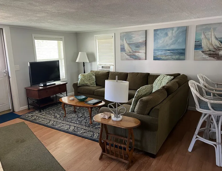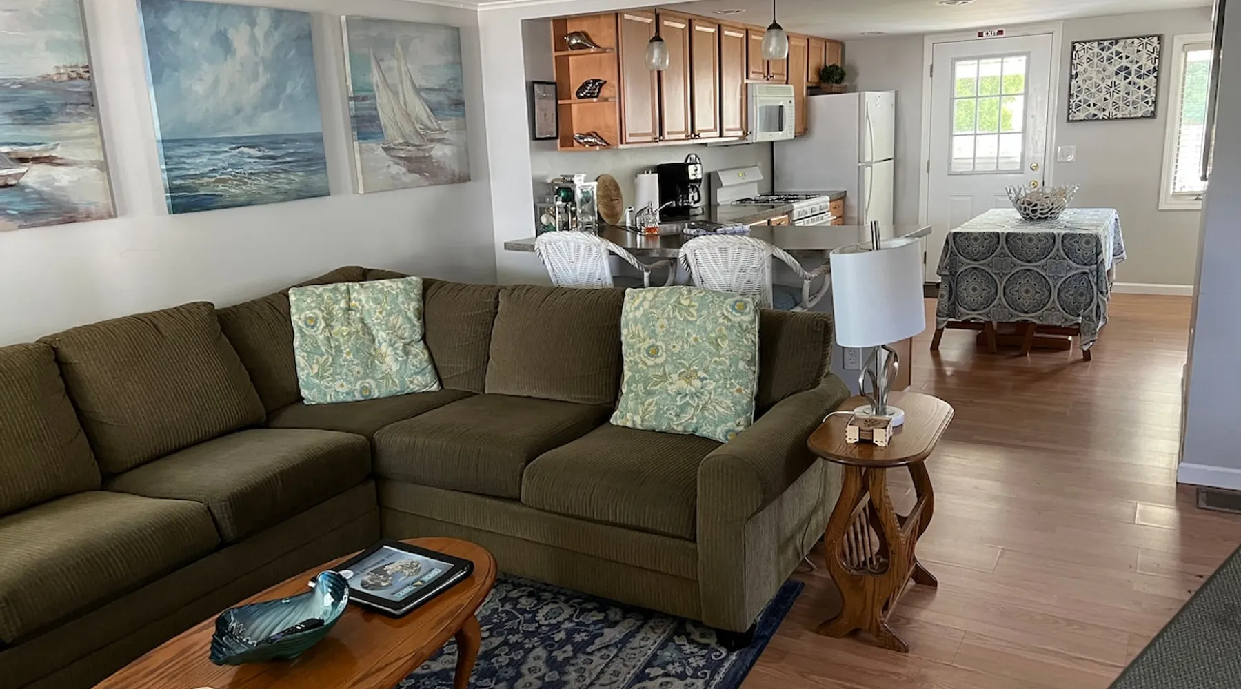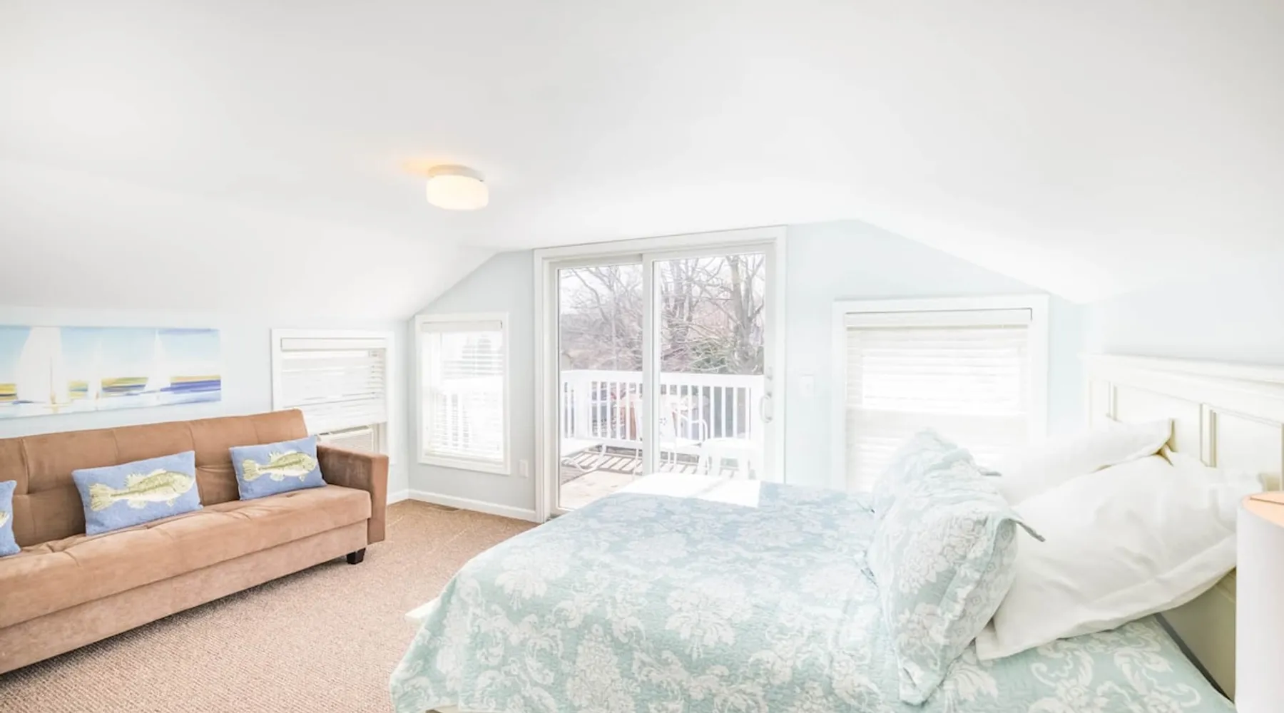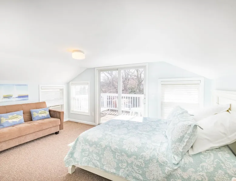 If solitude is what you’re looking for, this charming two story is for you! This cottage sleeps six and includes a stunning master bedroom connected to an upper deck that overlooks the harbor. Relax on the front porch and enjoy the evening breezes. Also featuring 1.5 baths, full kitchen with breakfast bar and a large living room. You will also enjoy other amenities like the flat screen TV, wireless internet, dishwasher, cable television, chest freezer, and charcoal grill. Truly charming!