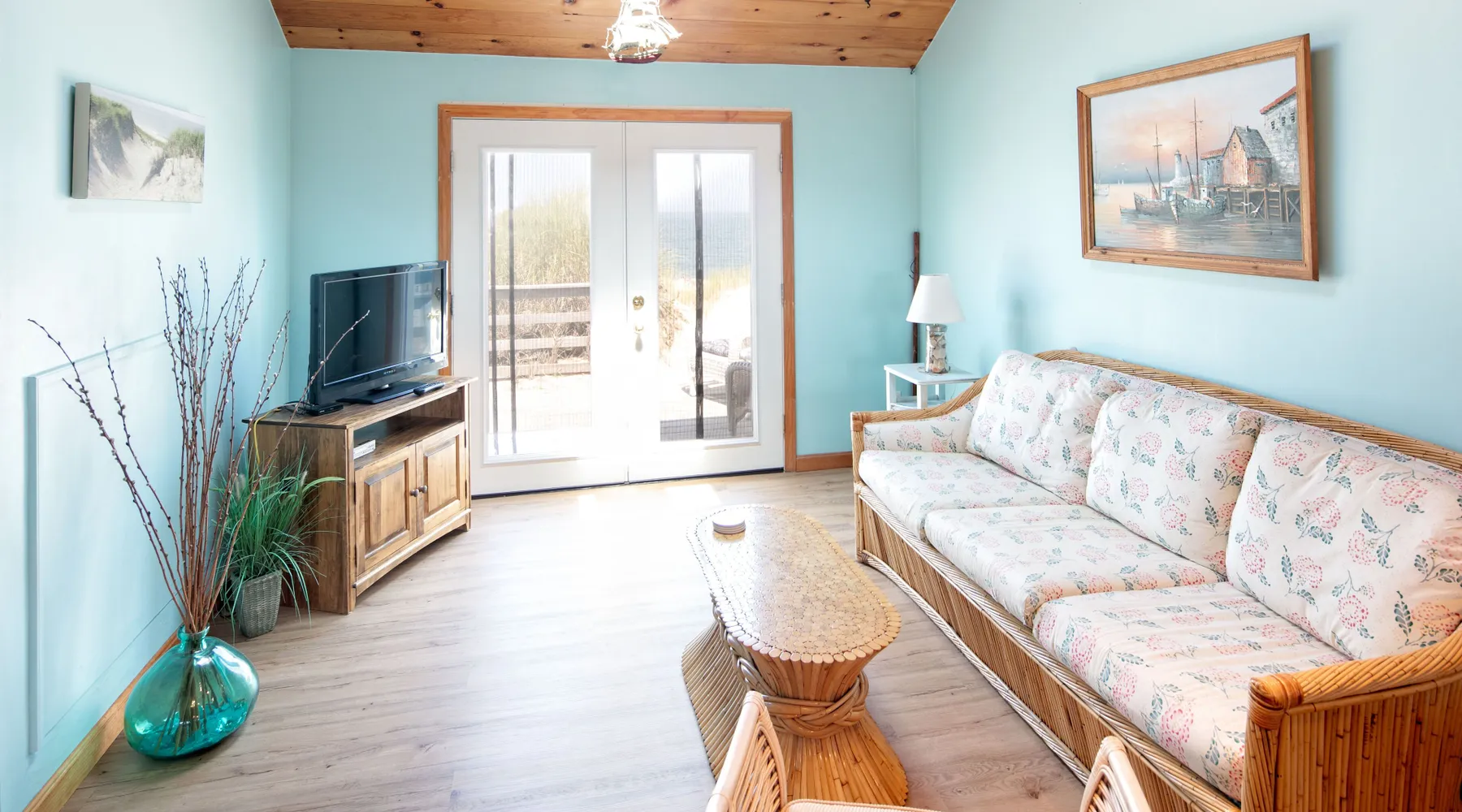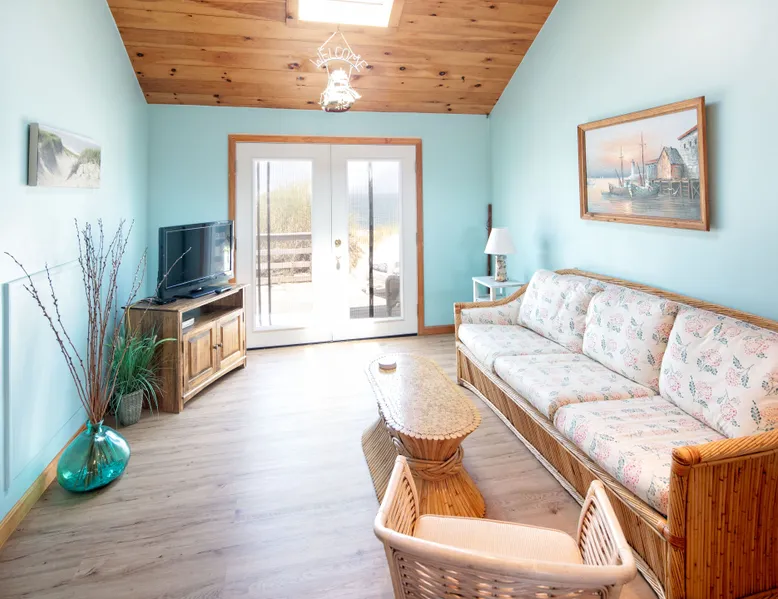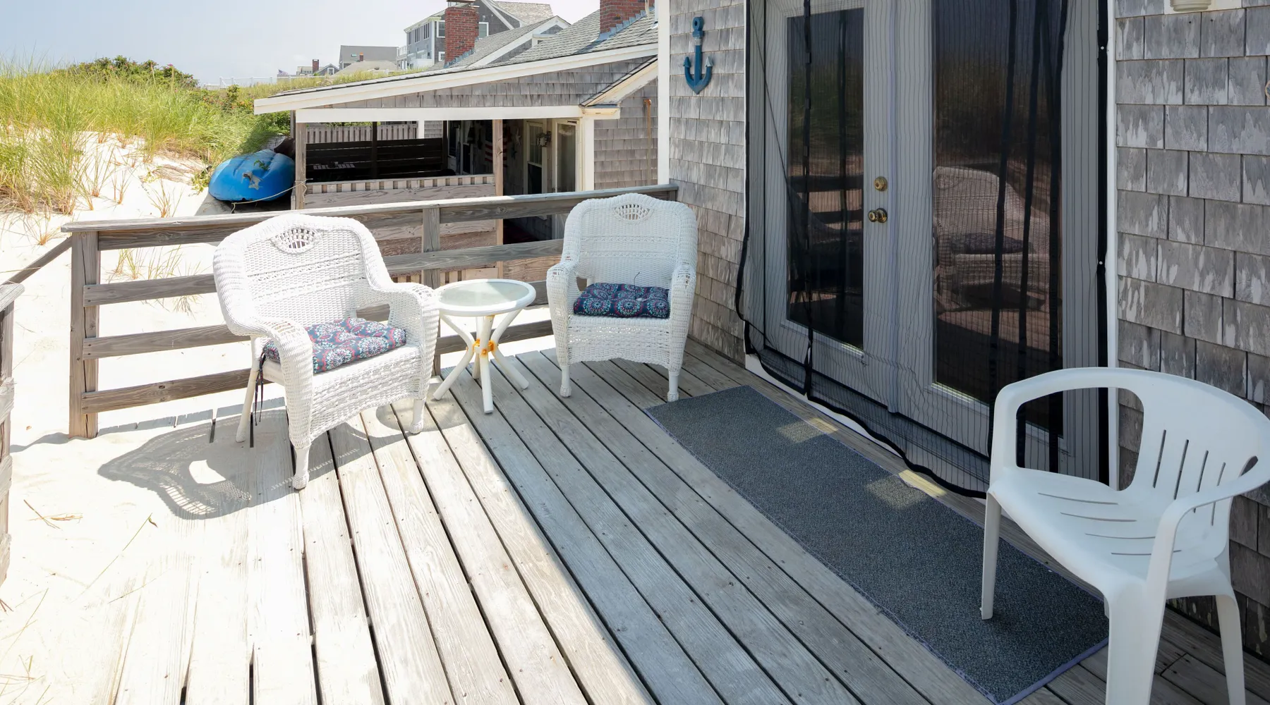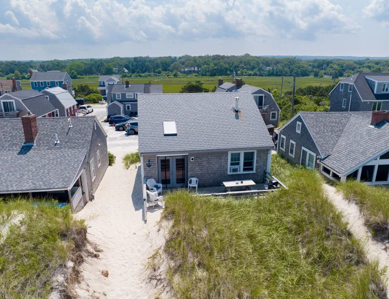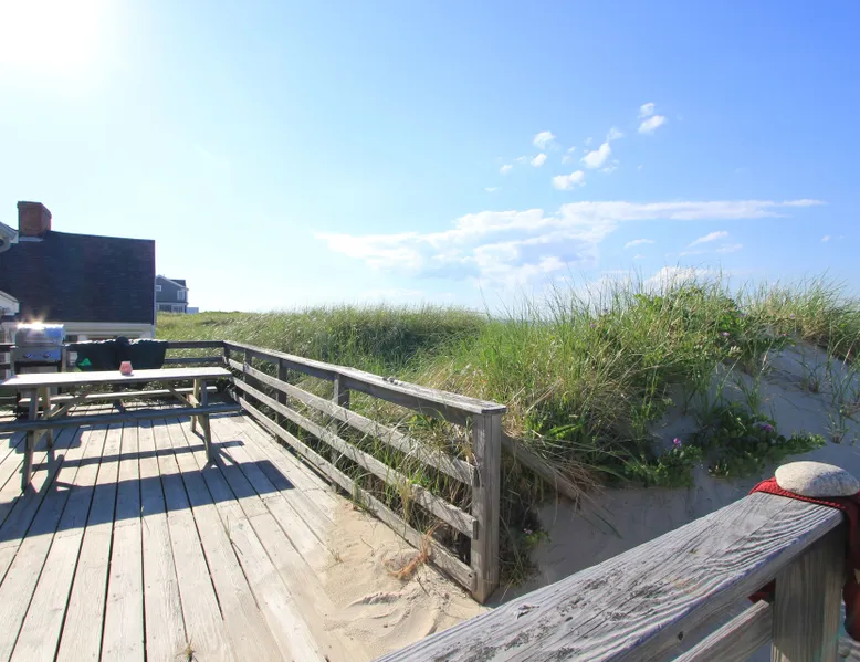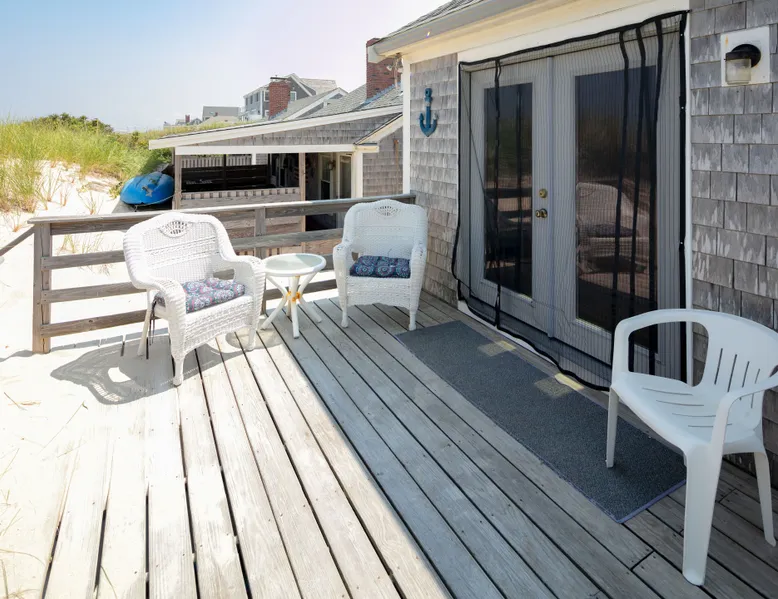 2 Bedrooms, Sleeps 4 2 Bathrooms 7 Night minimum rental, Saturday - Saturday About this cottage: Welcome to your idyllic beachfront retreat at Oceanside 2 on North Shore Blvd in Sandwich, MA! This delightful 2-bedroom, 2-bath cottage is nestled in the dunes of East Sandwich Beach, offering a fantastic spot directly on the beach for an unforgettable and relaxing vacation. The cottage is thoughtfully designed with an open floor plan, providing ample space for quality time with your family. Both bedrooms come with private baths, ensuring convenience and privacy for all guests. The master bedroom features a refreshing A/C window unit, adding an extra touch of comfort. Step through the charming French doors onto the beachside deck, where the soothing sounds of the ocean and breathtaking views of East Sandwich Beach await. This is the perfect spot to unwind, soak up the sun, and savor the coastal breeze. The cottage's prime location creates a family-friendly atmosphere, making it an ideal choice for those seeking a carefree beachfront experience. Come once, and you'll find yourself yearning to return to this tidy, welcoming home, stepping off the deck and onto the sandy shores of East Sandwich Beach. Discover the joy of coastal living at Oceanside 2, where the beach is not just a destination but an extension of your vacation home. With sleeping arrangements for 4 guests, including a queen bed in Bedroom 1 and 2 twin beds in Bedroom 2, this beachfront haven is ready to welcome you to a summer filled with relaxation and cherished memories. Don't miss out on the opportunity to make this your annual seaside escape! Bedroom 1 - Queen Bedroom 2 - 2 Twins Sheets and towels are not included and may be brought or rented locally. Look up Dune Tootin linen rentals for pricing.