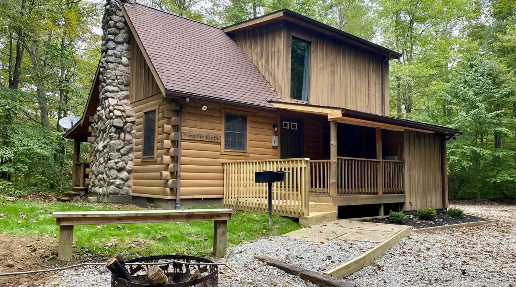 Wooded hilltop location for this authentic log cabin in Ohio's Hocking HIlls close to Conkles Hollow Nature Preserve. Perfect for two couples with their pets, with two bedrooms and two full baths. The space Private cabin surround by trees. Road is close by, but with the woods, you'll feel secluded in your cabin. You're just a few miles from the local State Park for hiking. 10 miles or so from our seasonal community pool. Around 20 miles away from downtown Logan. Other things to note This picturesque log cabin in a wooded hilltop setting is perfect for two couples and their dogs - with two queen beds, two full baths, wood-burning fireplace, private hot tub, charcoal grill, fire pit, covered deck with porch swing, Roku tv and DVD player. Pet friendly (2 pet limit with $50+tax pet fee). INCLUDED All of the Chalets include: a scenic setting; outdoor hot-tub; fireplace, grill and firepit; kitchen with cooktop, microwave, coffee maker, cooking utensils and tableware; Roku tv with dvd player; bed, bath and kitchen linens; bath soap and a supply of dish soap; toilet paper and trash bags; access to the Chalets Resort pool at the Chalets Old Man's Cave location; central air conditioning and heat. SITE Closest park is Conkles Hollow - 2 miles, a 5-minute drive, so Timber Ridge is one of the Chalets Conkles Hollow location group of cabins. Old Man's Cave is a 10-15 minute drive along some of the most scenic roads of the region. The Chalets Old Man's Cave location with office, pool and SaunaPods is a 20 minute drive. SIMILAR If you like this cabin's location and layout, you will like the Chalets Pioneer and Pine Creek, just down the road. [HCRN-00172] -/-/-/-/-/-/-/-/-/-/-/-/-/-/-/-/-/-/- To abide by all legal requirements and building security rules, you may be asked to provide a copy of your official government-issued photo ID, confirm your contact information, provide a valid credit card with a name that matches your ID, and pass through our verification portal. Important note: The information is collected for screening and verification only and is not stored or used for any other purposes. Please be advised that all guests will be asked to sign a rental usage agreement that governs the terms of the stay. By completing the reservation you agree to the following: (1) You agree to be bound by our rental terms and conditions. (2) You acknowledge that you will be required to provide a copy of a valid government-issued ID and matching credit card prior to check-in. (3) You understand that your check-in instructions might be withheld until you have successfully completed our verification portal.