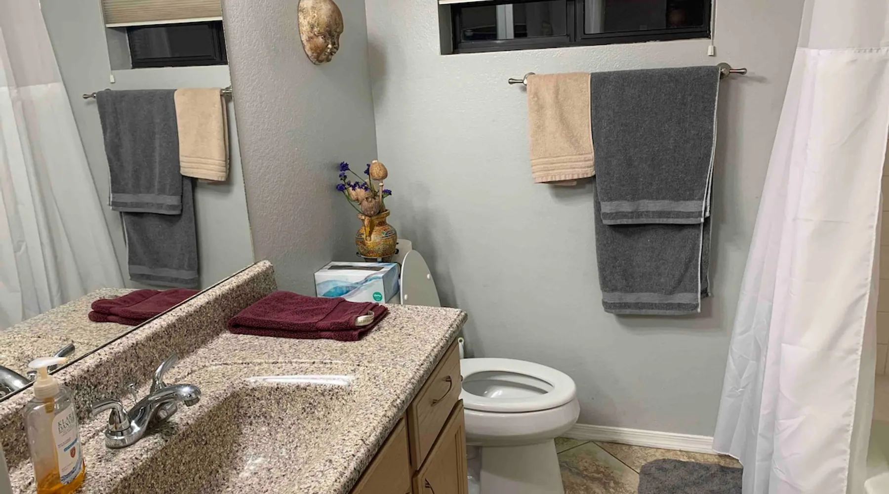 Very clean, 3 bedroom home. 1 BR will be locked off. Guest BR has new queen bed. 3rd BR has new hide-a-bed. Quiet neighborhood. Quality bedding, gas grill on covered patio. All new furnishings. Back yard is Southwest garden. Close to services. For guest stays of 7 nights or longer, I will not be home. For stays of less than 7 days, I may be home. 1 bedroom and it's bath are mine. If you need 3 bd rooms, see my listing for full house rental and let's discuss. Marble flooring. Modern kitchen. The space Upscale, spacious home with marble flooring throughout and nicely decorated. For stays of seven days or longer, host will not be home. Guests have access to all of home except host’s bedroom and bath which are locked. See listing for entire home if all three bedrooms and master bath are desired. Beautiful backyard, private patio. Gas grill and modern kitchen. New furniture and bedding. If you have a small pet, let's discuss if an exception can be made, and what additional cost there might be. Guest access Entire home is accessible. One bedroom will be locked off. If you would like to have all 3 bedrooms, we can discuss that. Other things to note We will need to discuss Pets ahead of time. If we agree on pets, they will be charged at an additional rate of $25 each pet, per day. Everything is new in the house, I love animals, however pets will need to be house trained and not furniture chewers, scratchers, etc. Let's discuss your pets.